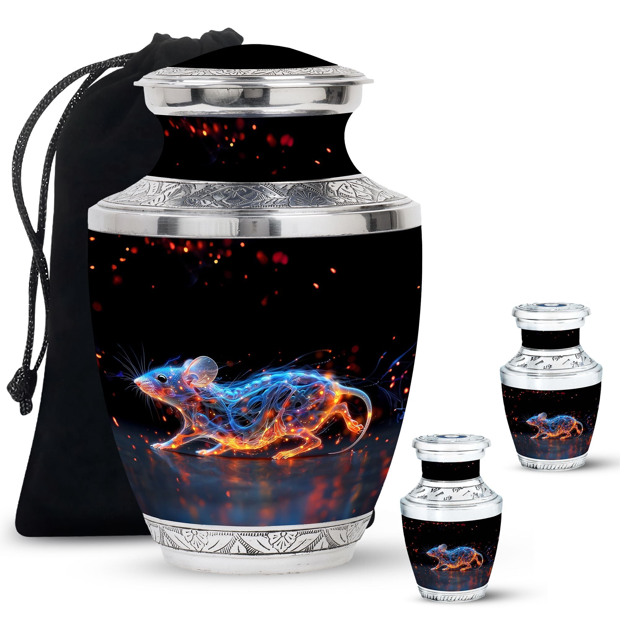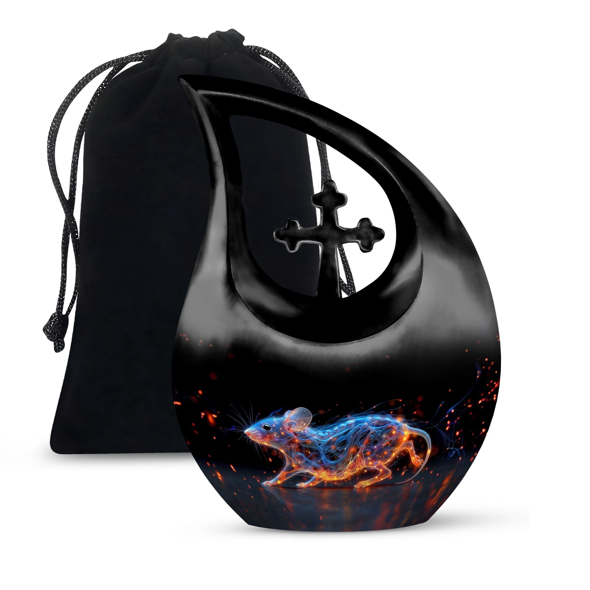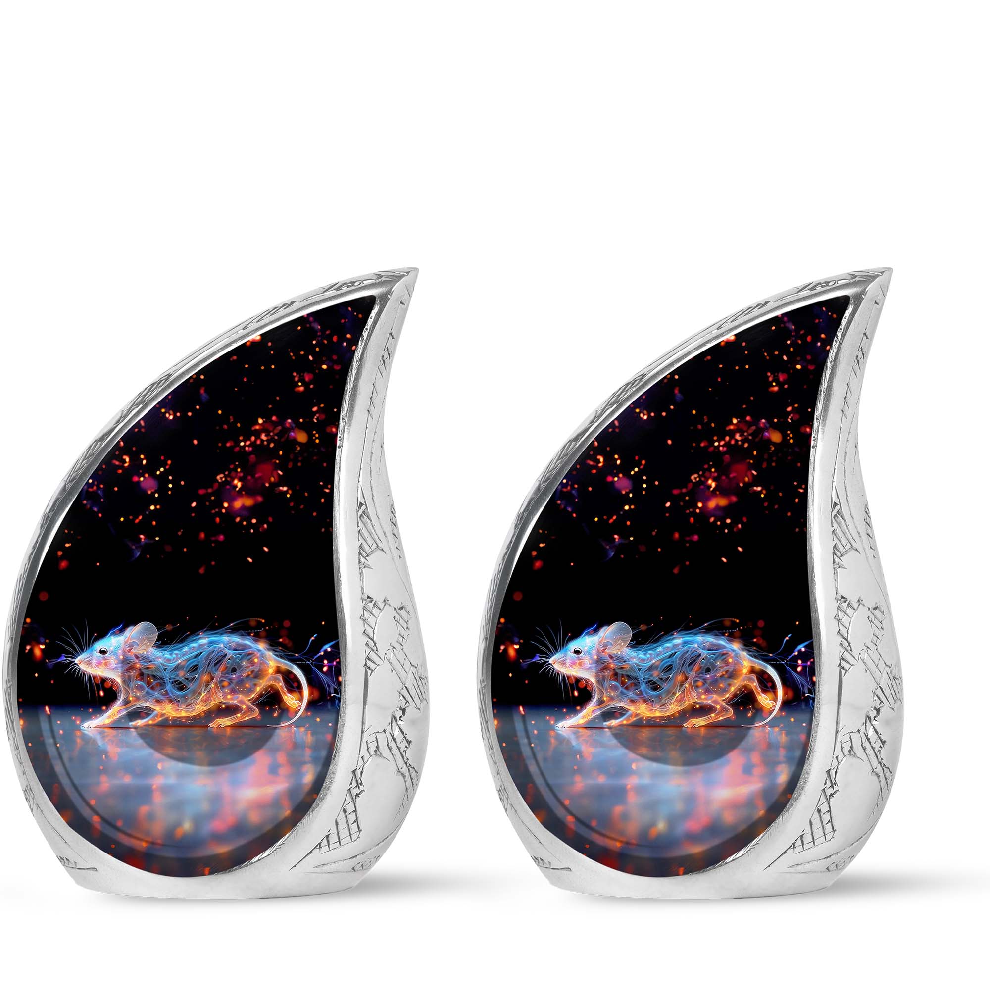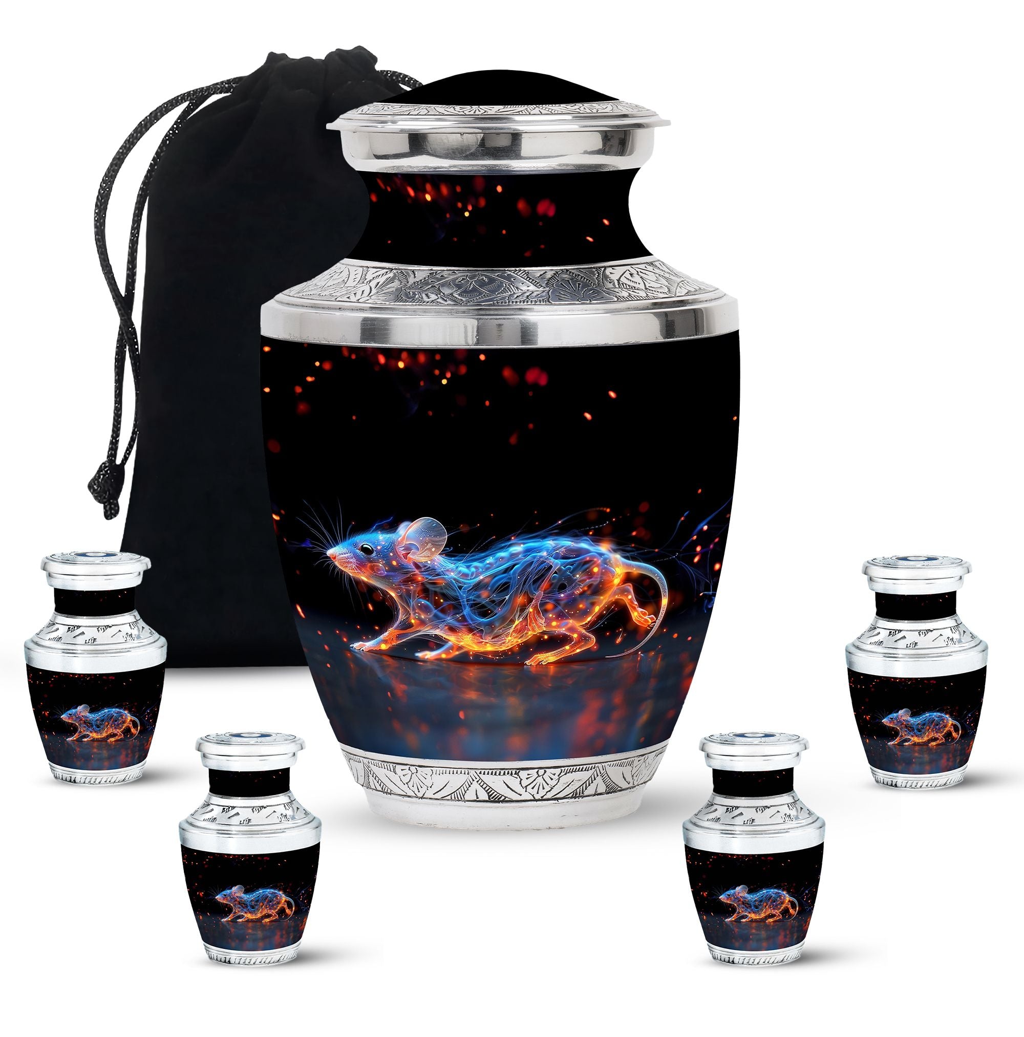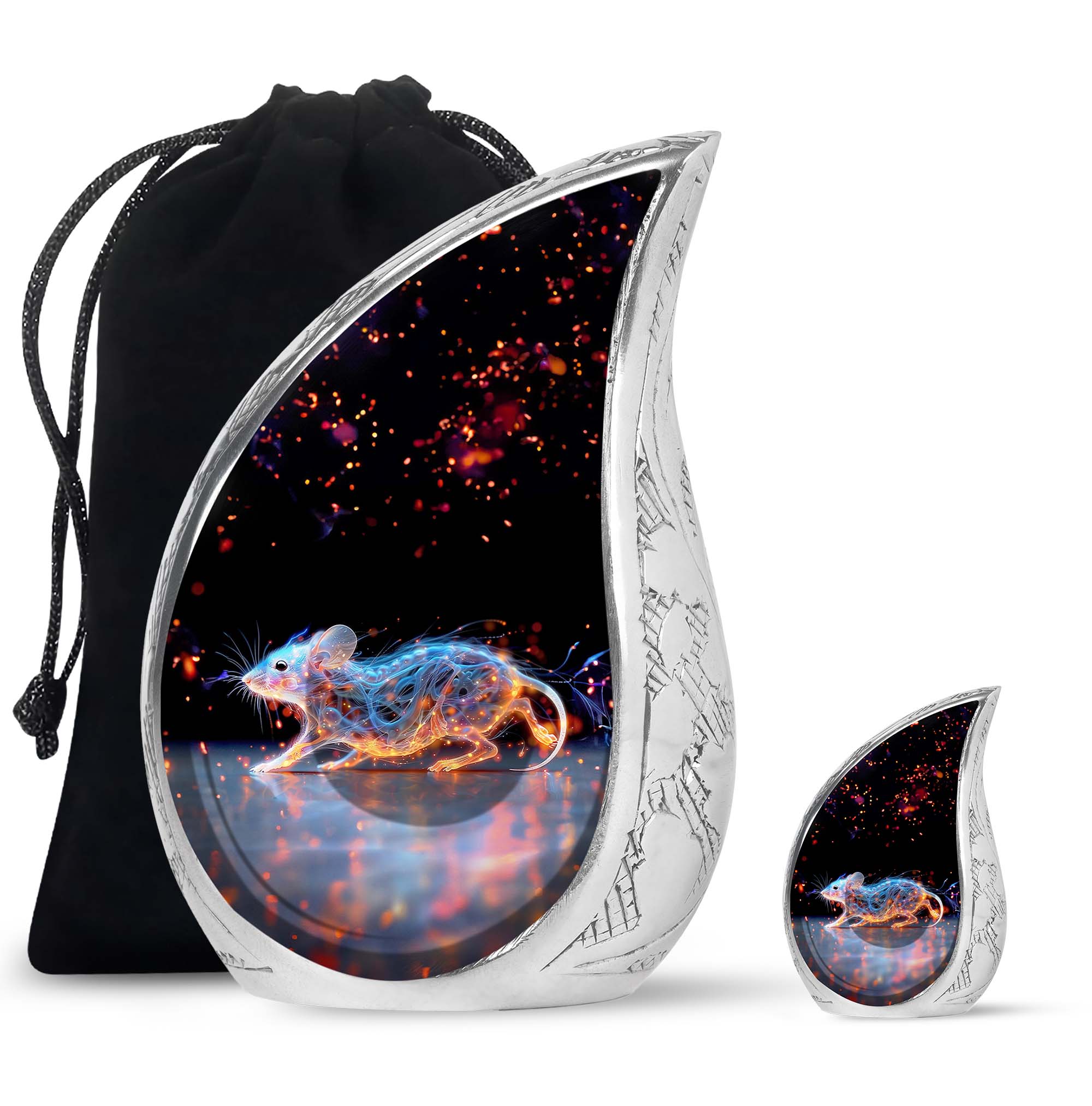 A symbol of humility and intelligence, the Cosmic Mouse Urn transforms sorrow into serenity—preserving life’s story in a vessel of cosmic grace and eternal light.