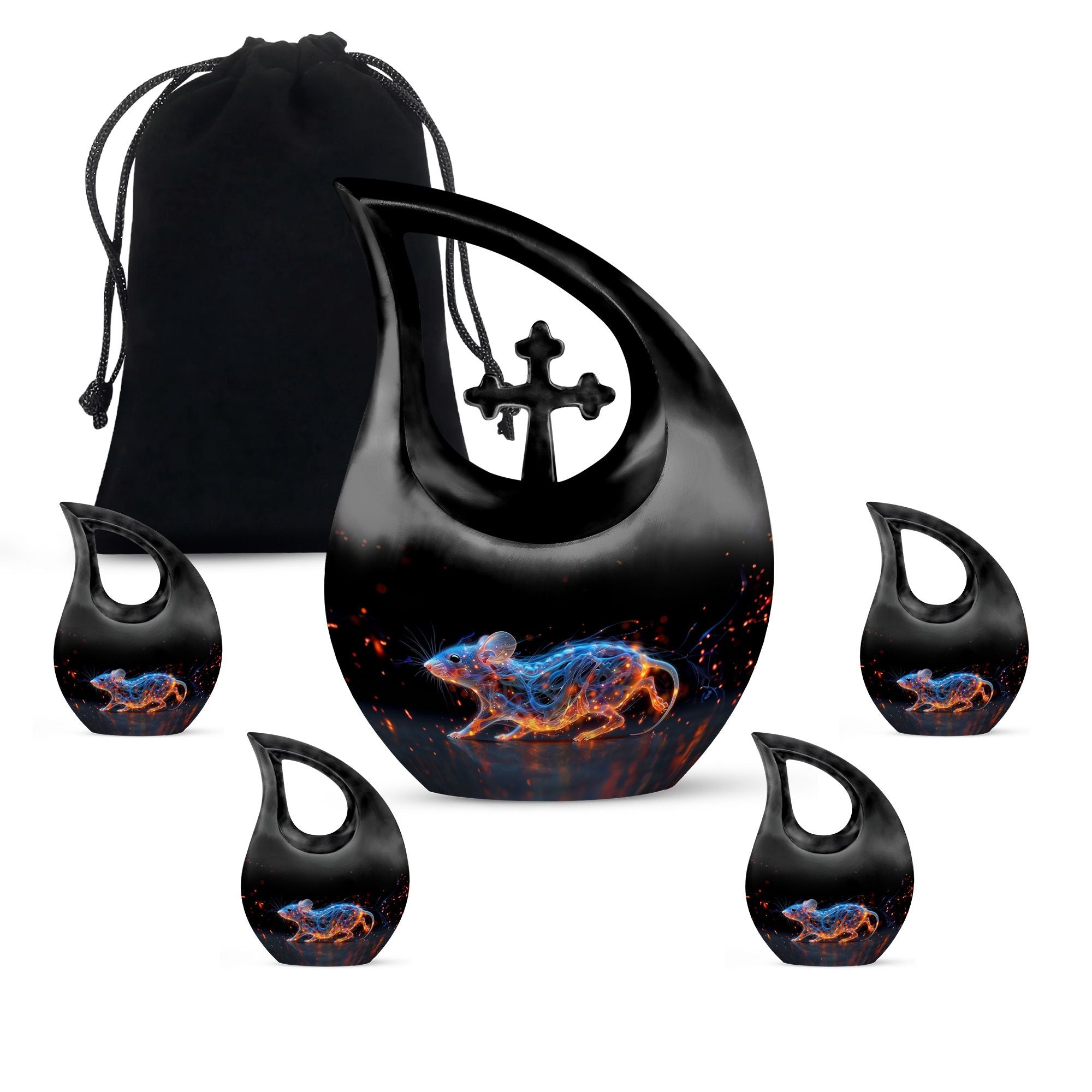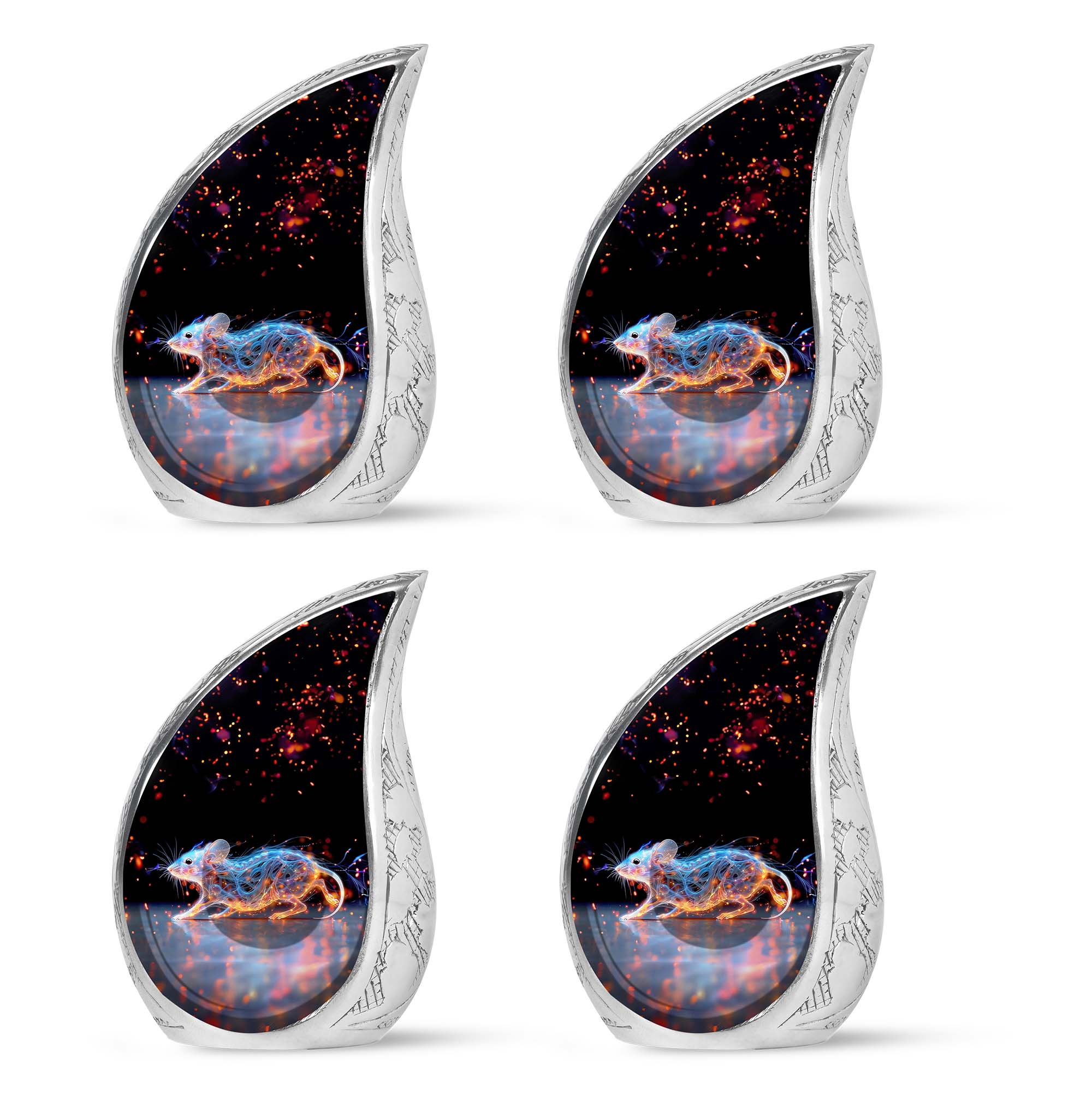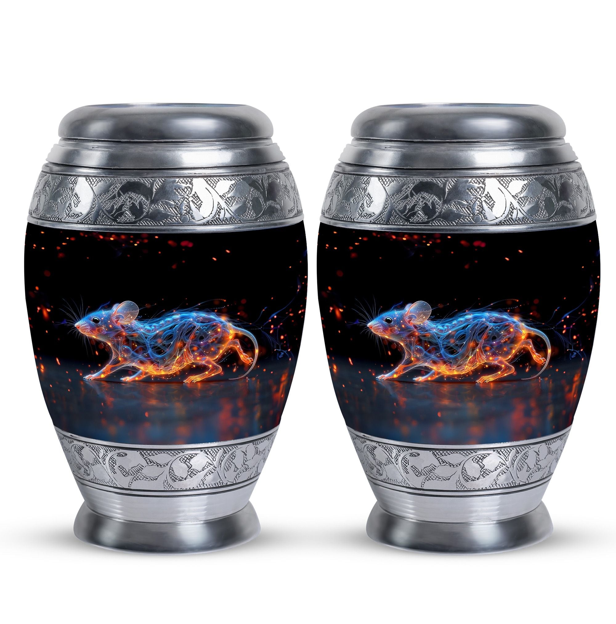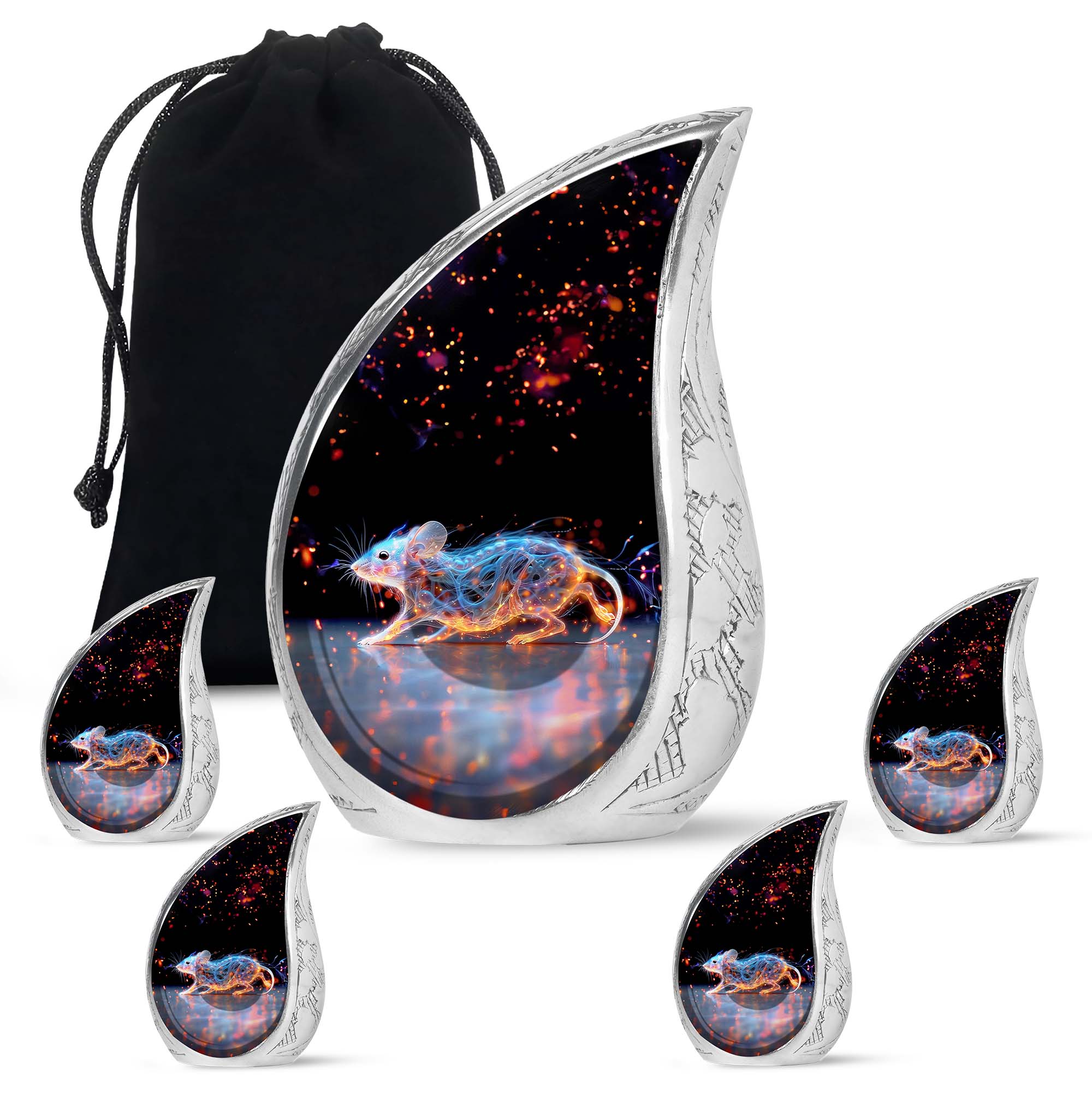 A symbol of humility and intelligence, the Cosmic Mouse Urn transforms sorrow into serenity—preserving life’s story in a vessel of cosmic grace and eternal light.