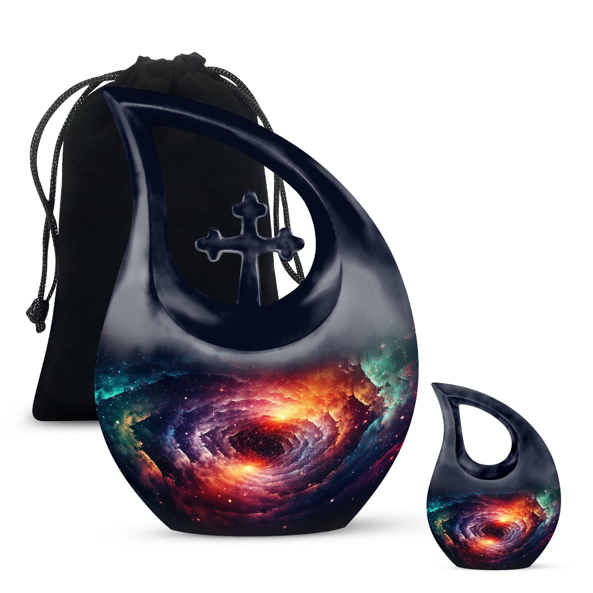 The Universe Dust Urn for Ashes Burial – Galaxy Waves Spread Memorial Urn is a breathtaking tribute that captures the mystery, beauty, and infinite peace of the cosmos. Designed for dignified remembrance, this urn serves as a serene resting place for your loved one — perfect for burial urns for ground or home display. Its galaxy motif symbolizes the eternal connection between the human soul and the vastness of the universe.