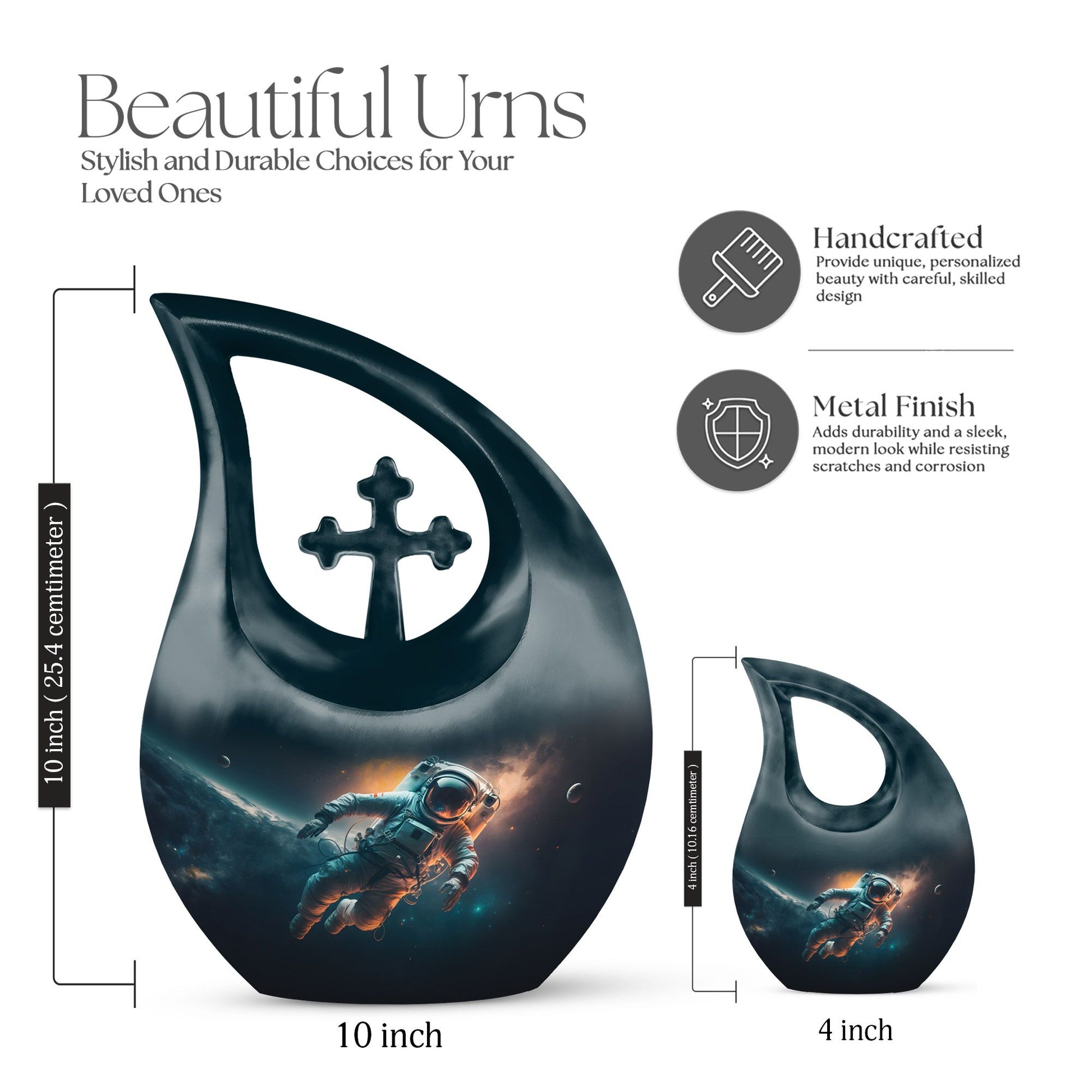 Crafted from high-quality aluminum, this cremation keepsake urn features a smooth teardrop silhouette with a vivid cosmic pattern, inspired by the breathtaking beauty of space. Its durable structure ensures lasting protection for your loved one’s ashes, while the artistry makes it a perfect choice among urns for cremation ashes. Families may choose cremation ashes keepsakes or small cremation urns for ashes to share memories across generations.