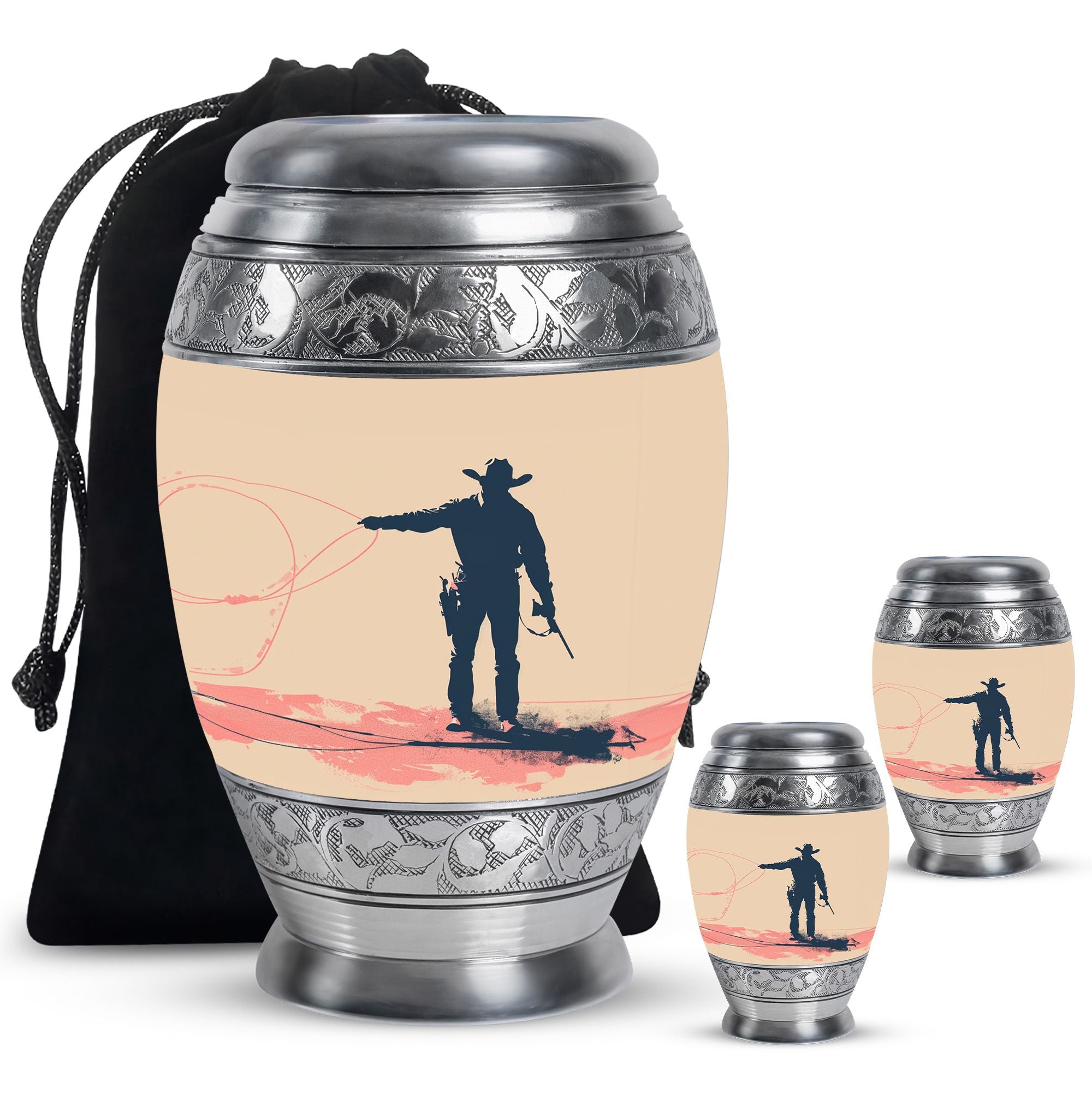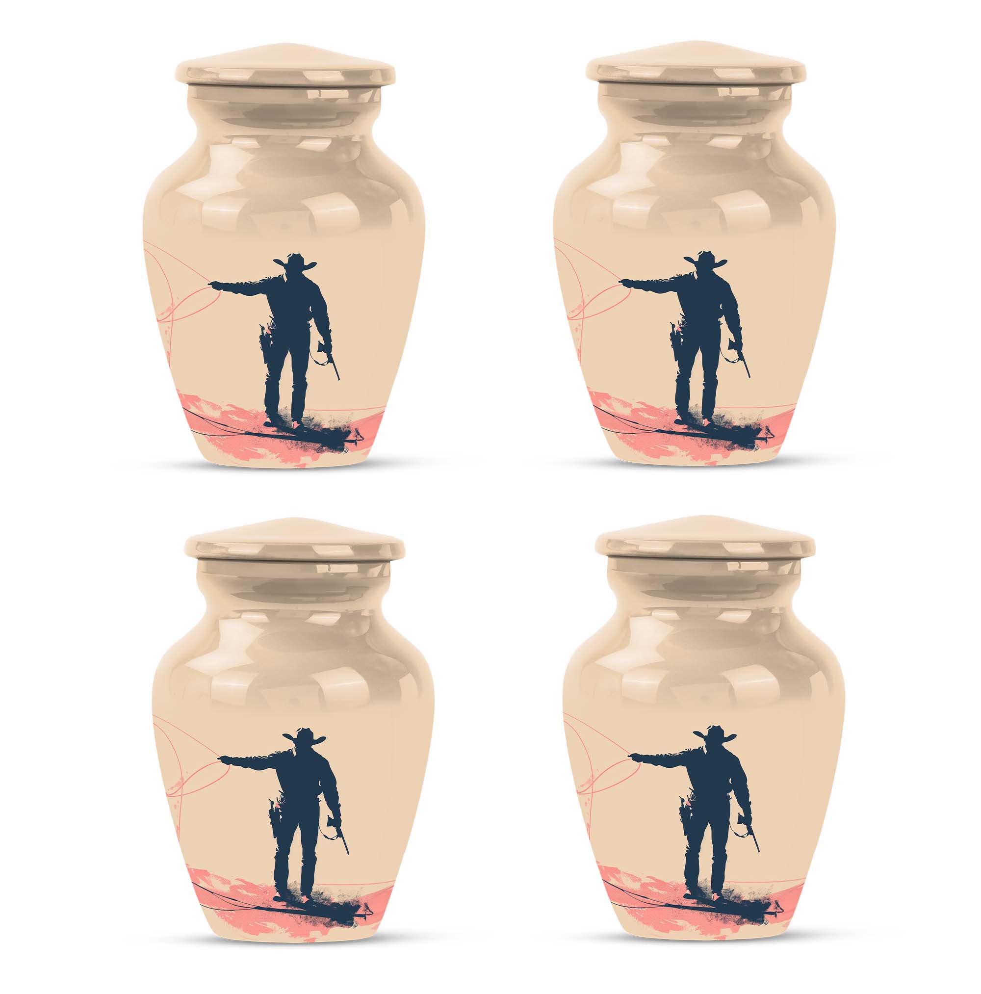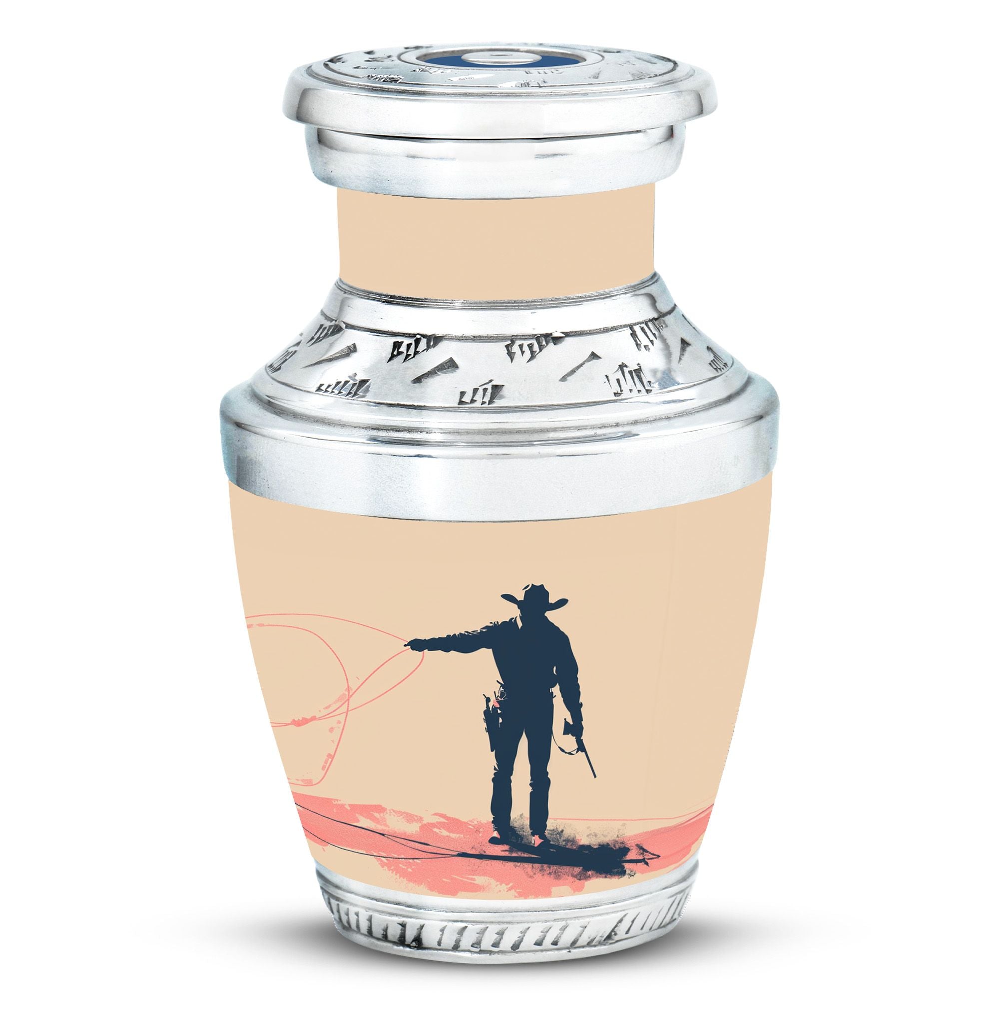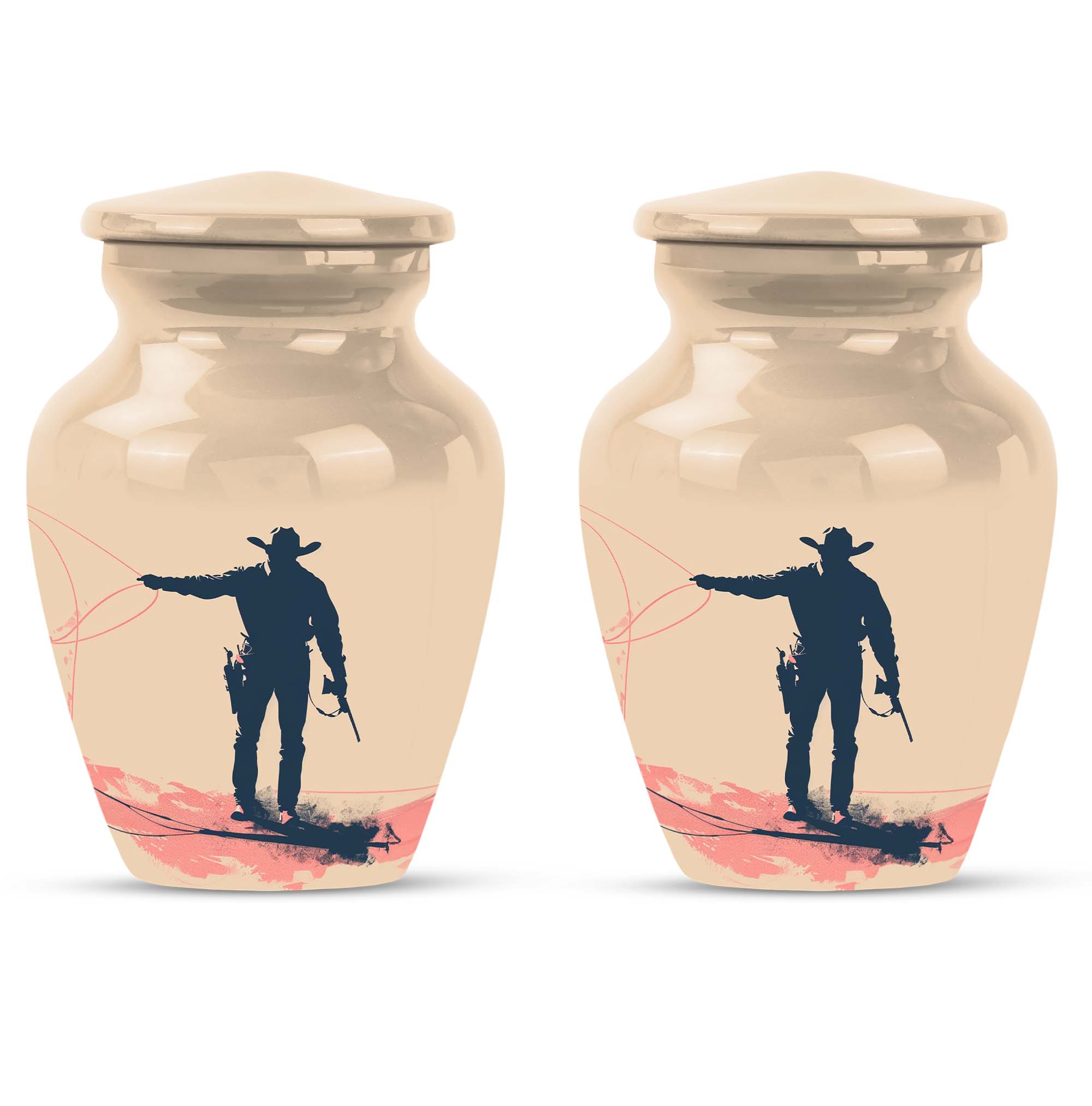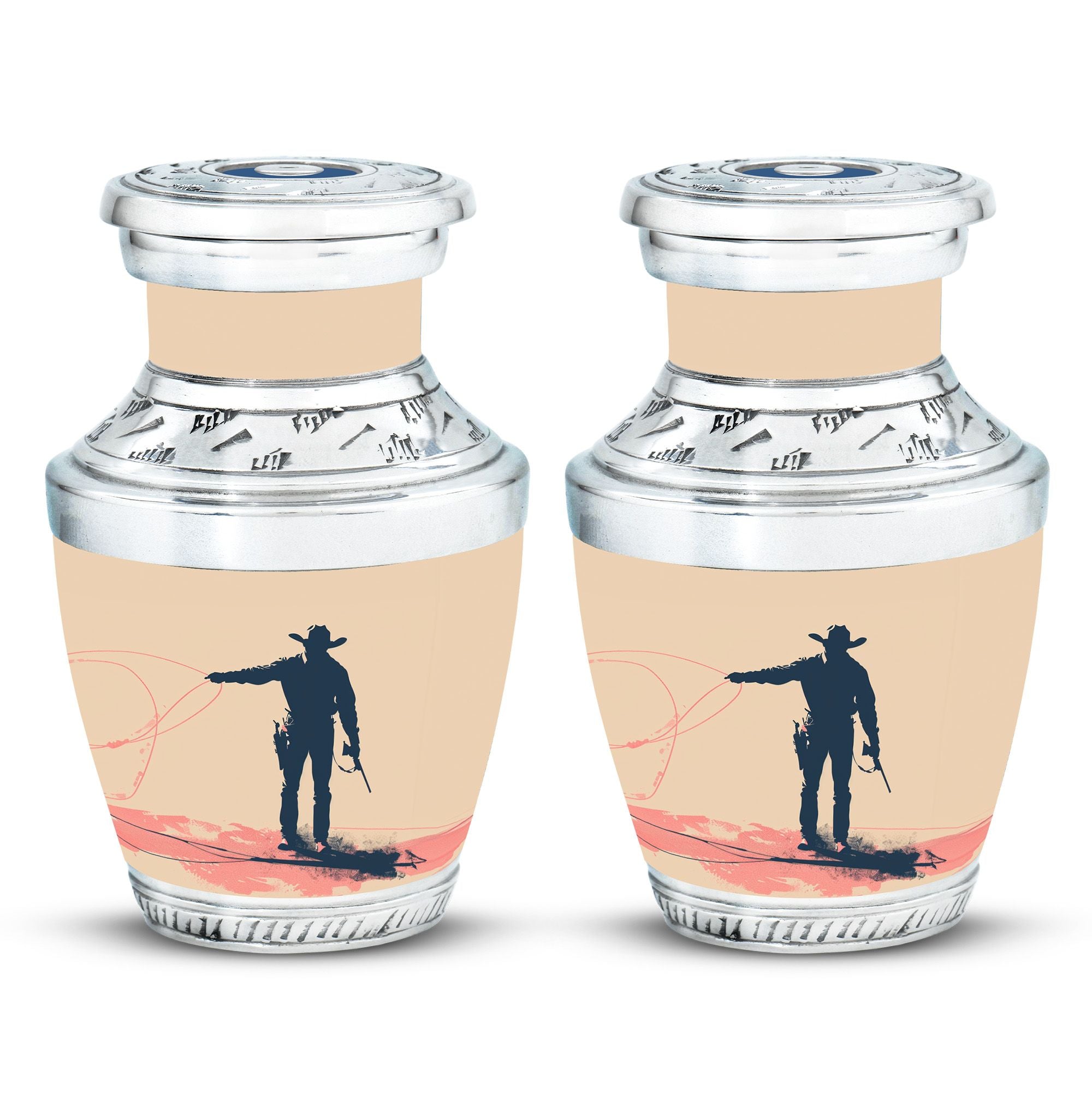 This small keepsake urn collection, with its cowboy sheriff art, symbolizes strength, honor, and enduring love—an unforgettable tribute to those who lived with bravery and integrity.