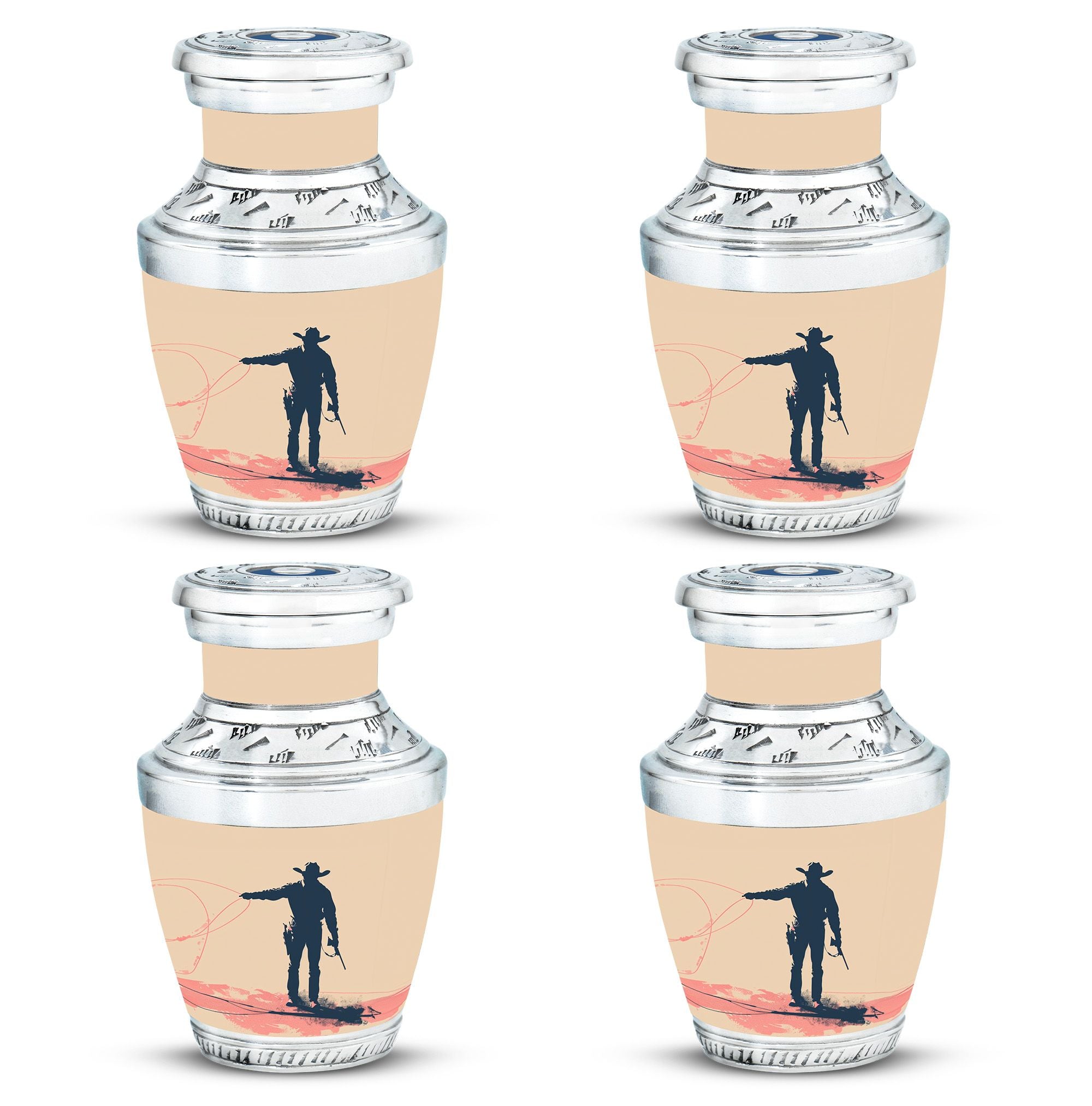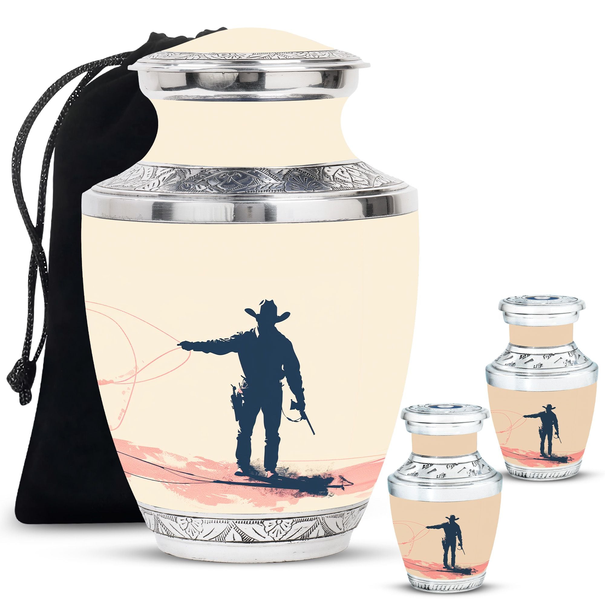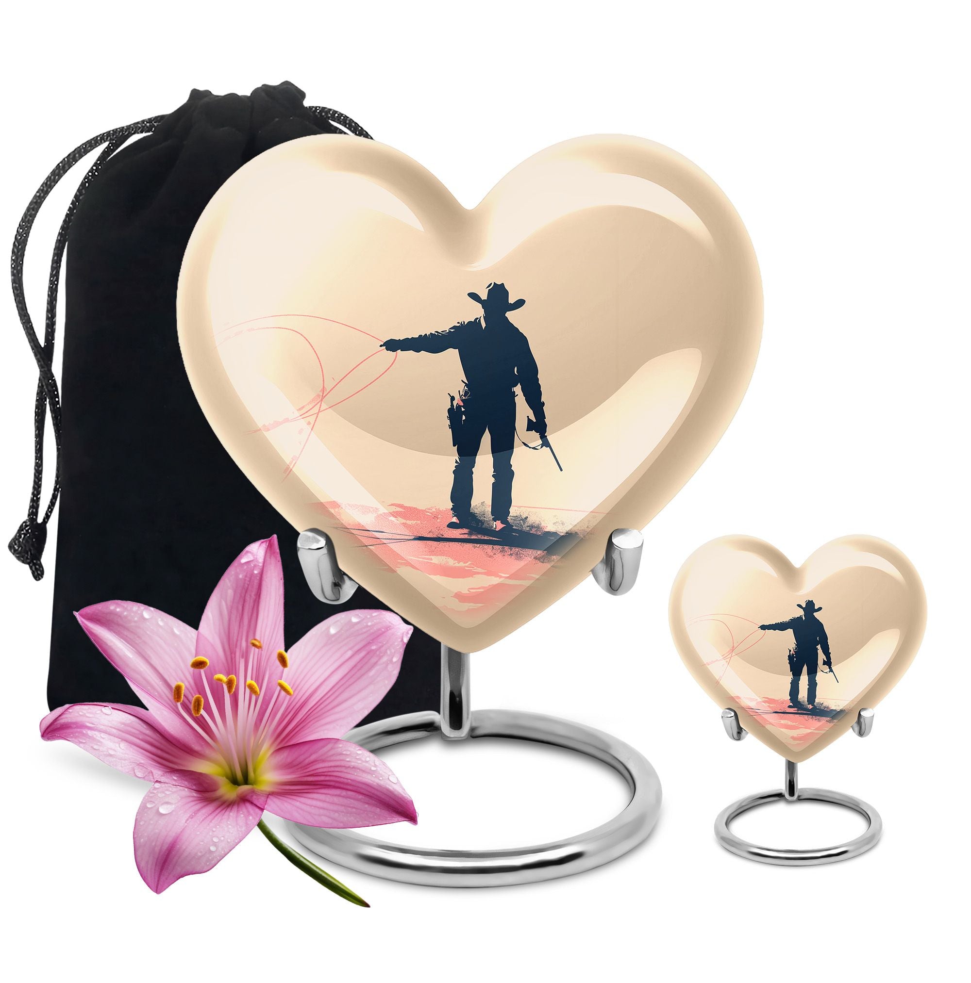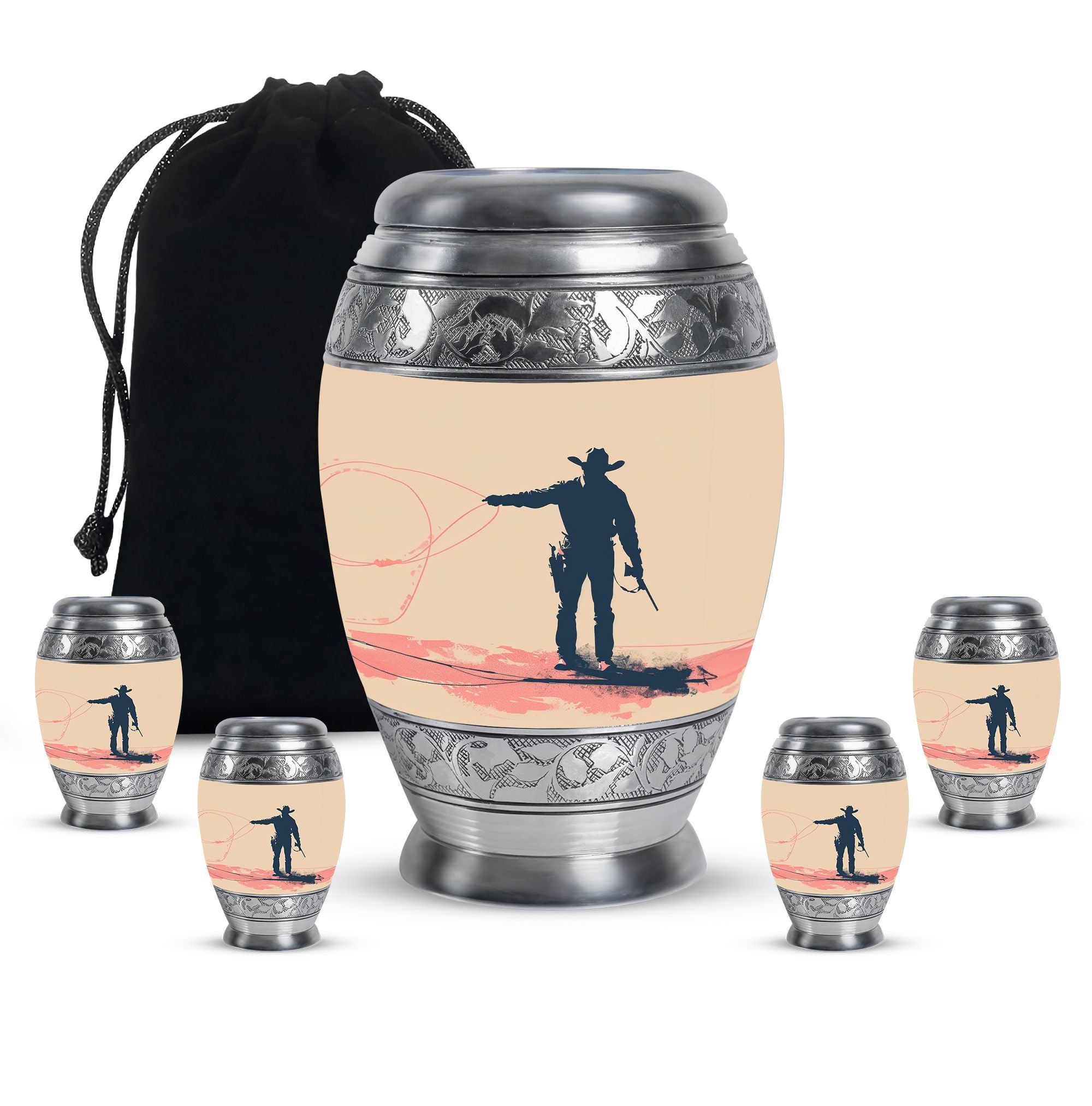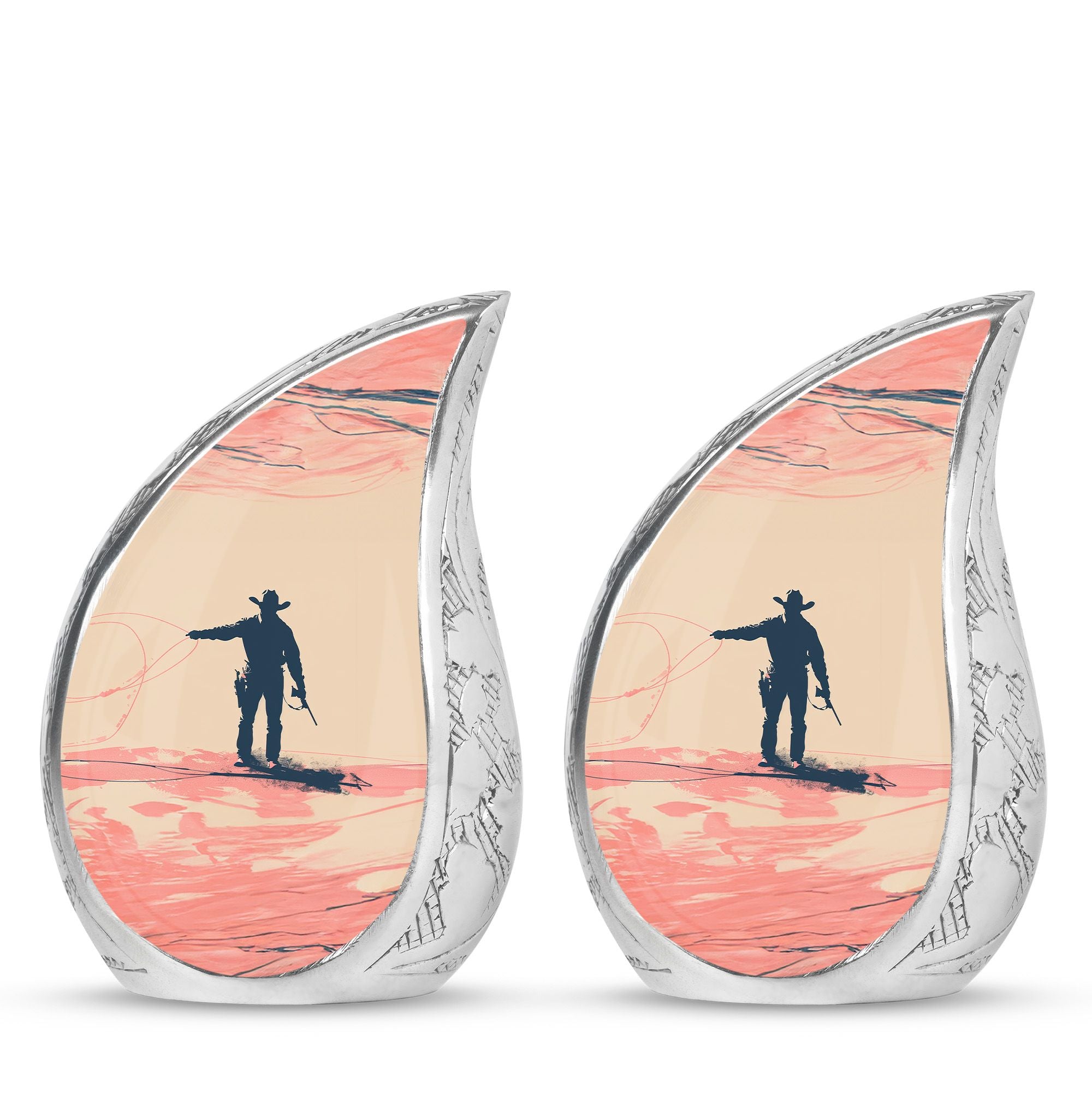 This small keepsake urn collection, with its cowboy sheriff art, symbolizes strength, honor, and enduring love—an unforgettable tribute to those who lived with bravery and integrity.