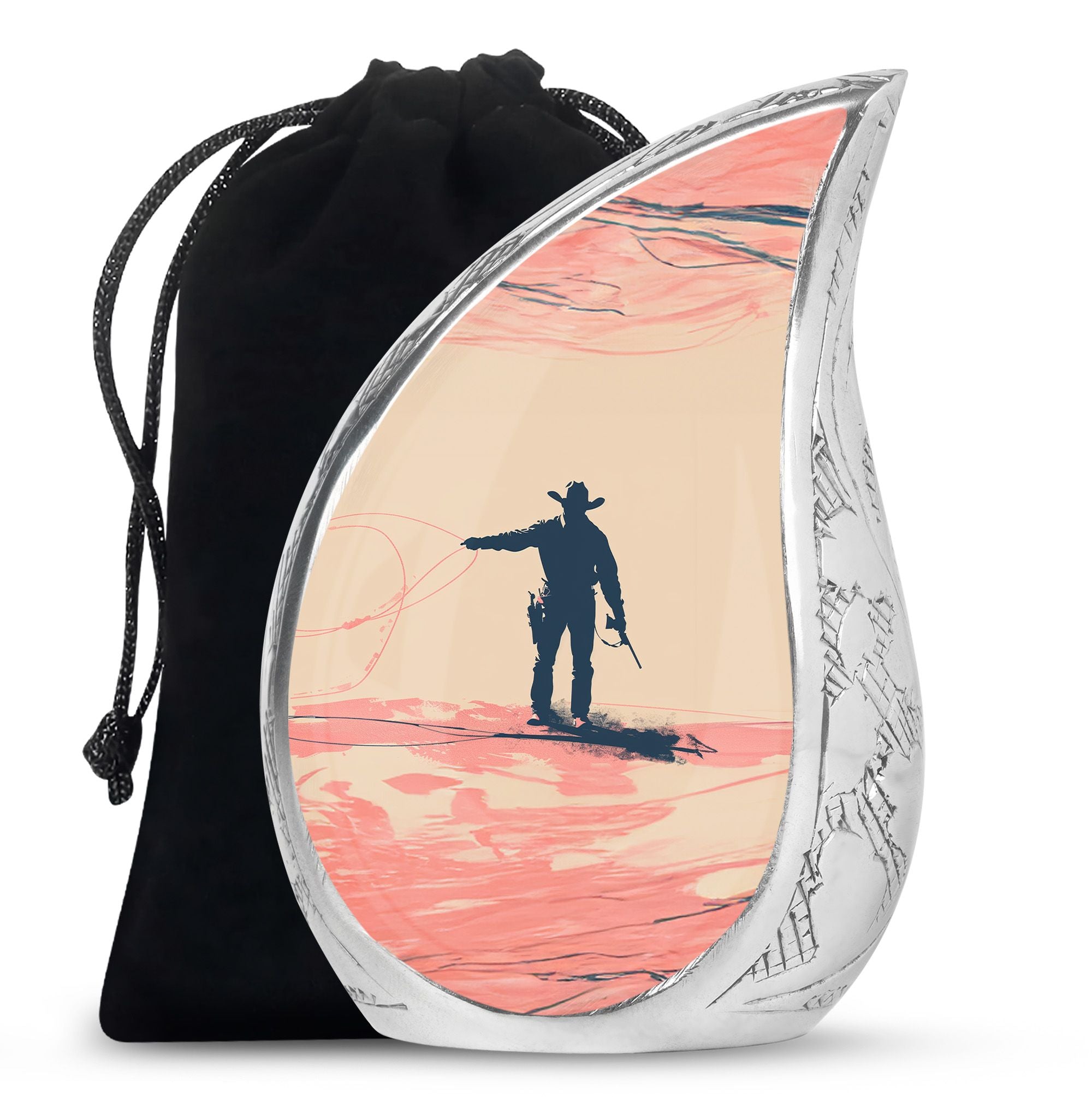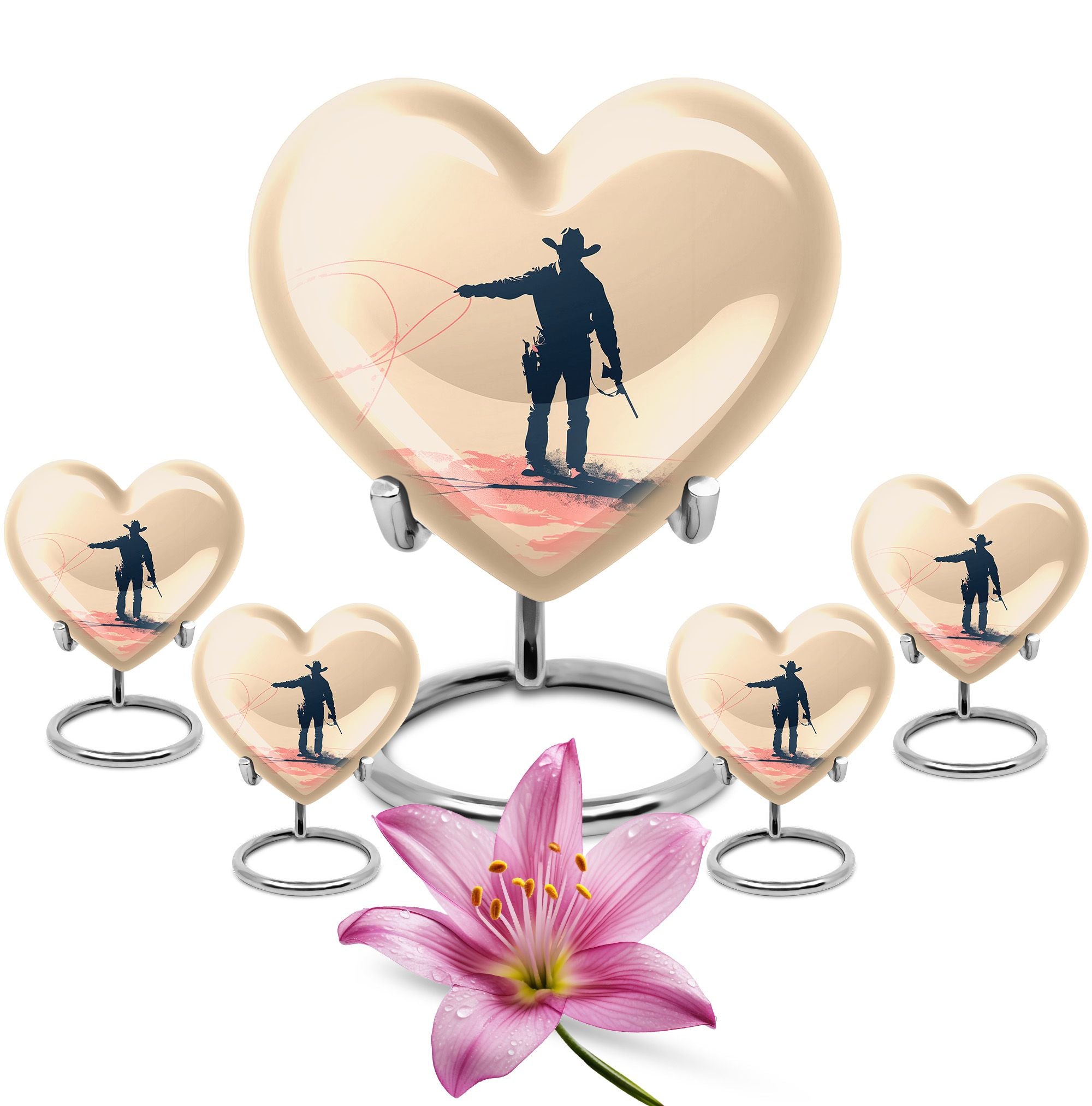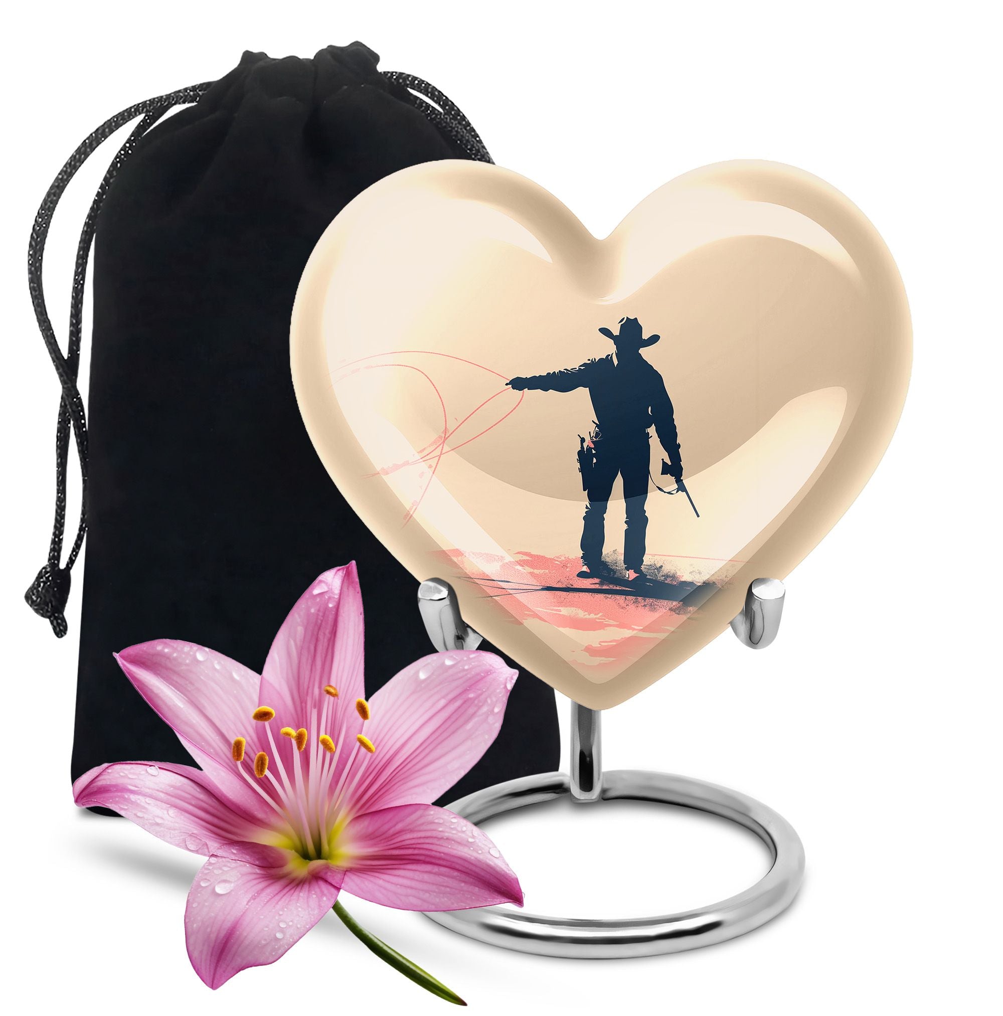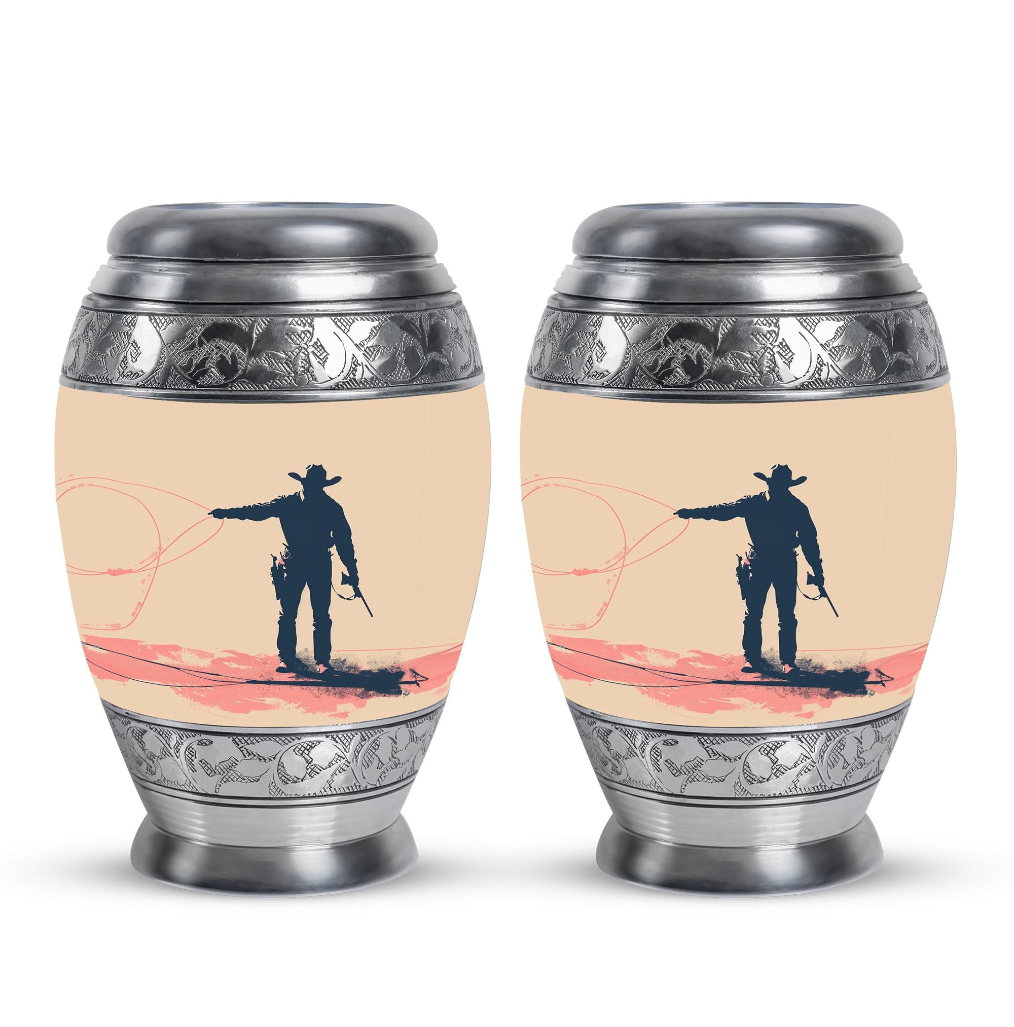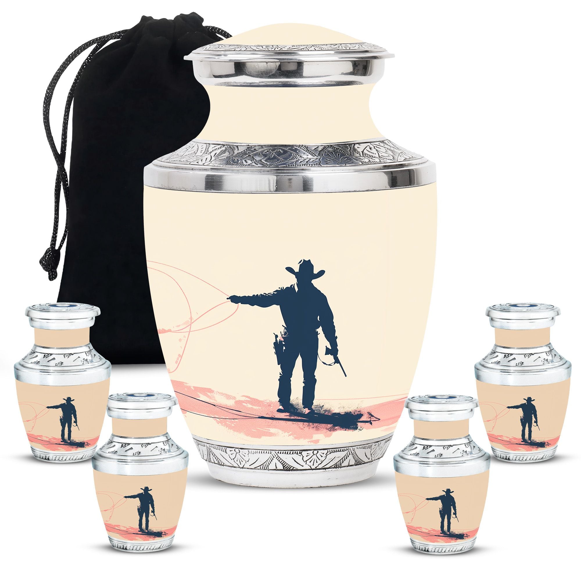 This small keepsake urn collection, with its cowboy sheriff art, symbolizes strength, honor, and enduring love—an unforgettable tribute to those who lived with bravery and integrity.