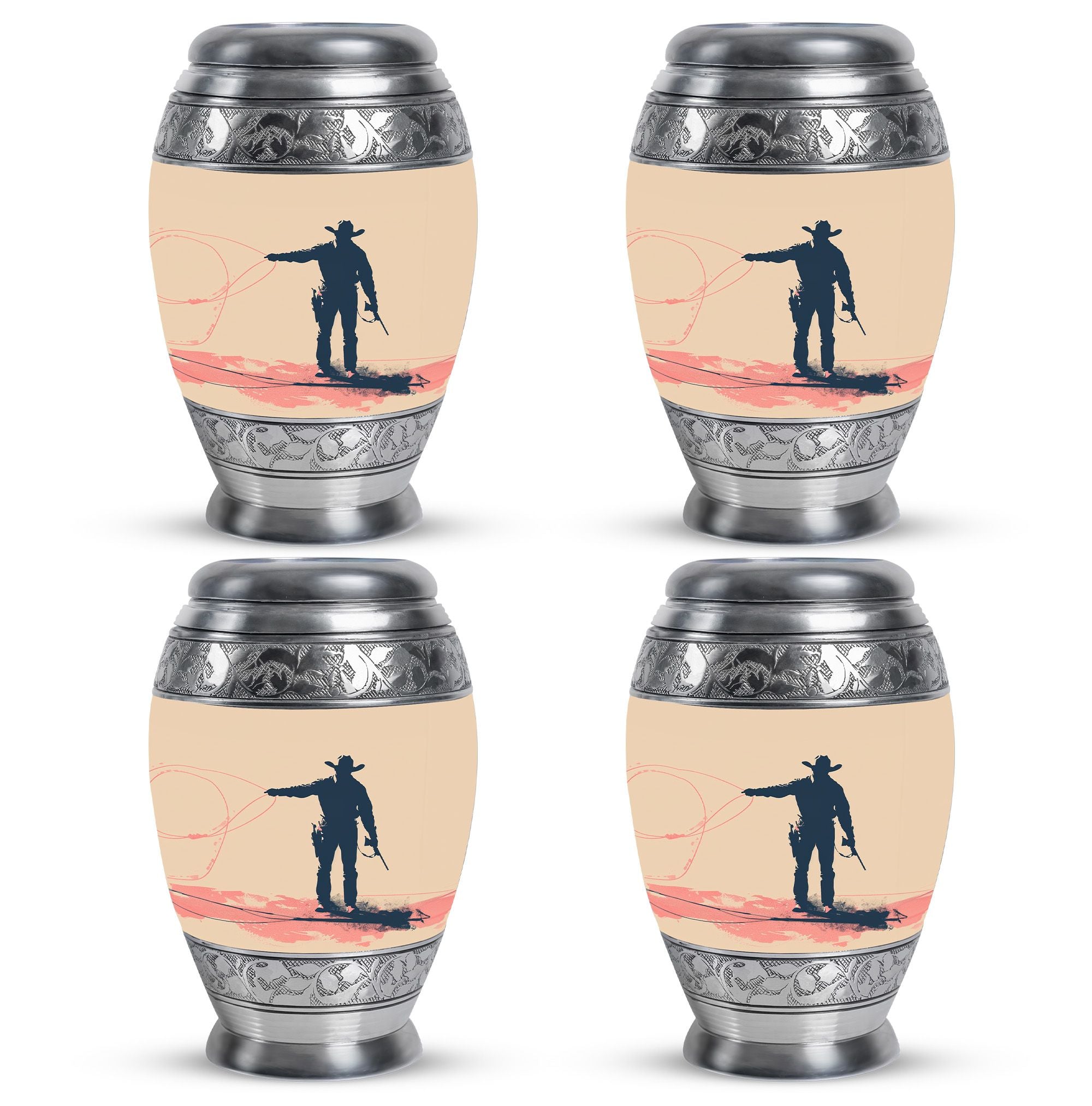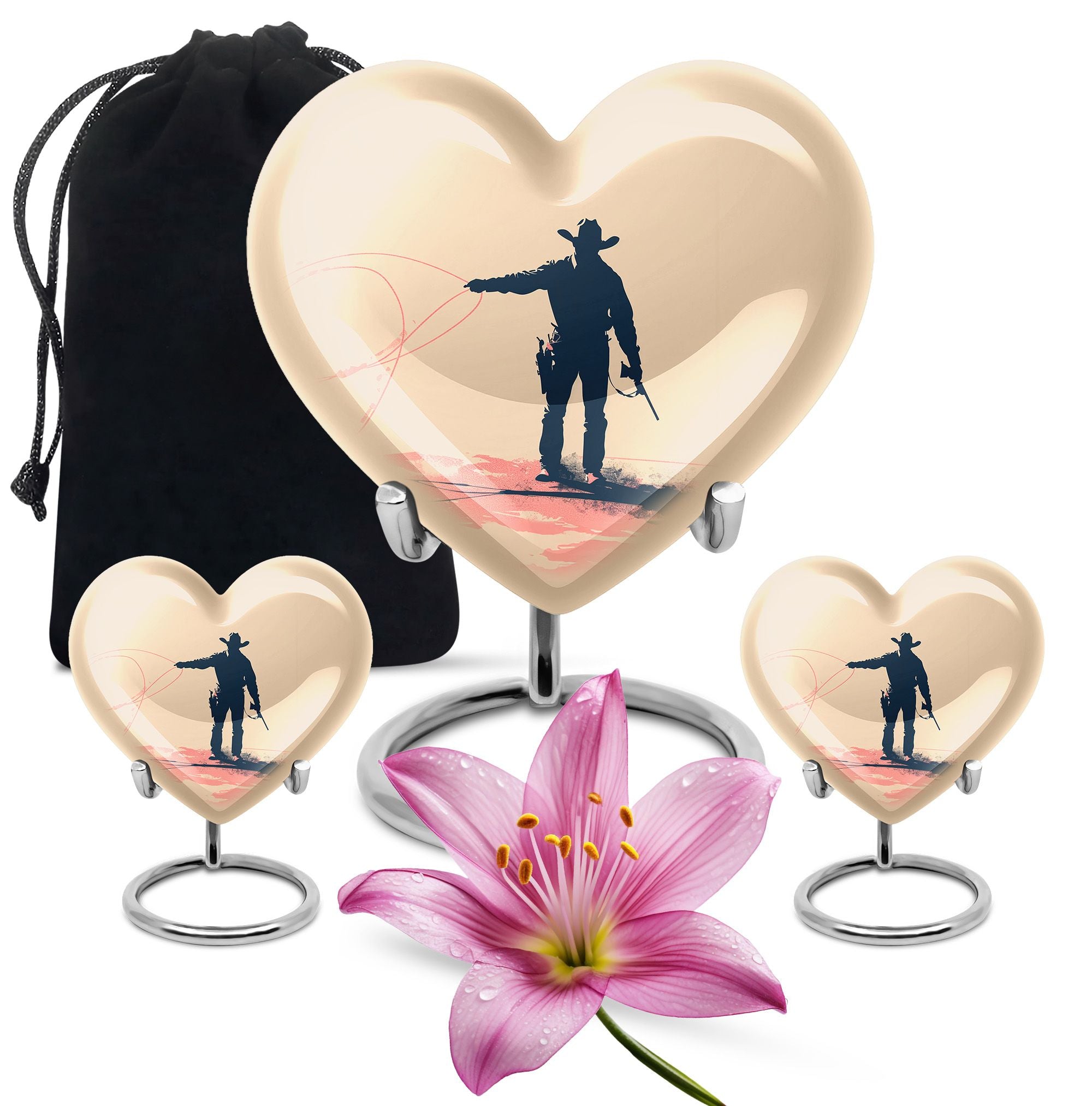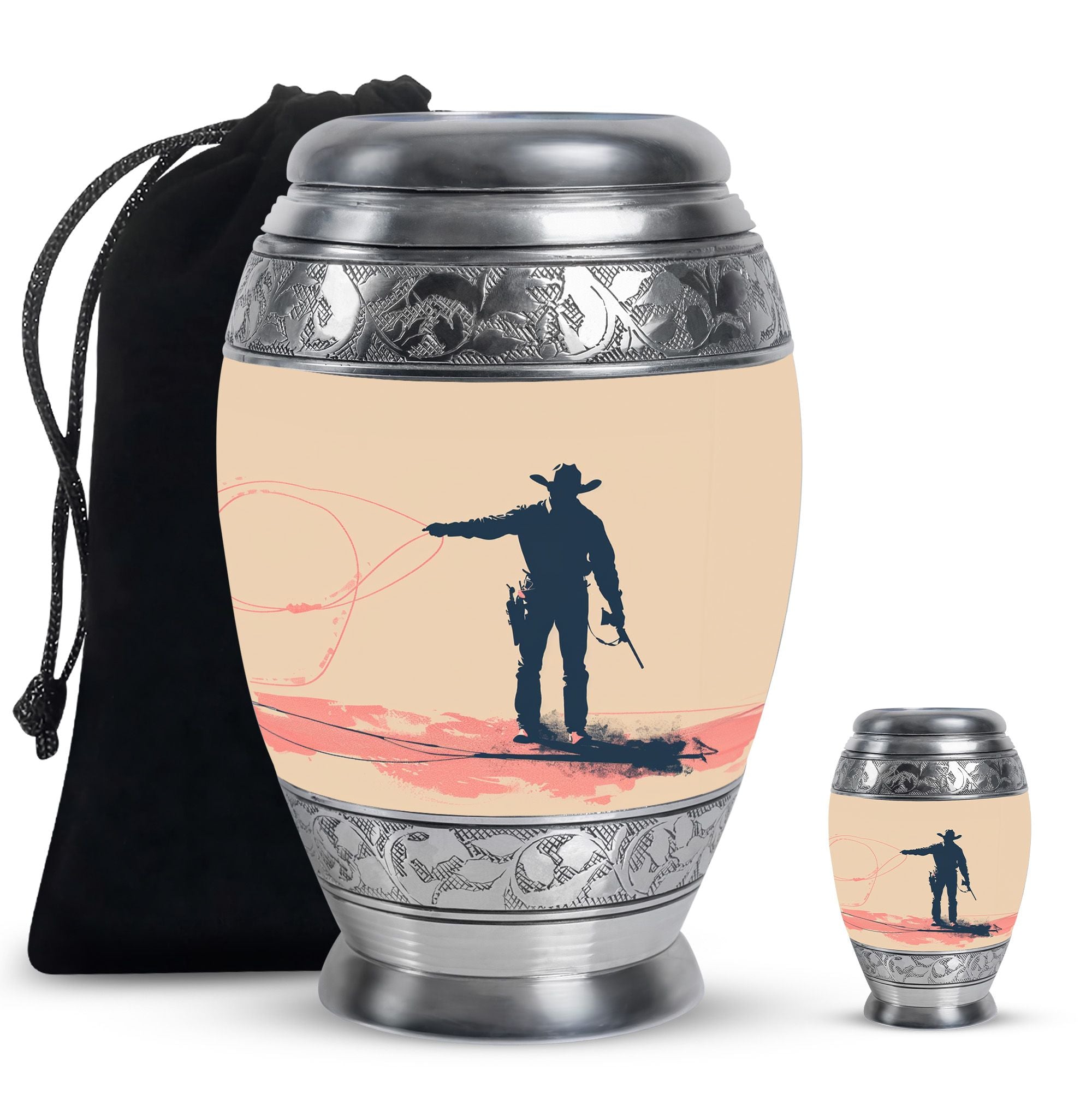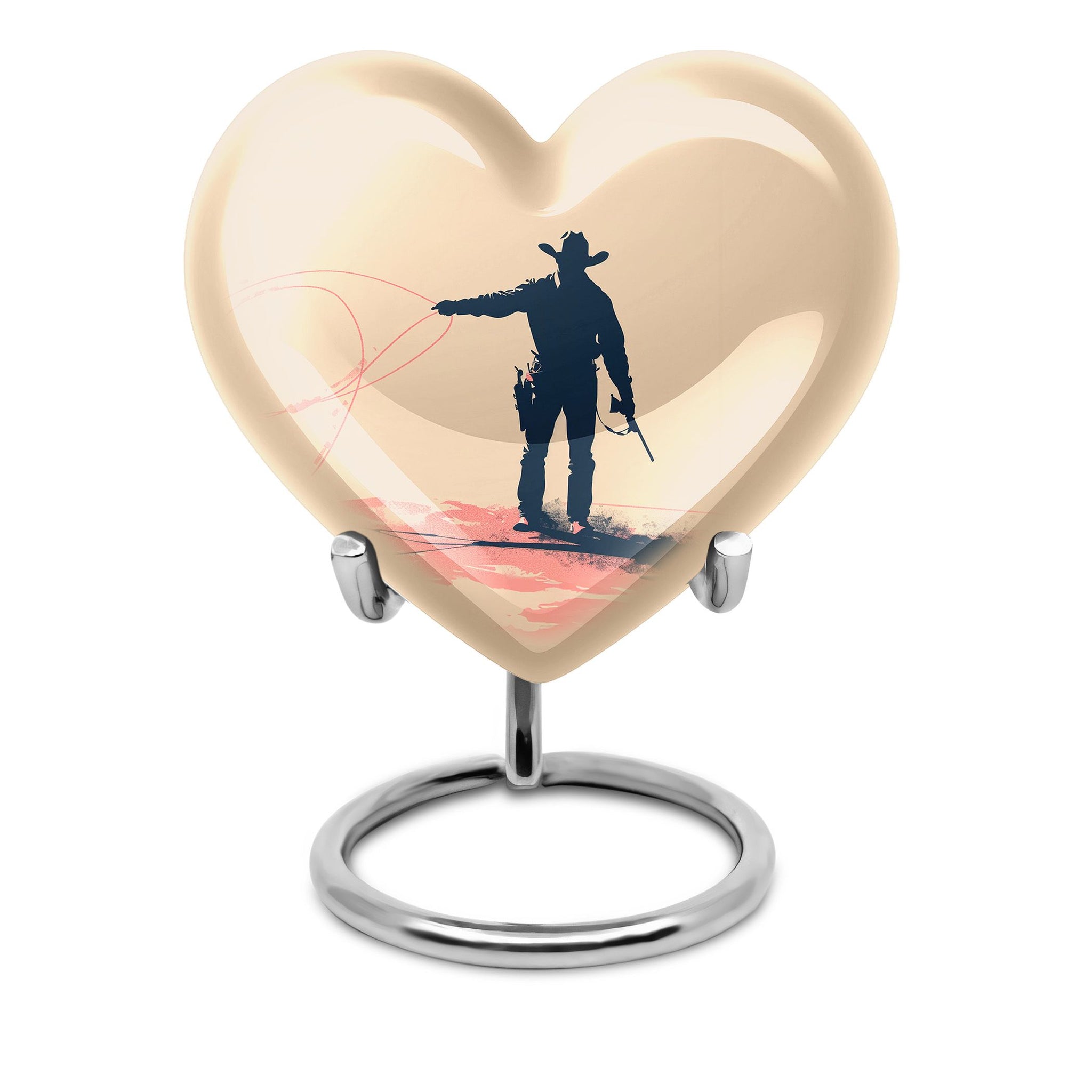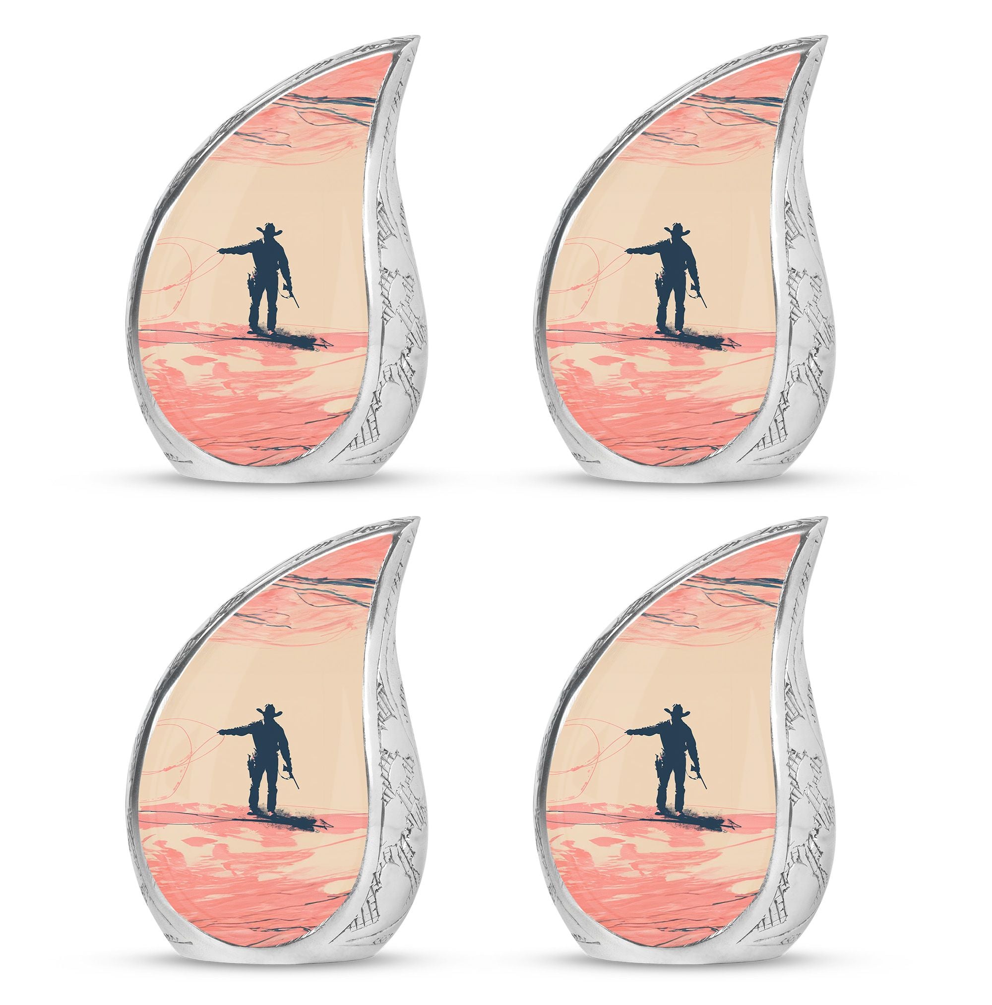 This small keepsake urn collection, with its cowboy sheriff art, symbolizes strength, honor, and enduring love—an unforgettable tribute to those who lived with bravery and integrity.