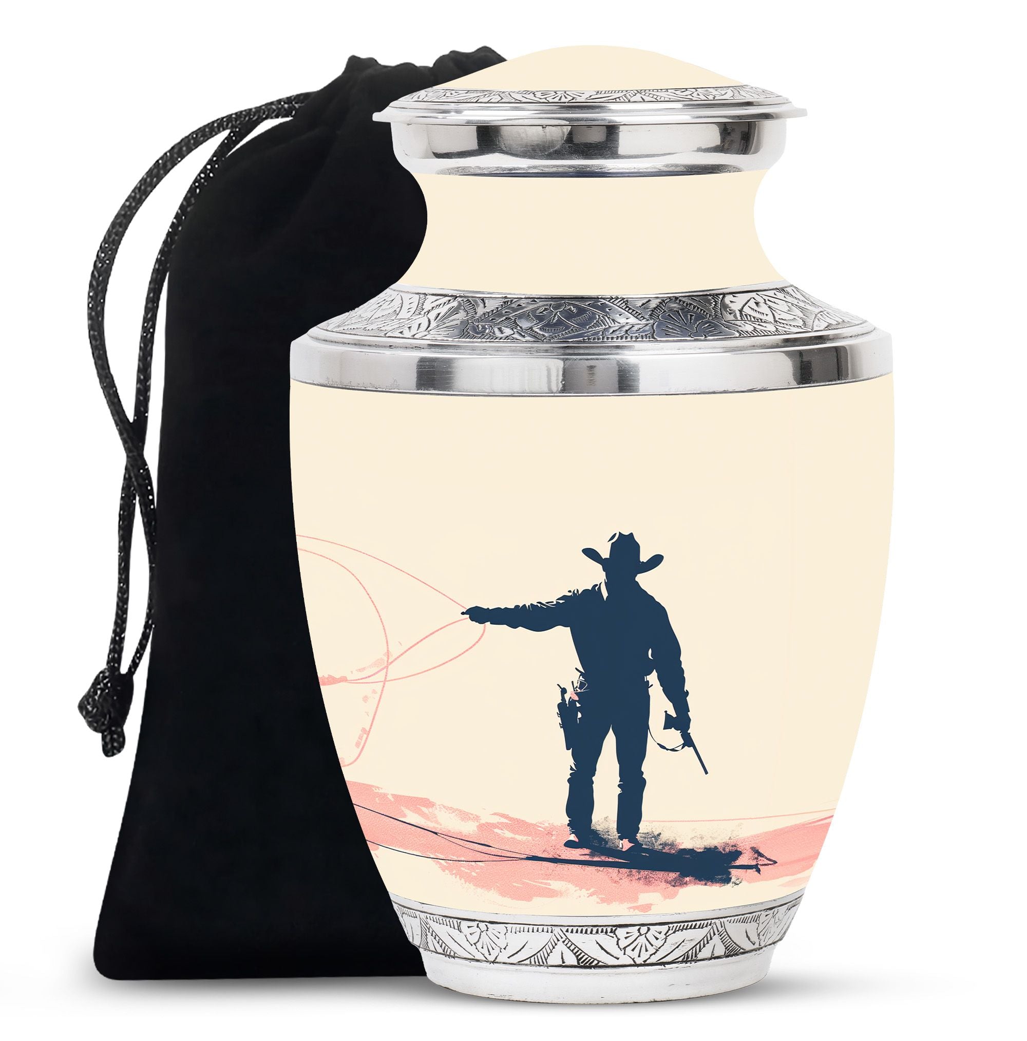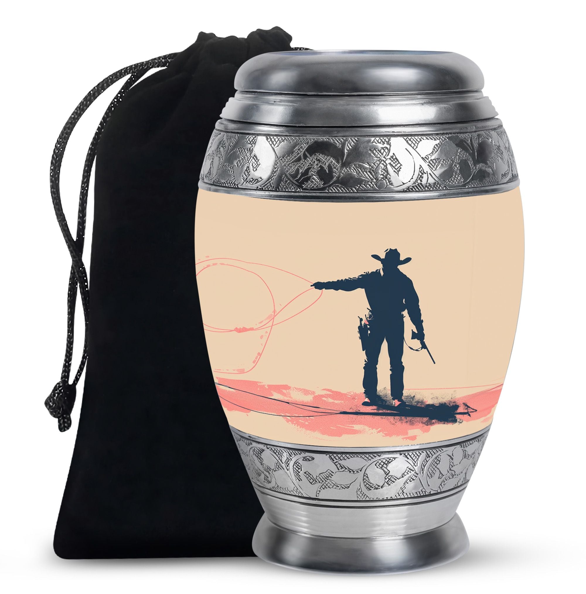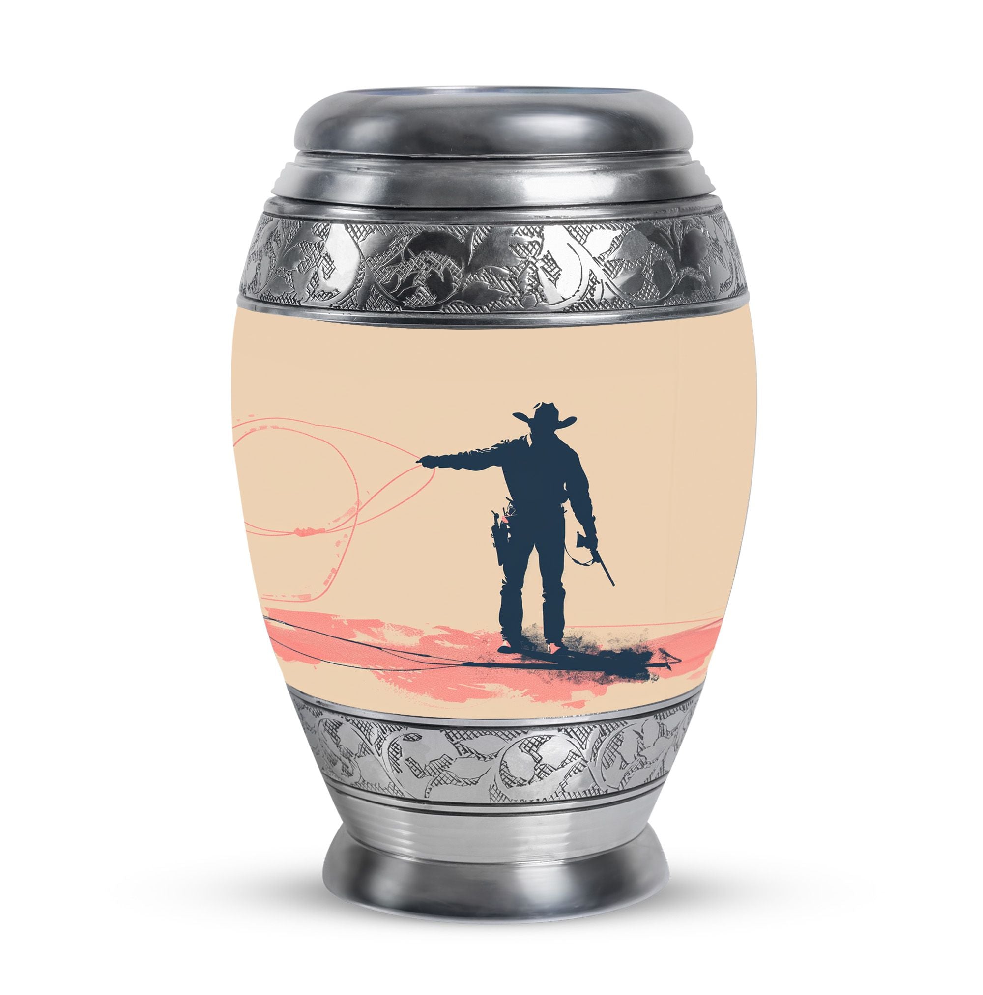 The Cowboy Cremation Adult Size Urns – Sheriff Art Memorial Ashes Urn for Humans is a striking tribute for those who carried a strong, adventurous spirit. With its detailed sheriff design, this urn honors courage, loyalty, and leadership, making it an ideal choice for preserving cherished memories with respect.