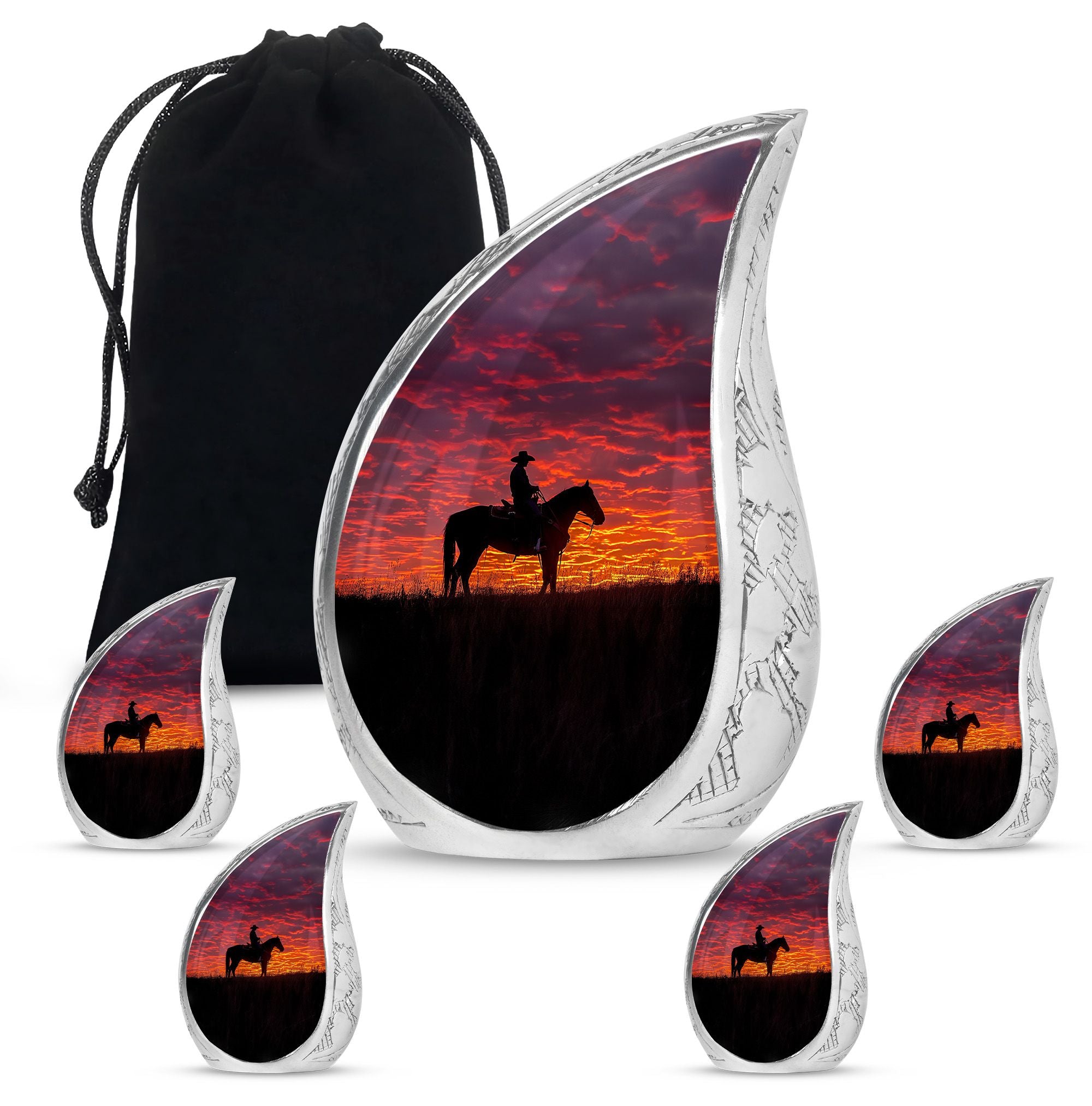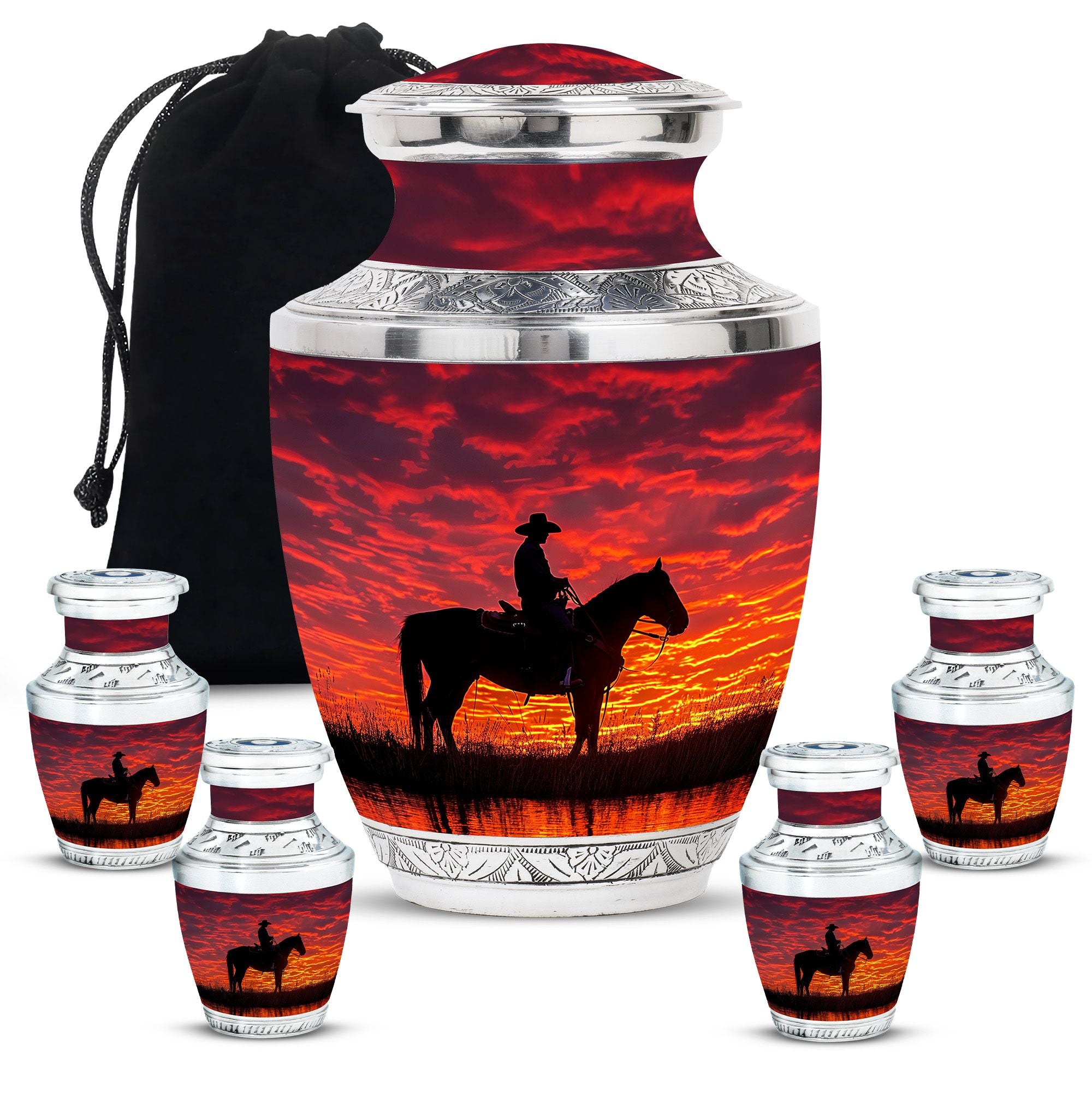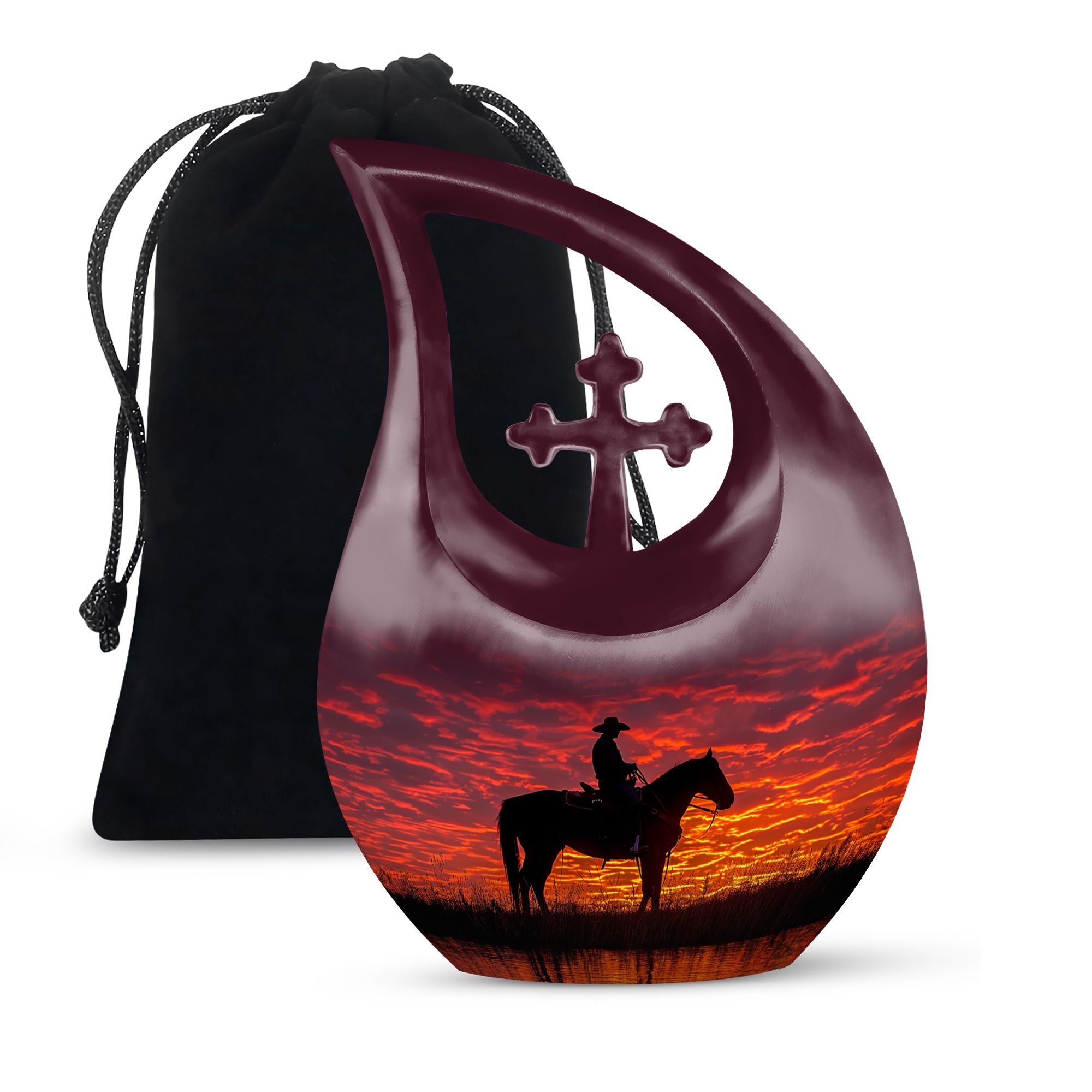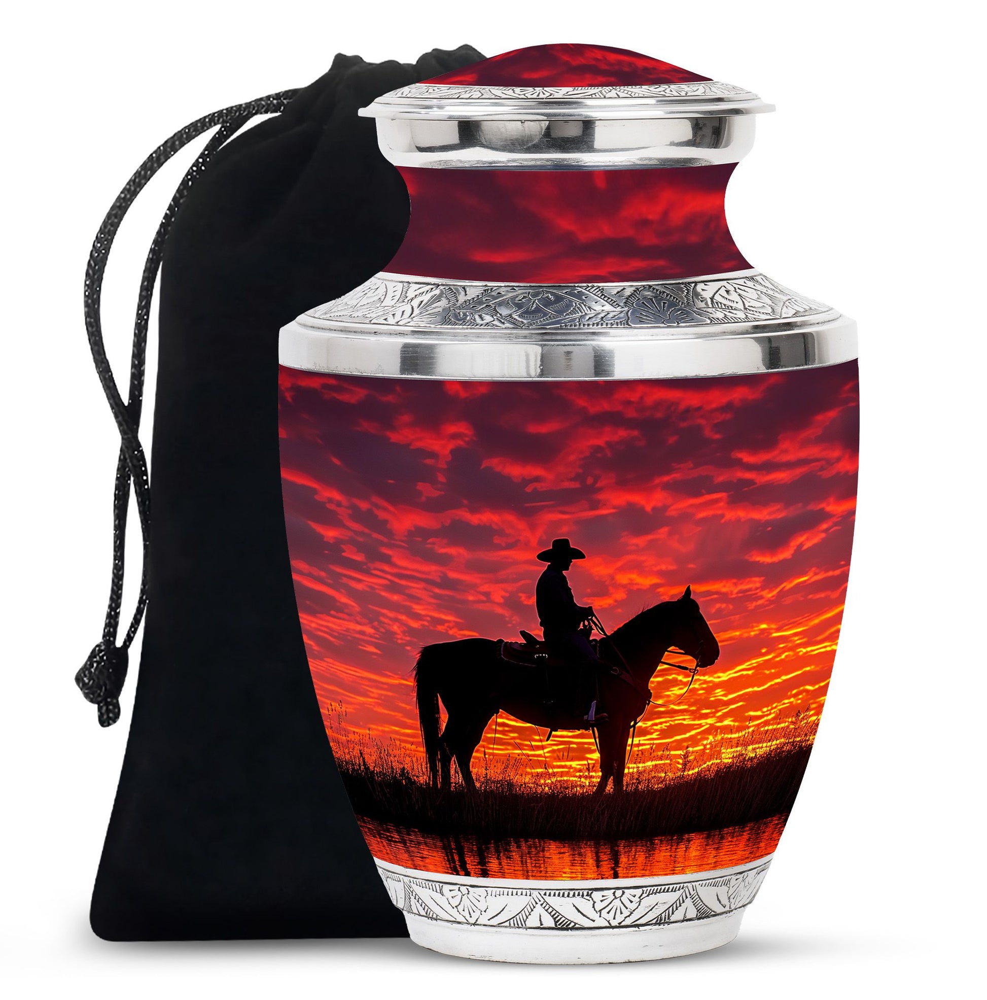 Every loved one leaves behind a story of strength, courage, and love that deserves to be remembered with dignity. Our Cowboy cremation beautiful urns for man – sunset funeral adult urn – is a meaningful way to honor that story. Whether chosen as a funeral ashes urn, adult funeral urn, or unique urns for ashes, it offers families a lasting tribute that reflects independence and eternal love.