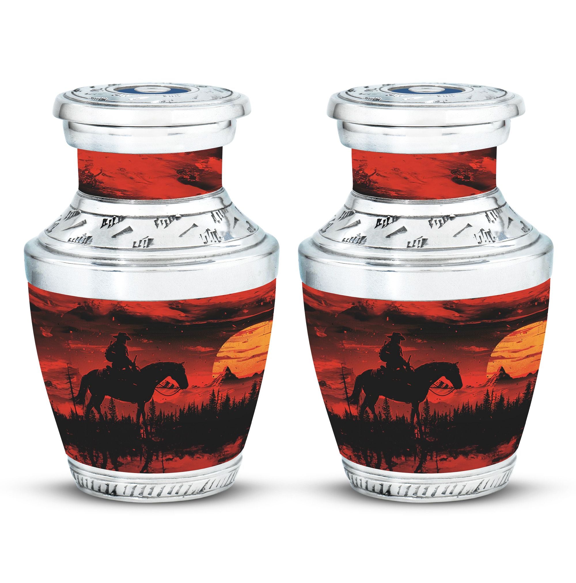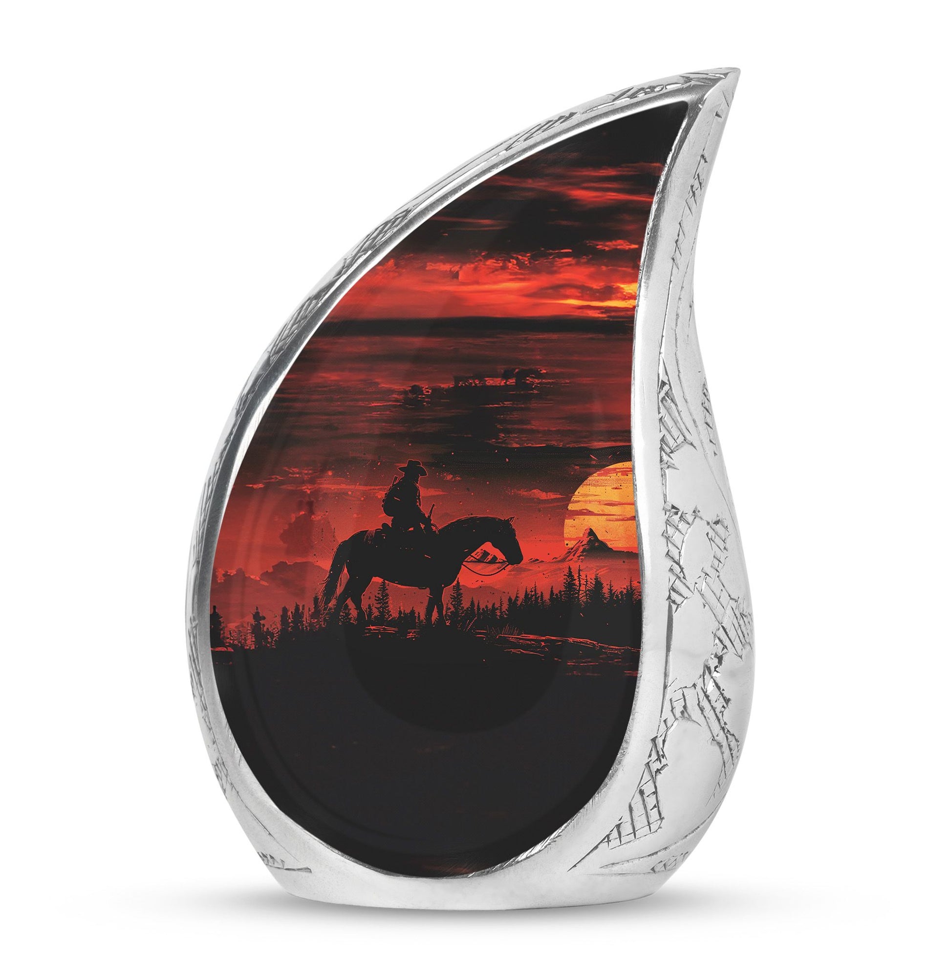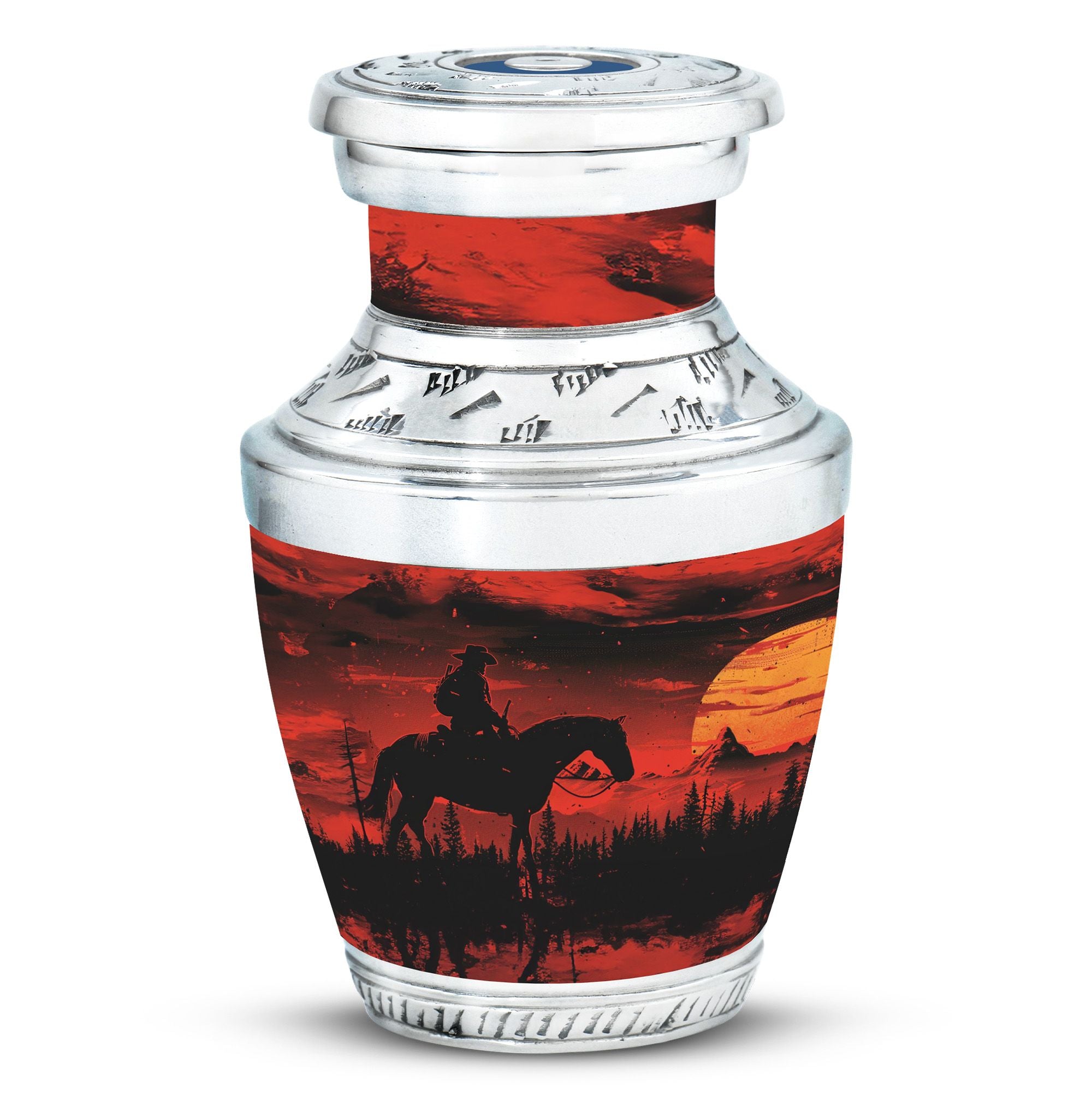 The cowboy design represents independence, courage, and an enduring legacy—qualities that remain forever in the hearts of those left behind. This small memorial urn offers both strength and comfort, making it a timeless tribute for generations.