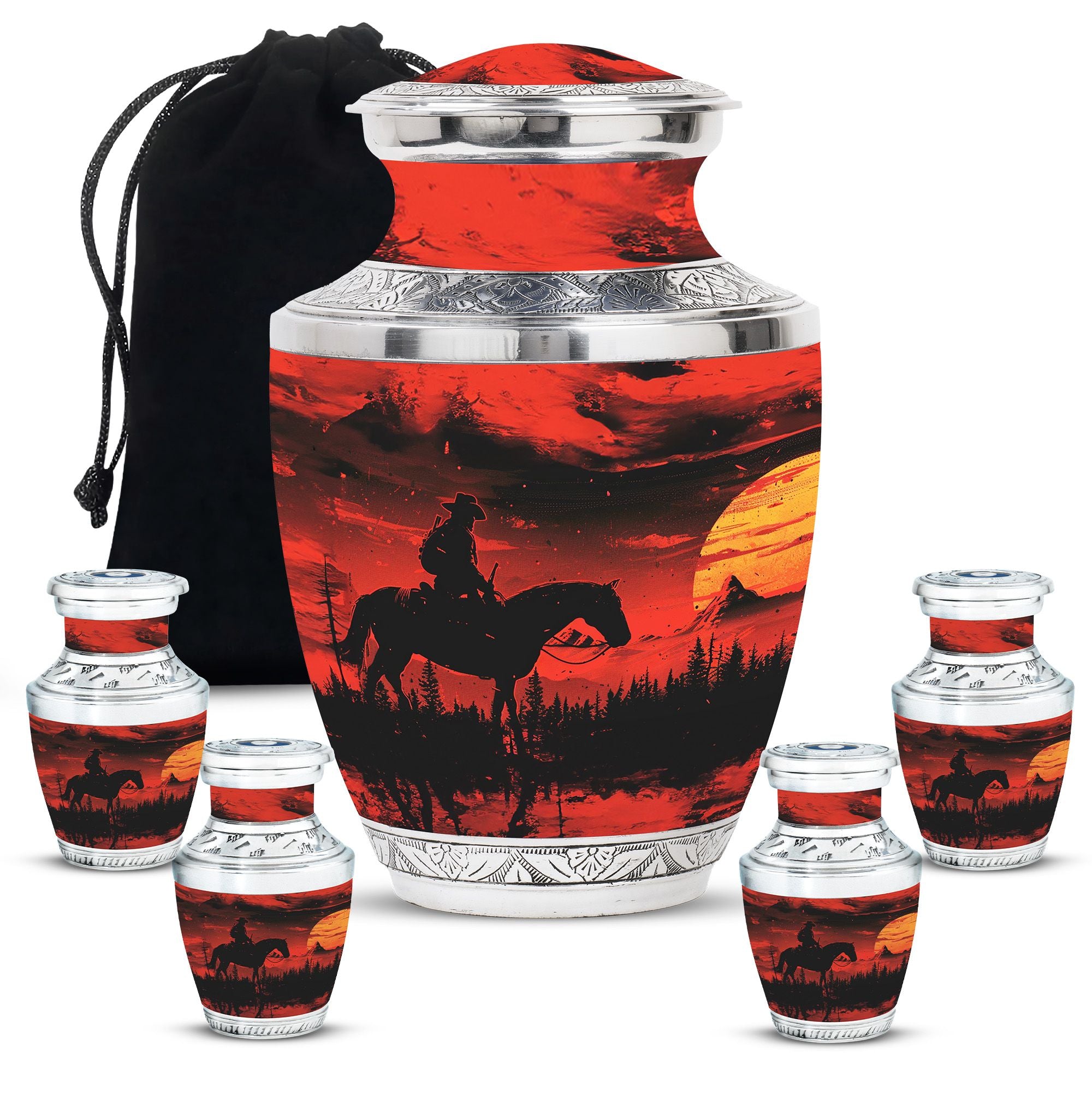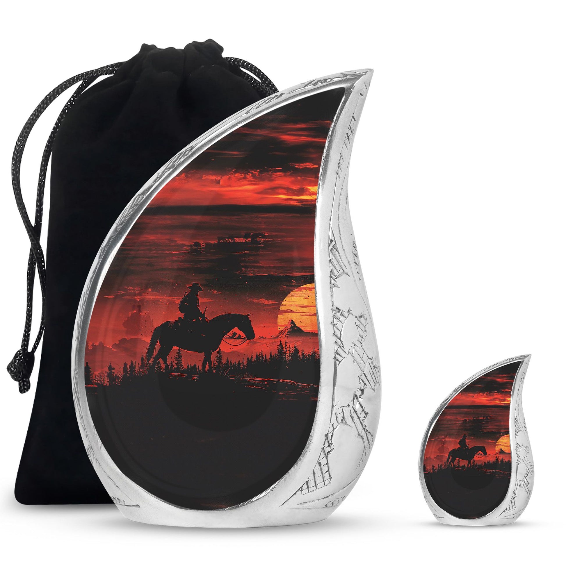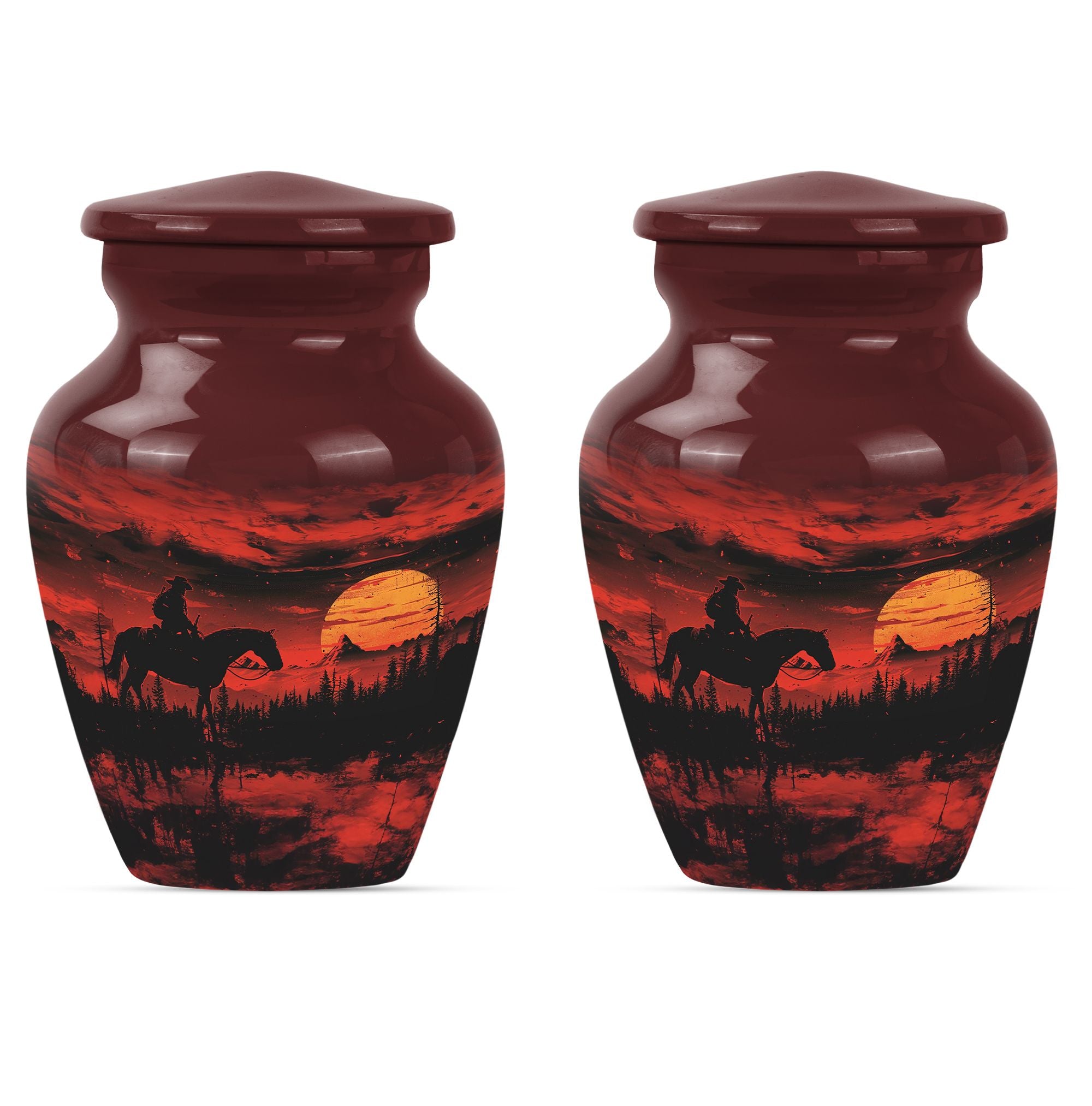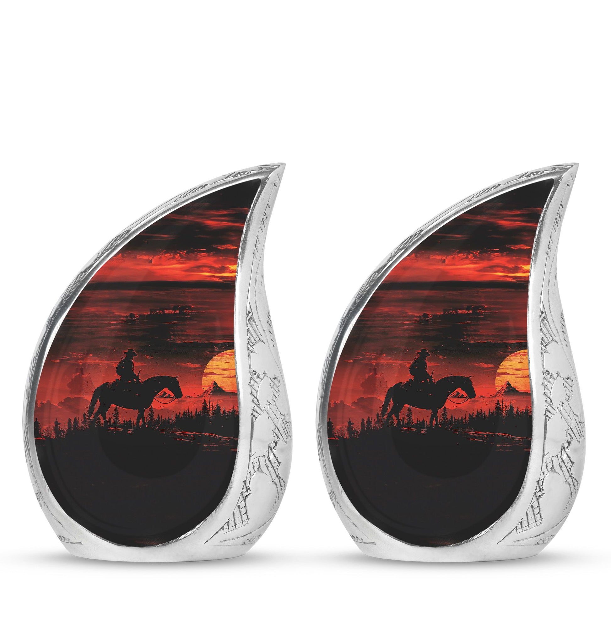 The cowboy design represents independence, courage, and an enduring legacy—qualities that remain forever in the hearts of those left behind. This small memorial urn offers both strength and comfort, making it a timeless tribute for generations.