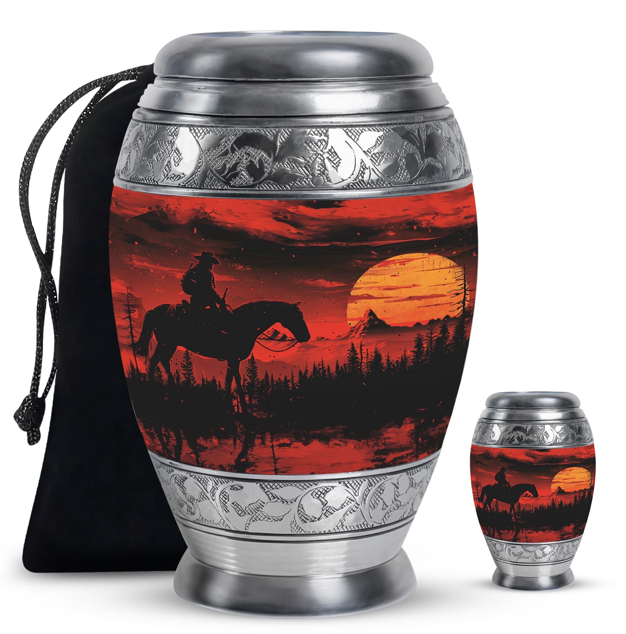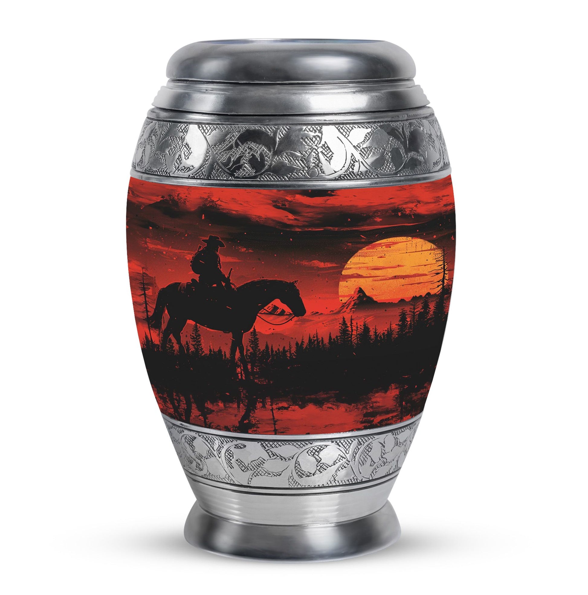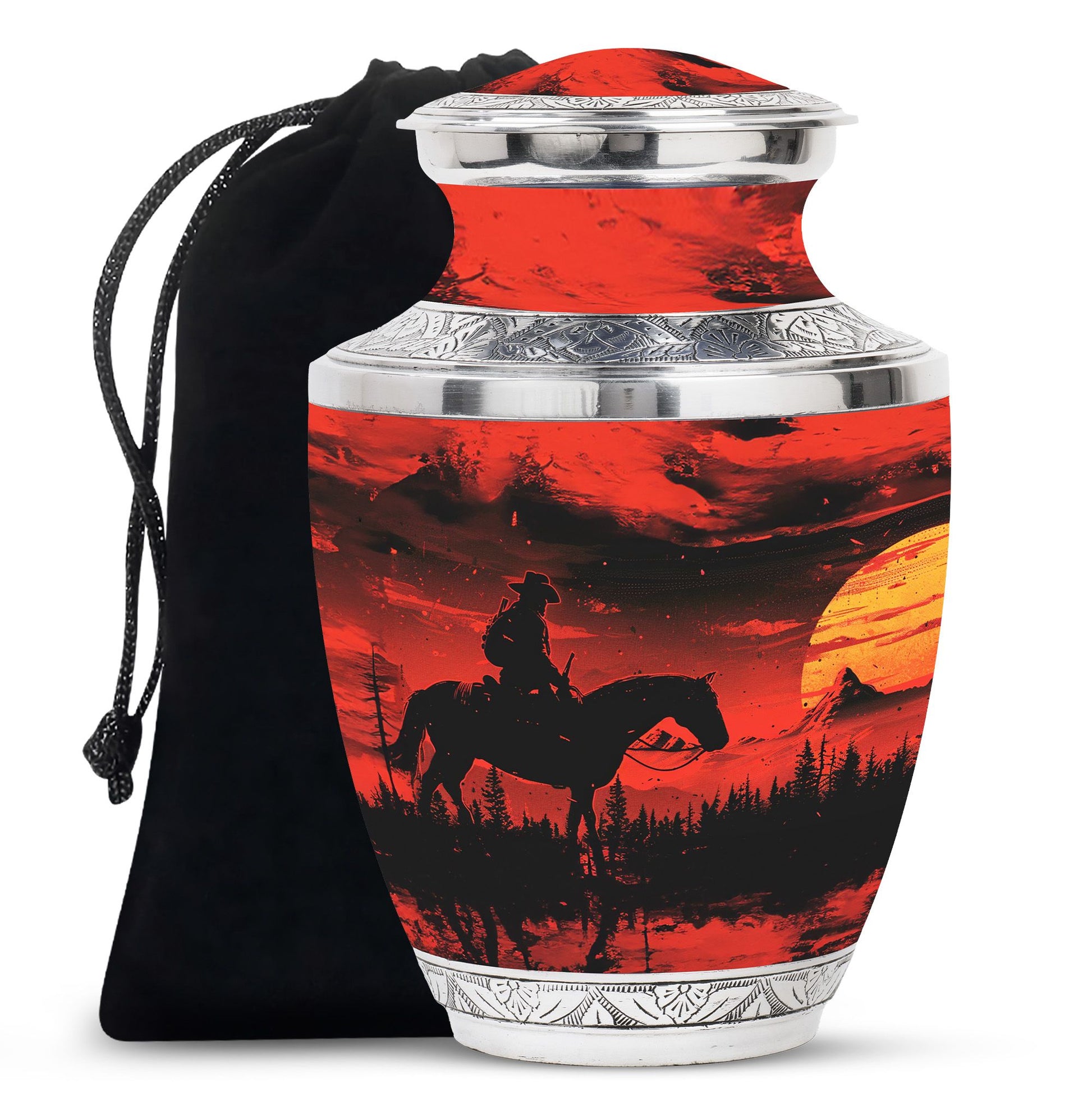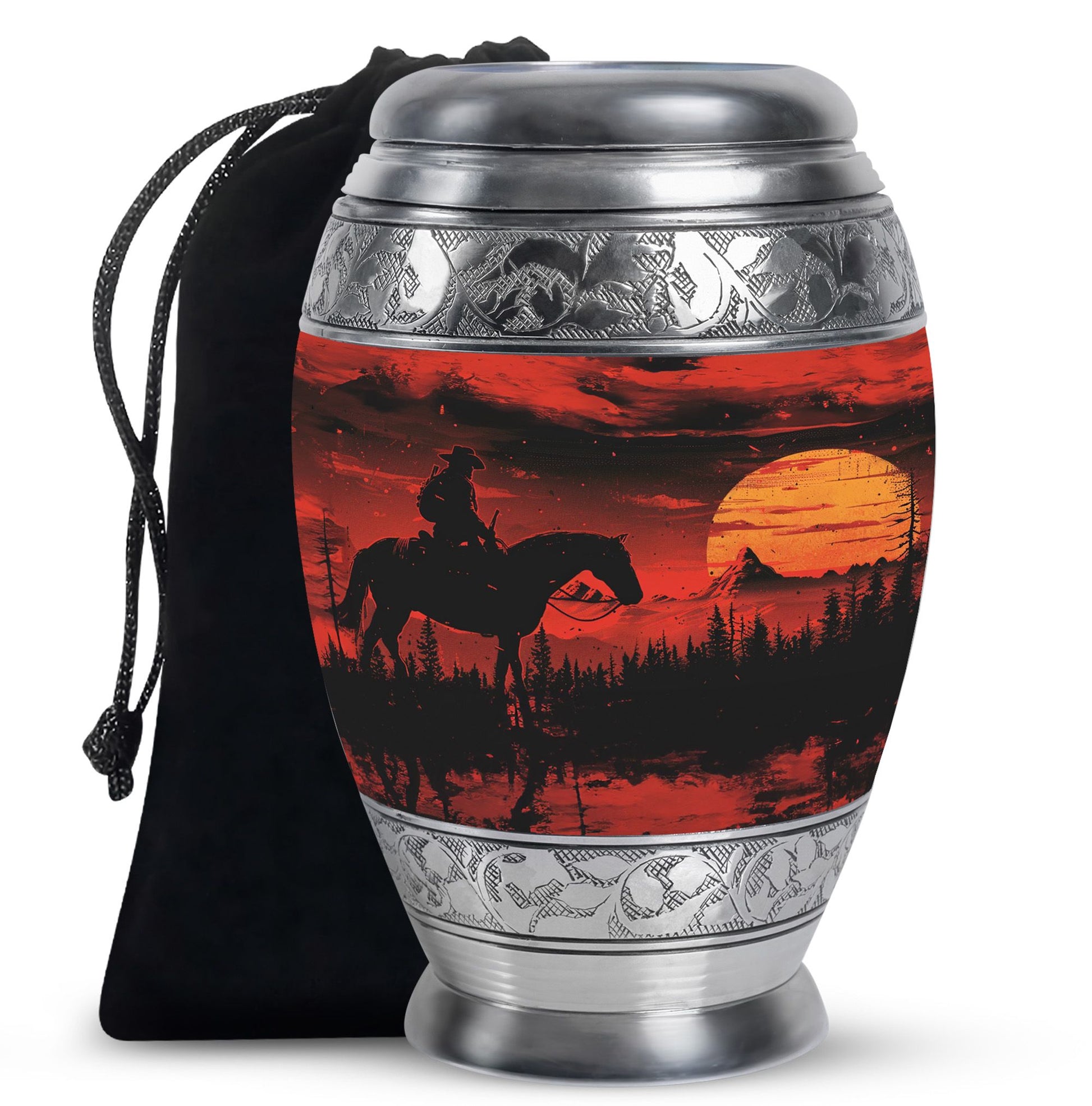 Crafted from high-quality aluminum, this urn features a rustic cowboy design that reflects resilience and spirit. Its compact size makes it suitable as urns for ashes adult male small or as cremation urns for human ashes adult female. The secure screw-top lid ensures ashes are safely contained, while the detailed finish allows it to serve both as a functional urn and a touching piece of memorial décor. Families also choose it as human urns for ashes adult male or urn for adult female ashes, making it a versatile option for honoring loved ones.