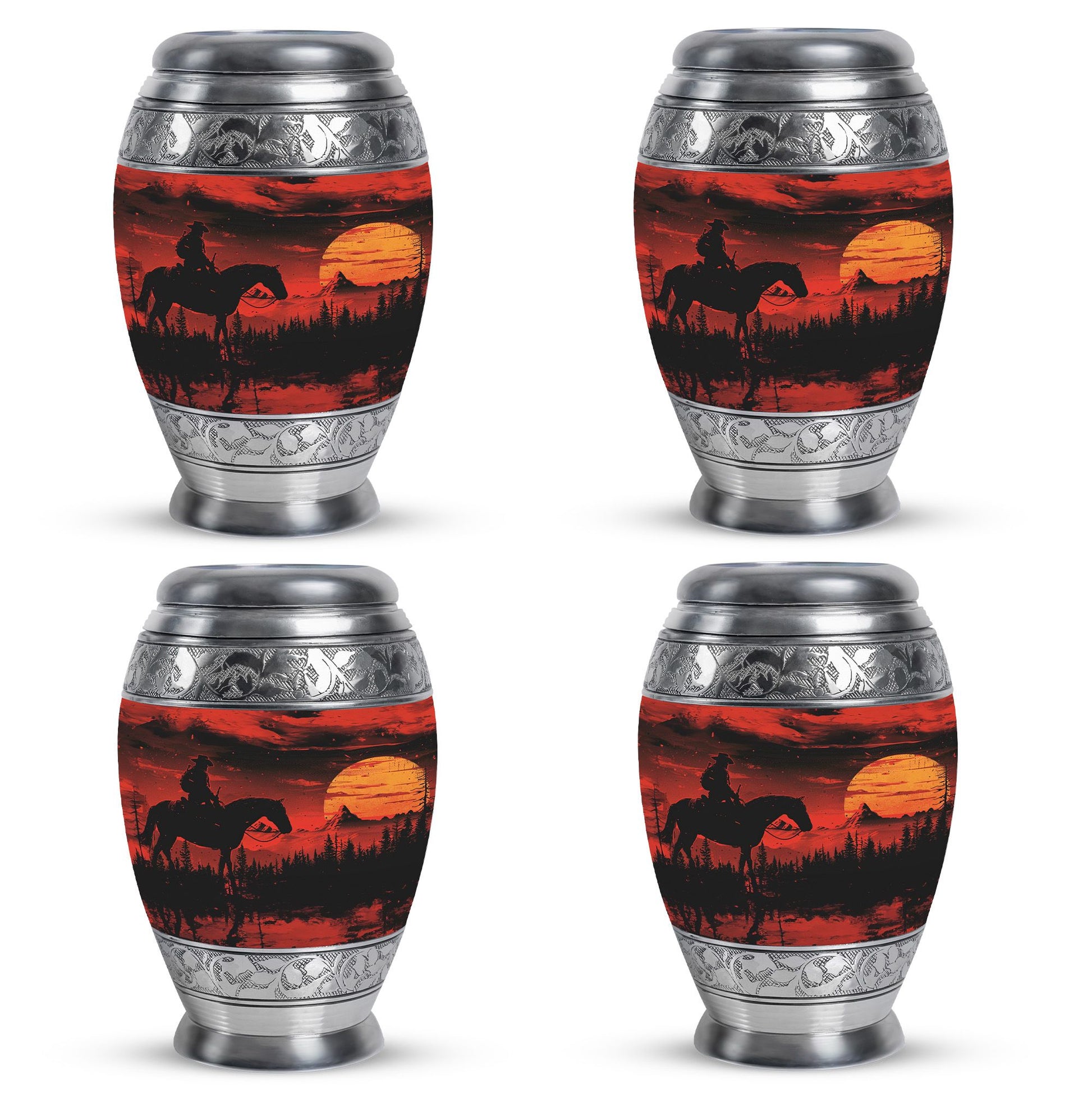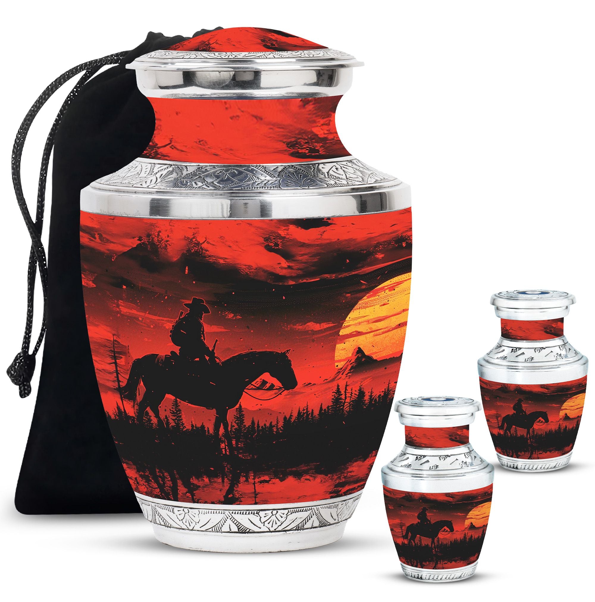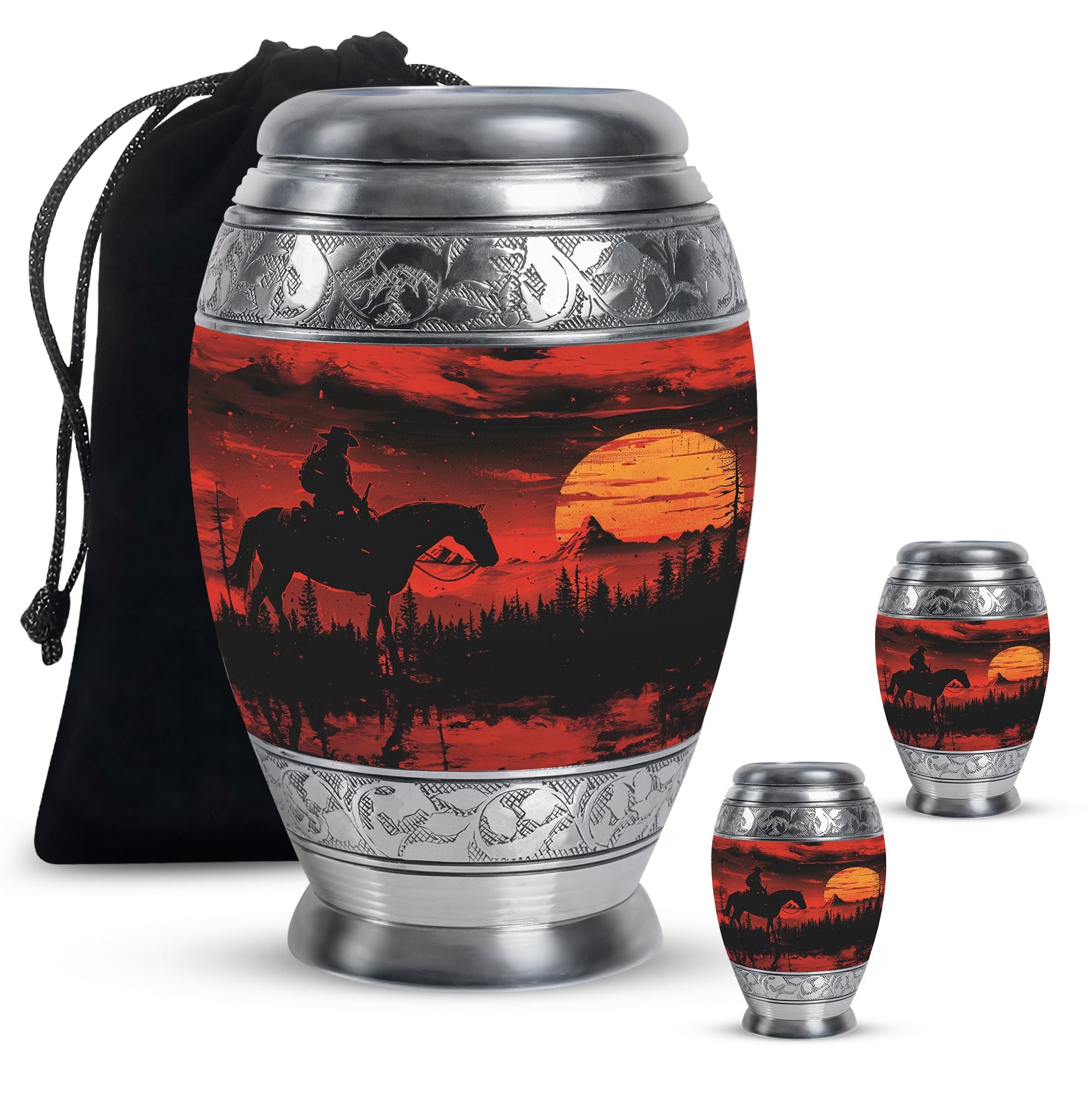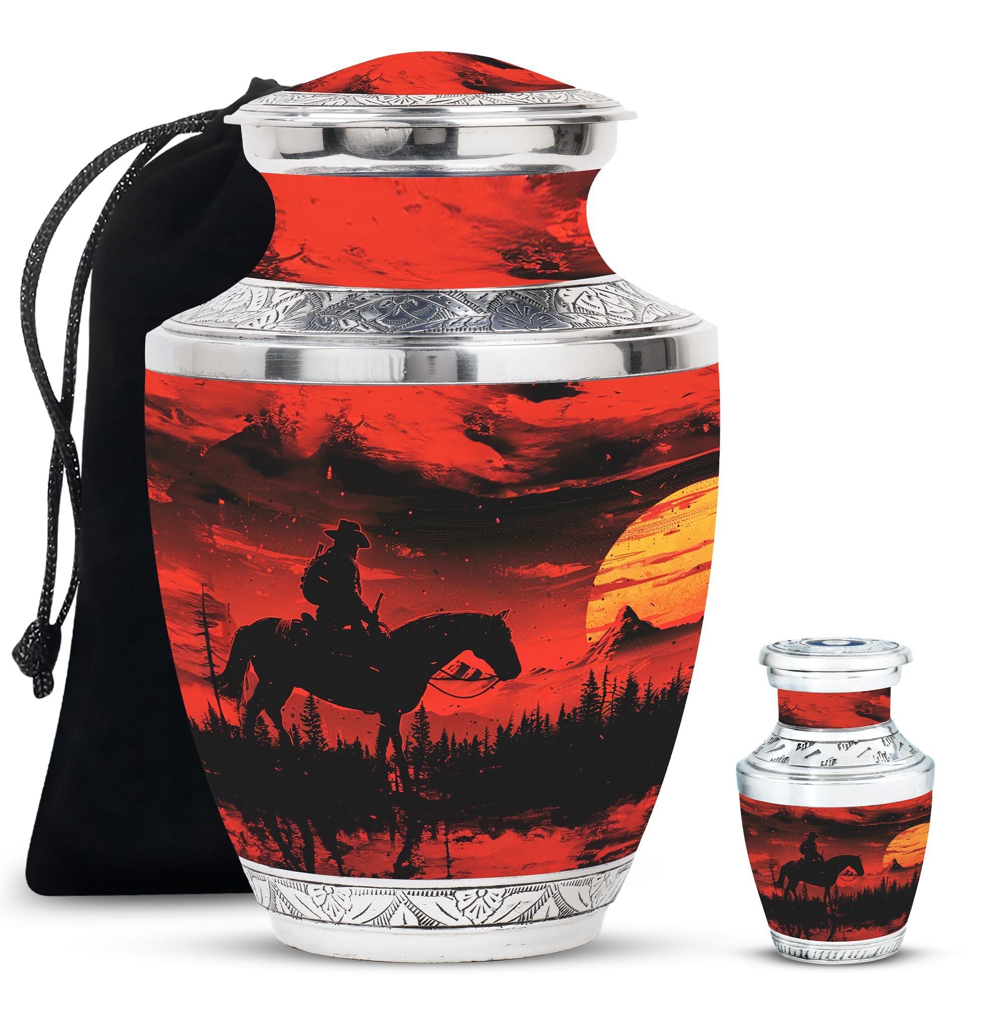 Crafted from high-quality aluminum, this urn features a rustic cowboy design that reflects resilience and spirit. Its compact size makes it suitable as urns for ashes adult male small or as cremation urns for human ashes adult female. The secure screw-top lid ensures ashes are safely contained, while the detailed finish allows it to serve both as a functional urn and a touching piece of memorial décor. Families also choose it as human urns for ashes adult male or urn for adult female ashes, making it a versatile option for honoring loved ones.