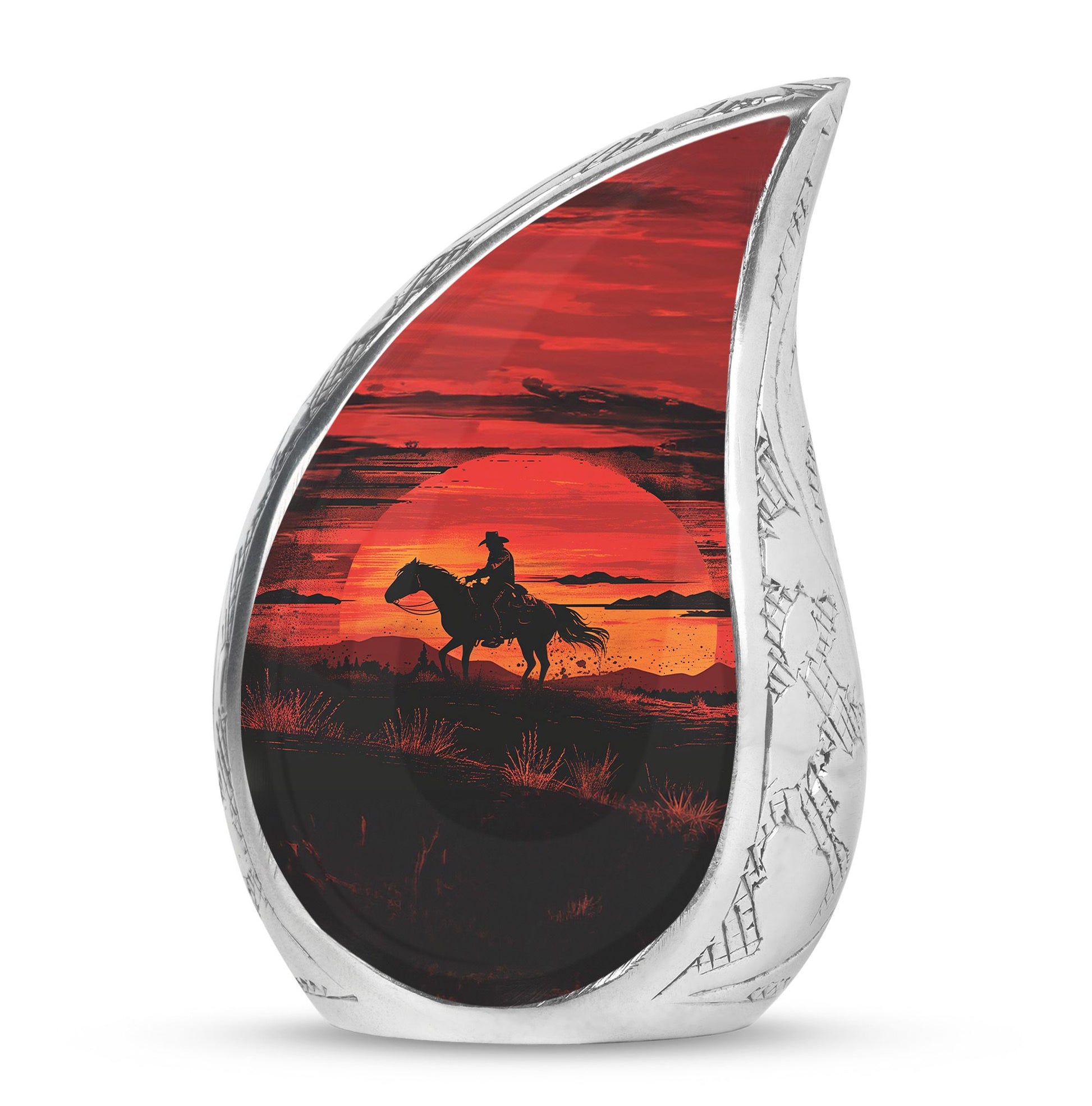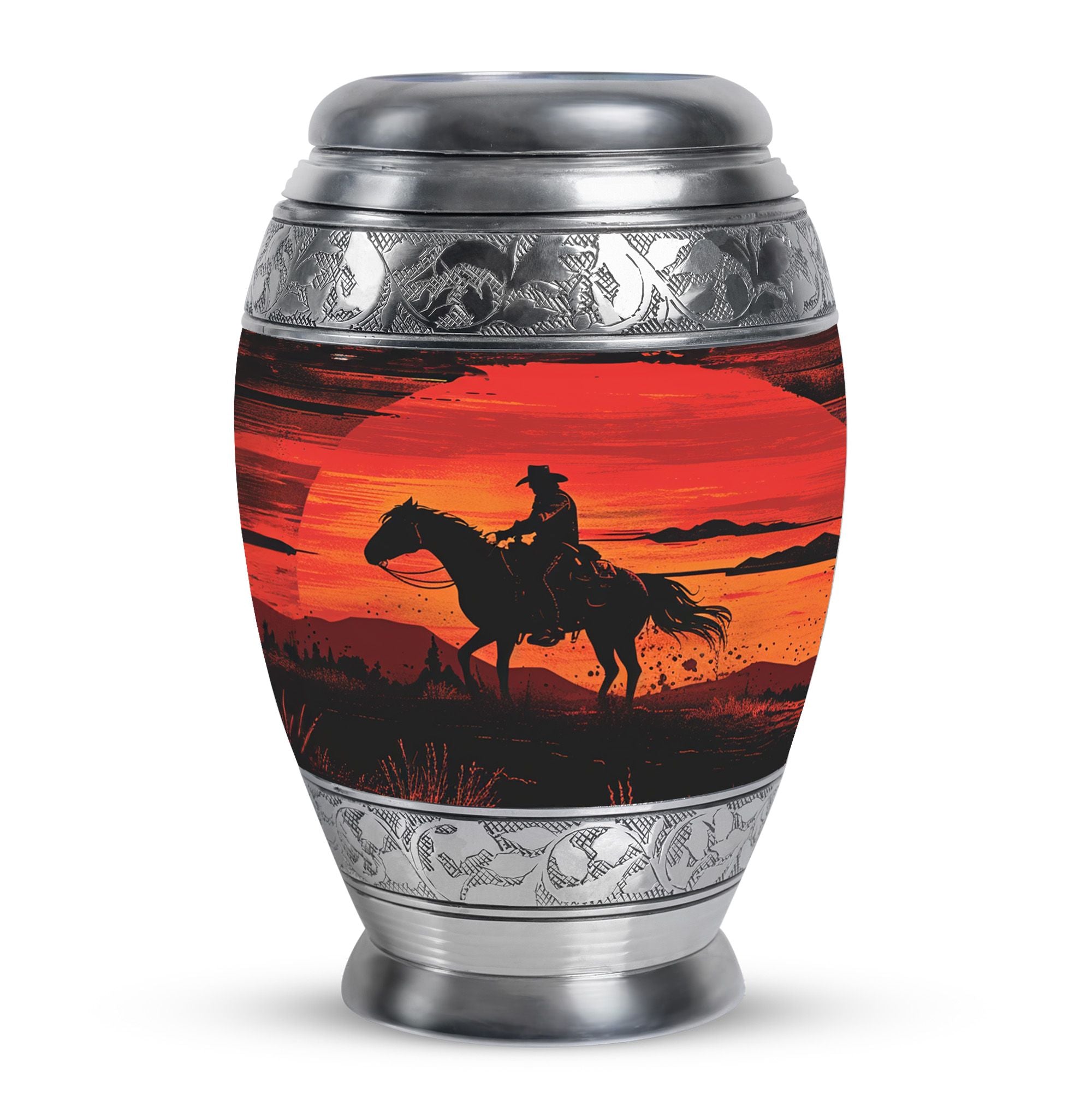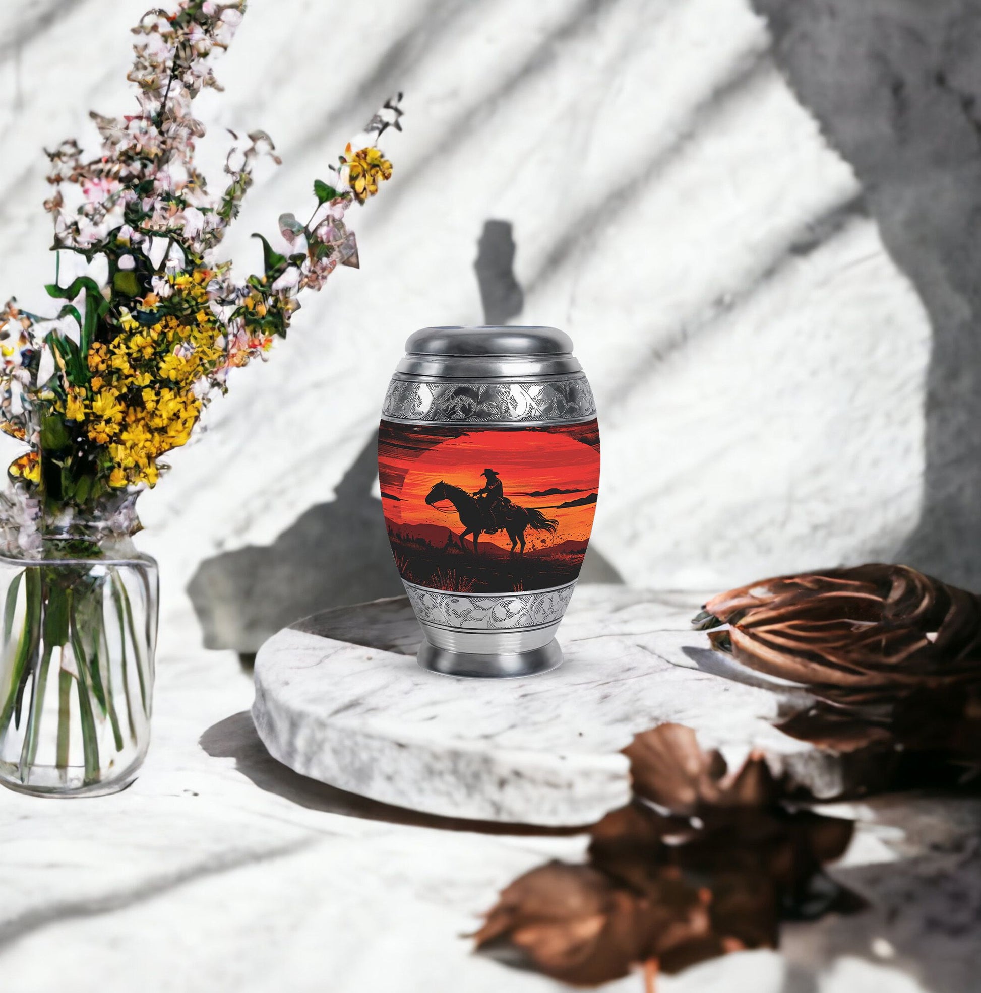 A cowboy sunset urn reflects independence, love, and an eternal connection to the land and sky. With this memorial, families can find comfort knowing their loved one rests in a vessel as unique and enduring as their legacy.