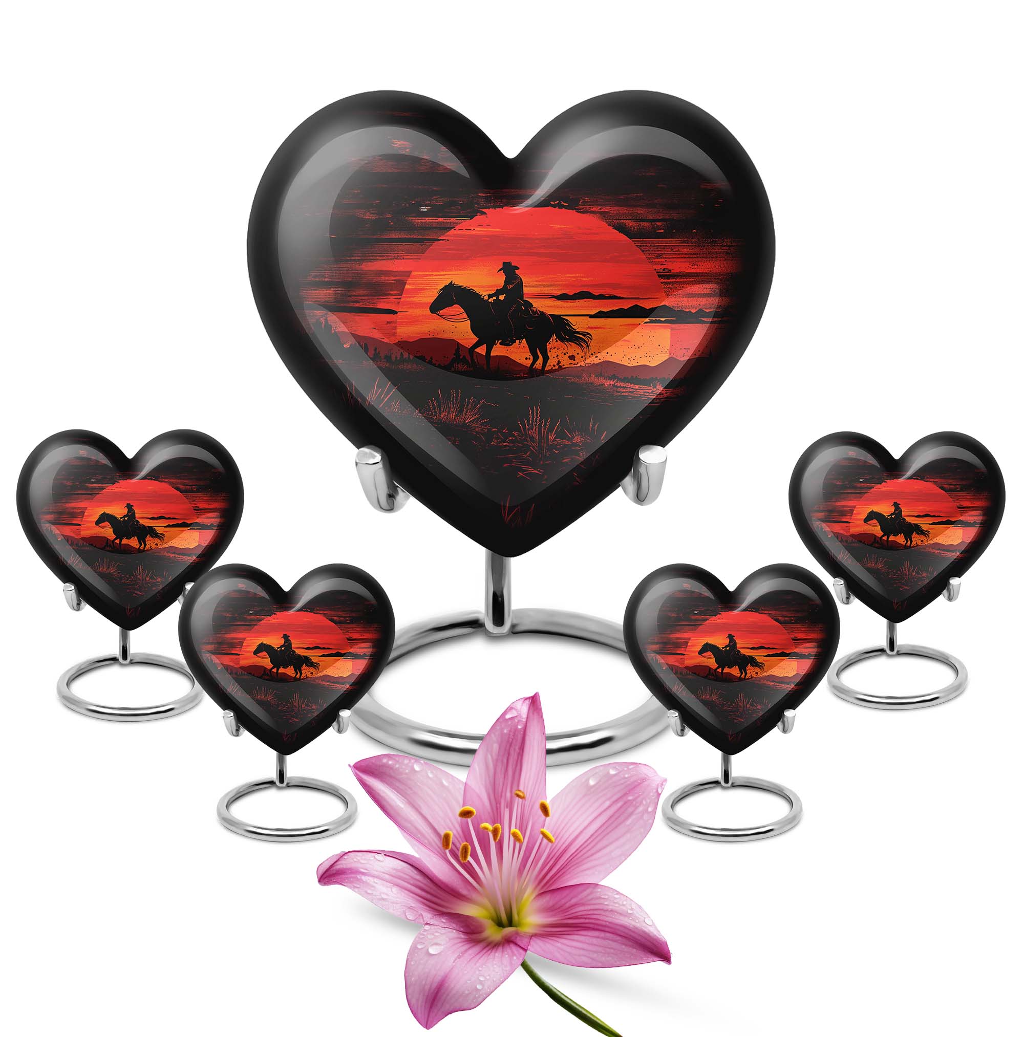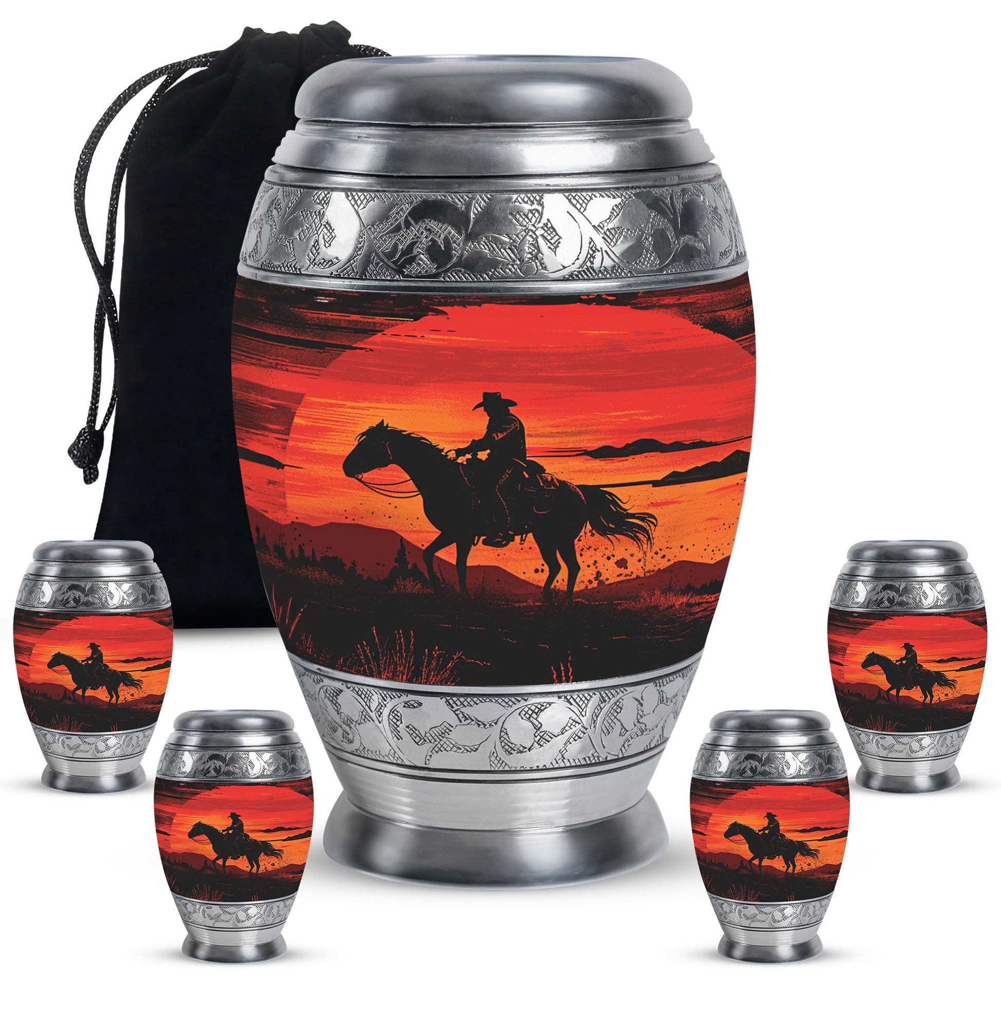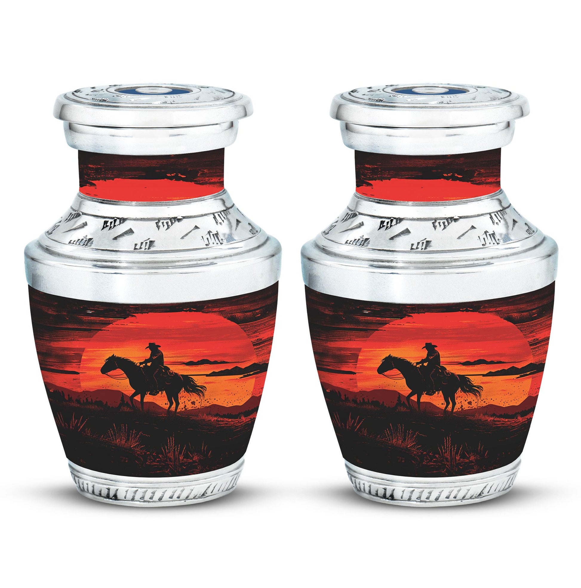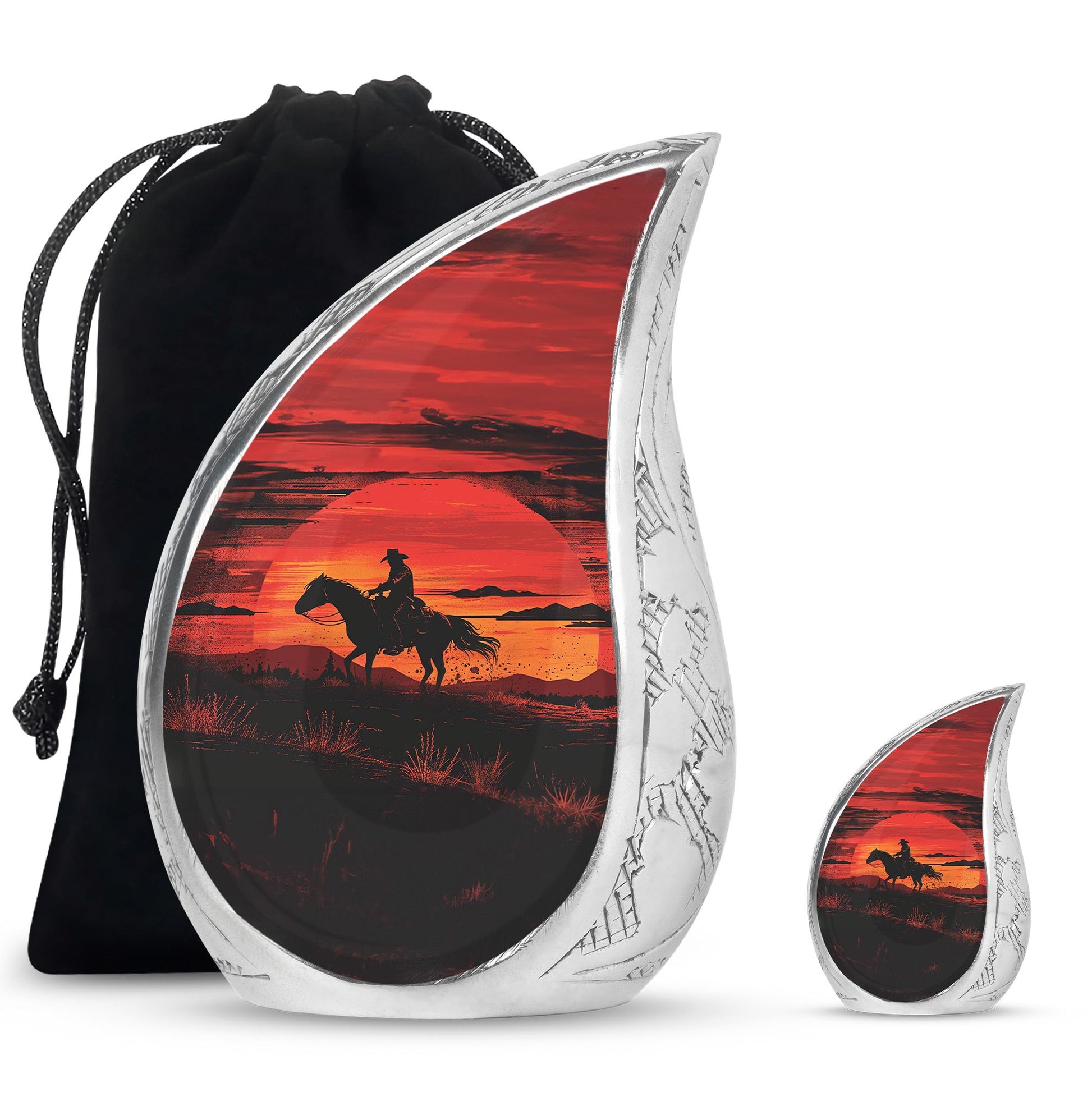 A life lived with courage, strength, and independence deserves a tribute that reflects those values. Our Cowboy cremation urns for ashes for man with a sunset keepsake combo is designed to honor cherished memories with dignity. Whether chosen as a large urn for ashes adult male, large urn for ashes for women, or a family memorial, this set provides both a full-size urn and a matching keepsake to share among loved ones.