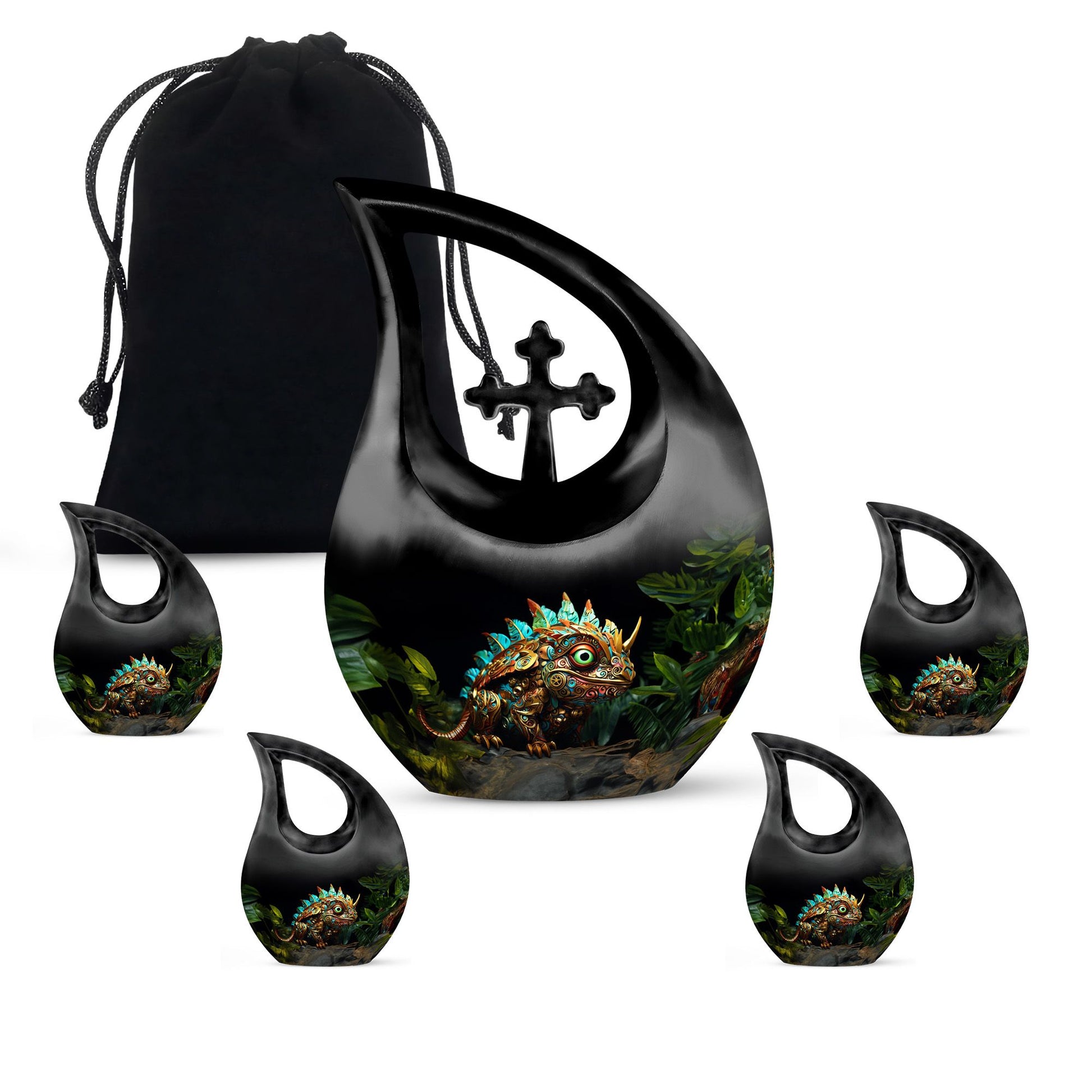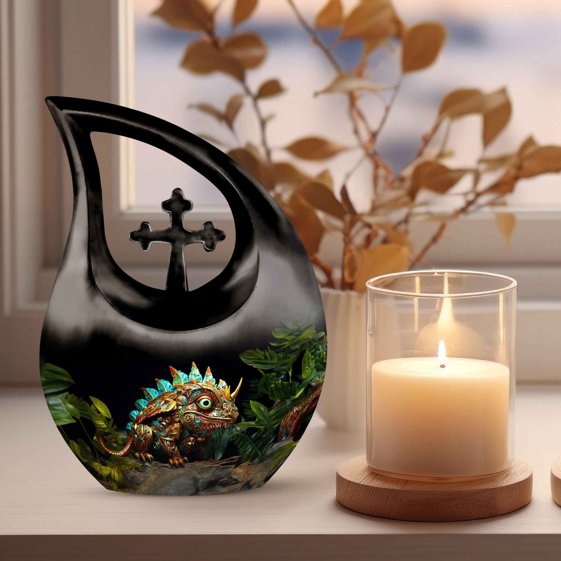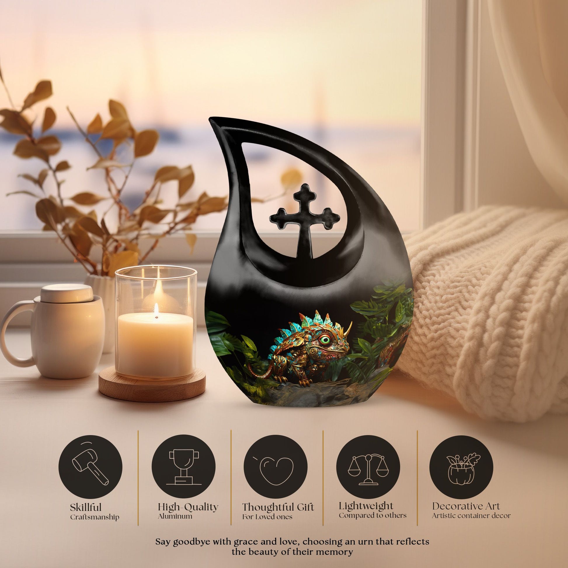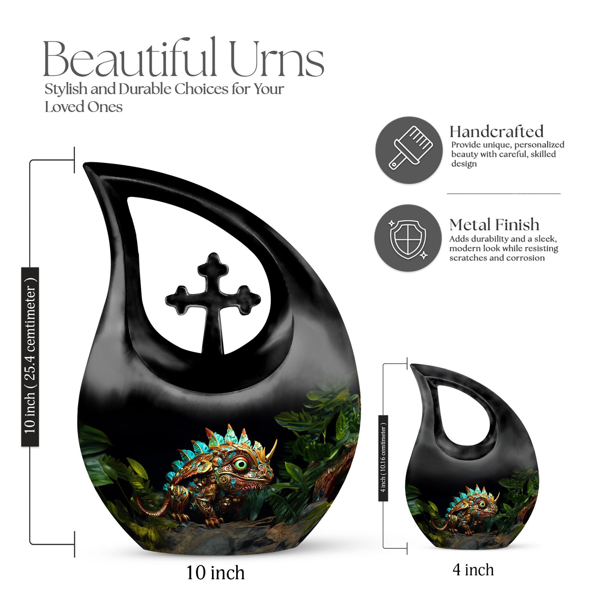 Step into a world of spiritual awakening with our Enchanted Creatures of Urn, an exquisite piece under the category of Memorial Ceremony Supplies. Made from top-notch aluminium, this 10-inch Box Urn for Human Ashes is sturdy and carries a thematic touch of Enchanted Creatures. It weighs around 3.3 pounds, and its dimensions of 10 inches in height make it an ideal piece. The volume capacity of 200 cubic inches allows this large urn sufficient space to respectfully contain ashes. The urn package includes a velvet pouch, ensuring secure containment of precious remains. Adding a personal touch, it offers customization where names can be engraved. This Peculiar Cross Drop urn design demonstrates a reverent elegant charm. Featuring funeral options and acting as a personalised urn for ashes, this Box Urn stands as a precious cremation keepsake. Uncommonly beautiful, it gives a sense of peace and closure that one seeks during the time of remembrance.