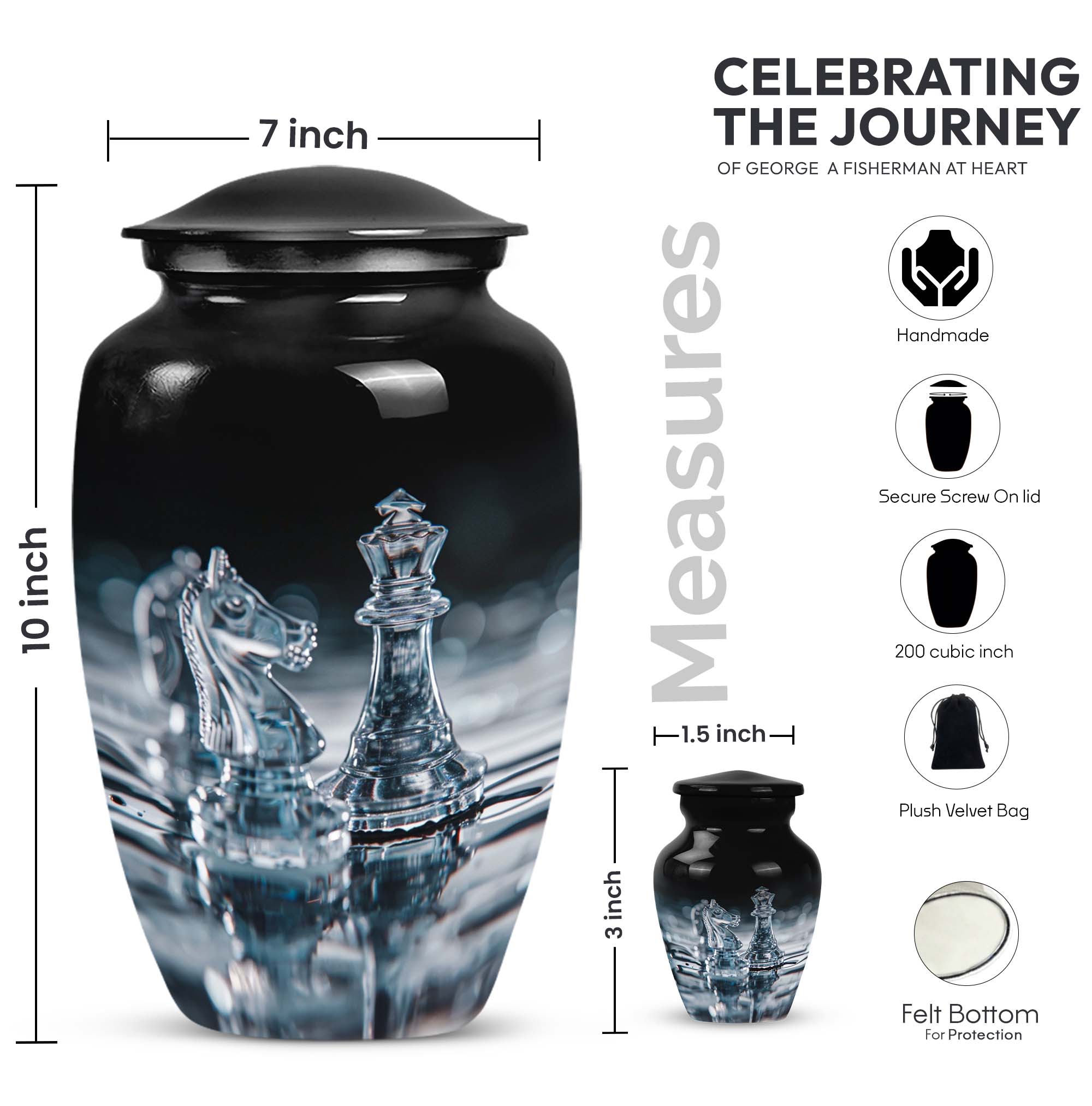 Cherish and honor the memory of your loved one with the Chess Cremation Urn, thoughtfully designed as a dignified tribute. This urn serves as a meaningful urn for men & women, providing comfort and a beautiful way to keep memories close, making it ideal for funeral urns for women or remembrance.