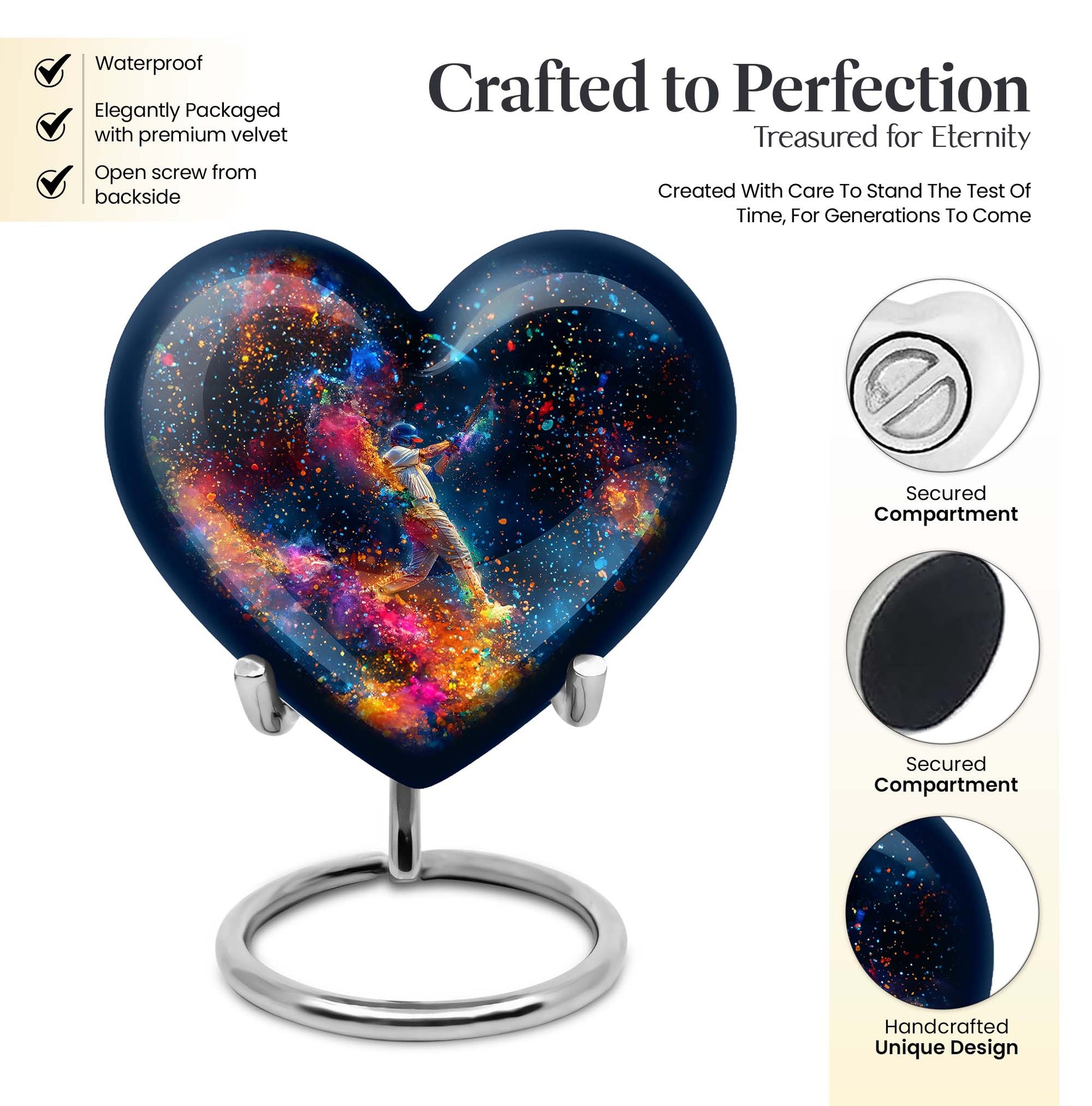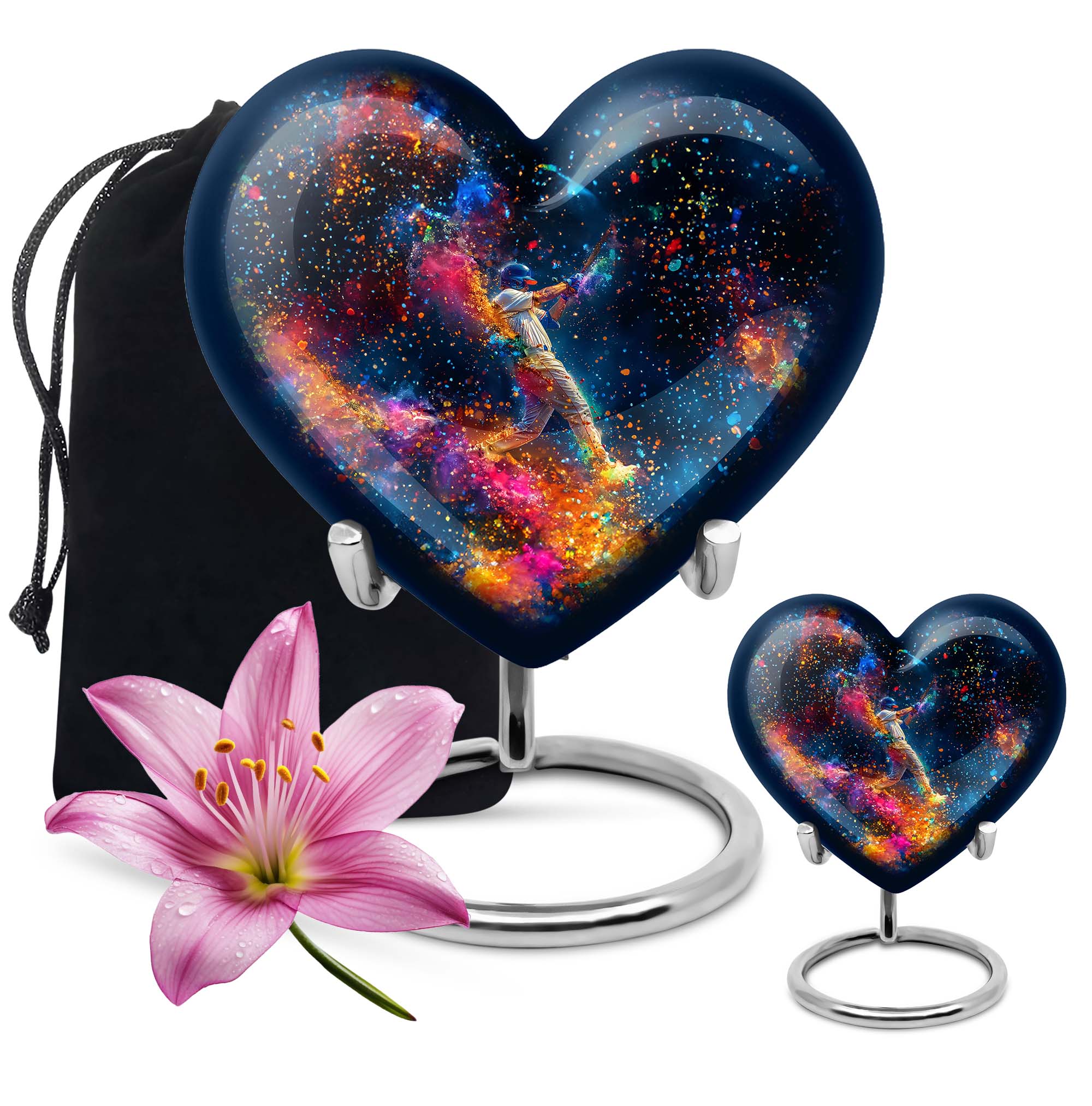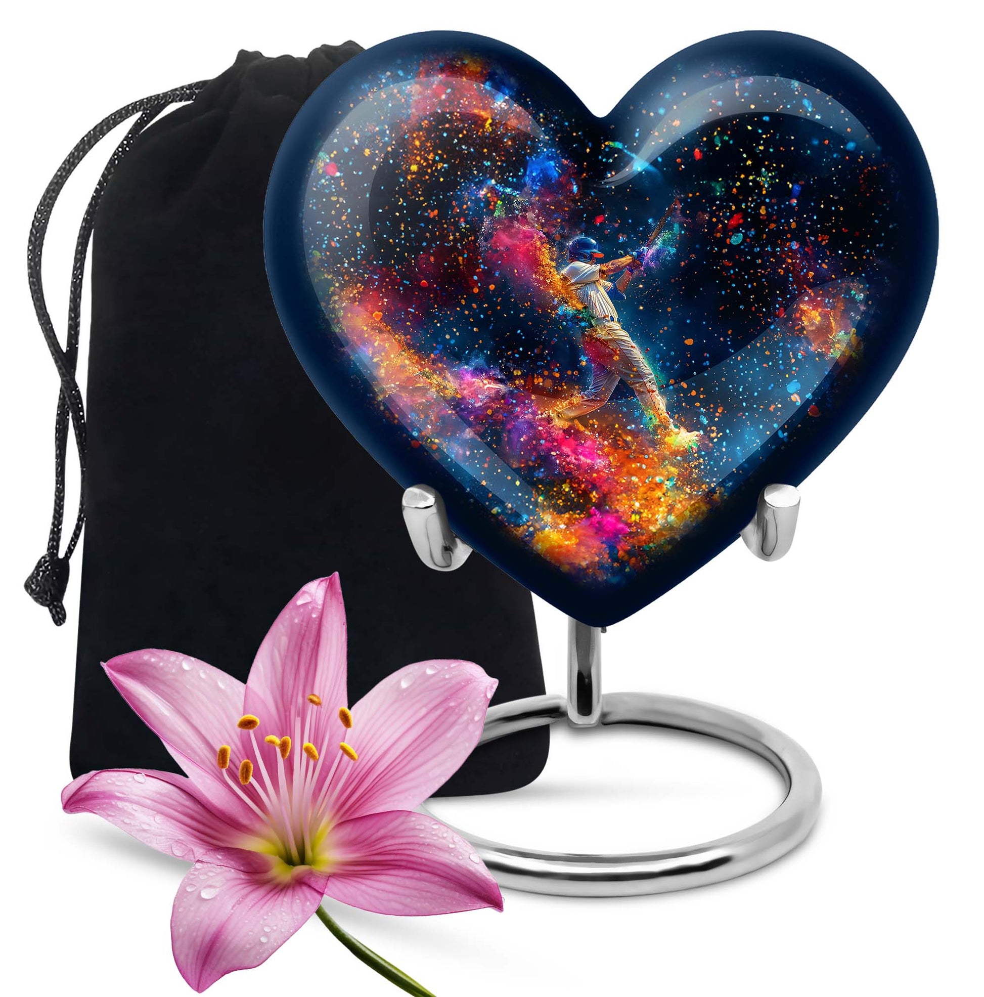 Introducing the 10-inch baseball urn, a remarkable cremation large urn for ashes, crafted meticulously for your memorial needs. This splendid heart urn, a nonpareil of its kind, promises you a lasting tribute to your beloved. Weighing a mere 3.3 pounds and standing 10 inches tall, this aluminium-made urn is designed to hold up to 200 cubic inches of your cherished one's ashes. The butterfly theme offers a gentle reminder of the fragility of life, inviting healing and reflection. This significant piece has been thoughtfully engineered to accommodate both adult and senior collectors. Our package is completed with a velvet pouch, perfect for safe containment of the ashes. The ultimate personal touch is bestowed with the availability of name engraving. Keywords like 'cremation medium urns, human ash urn, funeral gifts, metal urns for human ashes' might guide you here, but the unique experience this cremation urn offers truly sets it apart. Seize the chance to immortalize your loved one's memory with this timeless piece.