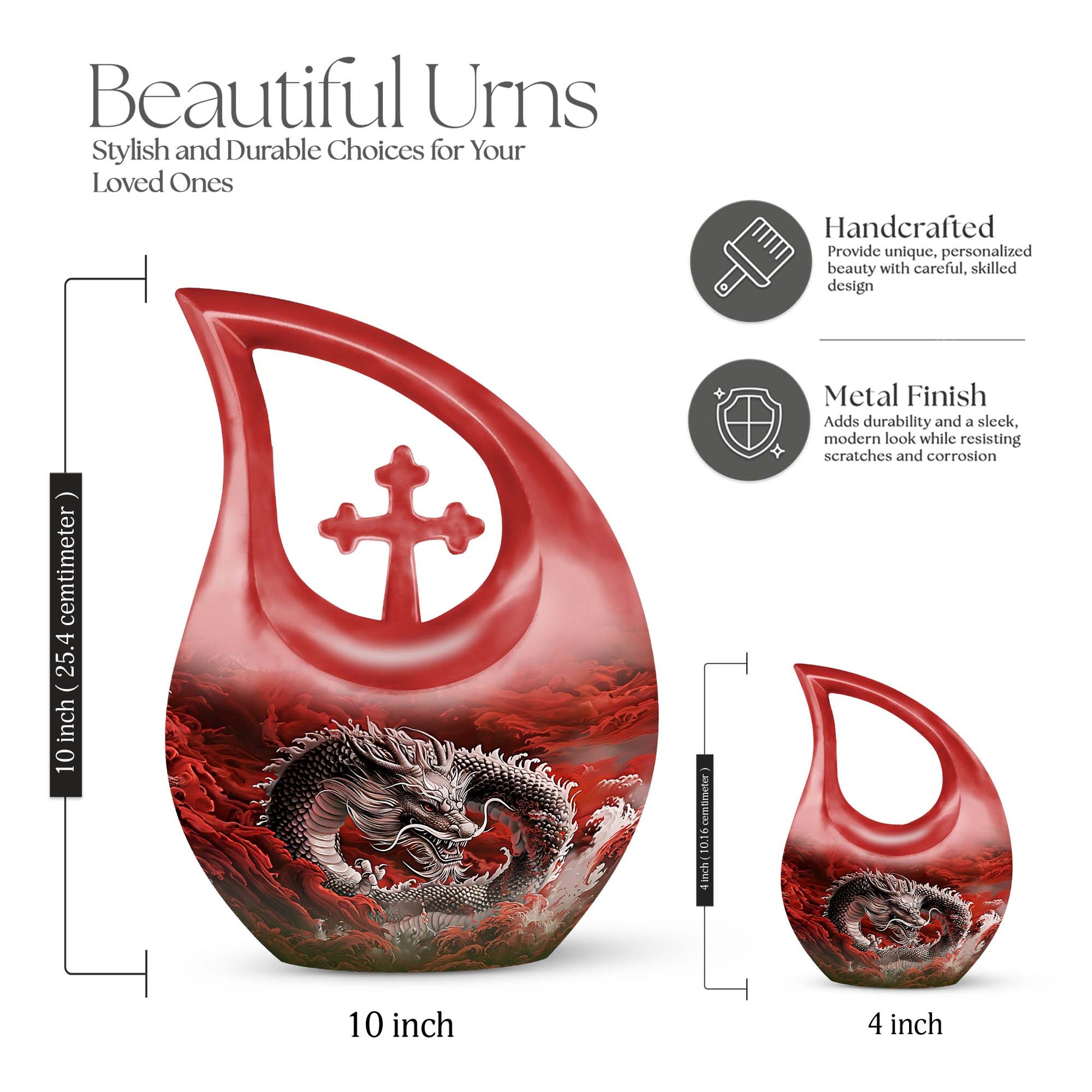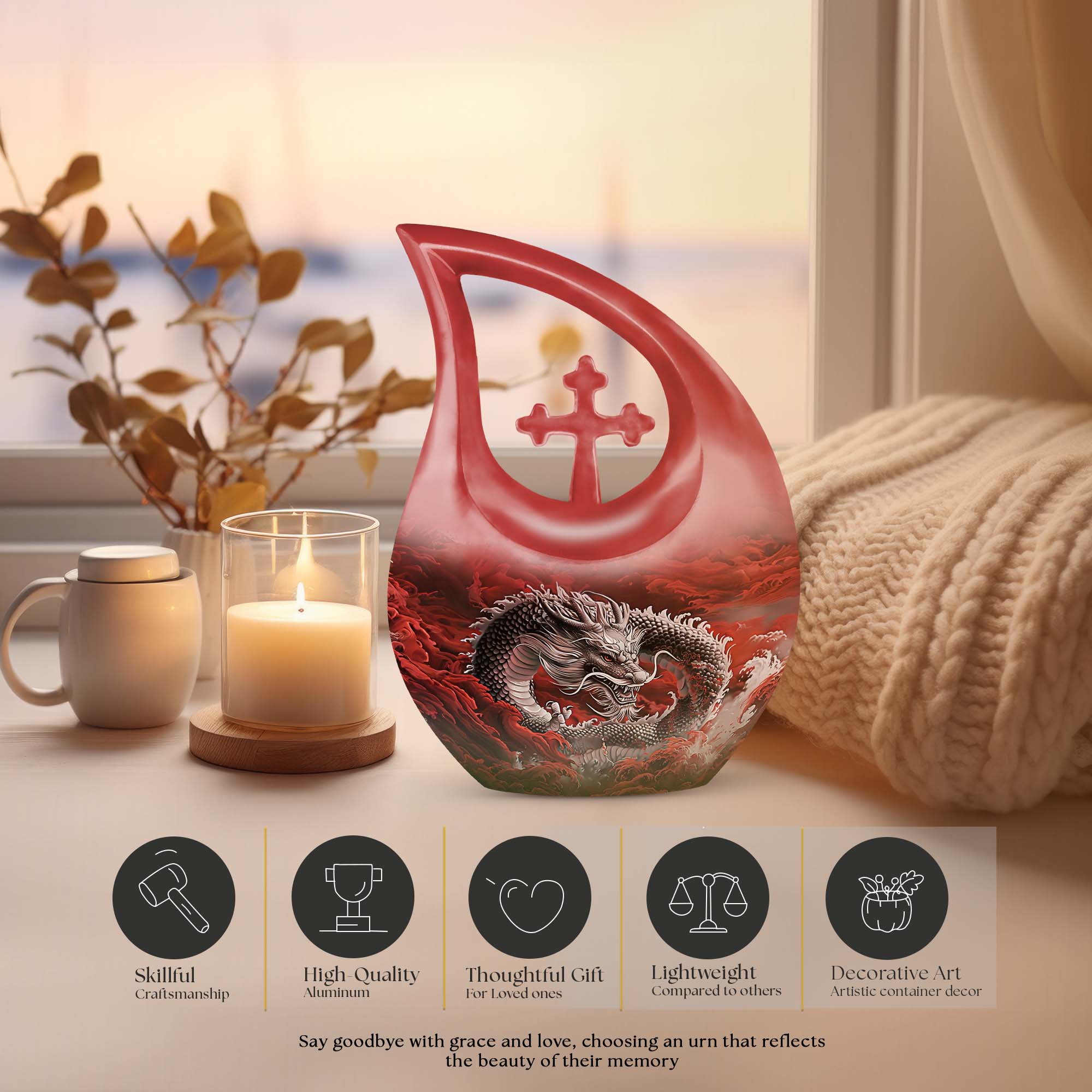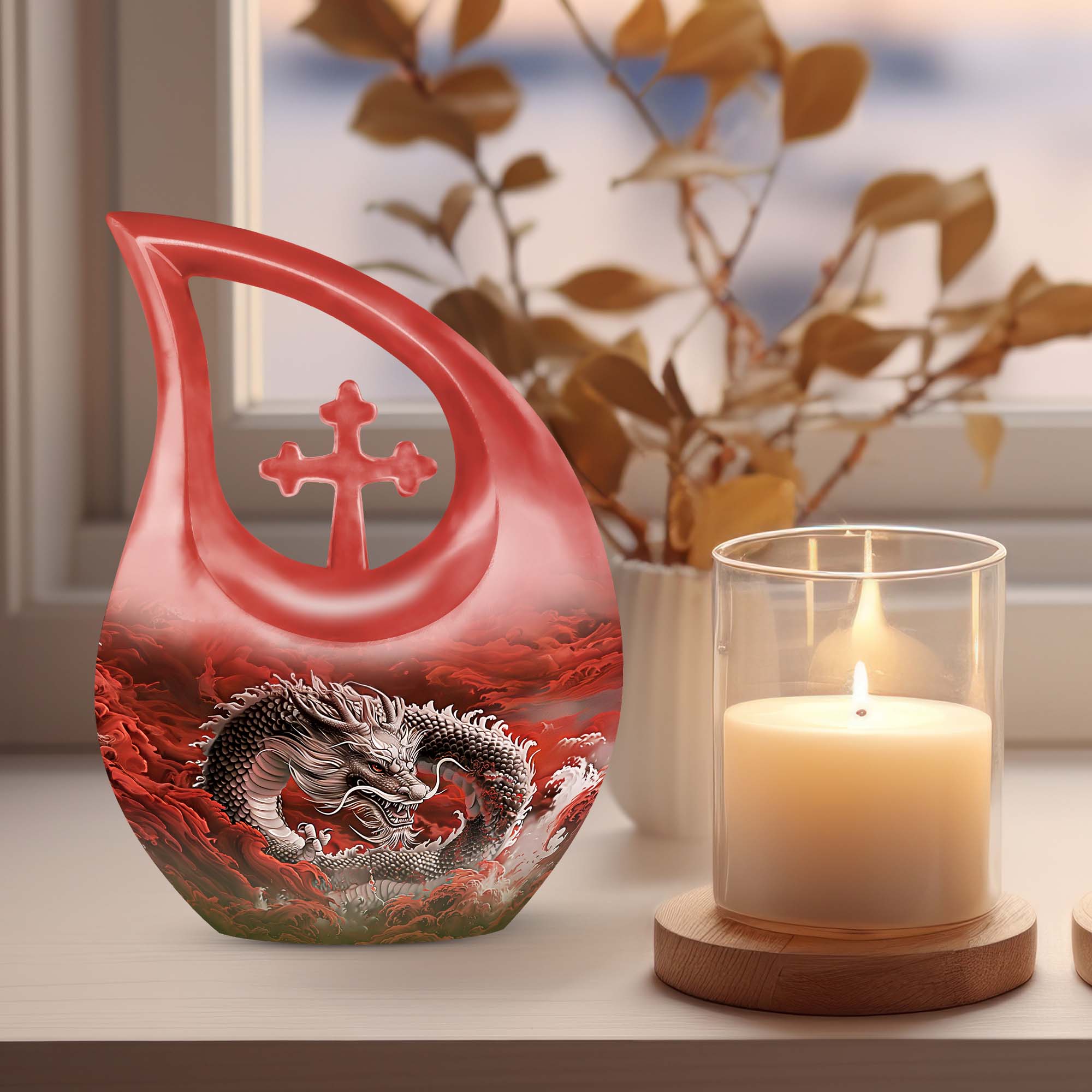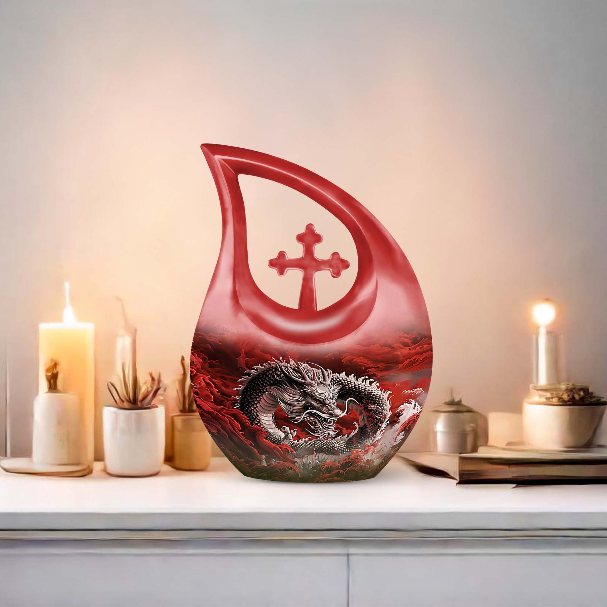 This Dragon Cremation Ashes Urn for Men offers a powerful and symbolic way to honor a cherished life. Featuring a striking red finish and detailed dragon artwork, it represents strength, courage, and eternal protection—making it ideal for families seeking funeral urns men or a bold, meaningful tribute for women as well.