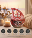 Crafted from durable aluminum, this red funeral urn blends artistic craftsmanship with long-lasting protection. Its polished design makes it a fitting choice for cremation urn men, cremation urn women, or cremation urns women who prefer a strong, symbolic style. The secure screw-top lid ensures ashes remain safely enclosed whether displayed at home, used during services, or chosen for burial. Families can also pair this piece with keepsake urns for men ashes, urn ashes for women, or tiny urns for women & men to share remembrance among loved ones.