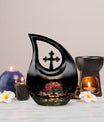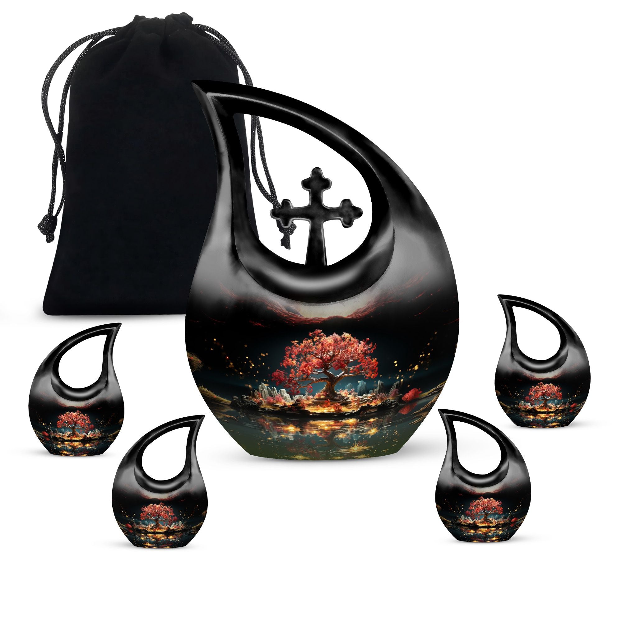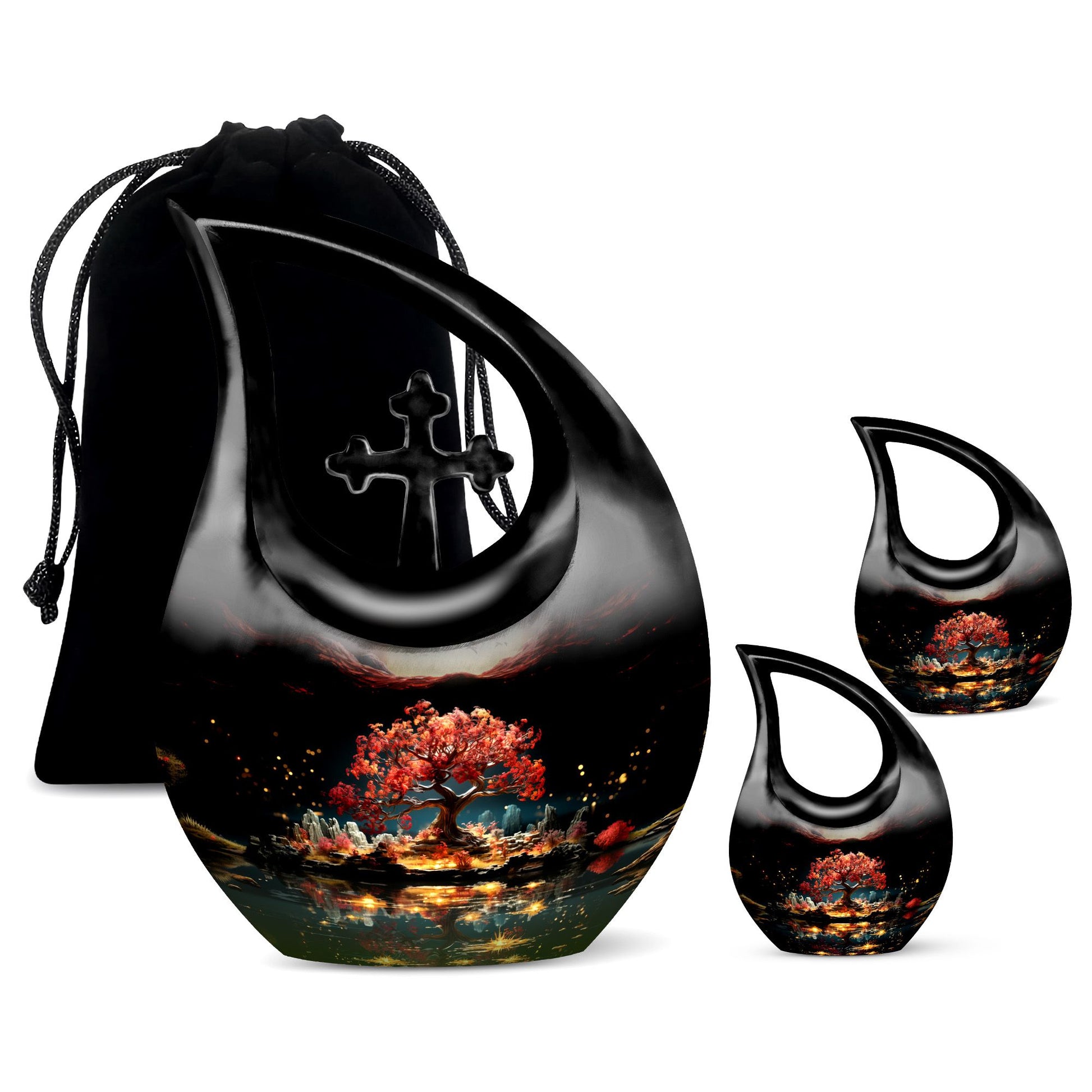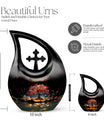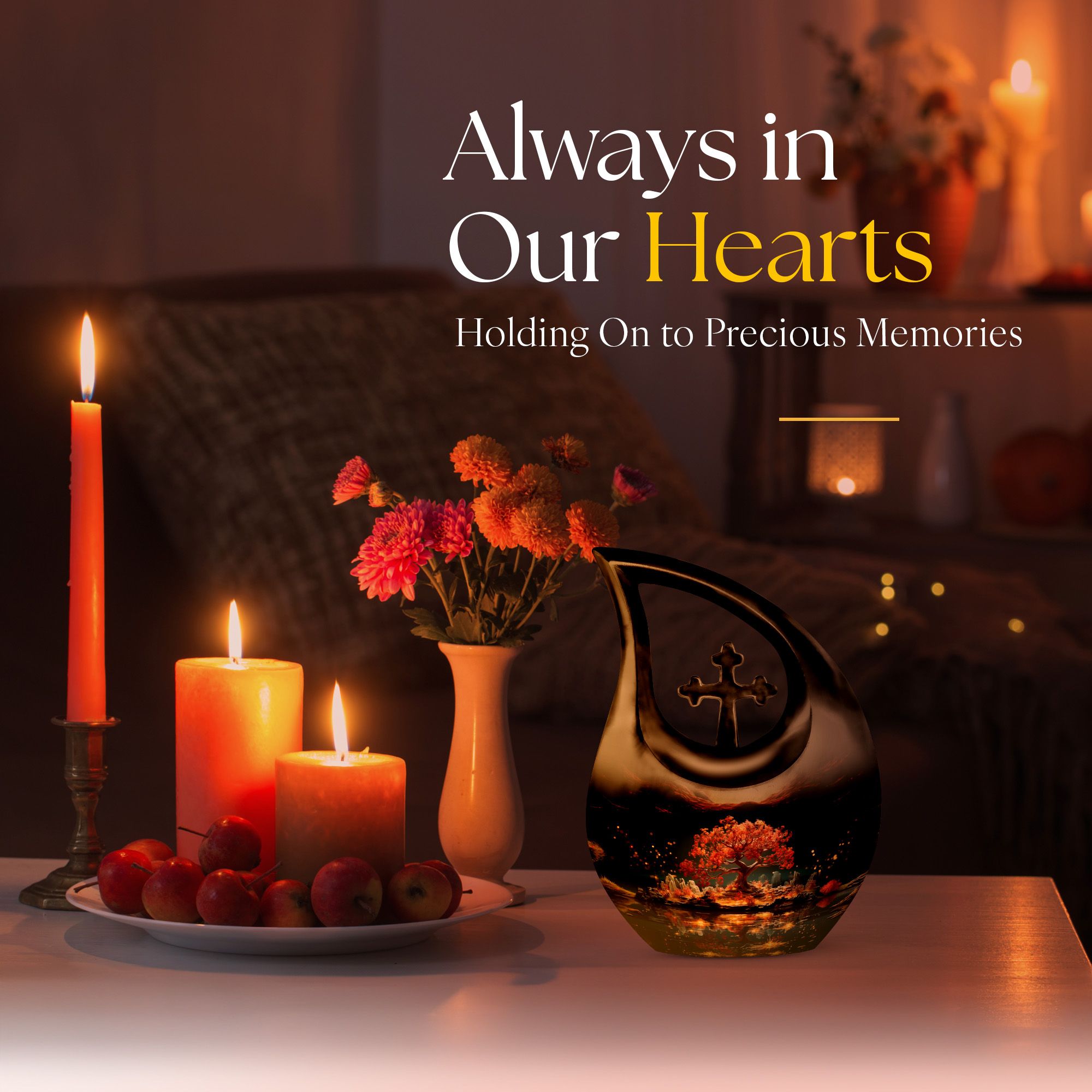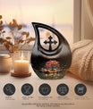 Discover our elegantly refined Crimson Eclipse Sanctuary Urn, a tribute to your cherished ones embodying timeless dignity. Measuring at 10 inches and a weight of a modest 3.3 pounds, this large urn is set to accommodate up to 200 cubic inches. Crafted from superior aluminium, this sophisticated memorial urn showcases the theme of Crimson Eclipse Sanctuary, exuding reverence and tranquility with its intricate details. The sizeable urn comes with a delicate velvet pouch for the containment and safekeeping of ashes, enhancing its sanctity. The urn offers a room for personal touch with the option to engrave names, adding a profound sentiment to this precious keepsake. Characterized by its 'Cross Drop' motif, our urn is subtly impactful, encapsulating indelible memories and honouring a lifetime of love and warmth. Looking for 'Miniature urns', 'Cremation Containers', or 'Square Urn'? Explore 'Precious Memories Urns', your go-to destination for premium grade memorial supplies.