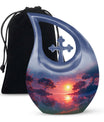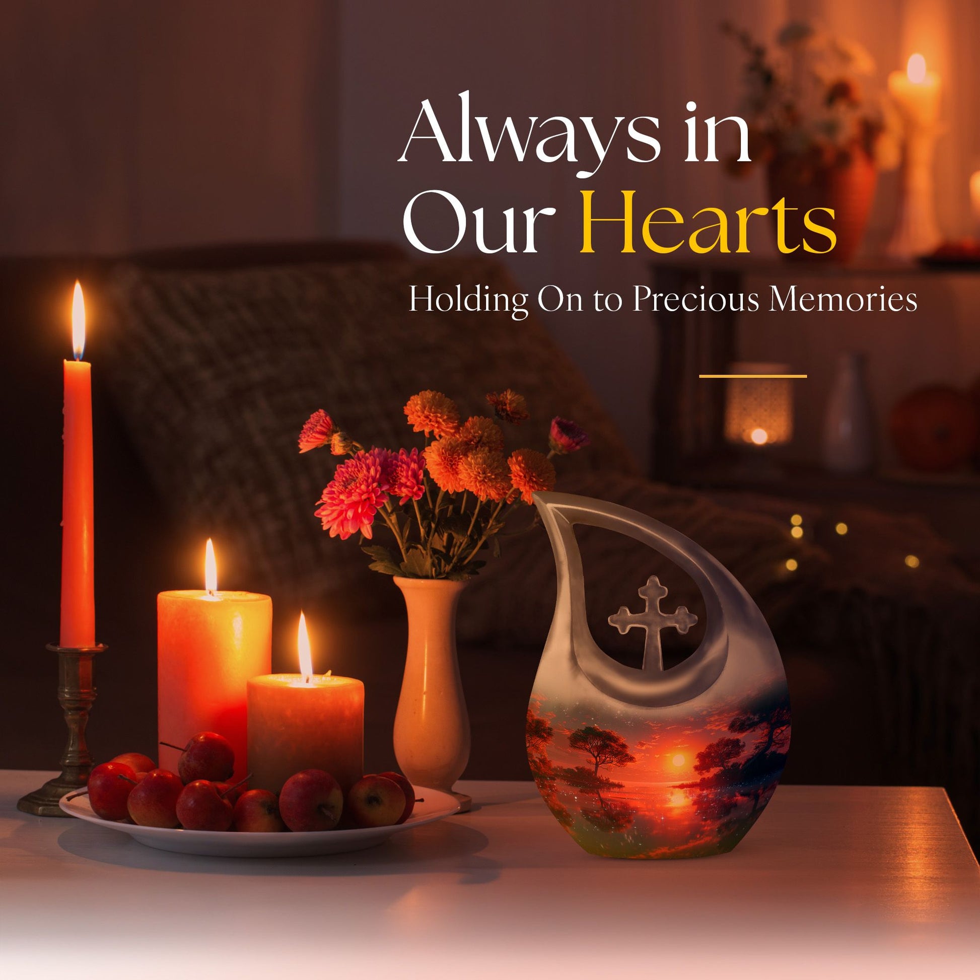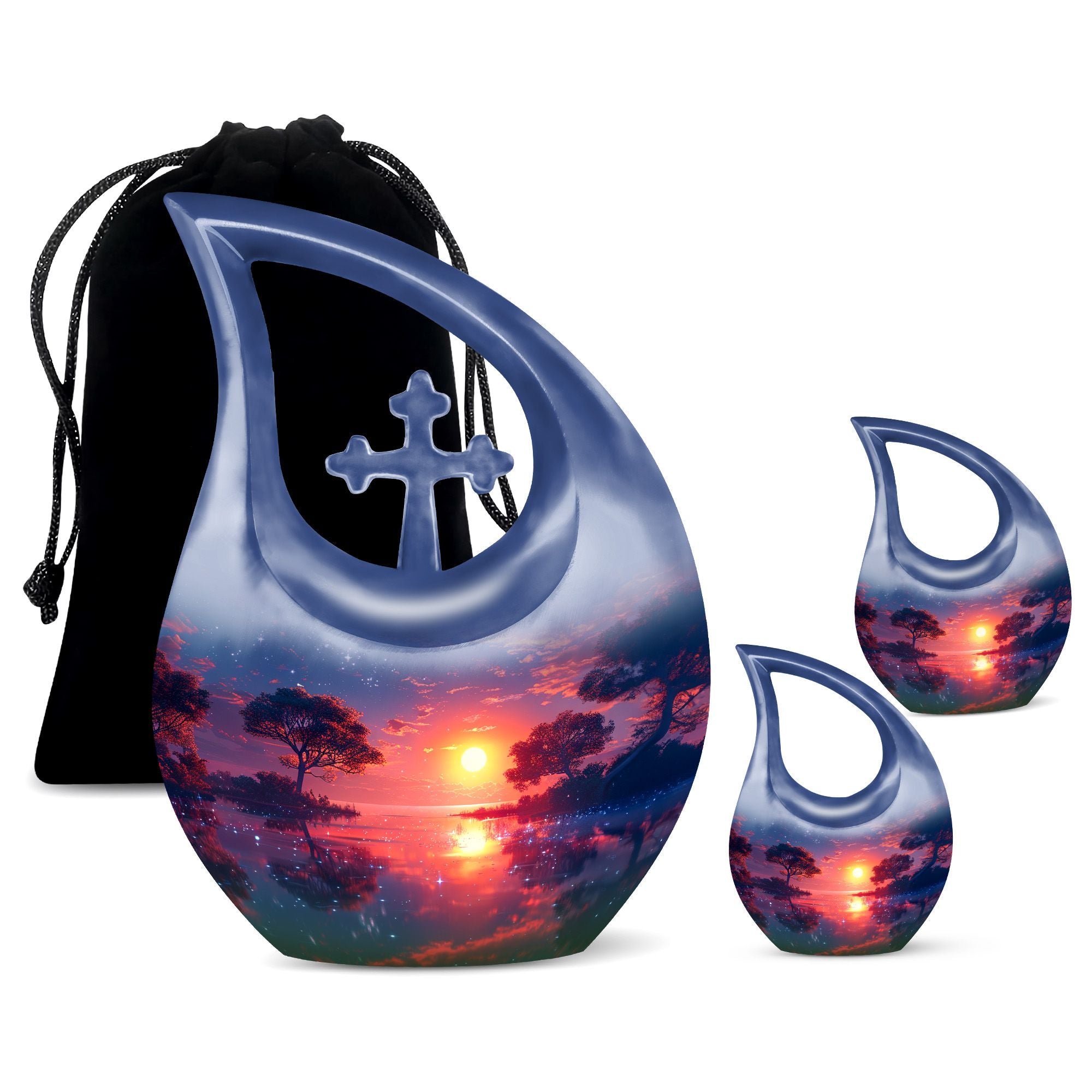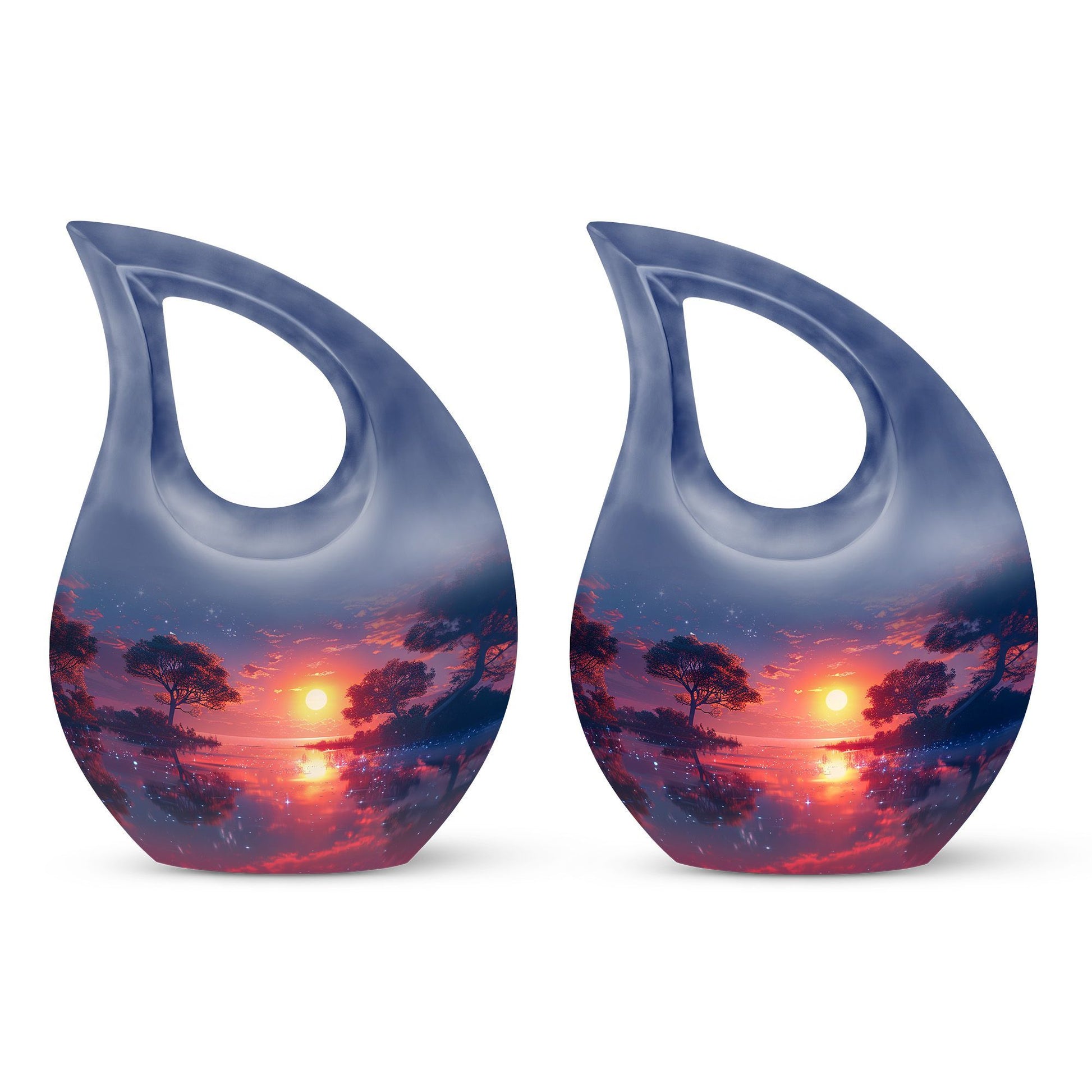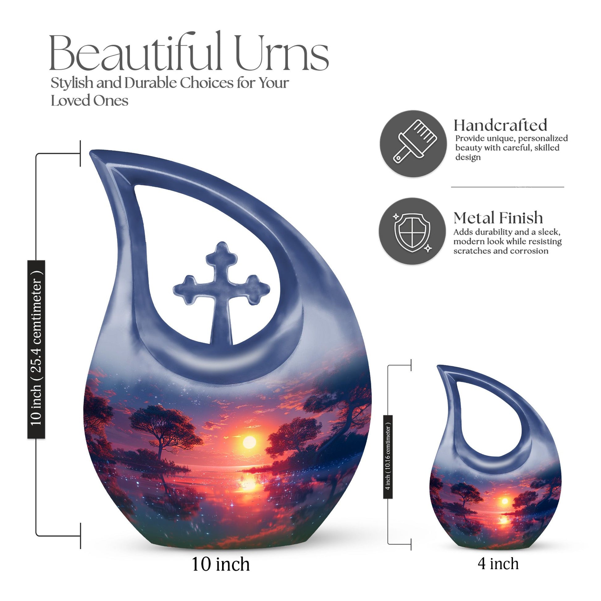 Find solace and tranquility with our Crimson Serenity Urn, a carefully crafted, medium-sized memorial keepsake designed to honour your cherished one. As a perfect accessory for your loved ones' ashes, the urn ensures lasting respect in your home. The sophistication of the cross drop design conveys serenity and integrity in dealing with the memory of a lost loved one. Artfully crafted in sturdy aluminum and standing at 10 inches in height, this crimson urn weighs 3.3 pounds and has a capacity to hold up to 200 cubic inches of ashes. Customize this one-of-a-kind remembrance urn with personalized engraved names, creating a unique tribute for your loved one. In addition, each urn comes with a soft velvet pouch, providing a beautiful enclosure for the containment of ashes. Ideal for adults and seniors, this urn is a fitting choice for a cremation box or companion urn. Embodying the concept of cherished memories, choose our Crimson Serenity Urn as a timeless way to honor your loved one.