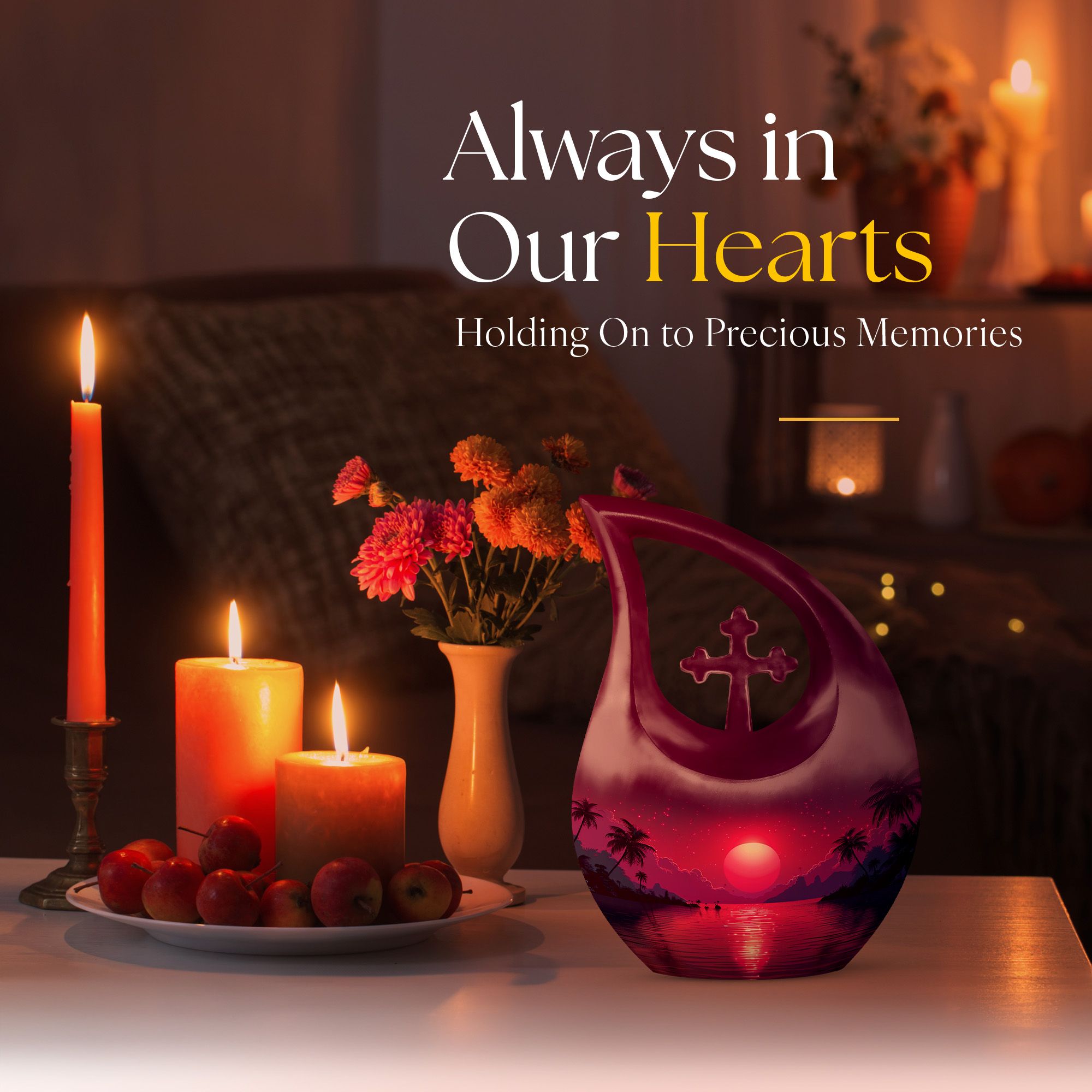 The Purple Crimson Moon Urn – Beach Cremation Urn for Human Ashes offers a serene tribute inspired by moonlit waves and a soft crimson shoreline. This peaceful design is perfect for families seeking an adult cremation urn or a meaningful option among urns for cremation ashes mother, reflecting warmth, love, and eternal calm.