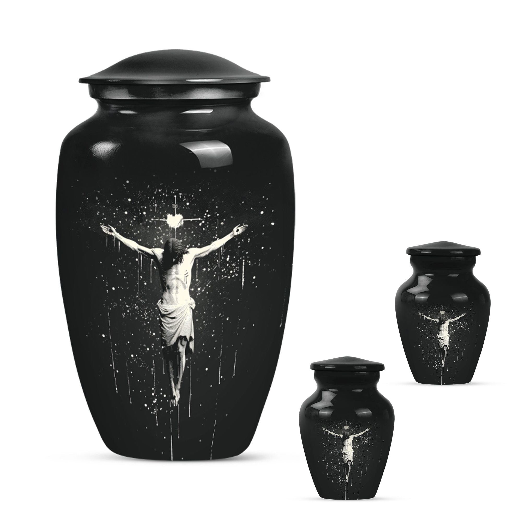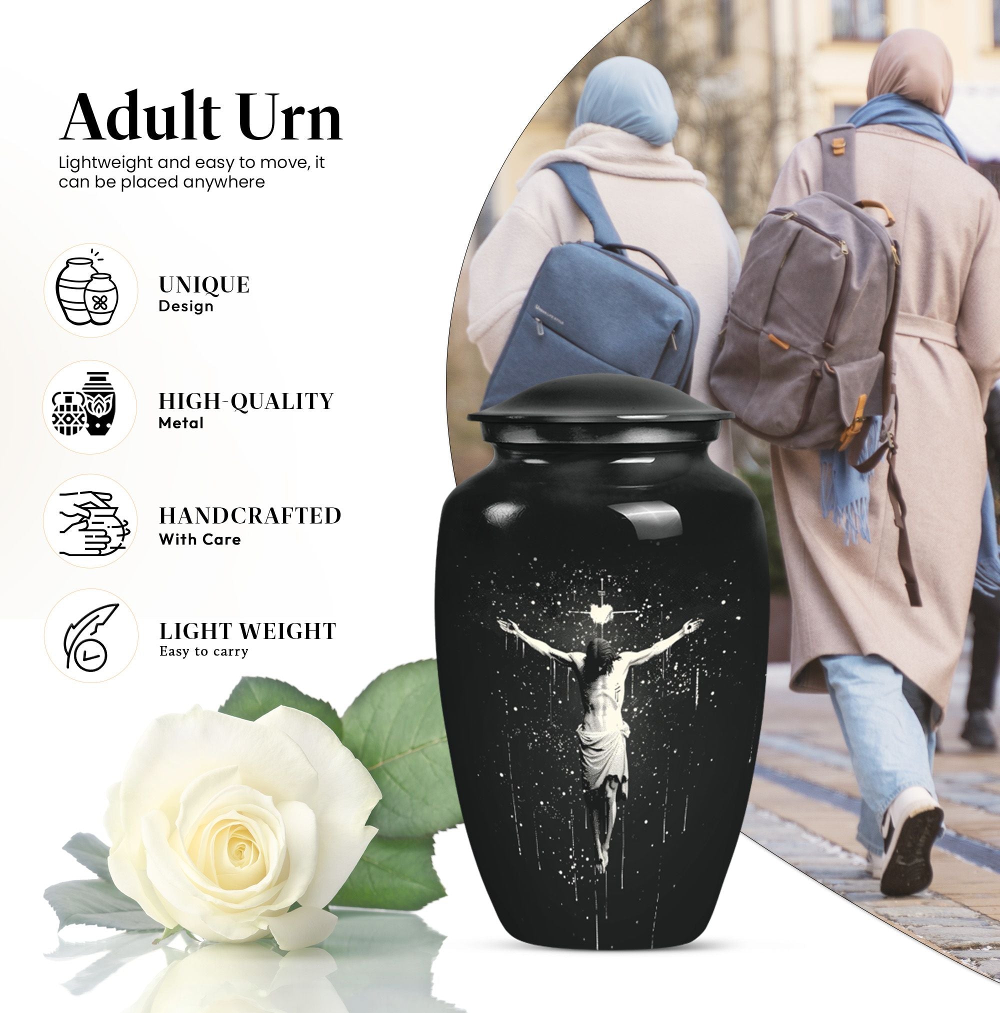 Revere the memory of a cherished person in an extraordinary and compelling way with our 10-inch classic cross urn, an exquisite part of our ceremonial supplies collection. Made from high-quality aluminium, this large urn weighs 3.3 pounds and has a generously spacious capacity of 200 cubic inches. It comes with a velvet pouch for securing the ashes, adding a touch of elegance and respect. This funeral urn for ashes for women or an adult male captures the essence of the past while promising solace for those left behind. With options to personalize through engraved names, this urn becomes a thoughtful and enduring testament to a lifetime of unforgettable memories. This memorial urn, embodying a gramophone theme, showcases a timeless tribute that can be passed down through generations. Whether you're finding burial urns or a box to hold precious stories, discover the unique alternative in our impressive, tastefully designed cross urn.