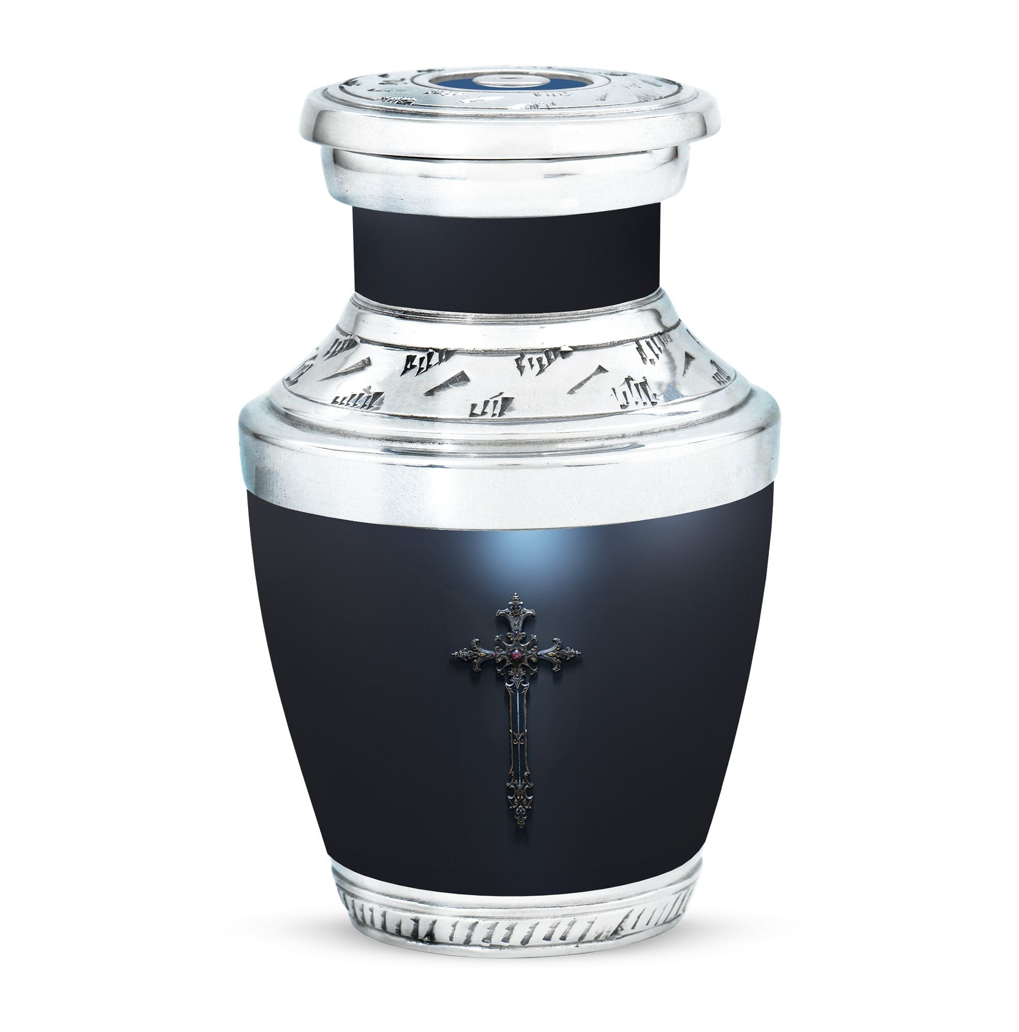 Crafted from durable aluminium, this urn combines strength with elegance, featuring a symbolic cross motif that represents faith and eternal love. With a secure screw-top lid and 200 cubic inch capacity, it provides peace of mind while serving as a dignified resting place. Whether chosen as a standalone piece or paired with miniature urns for human ashes, it brings comfort and reverence to any memorial.