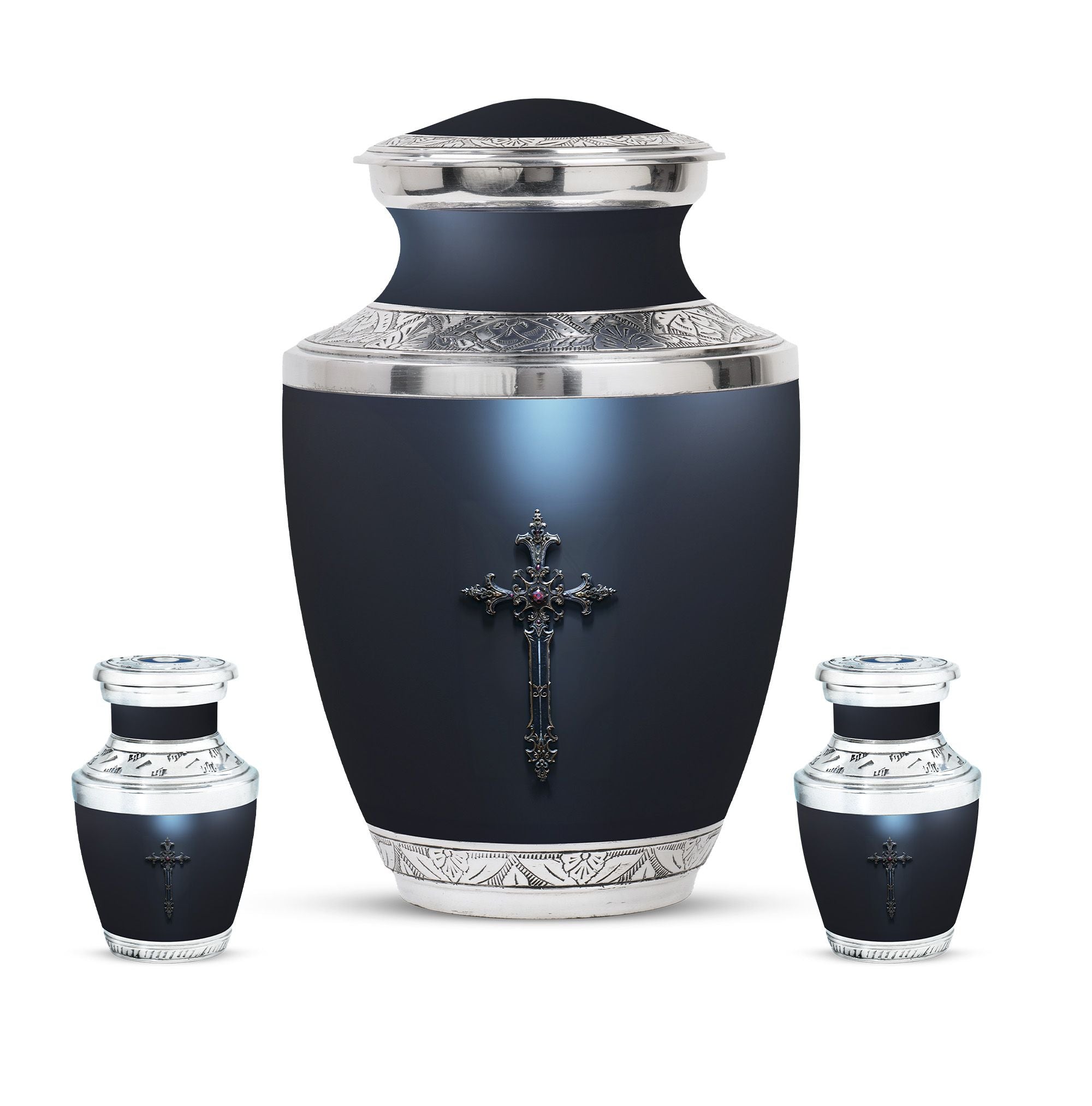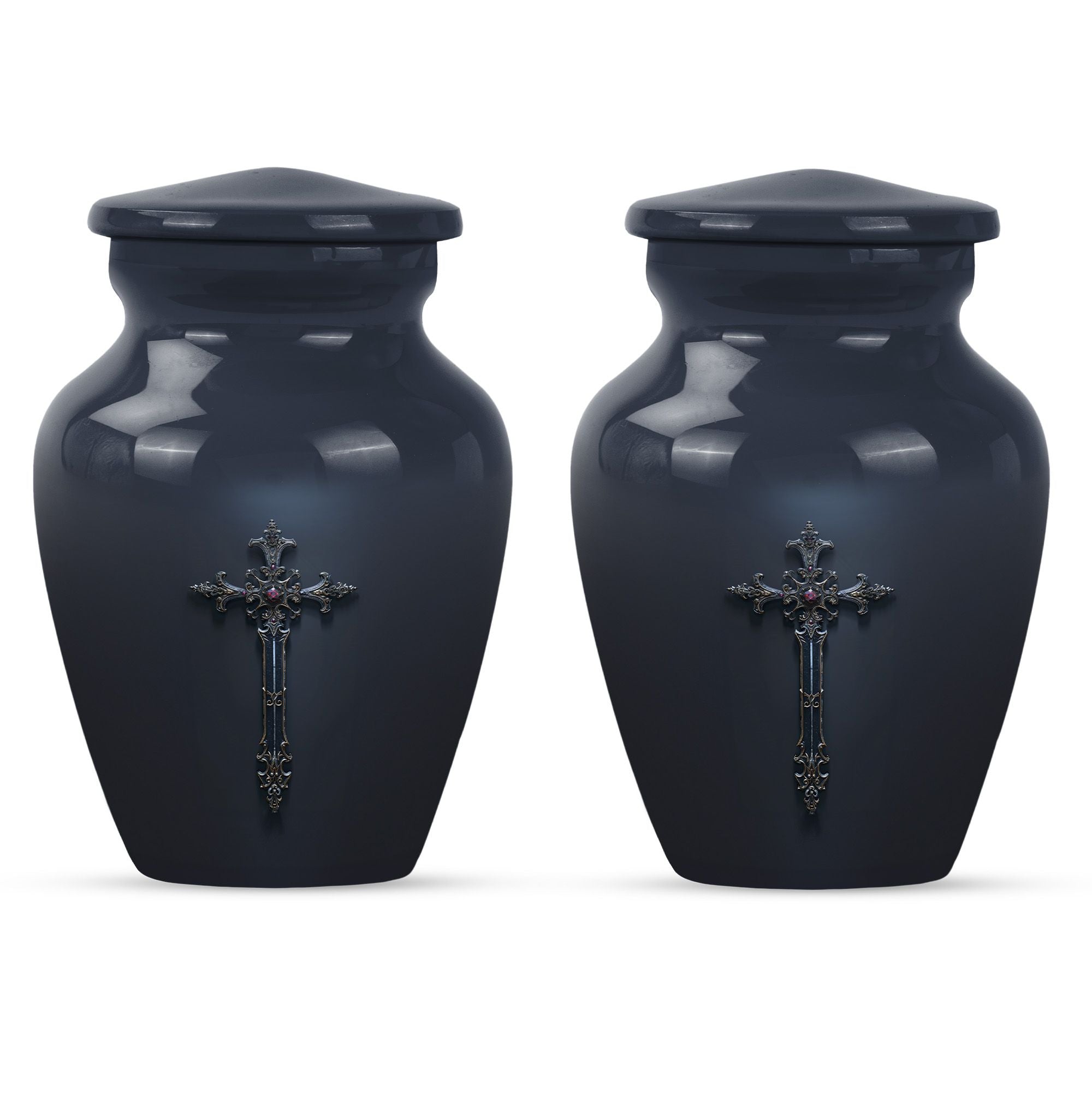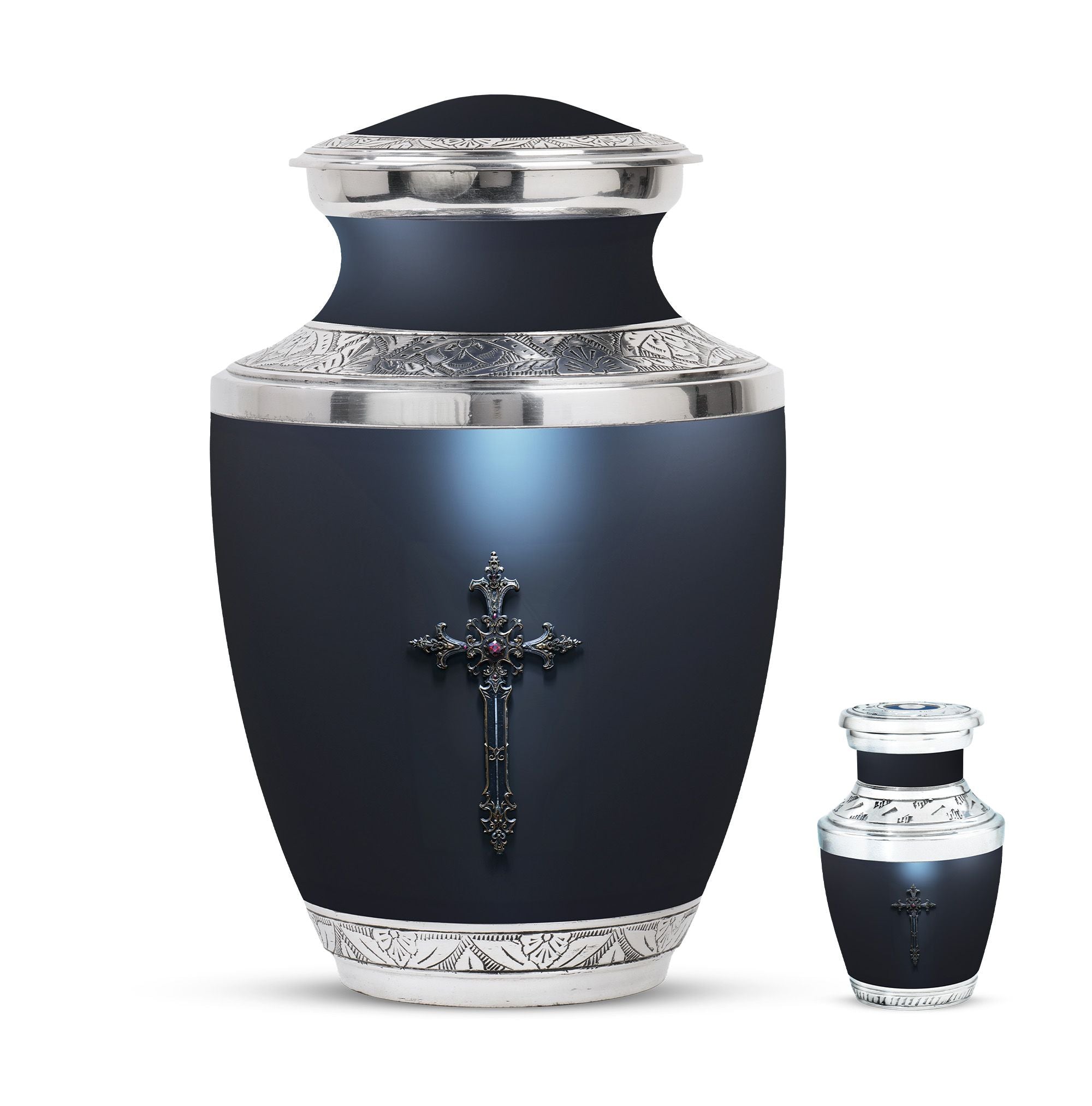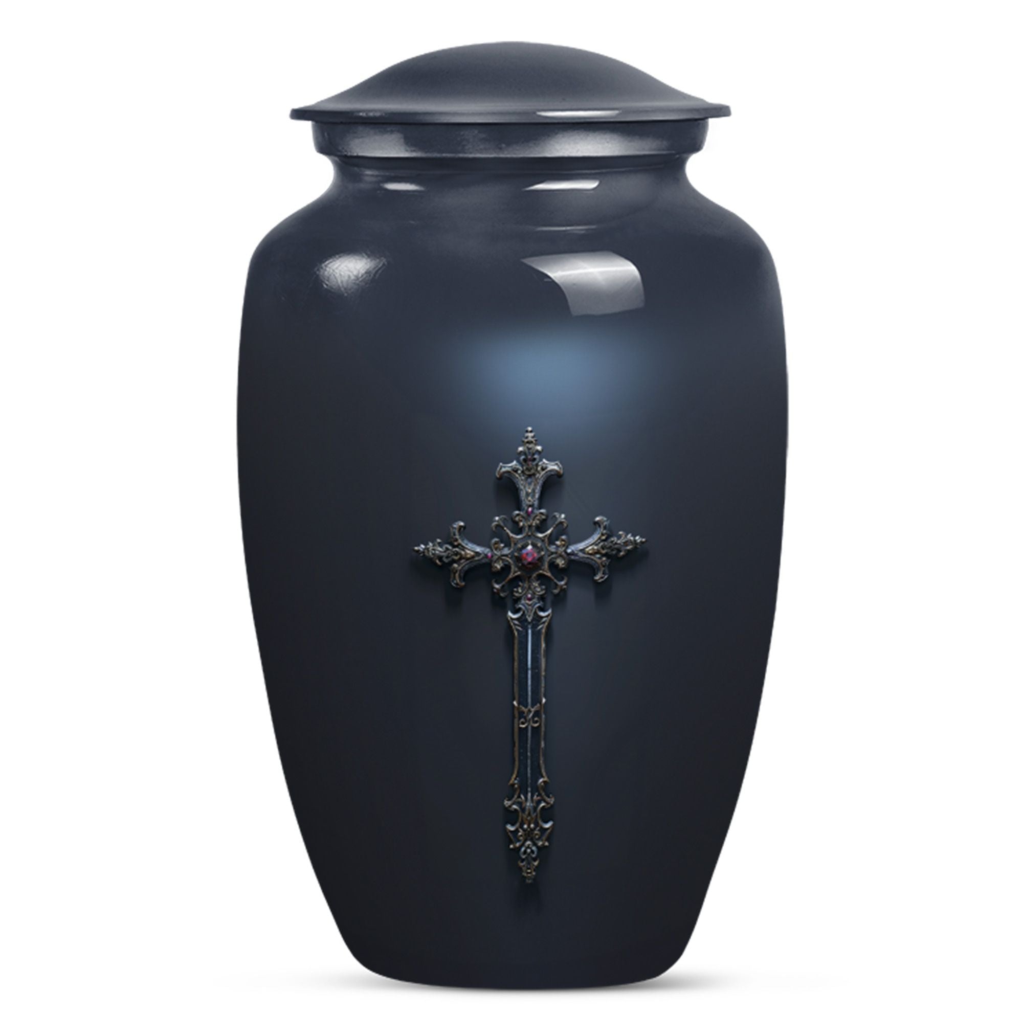 Crafted from durable aluminium, this urn combines strength with elegance, featuring a symbolic cross motif that represents faith and eternal love. With a secure screw-top lid and 200 cubic inch capacity, it provides peace of mind while serving as a dignified resting place. Whether chosen as a standalone piece or paired with miniature urns for human ashes, it brings comfort and reverence to any memorial.