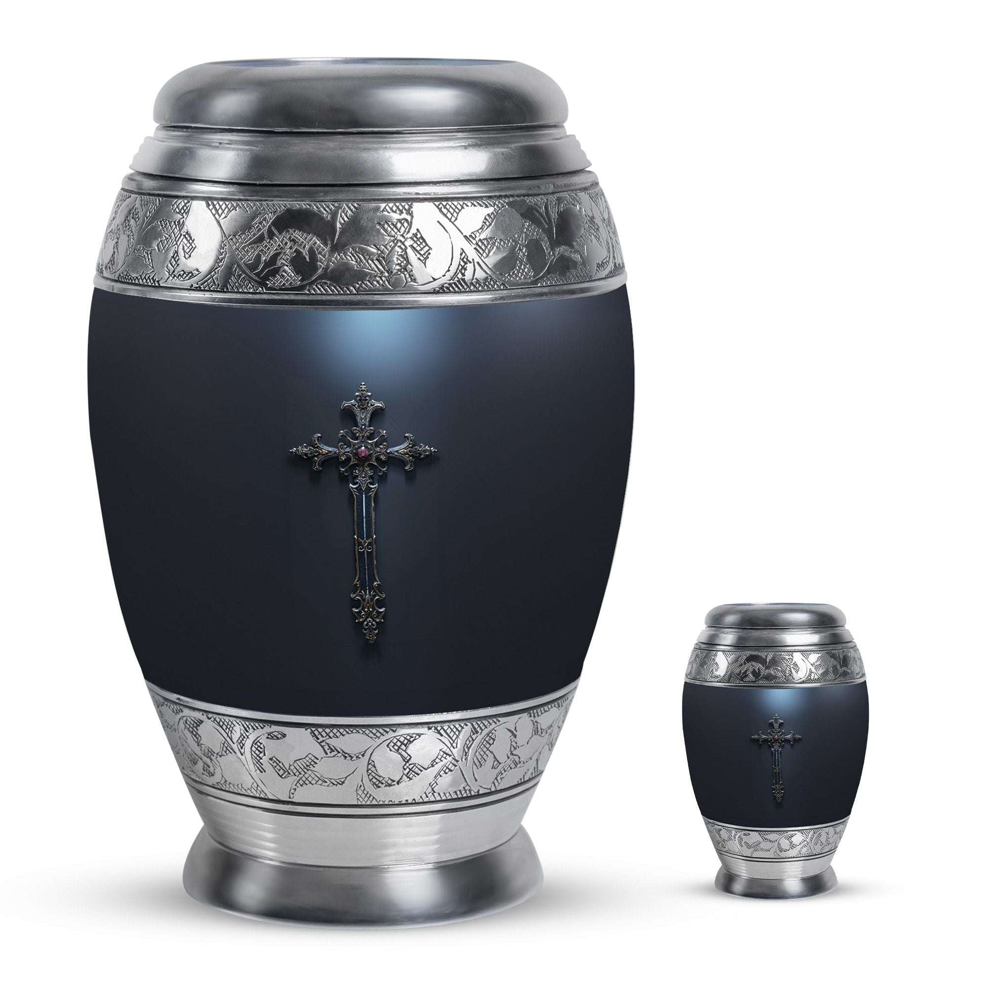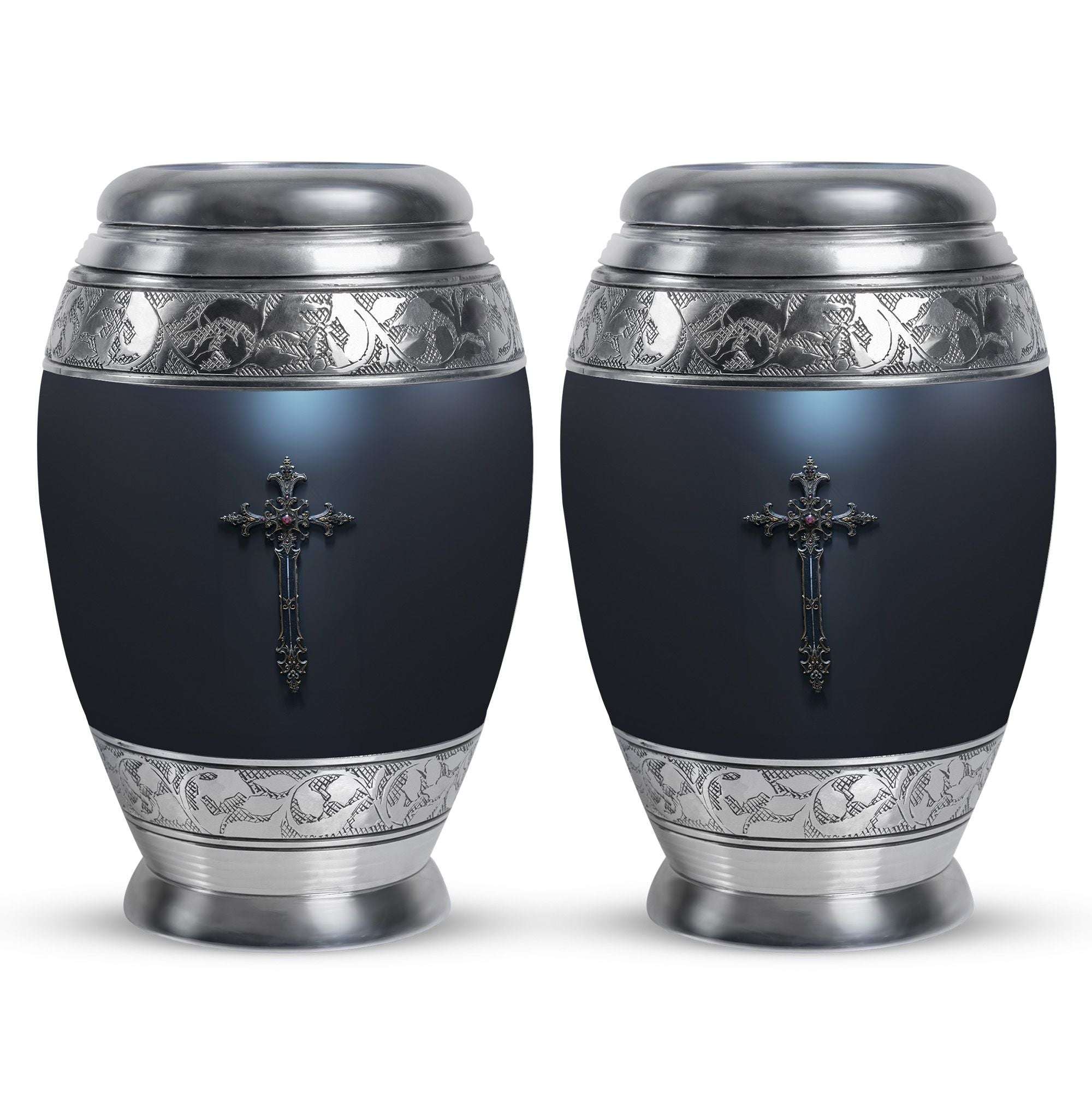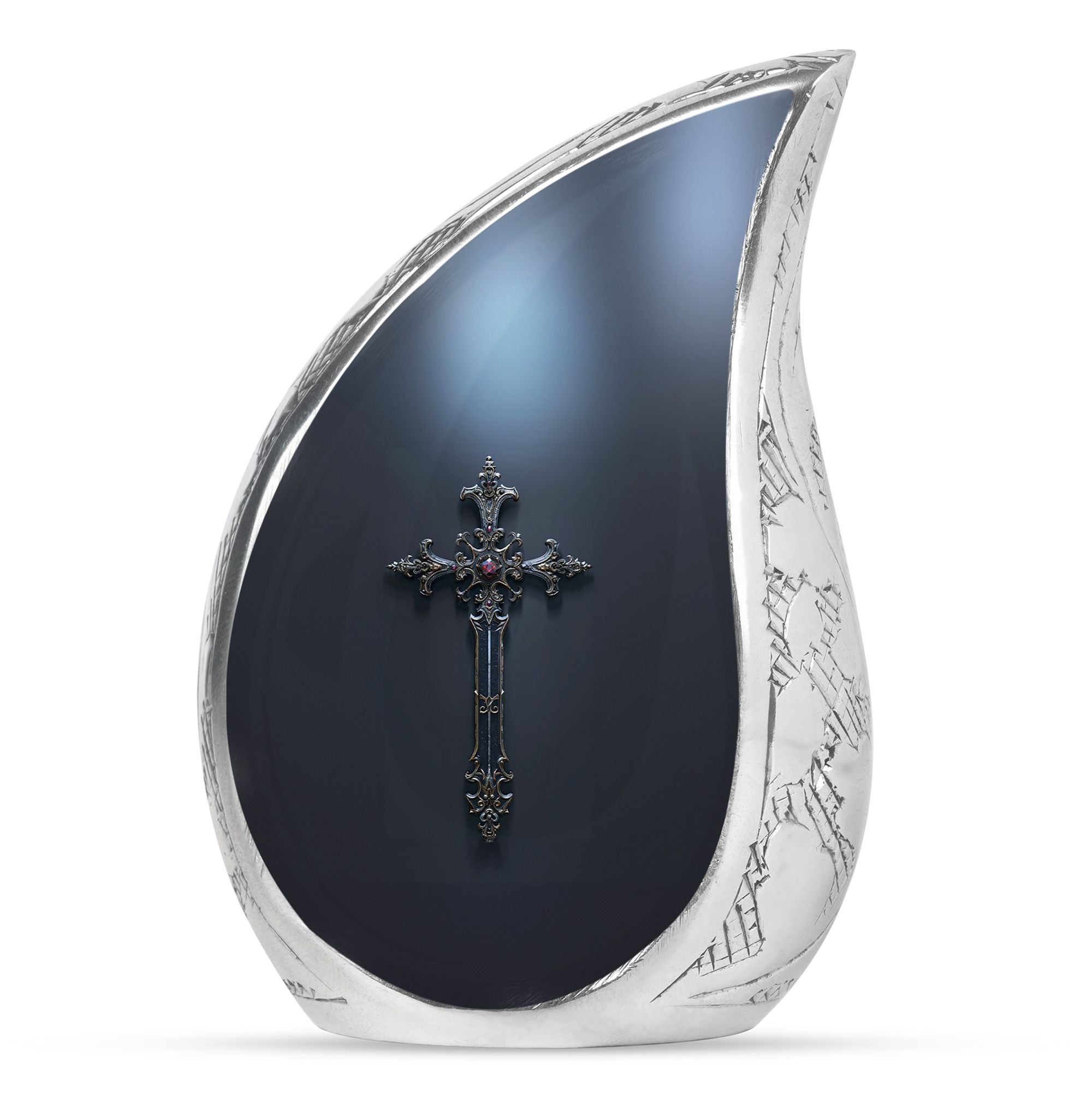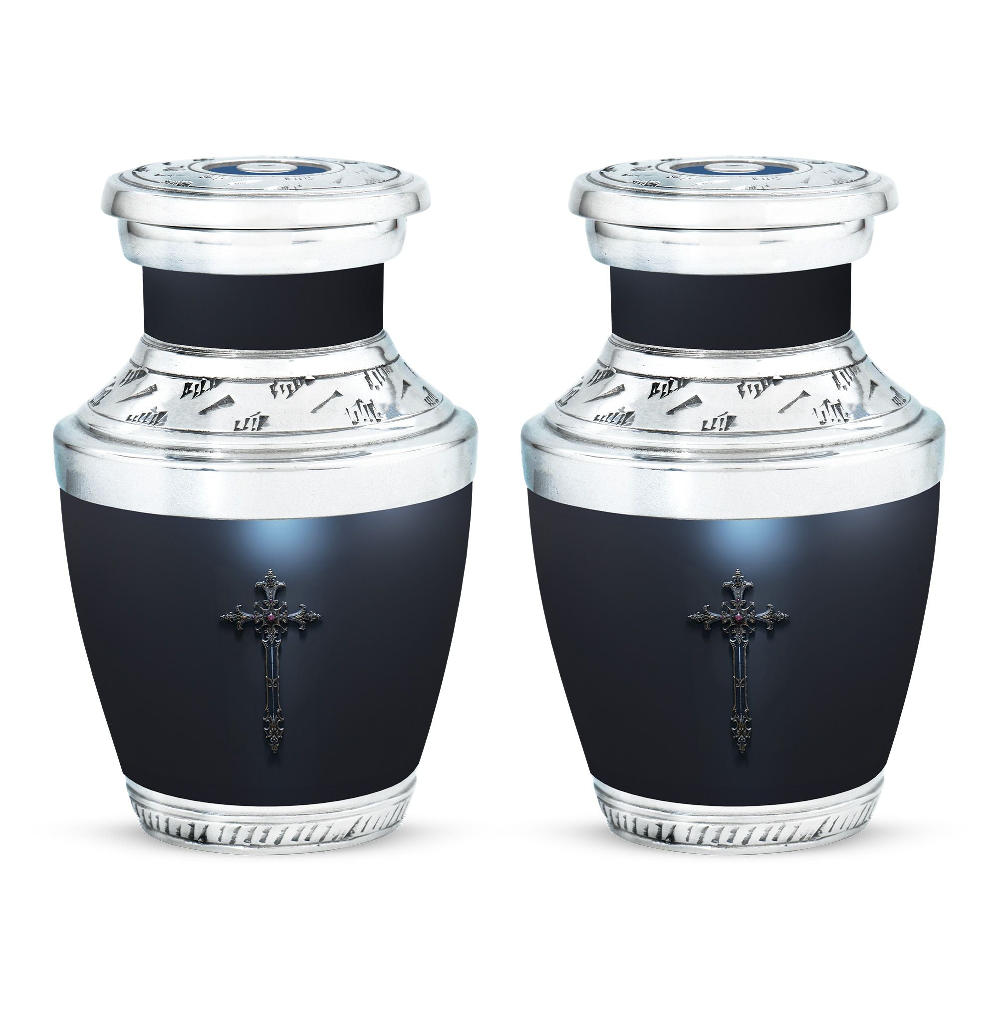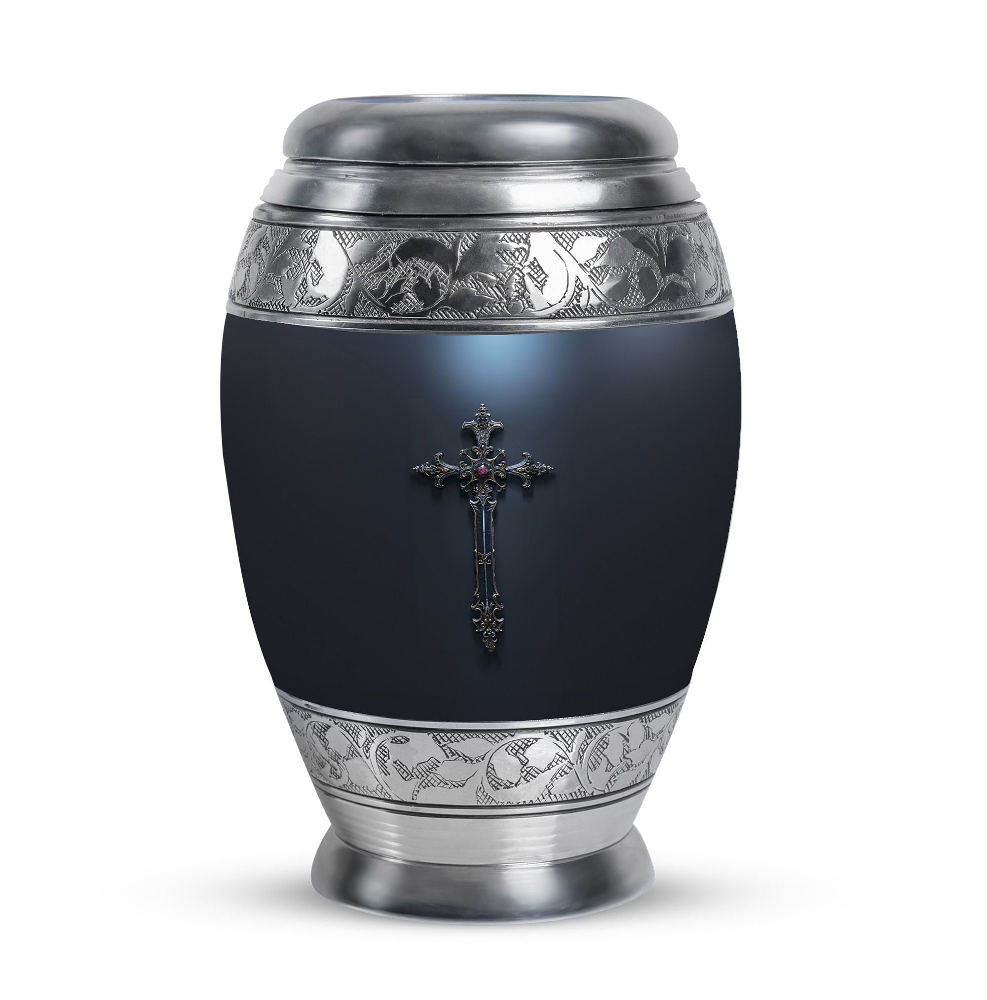 Crafted from durable aluminium, this urn combines strength with elegance, featuring a symbolic cross motif that represents faith and eternal love. With a secure screw-top lid and 200 cubic inch capacity, it provides peace of mind while serving as a dignified resting place. Whether chosen as a standalone piece or paired with miniature urns for human ashes, it brings comfort and reverence to any memorial.