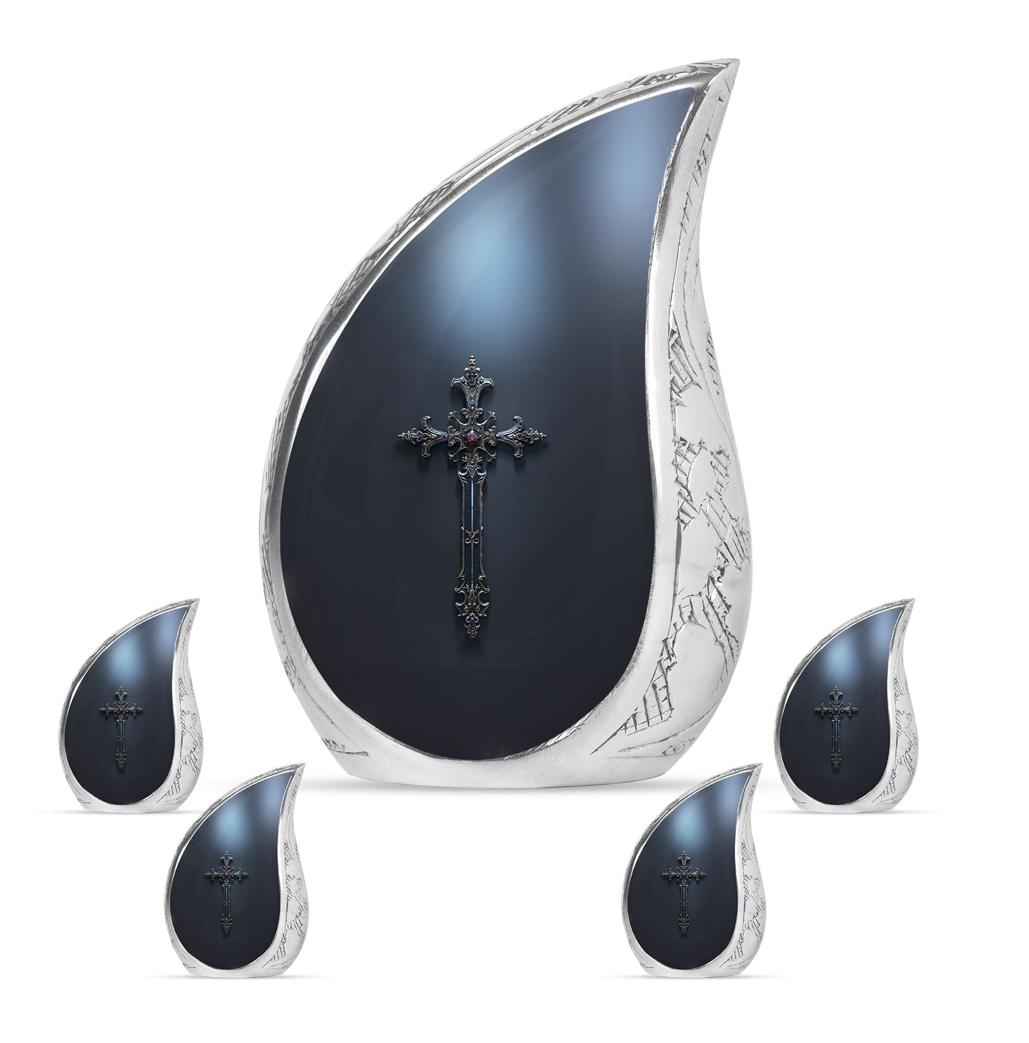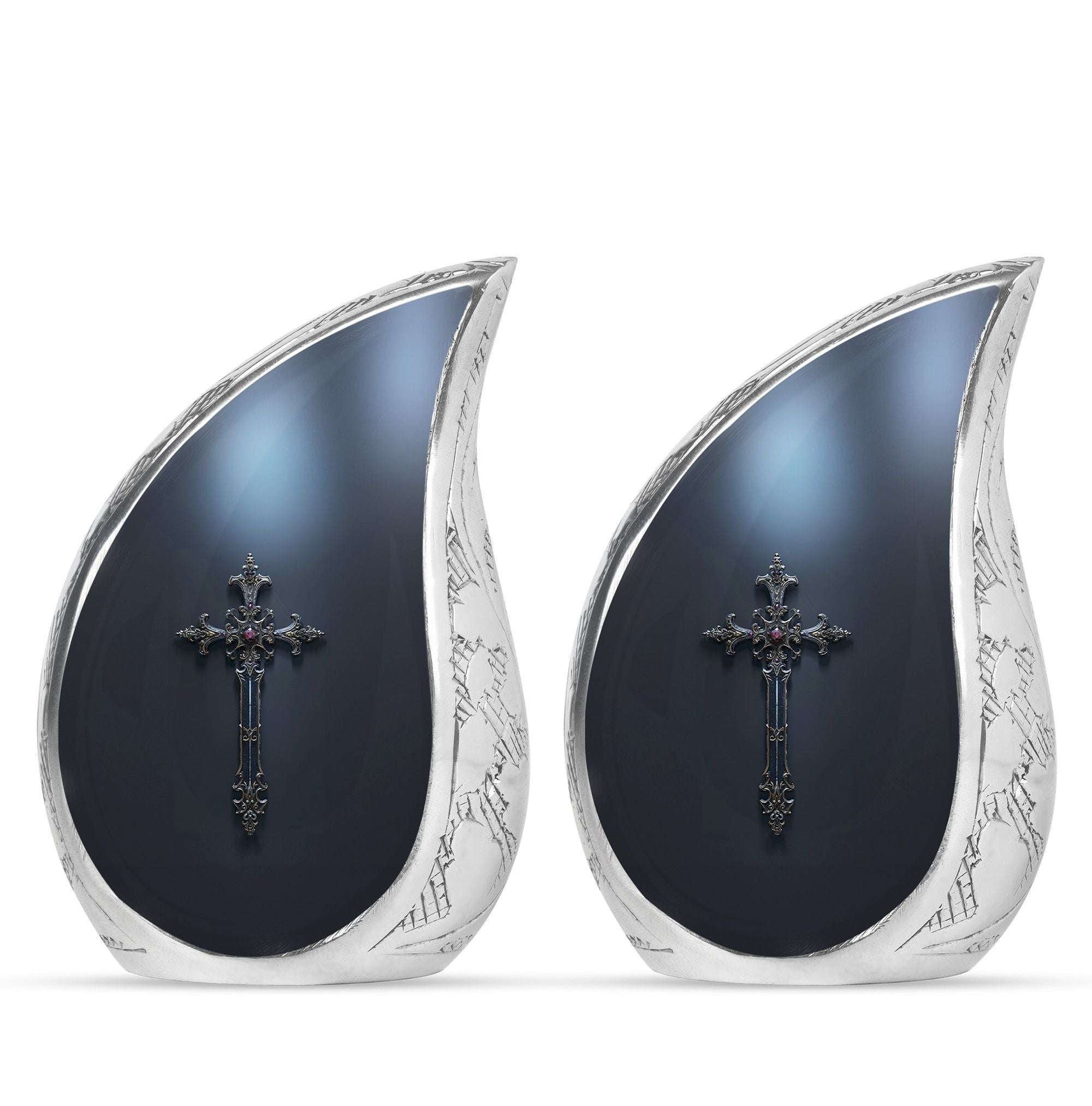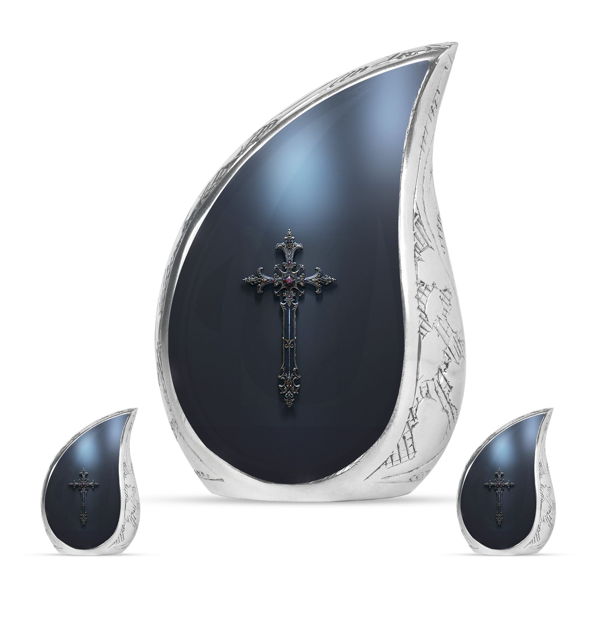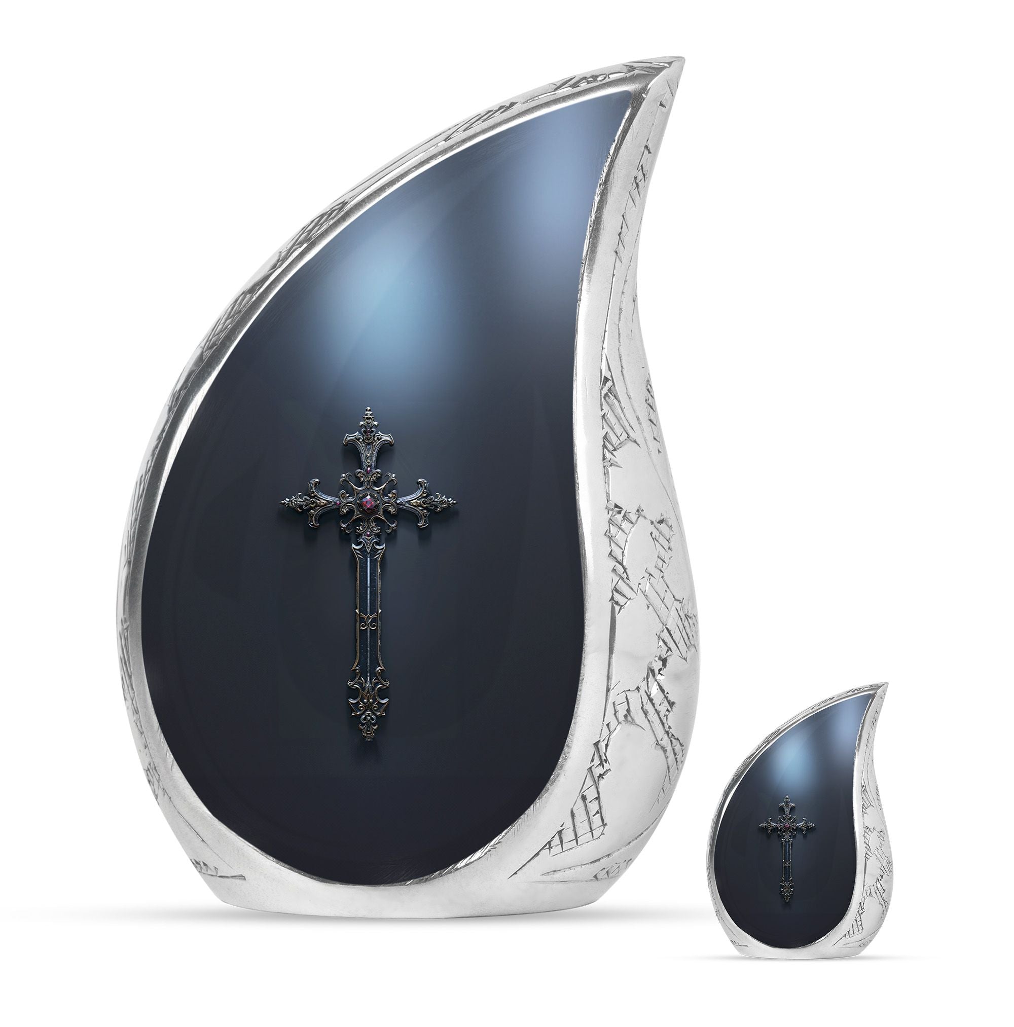 Crafted from durable aluminium, this urn combines strength with elegance, featuring a symbolic cross motif that represents faith and eternal love. With a secure screw-top lid and 200 cubic inch capacity, it provides peace of mind while serving as a dignified resting place. Whether chosen as a standalone piece or paired with miniature urns for human ashes, it brings comfort and reverence to any memorial.
