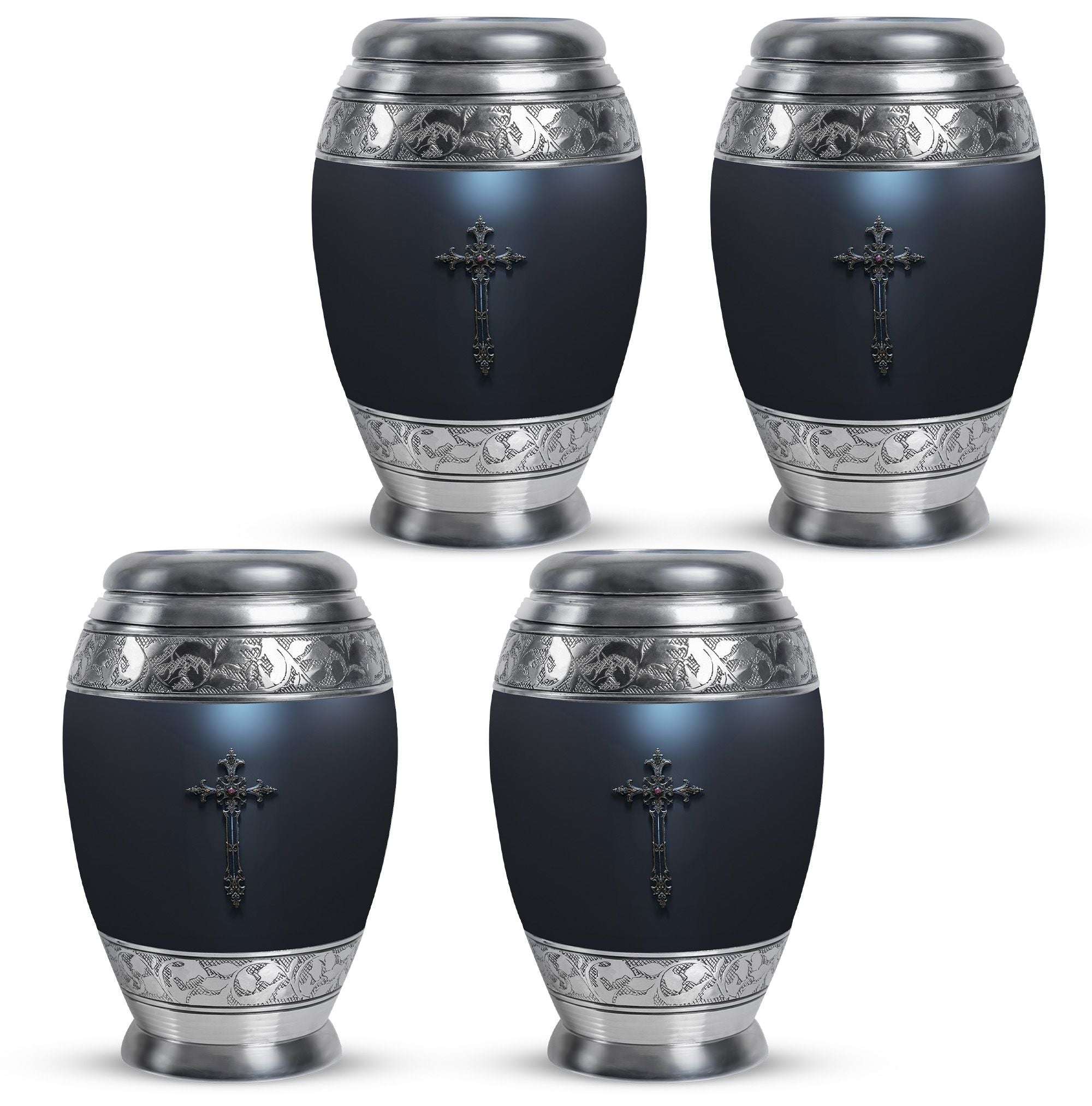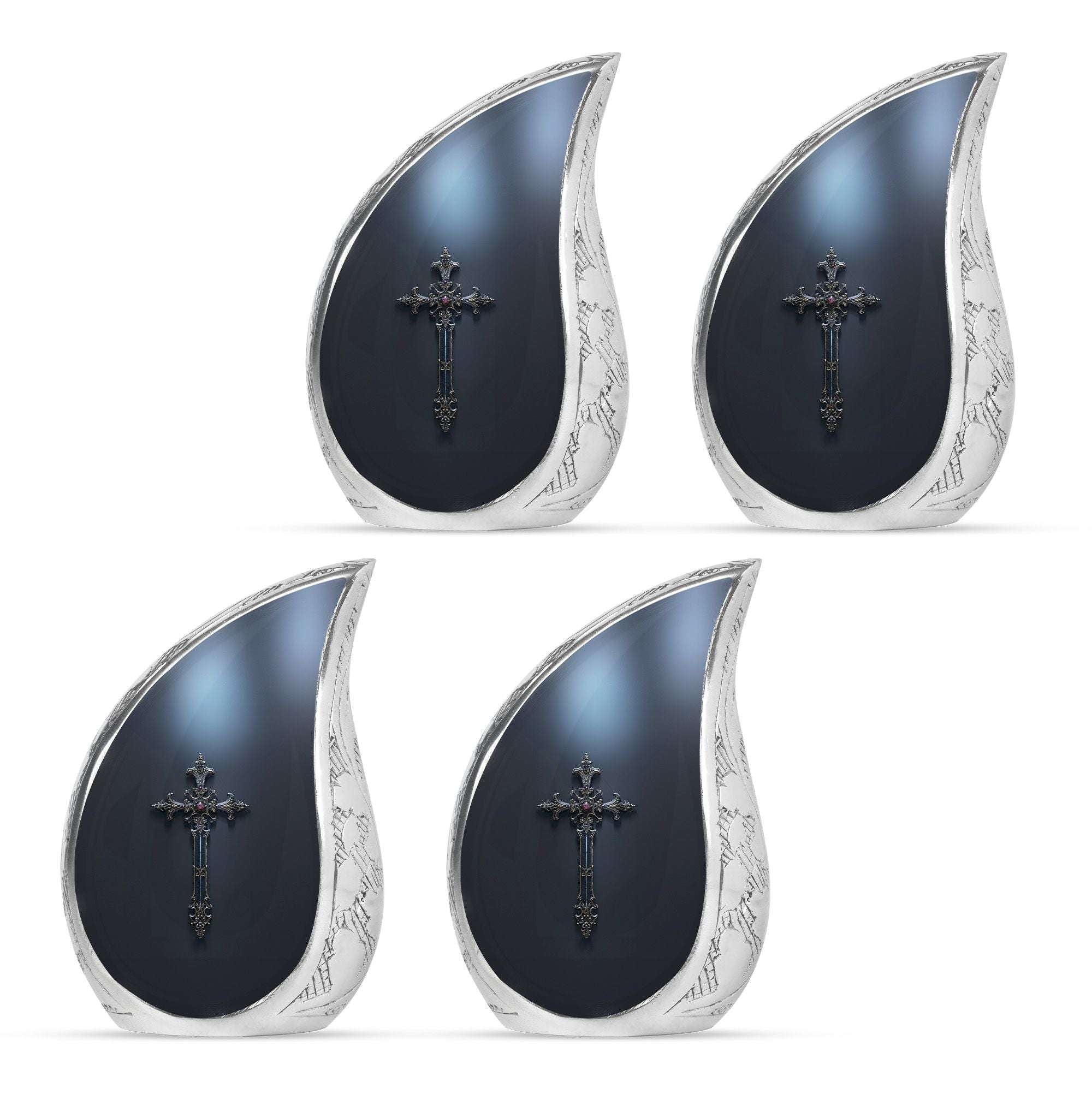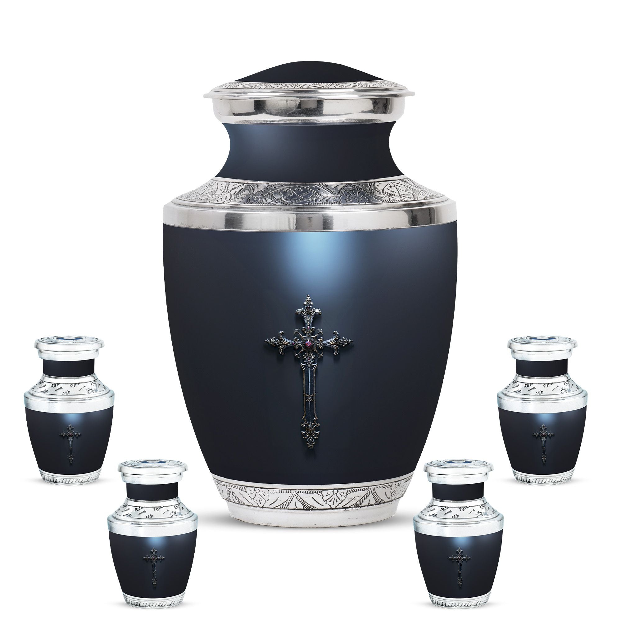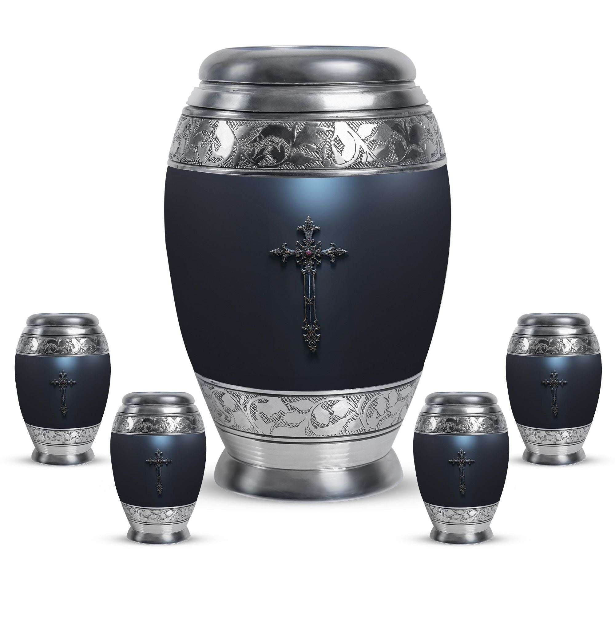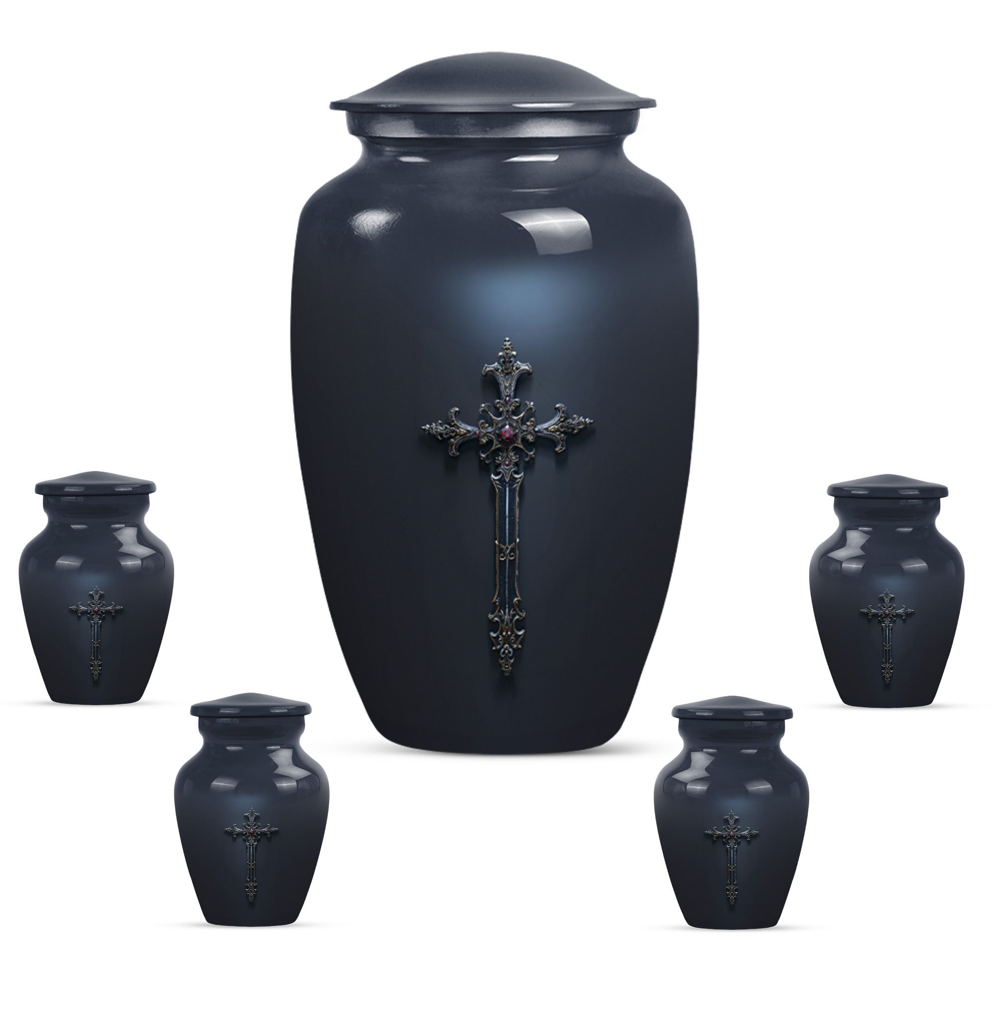 Crafted from durable aluminium, this urn combines strength with elegance, featuring a symbolic cross motif that represents faith and eternal love. With a secure screw-top lid and 200 cubic inch capacity, it provides peace of mind while serving as a dignified resting place. Whether chosen as a standalone piece or paired with miniature urns for human ashes, it brings comfort and reverence to any memorial.
