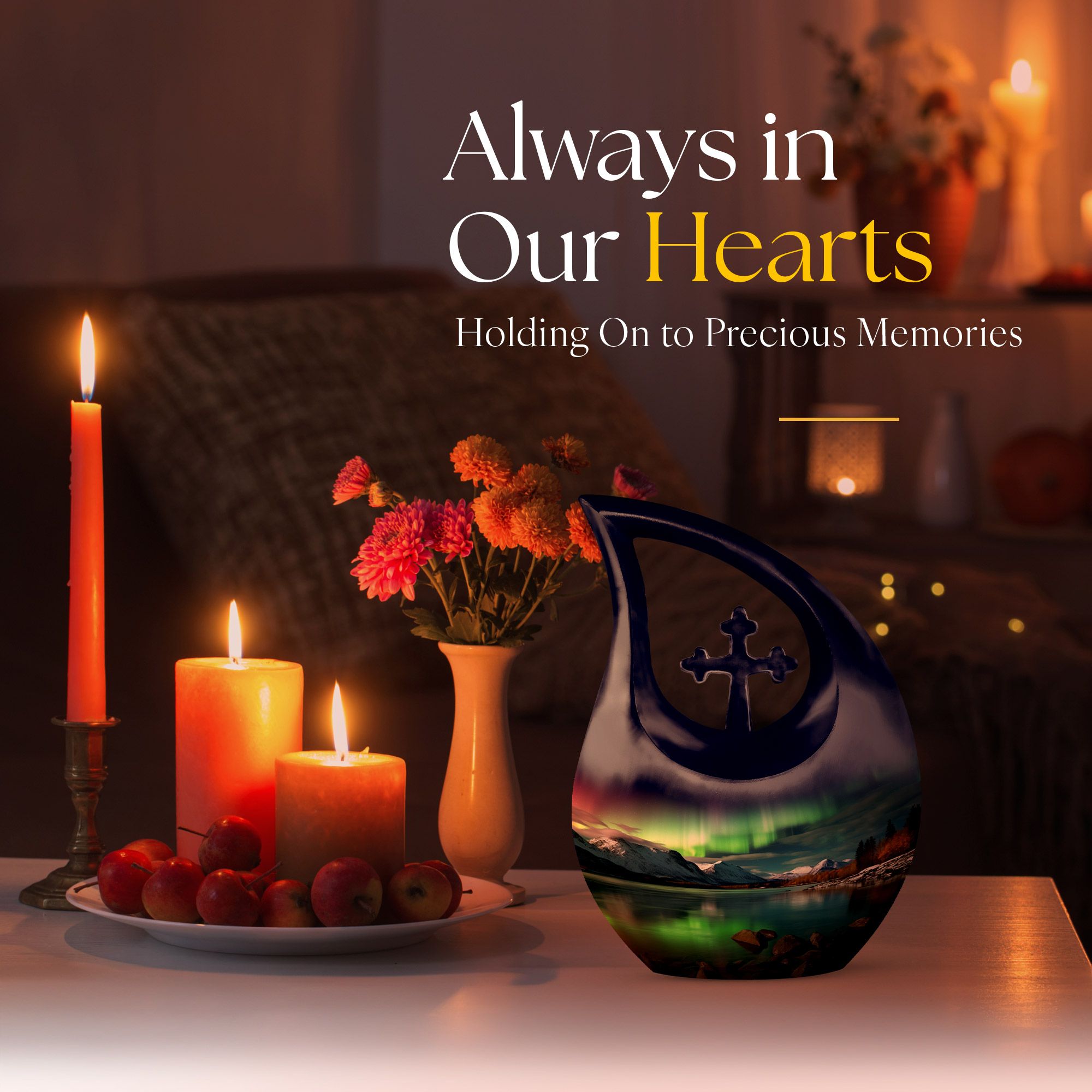 The Vivid Northern Lights Urn is more than a vessel — it’s a symbol of everlasting connection, where every shimmer mirrors the love that will never fade.