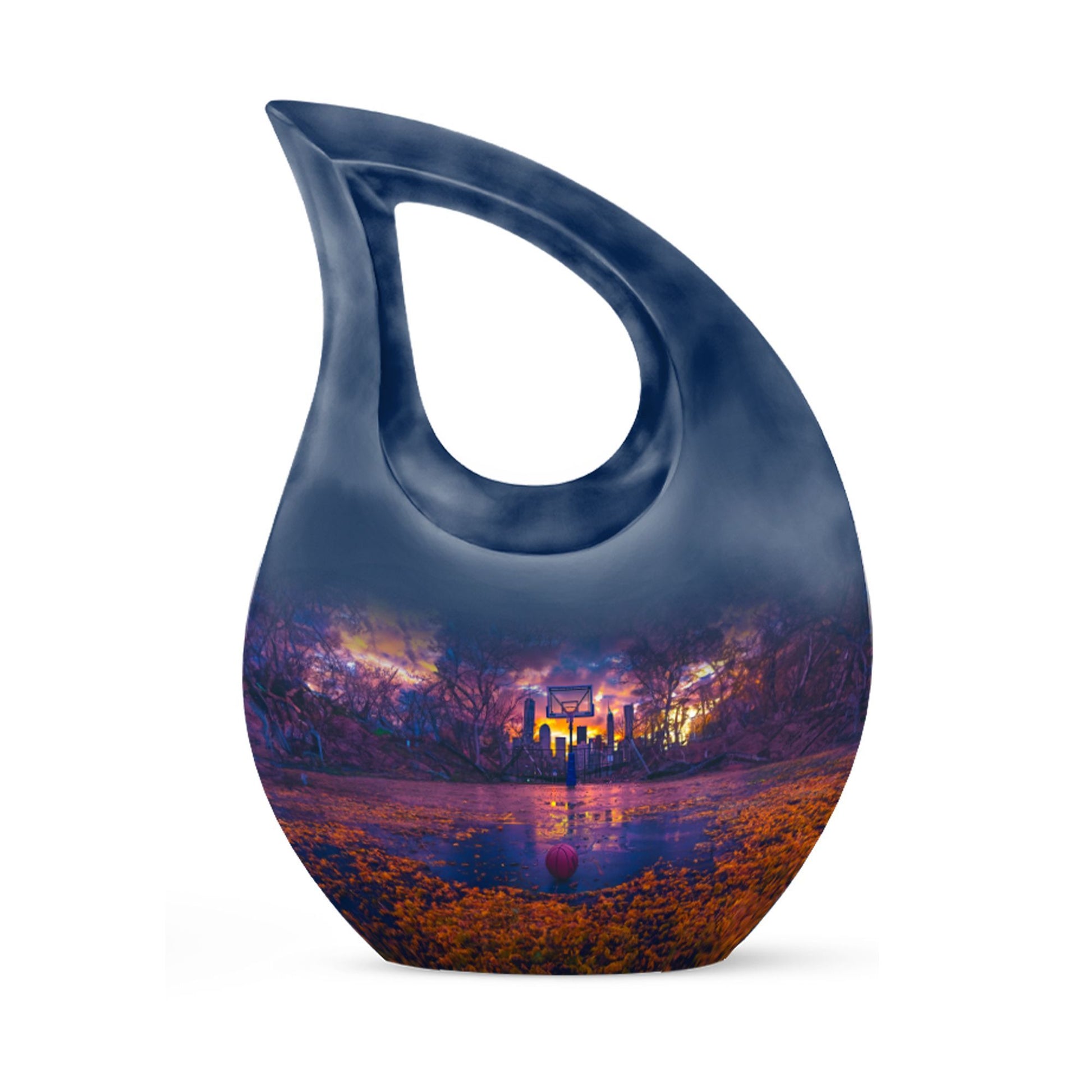 Celebrate the unique life of a loved one who was passionate about basketball with our 10-inch Basketball Urn. This substantial ashes keepsake, with a weight of 3.3 pounds, stands out with its detailed 'Cross Drop' design, perfectly encapsulating the spirit of your beloved. The urn is made from resilient aluminium, guaranteeing longevity. Its sizable capacity allows for the holding of 200 cubic inches of remains. Extra attention to detail is added with the option to personalize the urn with engraved names, adding a touch of individuality and meaning to this memorial piece. Packaged with a velvet pouch for the secure containment of ashes, this large urn offers a touching tribute to your loved one. While ideal for basketball enthusiasts, its elegant design makes it a respectful commemoration for all. Among companion urns and cremation keepsakes, its affordability and functionality make it stand out. If you seek butterfly urns for ashes or other innovative cremation solutions, our collection caters to diverse preferences.
