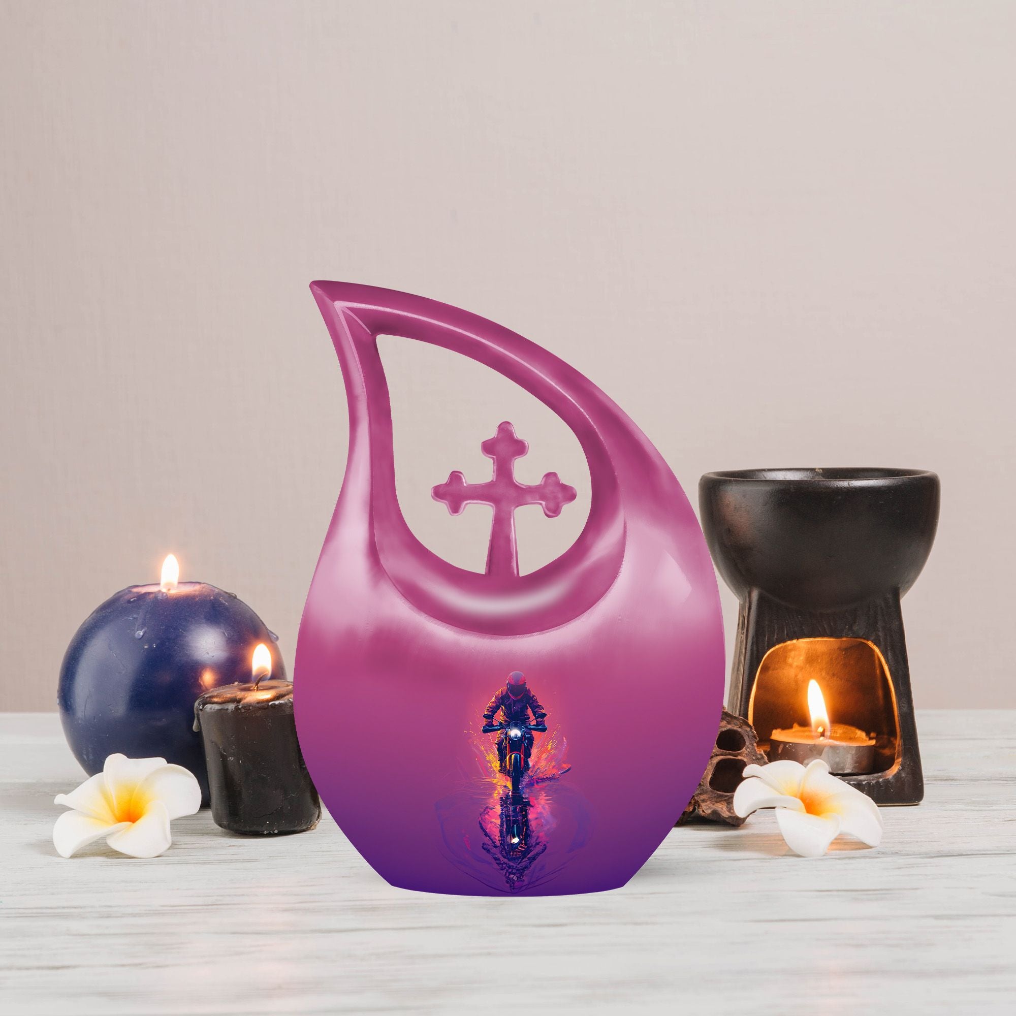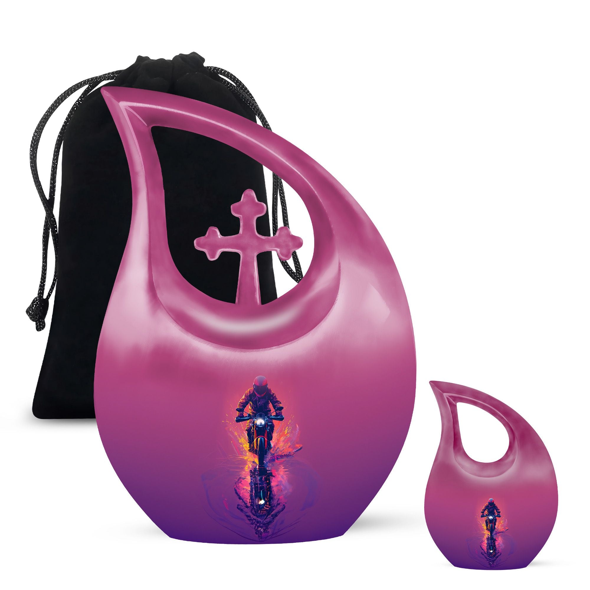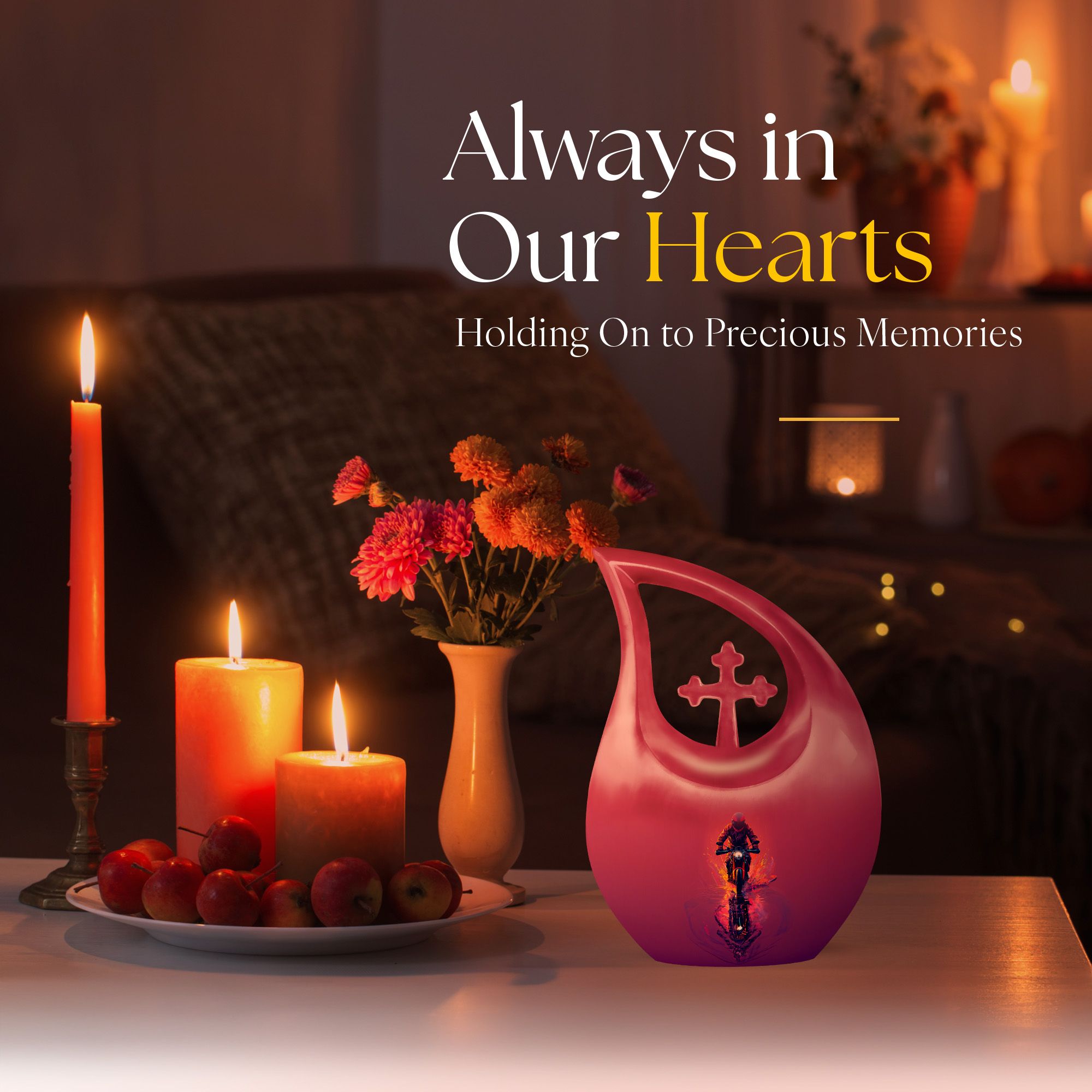 Crafted from durable aluminium with a detailed motorcycle design, this urn blends artistry with long-lasting protection. Its polished finish and secure screw-top lid ensure safety and peace of mind, making it ideal for those looking for an urn for human ashes adult women, adult urns for men & women, or a loving urn for women ashes. This design also serves families searching for funeral urns for men, small urns for women human ashes, or elegant options such as urns for human ashes women and urns for adults men. The versatile style also complements memorial needs such as burial urns urn for ashes for women, while providing a dignified option for honoring an urn for human ashes adult men.