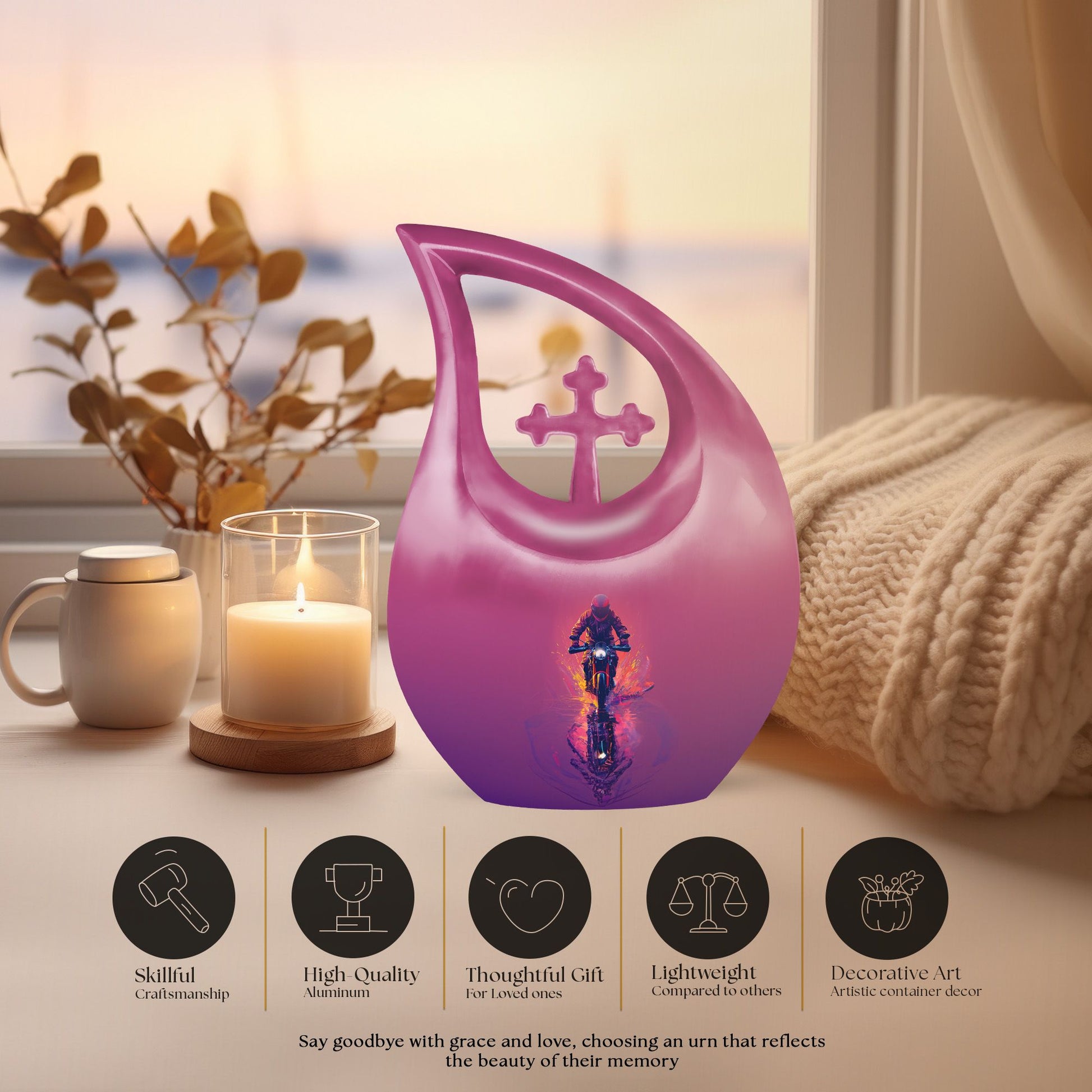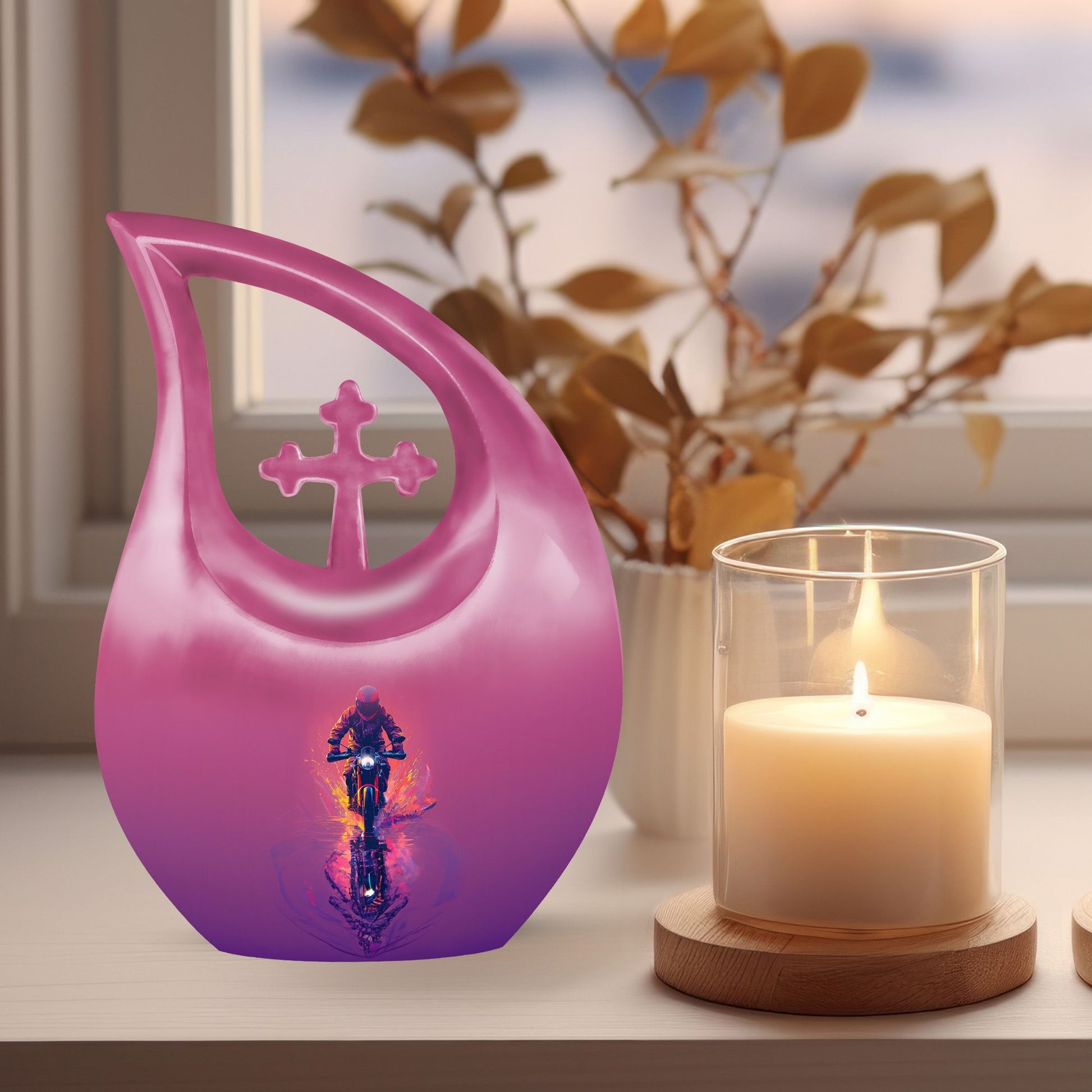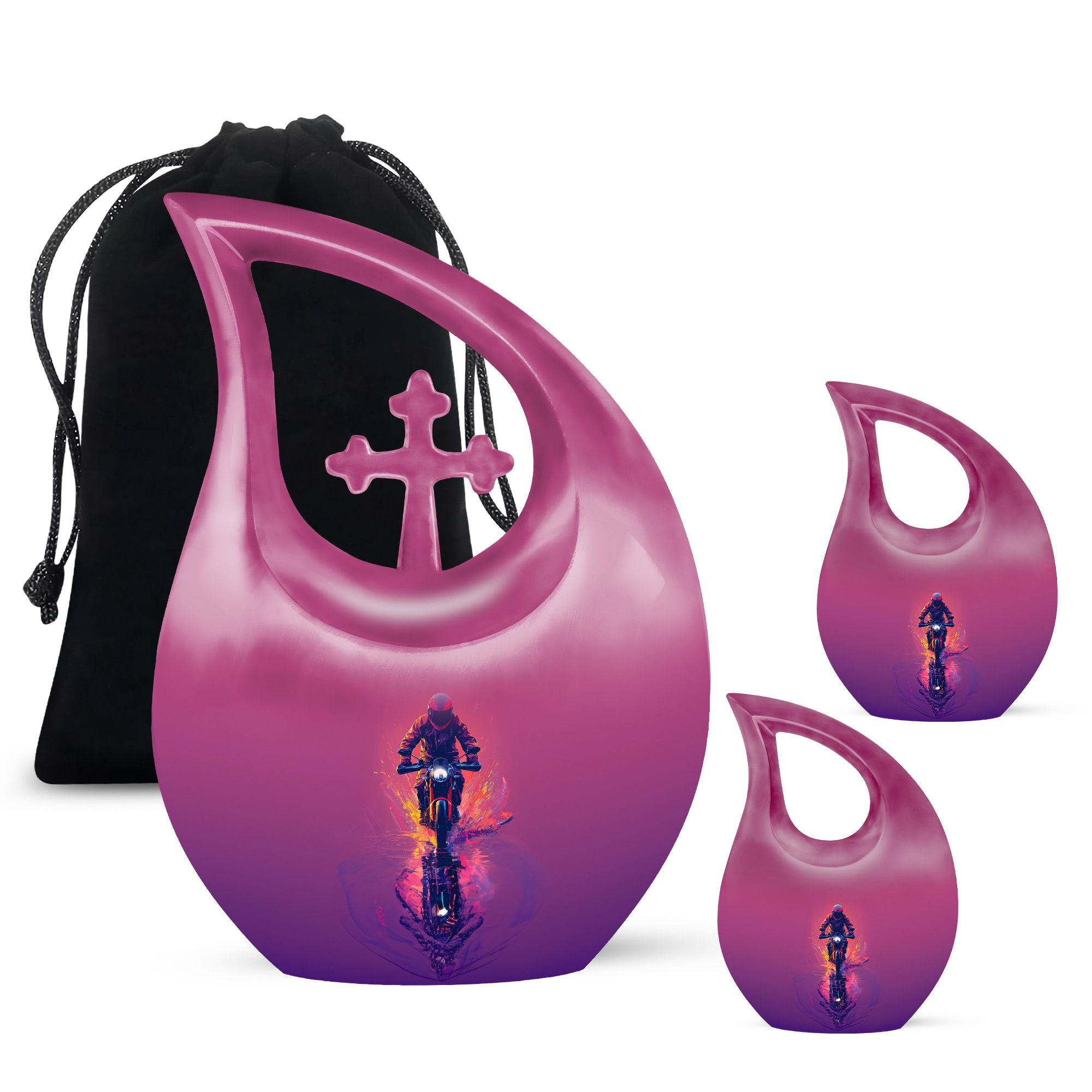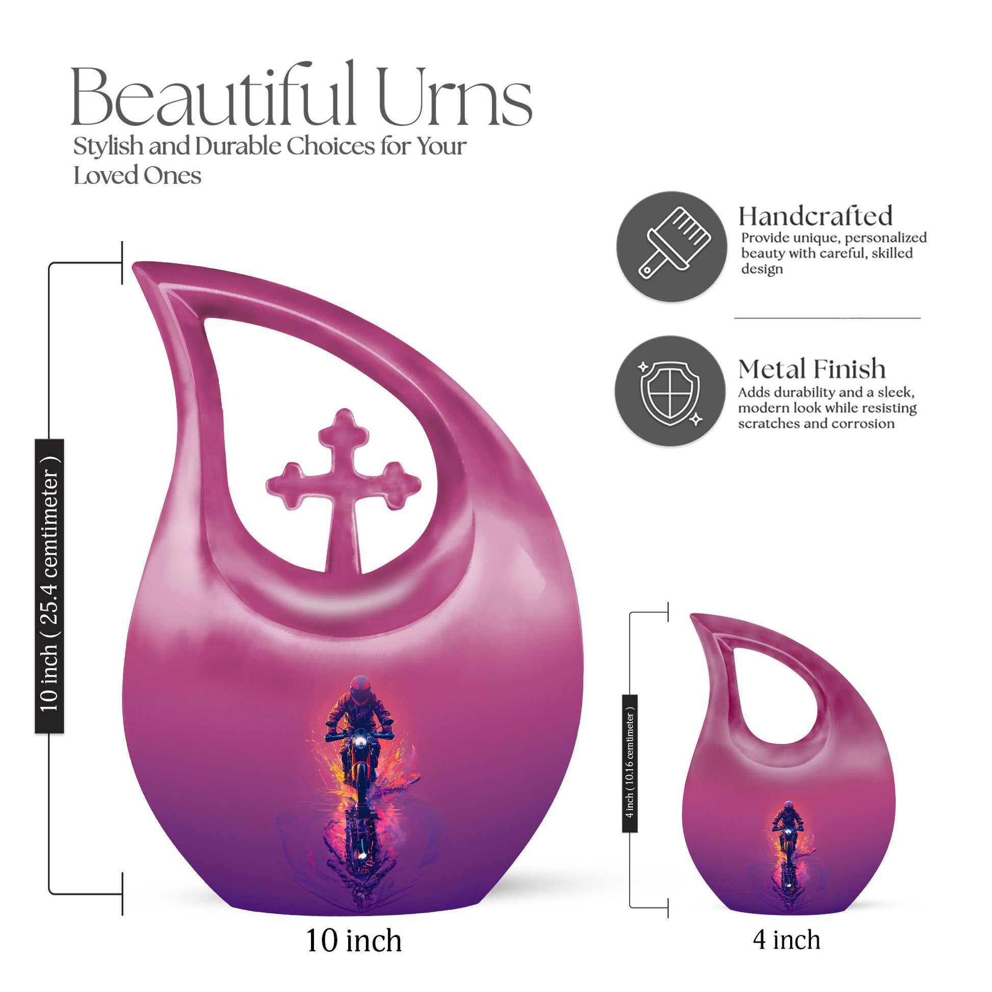 Crafted from durable aluminium with a detailed motorcycle design, this urn blends artistry with long-lasting protection. Its polished finish and secure screw-top lid ensure safety and peace of mind, making it ideal for those looking for an urn for human ashes adult women, adult urns for men & women, or a loving urn for women ashes. This design also serves families searching for funeral urns for men, small urns for women human ashes, or elegant options such as urns for human ashes women and urns for adults men. The versatile style also complements memorial needs such as burial urns urn for ashes for women, while providing a dignified option for honoring an urn for human ashes adult men.