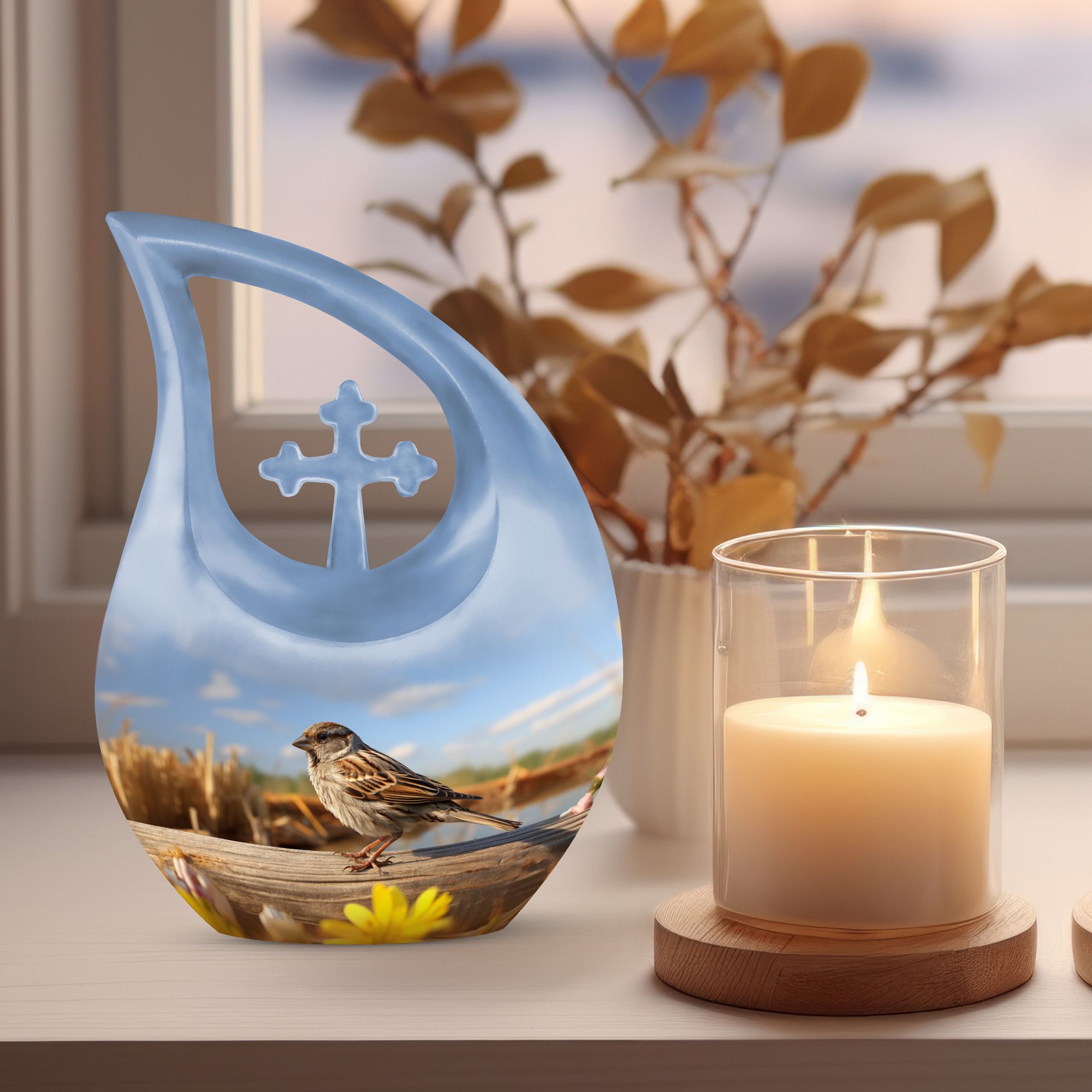 The Small Bird Memorial Urn embodies harmony and remembrance — a beautiful keepsake that speaks to the soul and preserves a legacy of peace and devotion.