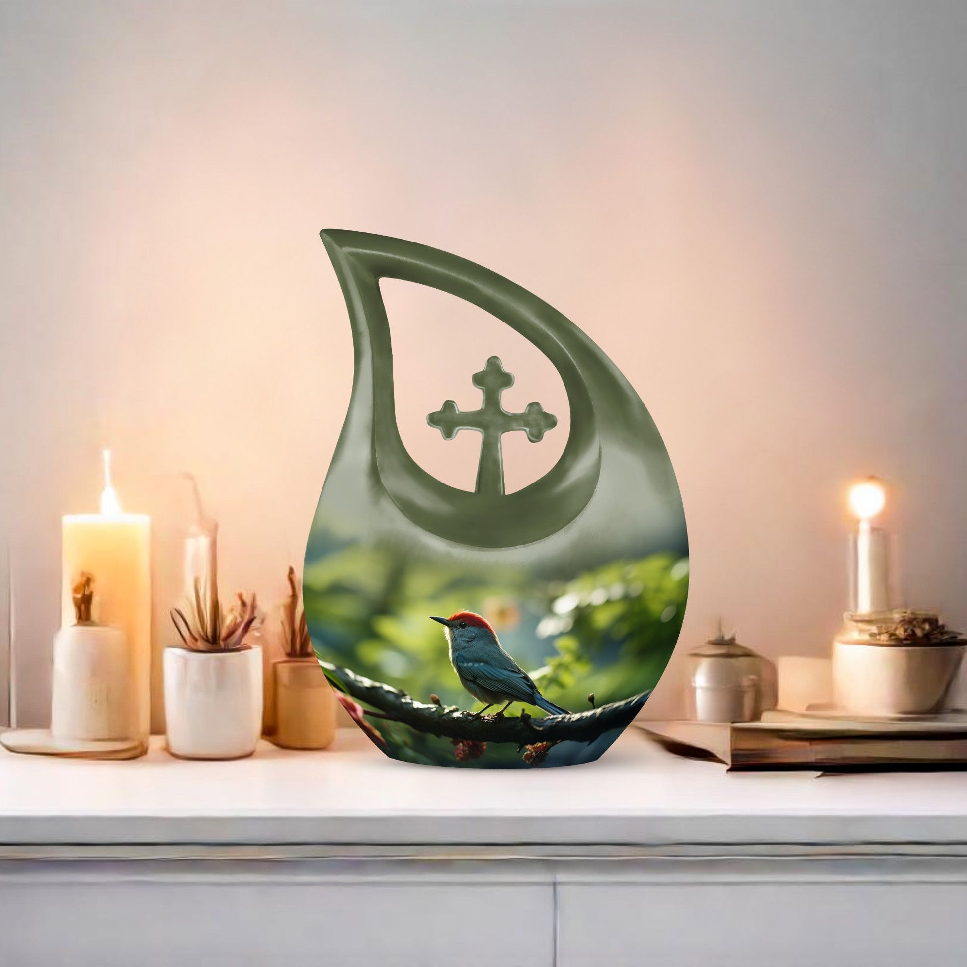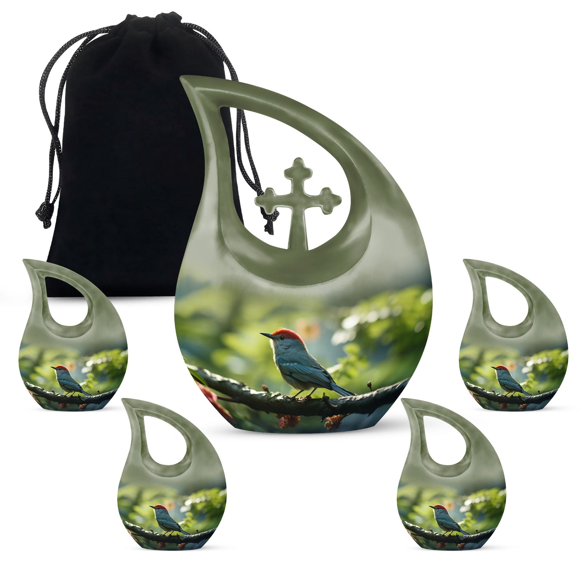 Cherish the memory of your loved one with the Small Bird Memorial Urn, a beautifully handcrafted piece symbolizing peace, hope, and eternal love. The gentle sage green hue and elegant bird motif evoke serenity, making it a perfect urn for ashes adult male or urn for ashes adult female. Thoughtfully designed for smaller portions of ashes, it provides a meaningful way for families to share in remembrance.