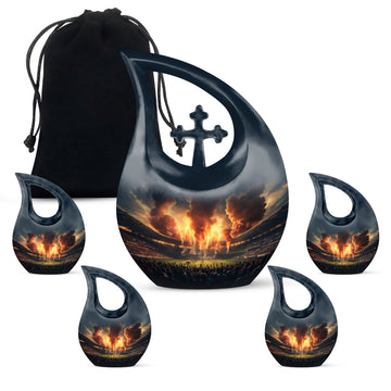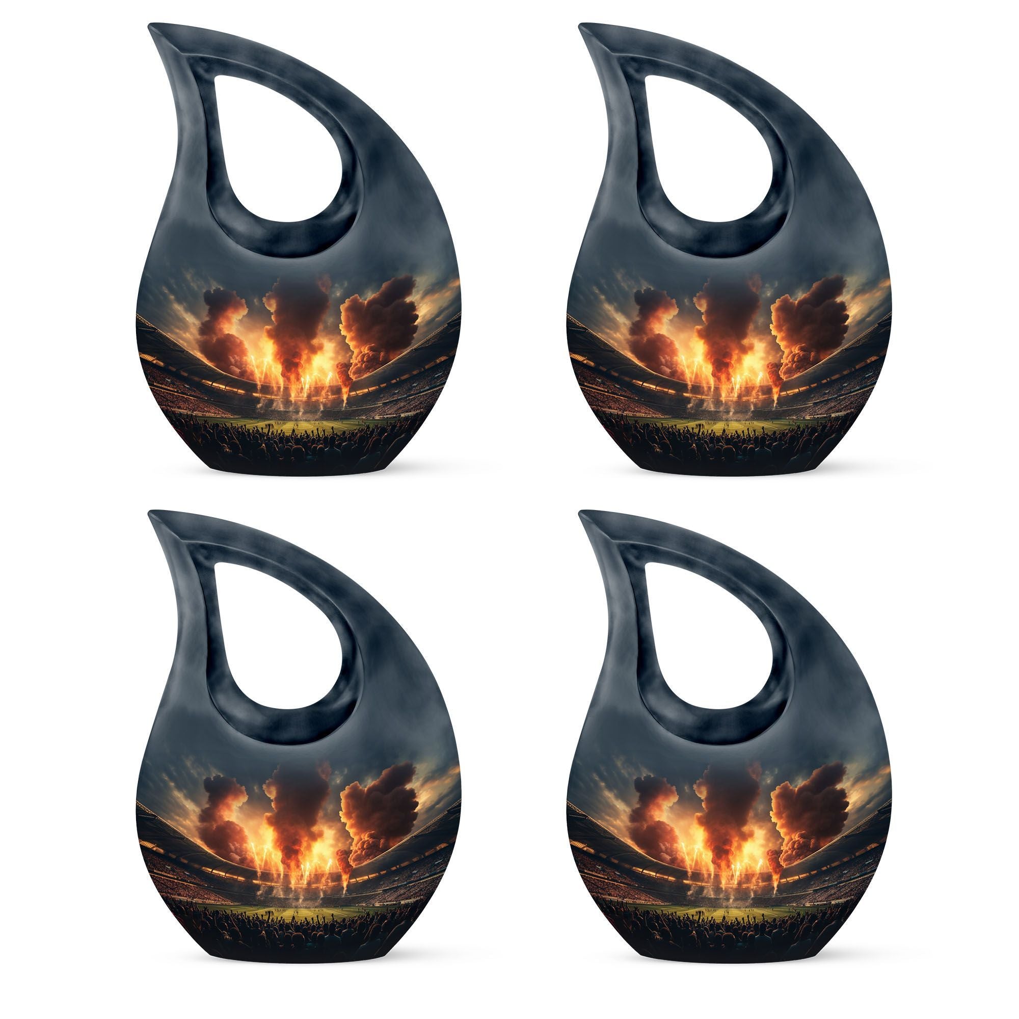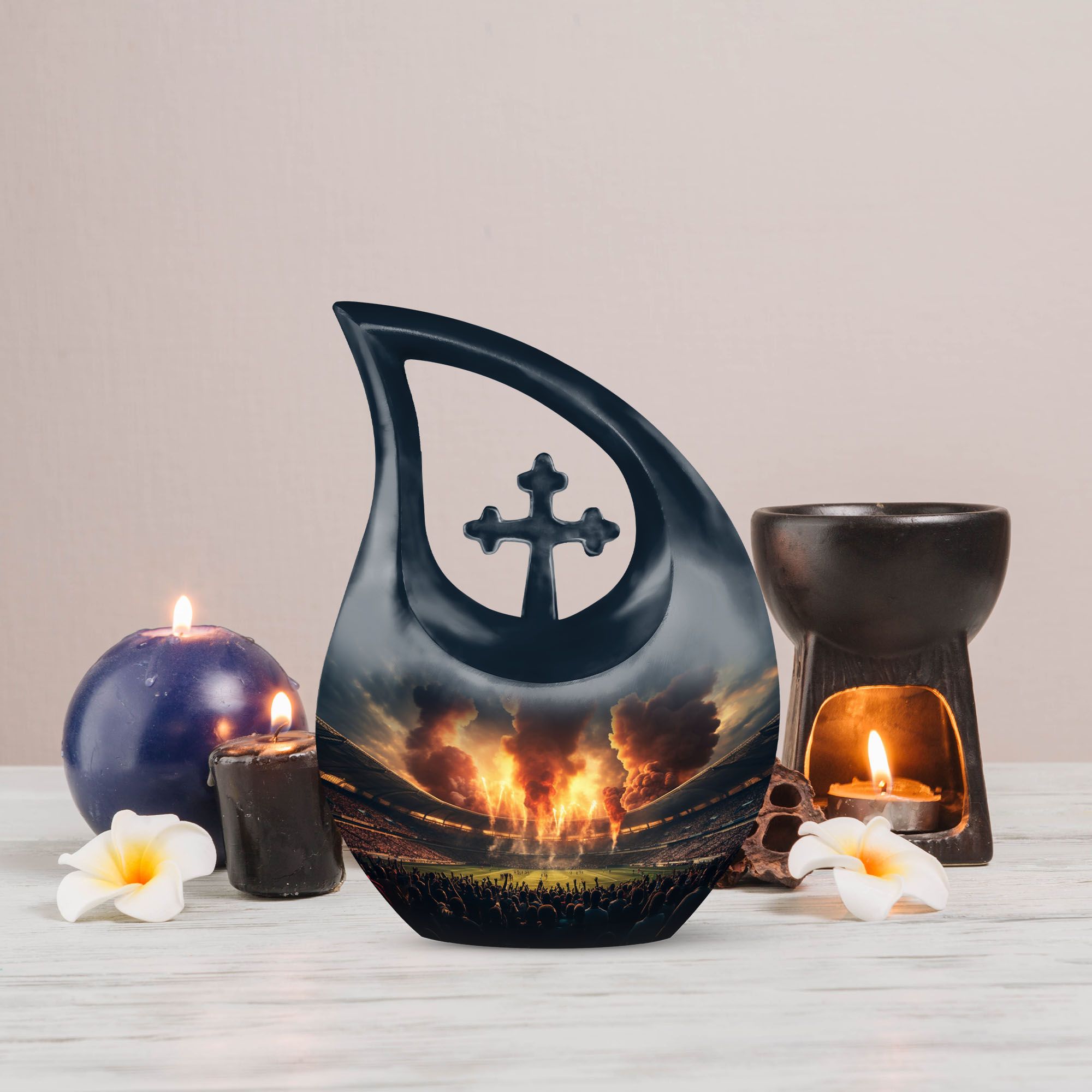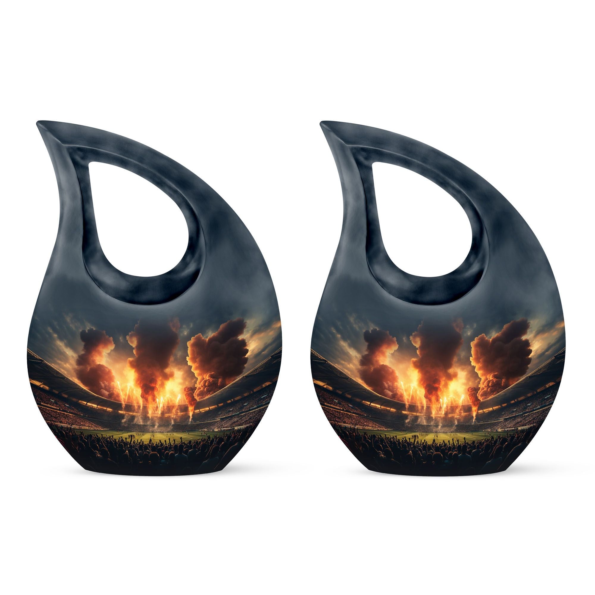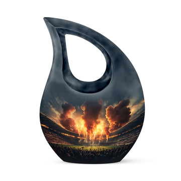 Expertly crafted from durable aluminum, this urn memorial for sale features a vivid stadium design illuminated by sunset tones, providing a meaningful resting place for your loved one's ashes. The 10-inch adult-size capacity makes it a dependable choice among cremation urn for adult, adult cremation urn, and human cremation urn options. It also pairs perfectly with companion pieces such as cremation mini urn, cremation ashes keepsake, or complete cremation urns for human ashes adult set collections. Families wishing to distribute ashes among relatives can also combine this piece with cremation urns set or cremation ashes urns combo selections.