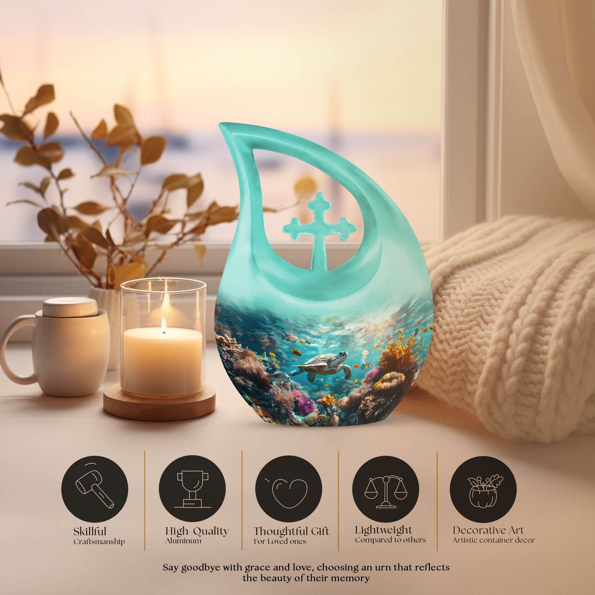 Crafted from durable aluminium, this urn features a serene turtle design that represents protection, wisdom, and a peaceful passage forward. With a polished finish and secure screw-top lid, it provides lasting safety for those searching for small urns for women human ashes, urns for human ashes women, or dignified options for urns for adults men. Its versatile design also supports families needing burial urns urn for ashes for women, a classic urn for human ashes adult men, or gender-inclusive memorials such as men’s urns for human ashes and funeral urns men. This piece also complements remembrance needs for funeral urns women, cremation urn women, cremation urn men, and elegant cremation urns women.