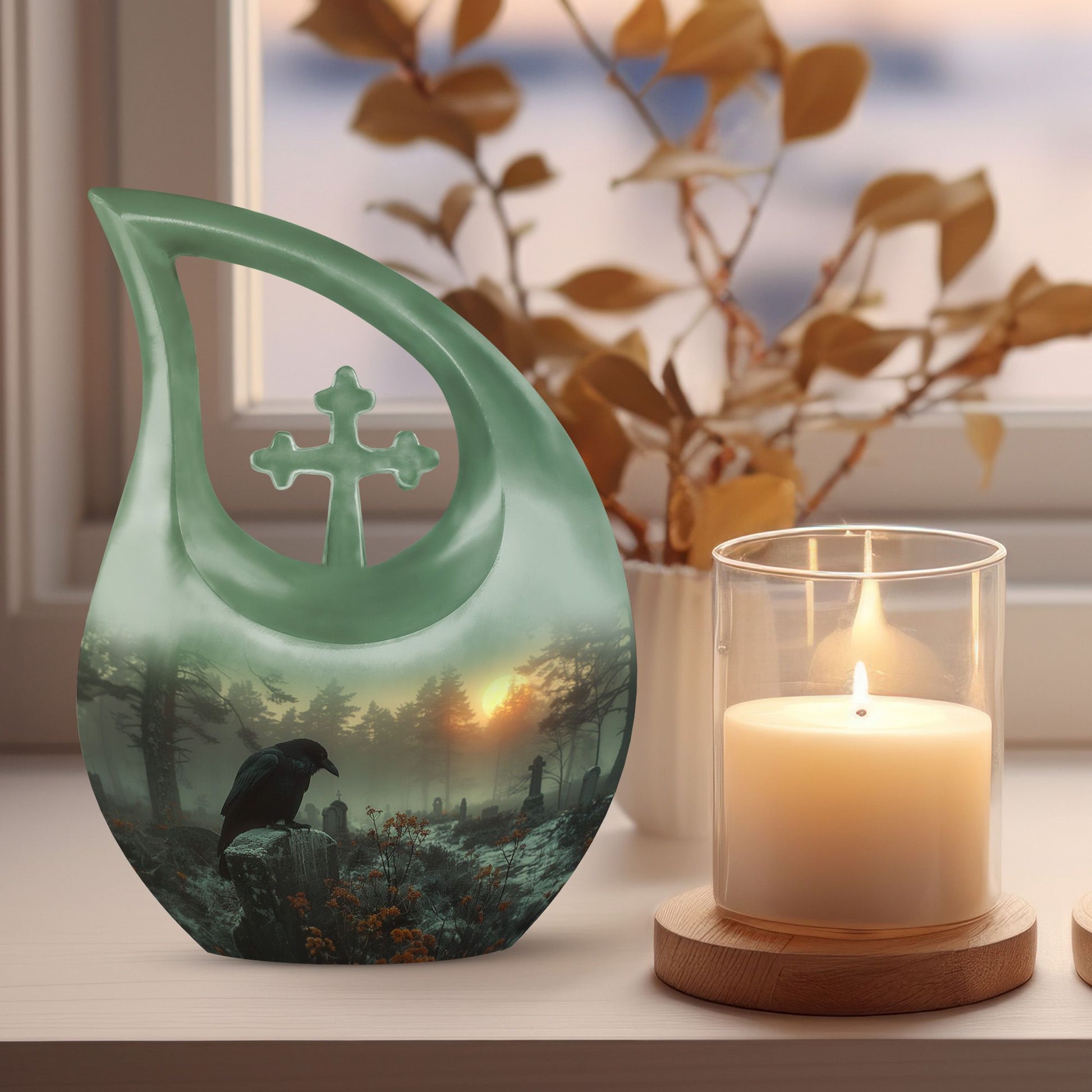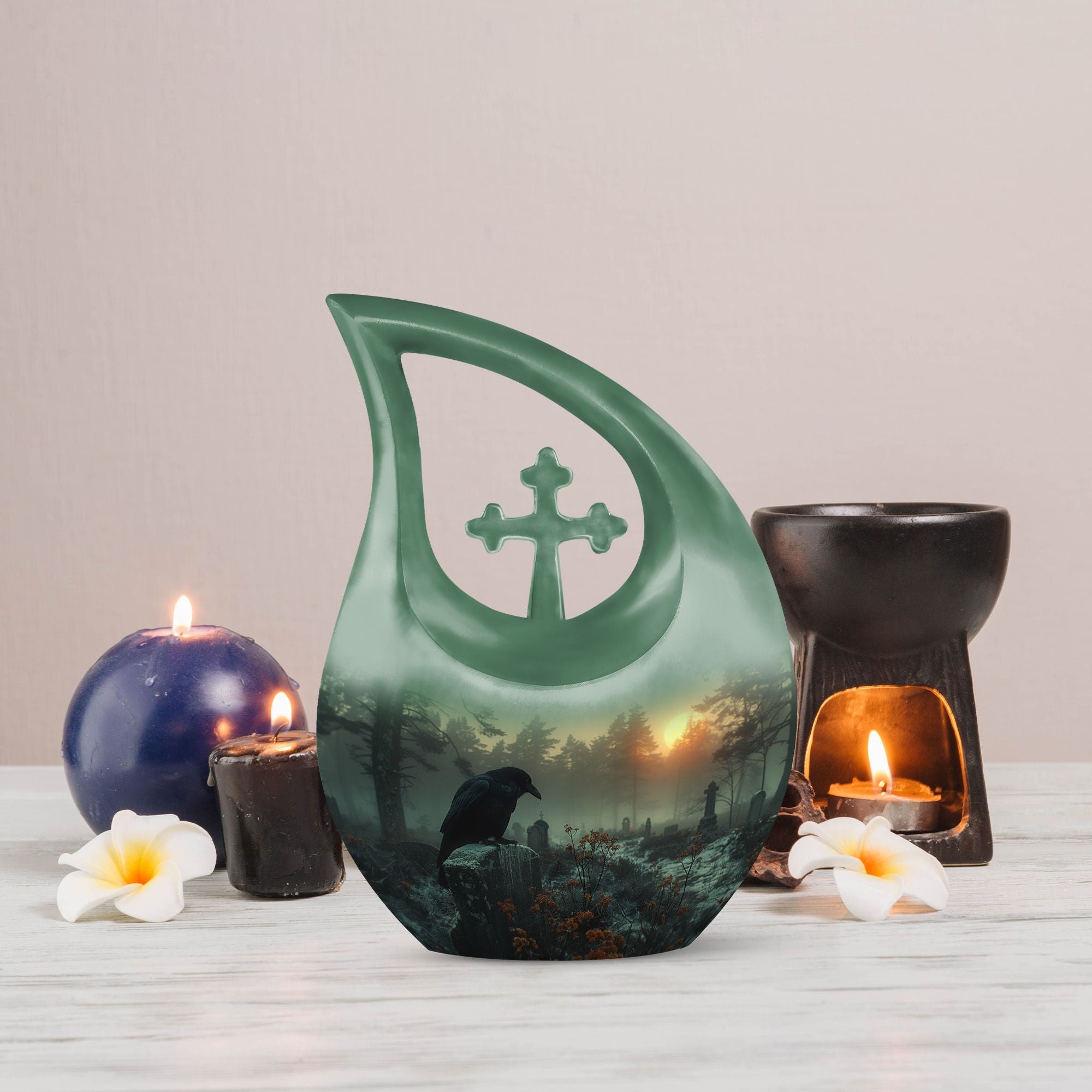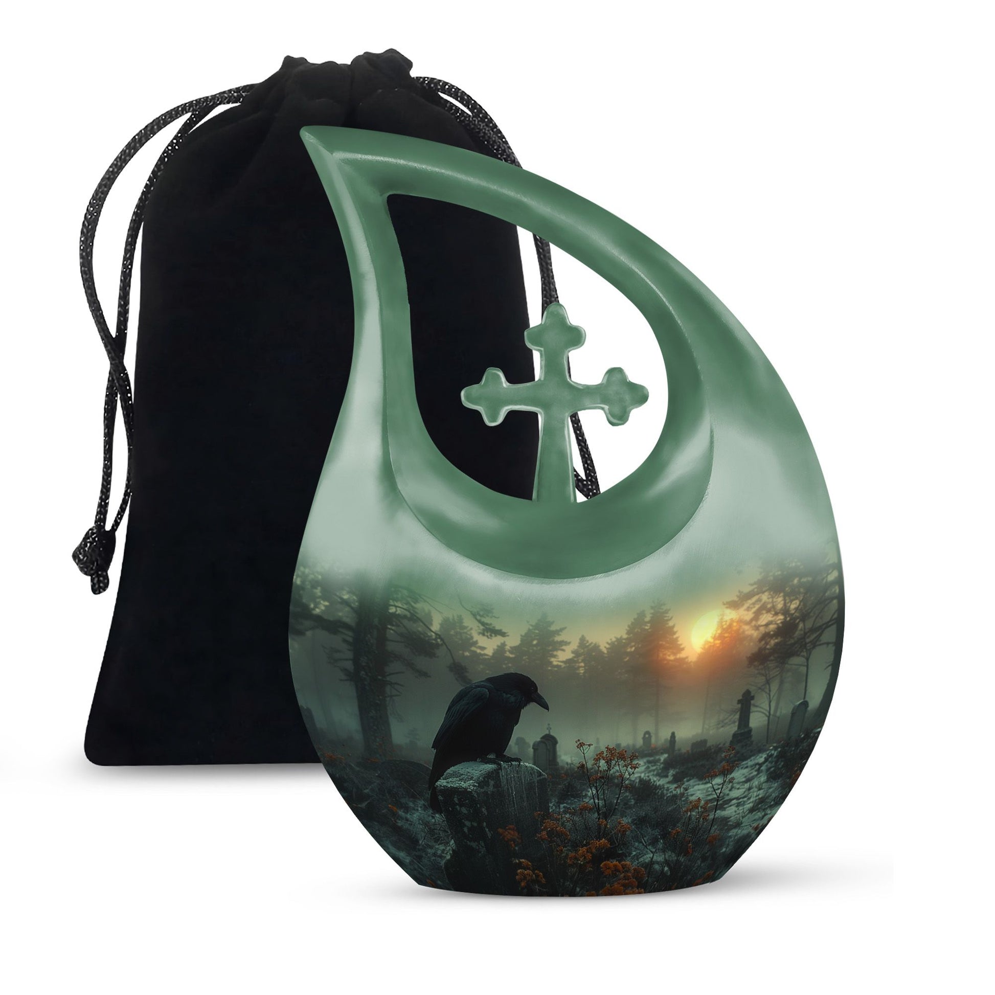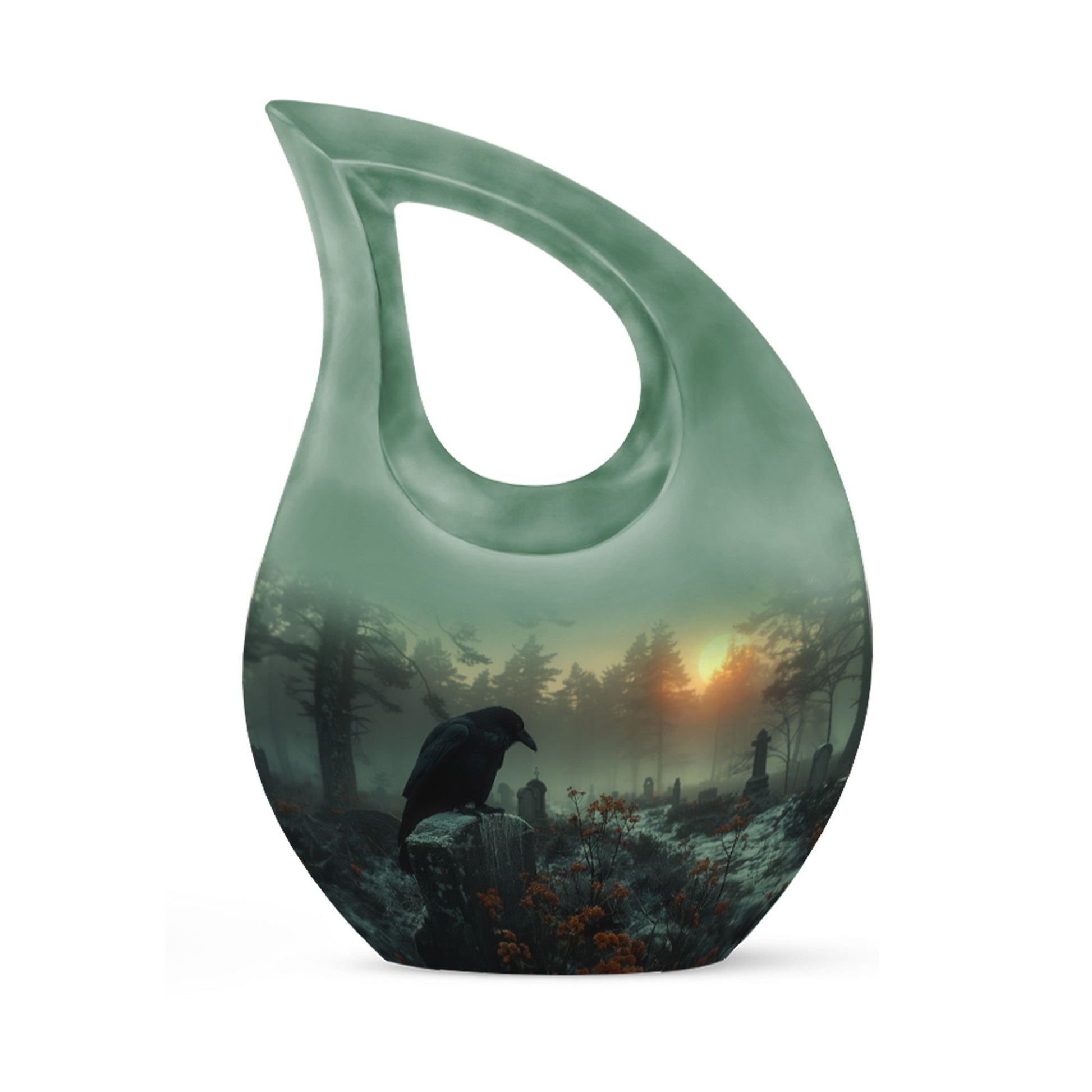 Honor your loved one with this Crow Themed Urn for Funeral, a solemn graveyard-inspired memorial symbolizing reflection, guidance, and eternal remembrance. Its atmospheric design offers a meaningful tribute for families seeking human cremation urns, adult size cremation urn needs, or cremation urn for human ashes adult selections.