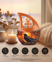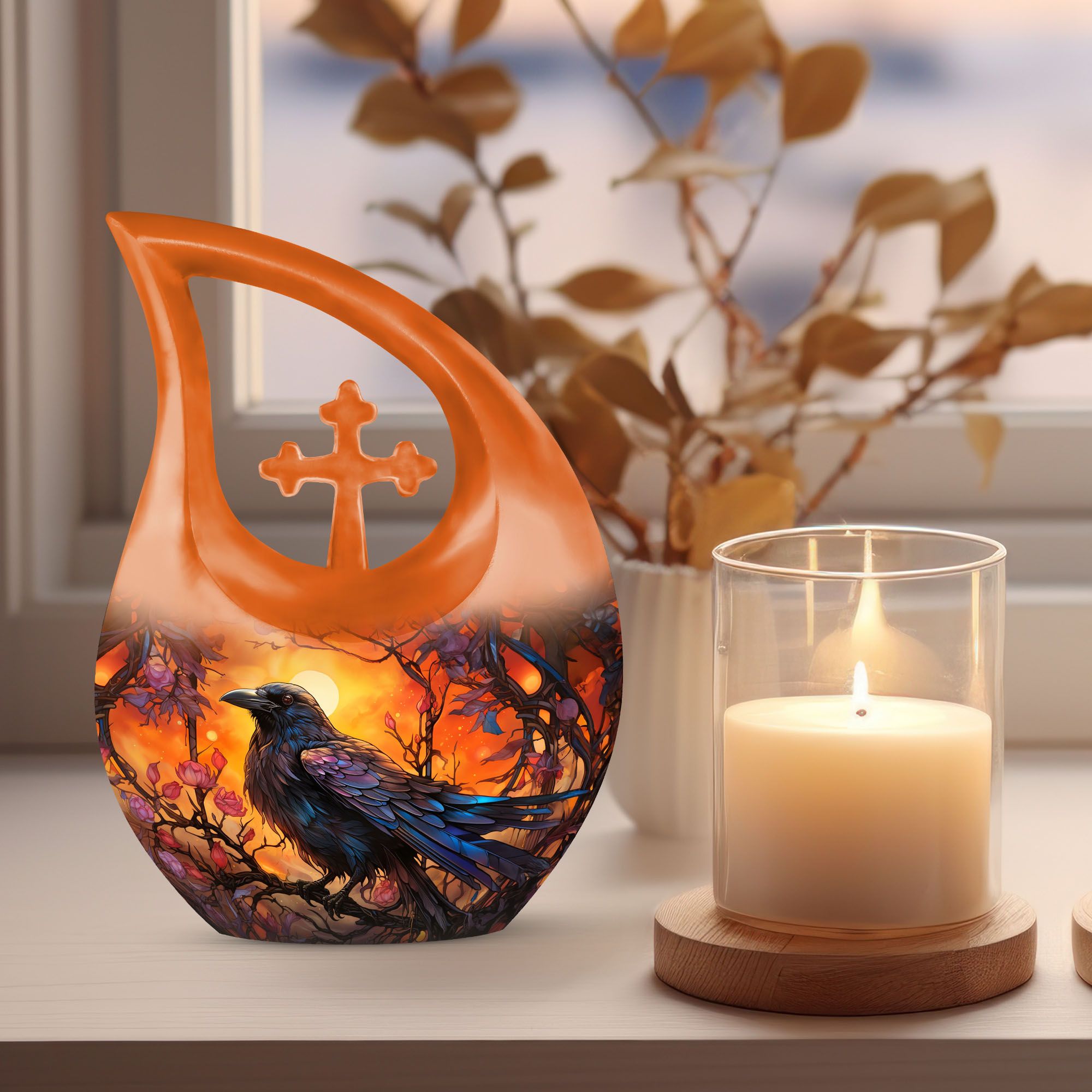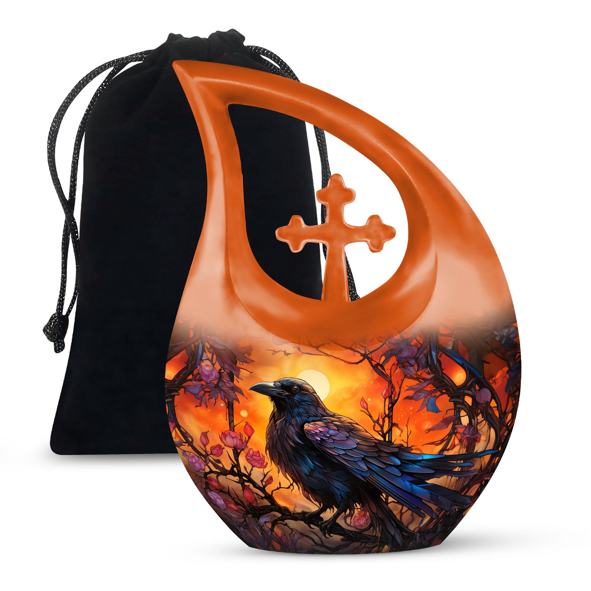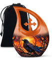 The Crow Themed Urn for Human Ashes is a striking tribute crafted for those who admired the symbolism of the crow — a messenger of transformation, protection, and eternal connection. Designed with deep orange hues and bold artistry, this urn for ashes keepsake embodies strength and wisdom, making it a meaningful choice for honoring a beloved father, husband, or friend.
