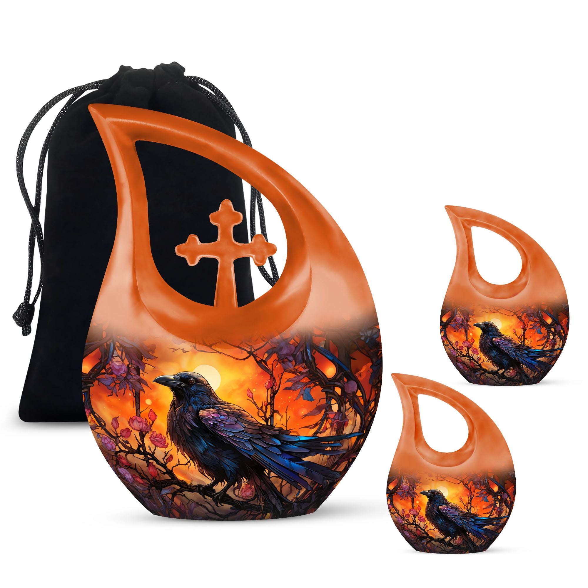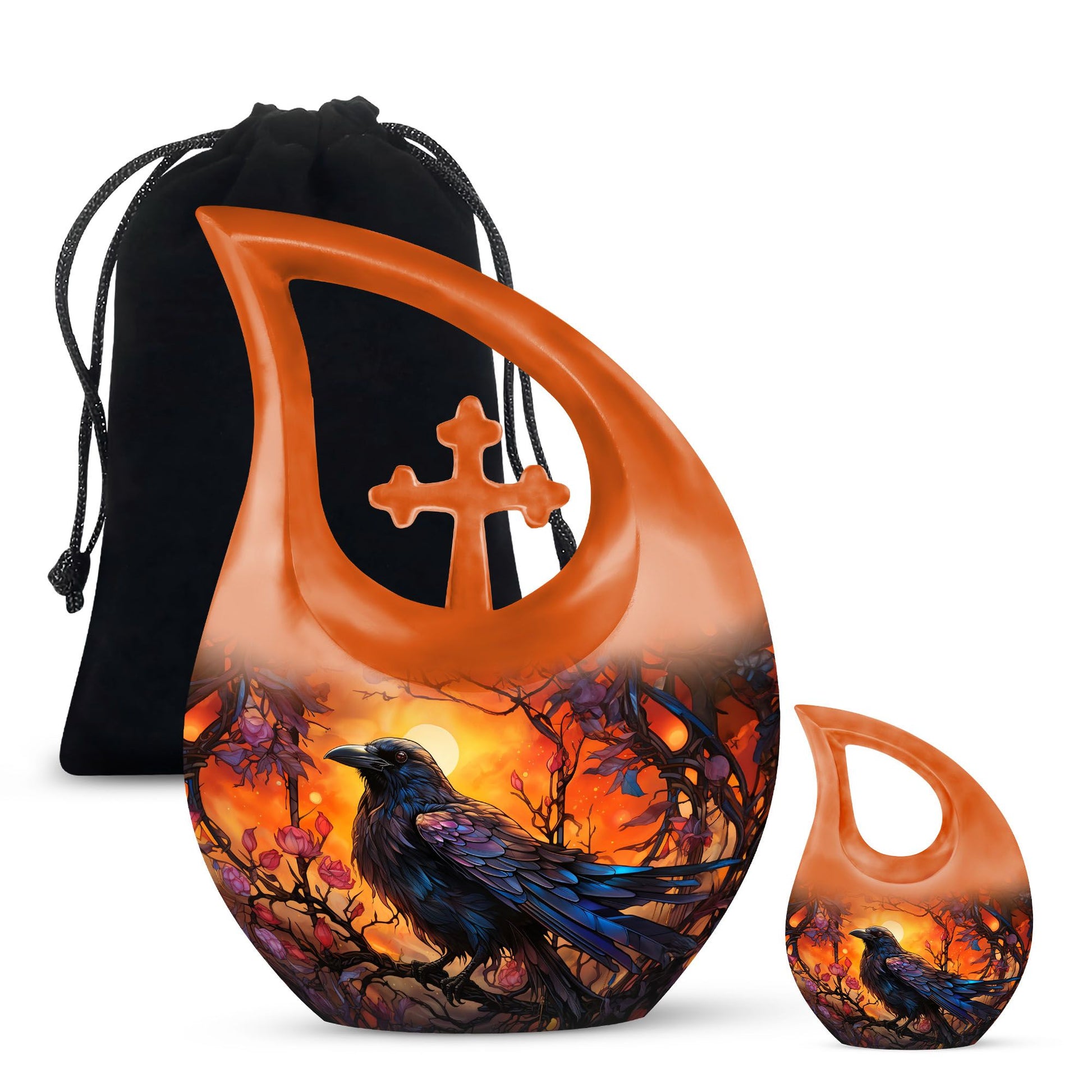 Each human ashes keepsake in this collection serves as a heartfelt memorial keepsake, allowing loved ones to keep a small portion of ashes in a keepsake for ashes or ashes keepsake urn. Perfect as memorial urns for human ashes keepsake, these elegant designs bring both comfort and beauty to any remembrance setting. The Crow Themed Urn stands as a timeless symbol of transformation and everlasting love — a powerful statement of remembrance and peace.