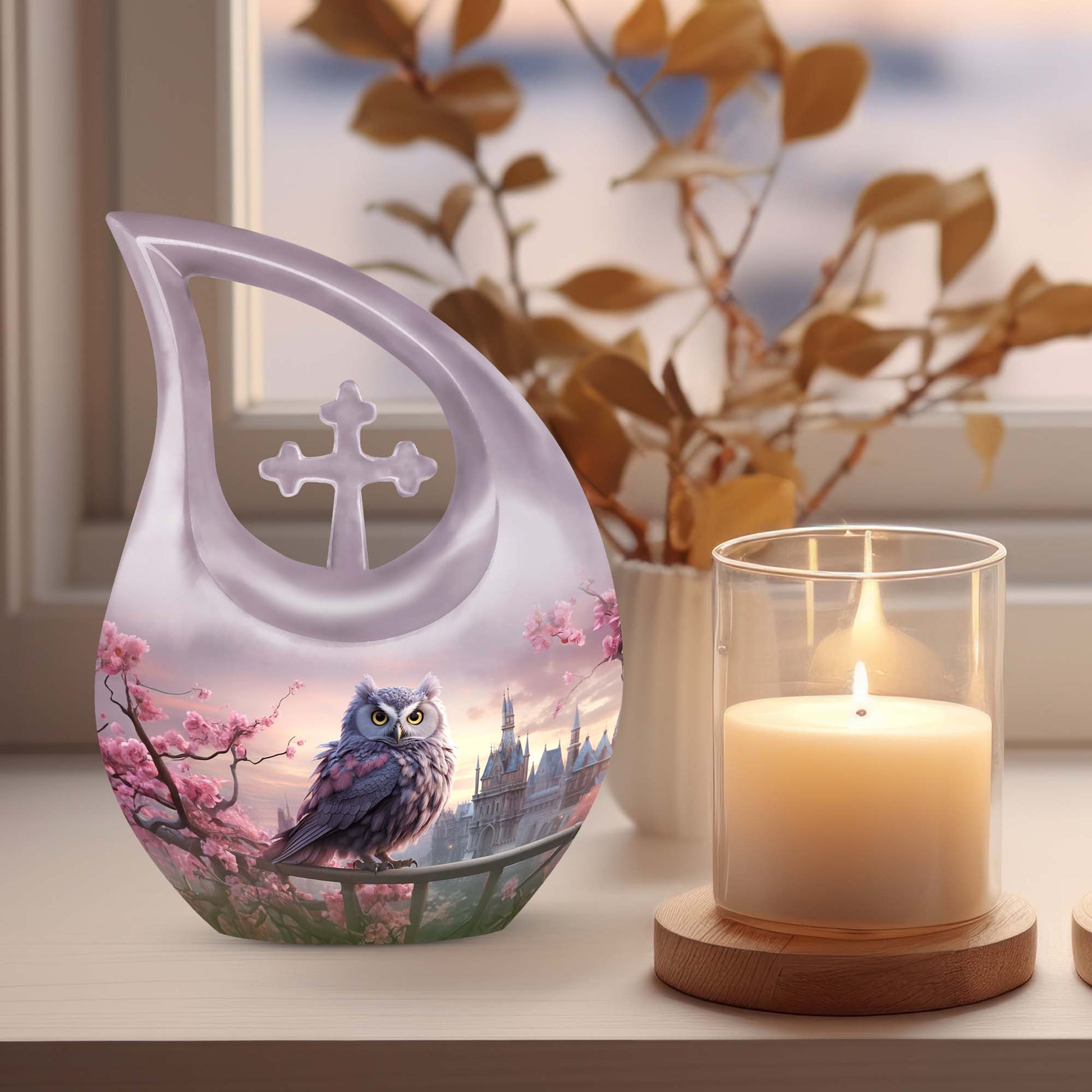 The Owl Memorial Ashes Urn For Sale combines the serenity of cherry blossoms with the wisdom of the owl, creating a heartfelt tribute for your loved one. Perfect for honoring mothers, fathers, or family members, this urn for human ashes adult female or male symbolizes peace, guidance, and the beauty of eternal love.