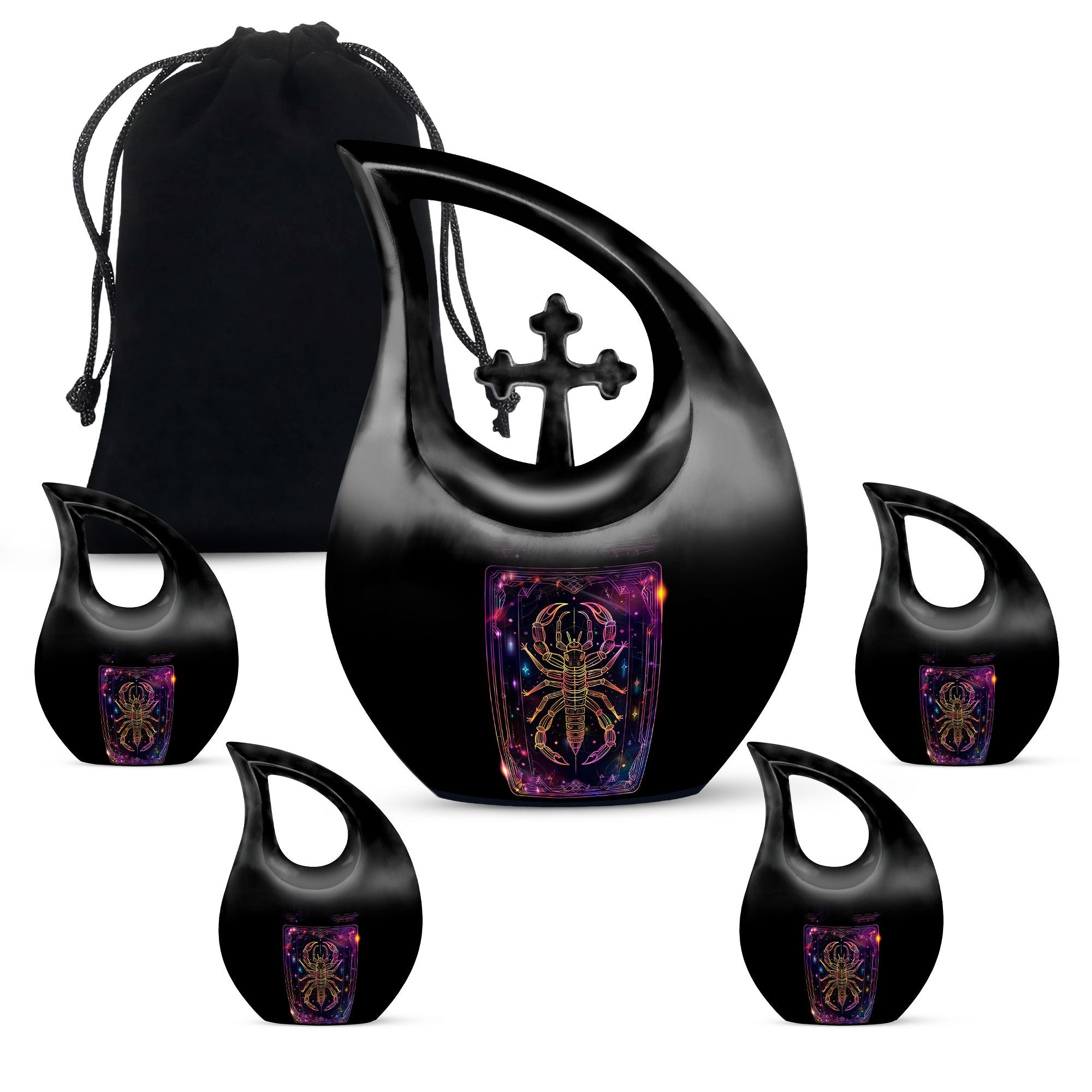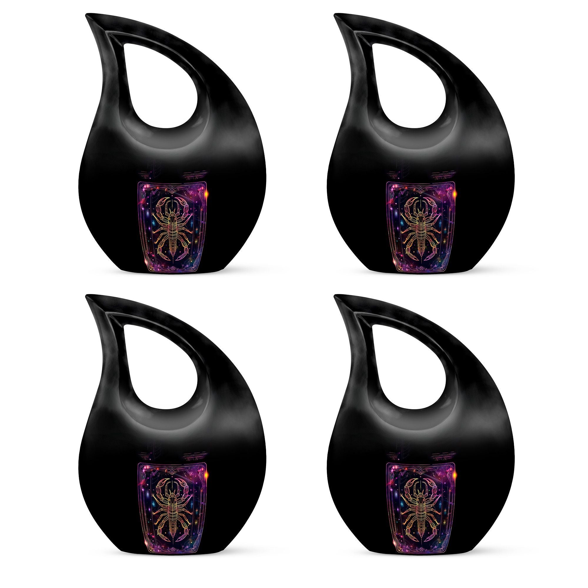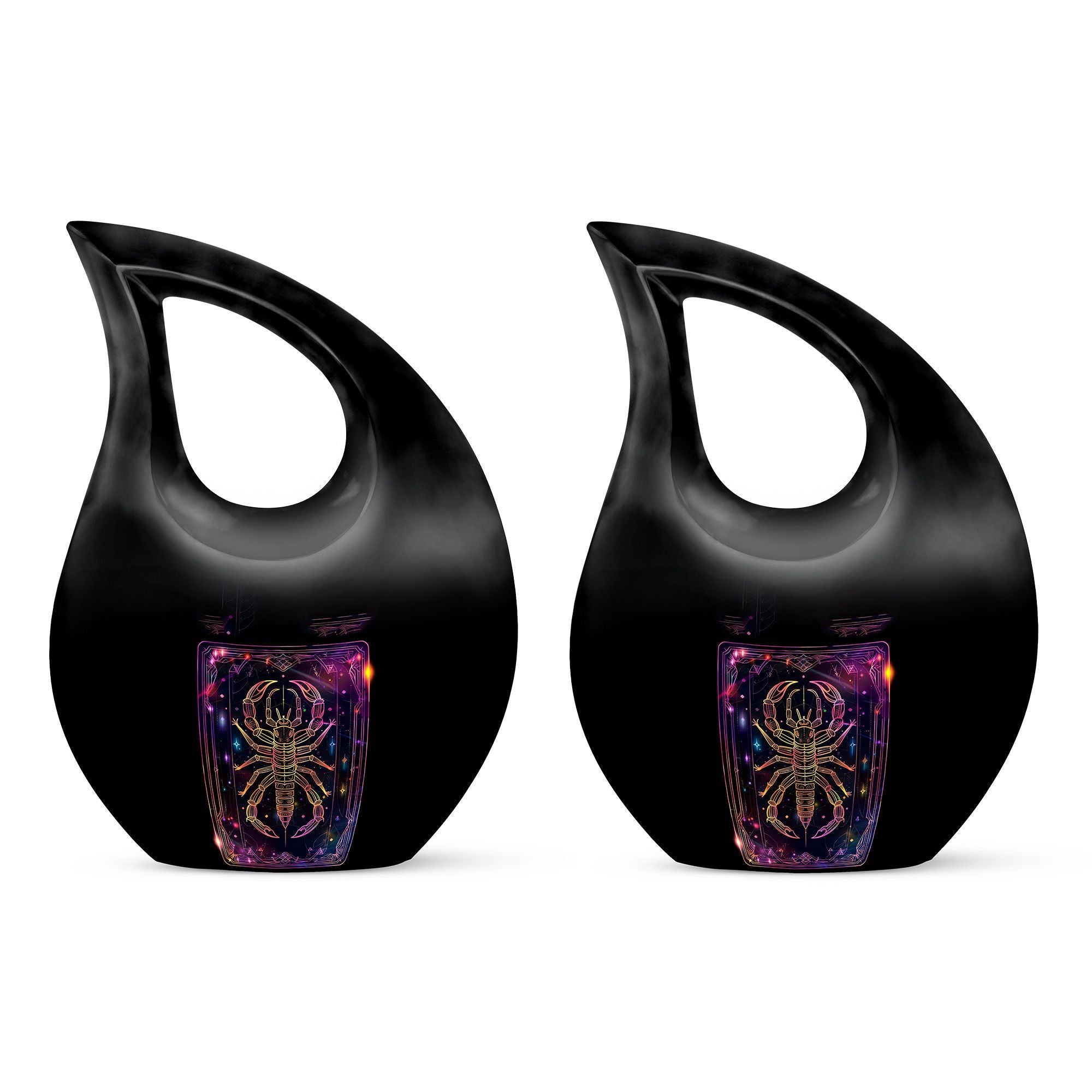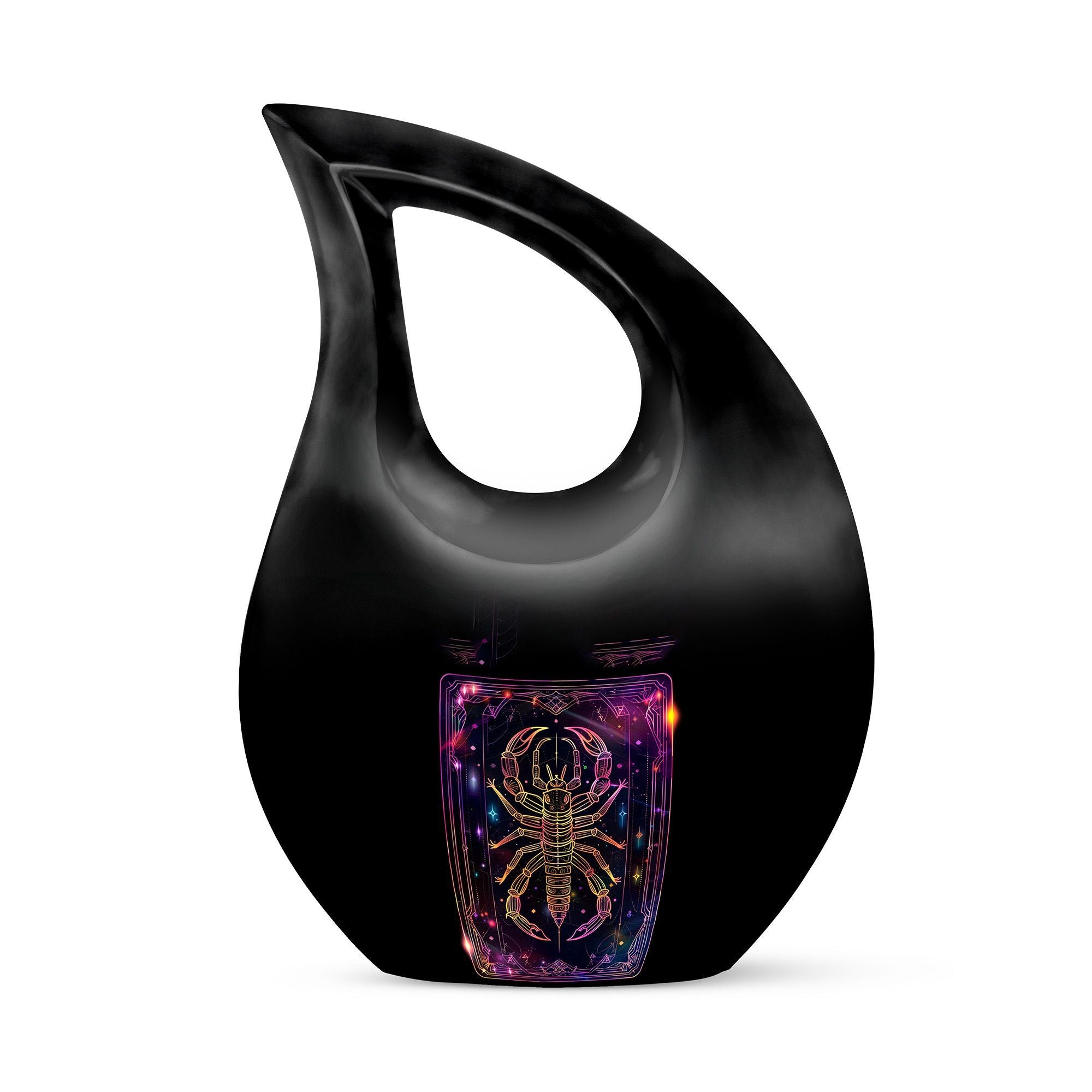 Embrace your loved one's spiritual journey with our Zodiac Cross Drop Custom Urn. This 10-inch tall remembrance piece displays a unique fusion of celestial inspiration and religious symbolism. Perfect for adults and seniors looking to invest in memorial ceremony supplies, this large urn boasts an aluminium construction for lasting durability. It measures at 3.3 pounds and has the capacity to hold up to 200 cubic inches of ashes. The striking Cross-Drop Zodiac theme lends a calming representation of heavenly bodies. This urn offers a personalized touch as it can be customized with engraved names, giving you a sense of connection and intimacy when honoring their memory. The package comes with a plush velvet pouch, assuring the containment and protection of the ashes. From our selection, explore the wide variety of affordable burial urns, from custom to companion urns, catering to your specific needs. Not your average memorial urns, our Zodiac Urn provides a sensitive and thoughtful approach to the memory of your loved ones.