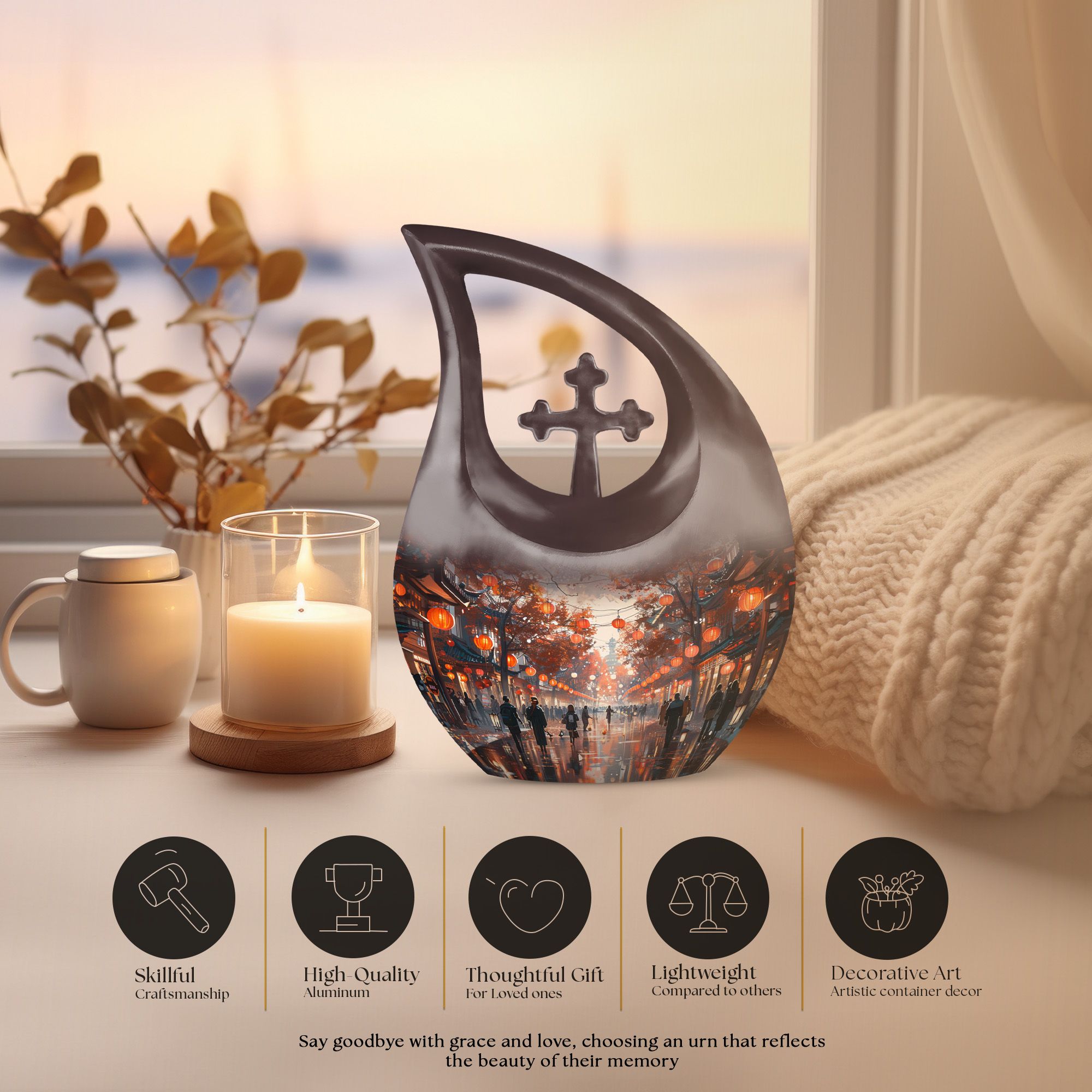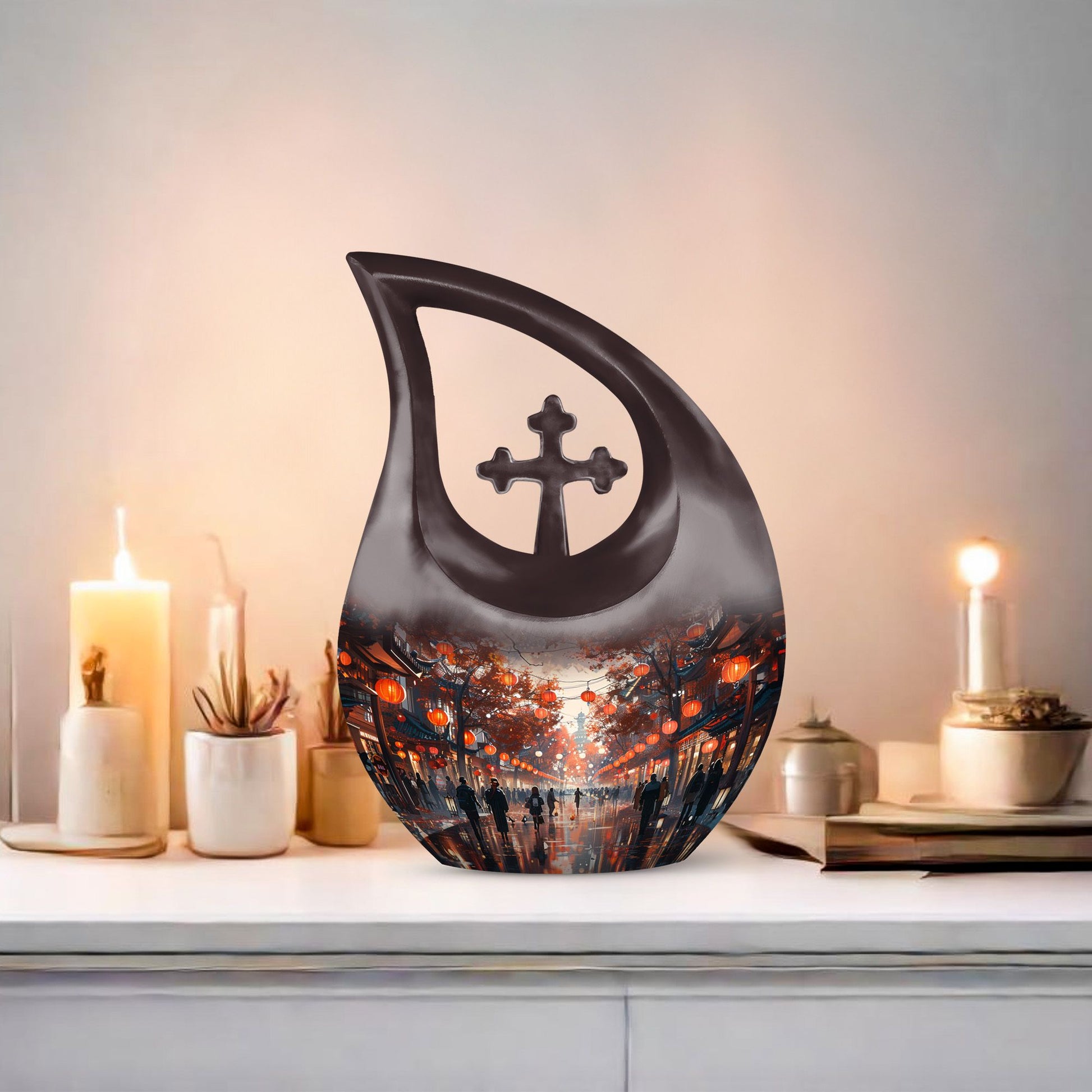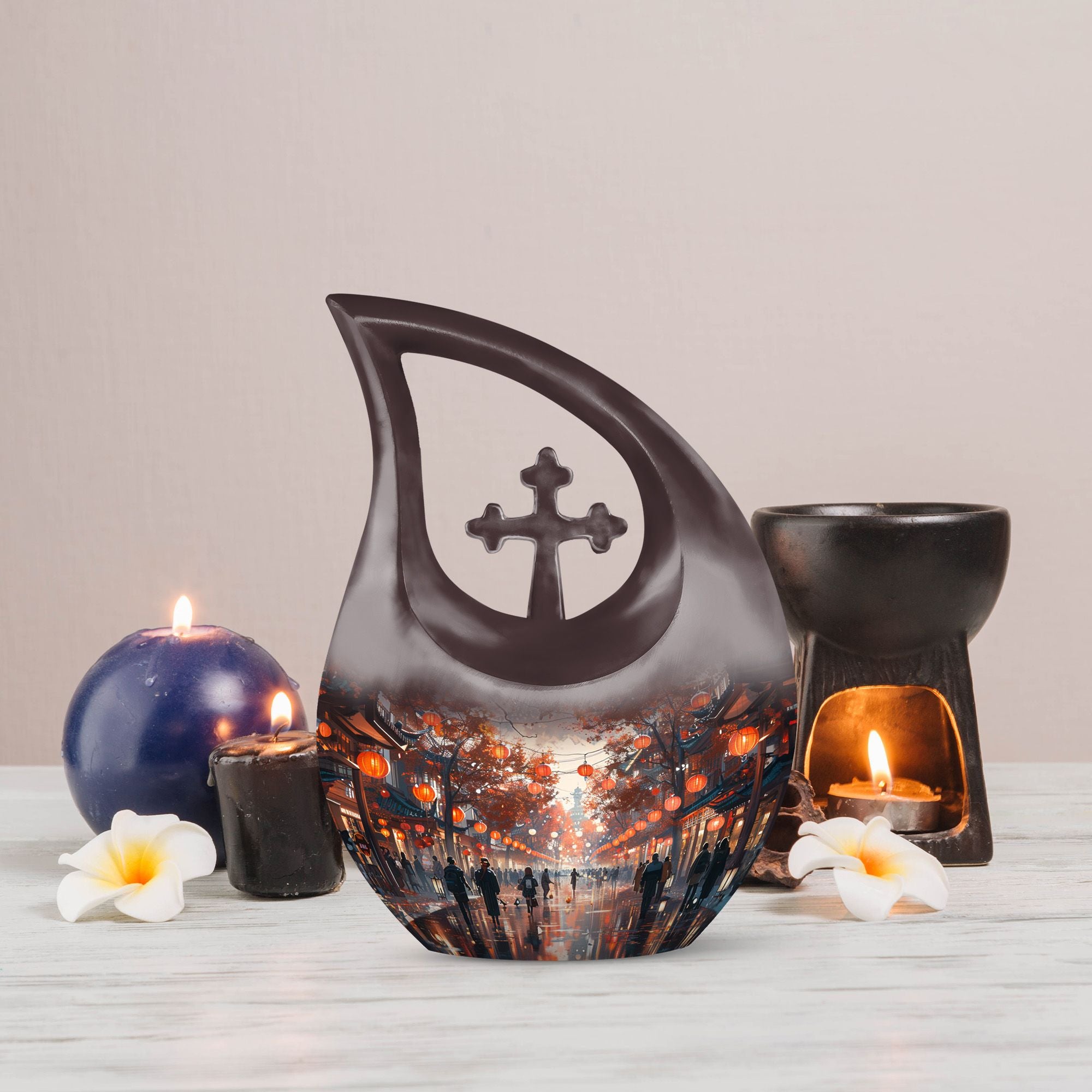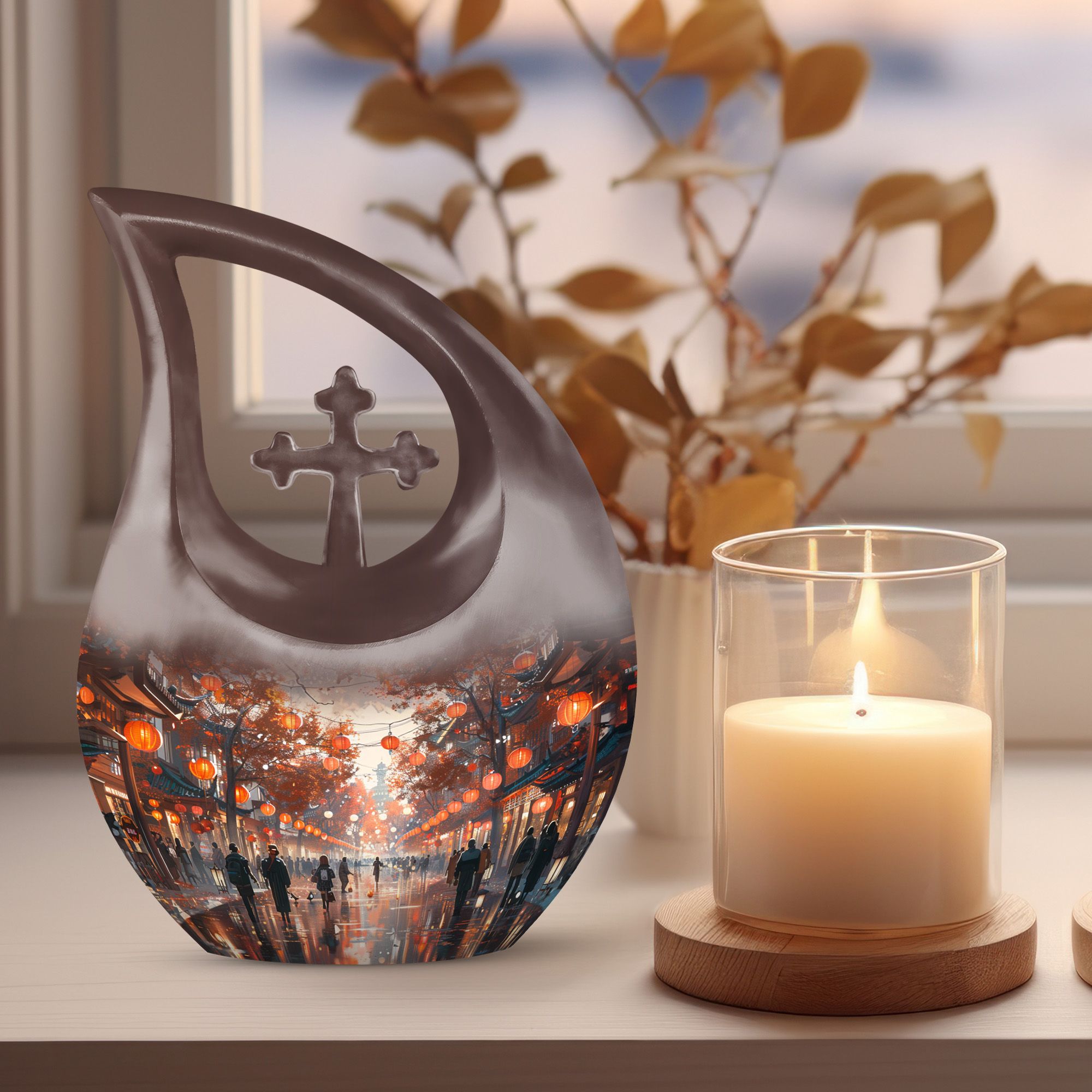 The Festival Themed Urn for Loved Ones brings warmth, color, and joyful remembrance to honor a cherished life. This radiant design is ideal for families seeking a heartfelt tribute that reflects celebration, love, and legacy—perfect for those needing ash urns for humans male, urns for adult female ashes, or a unifying memorial piece for any loved one.
