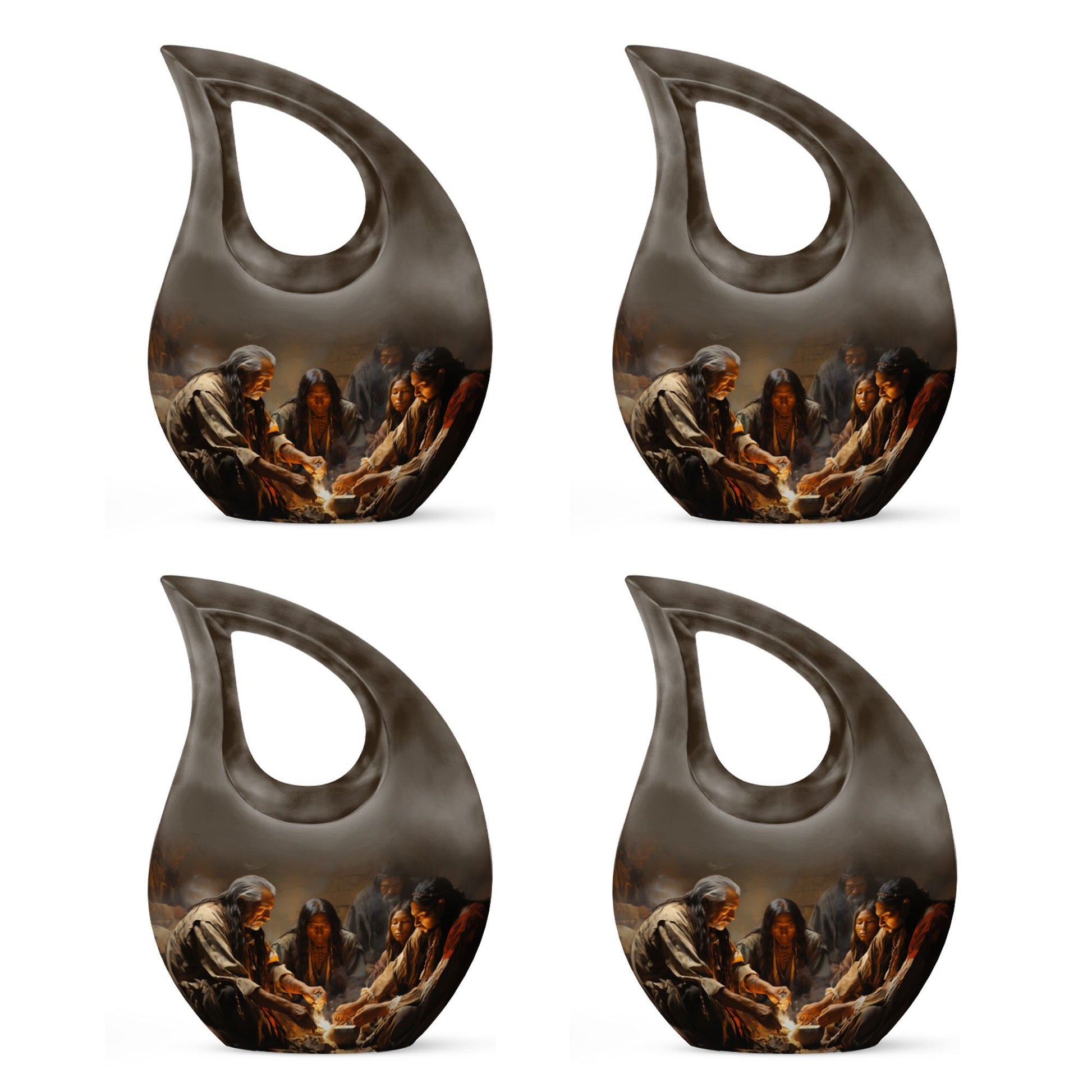 The Native American Family Themed Urn offers a heartfelt and symbolic way to honor a cherished life. Designed with respect and cultural inspiration, it provides a meaningful resting place for families seeking cremation urns for adult ashes women or urns for adults men that reflect unity, heritage, and spiritual connection.