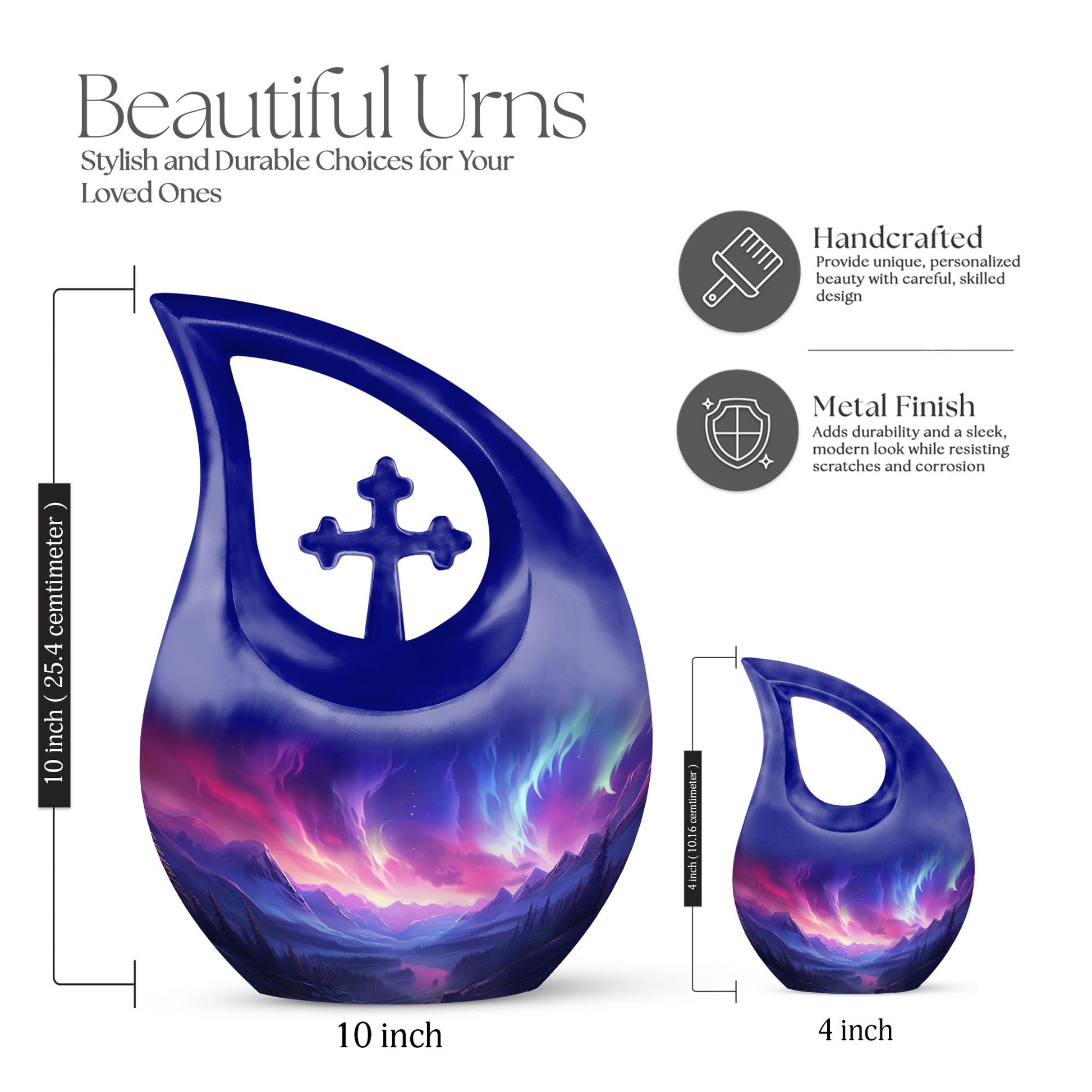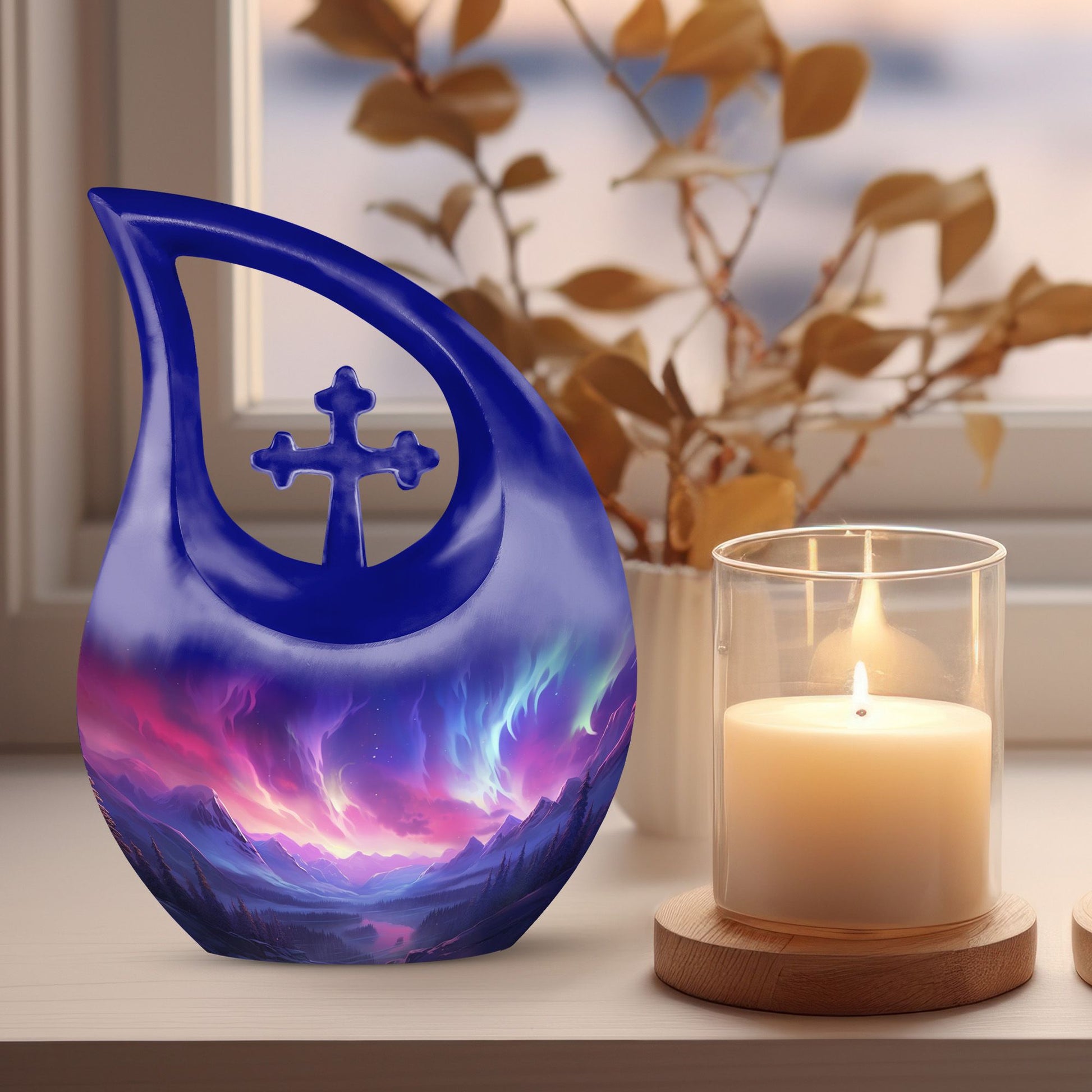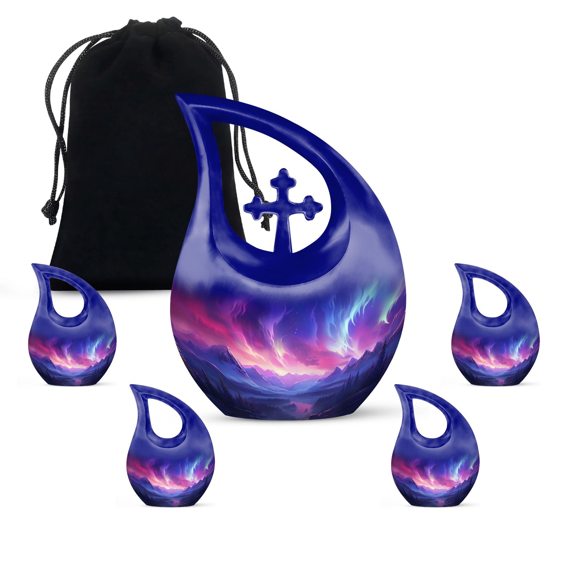 The Aurora Northern Lights Elegant Cross Drop Design Large Memorial Urn is a heartfelt tribute to a life cherished and remembered. Designed for families seeking urns for adult female mom or urns for human ashes adult female small size, this memorial piece reflects peace, faith, and eternal love. Its radiant design captures the ethereal beauty of the northern lights, symbolizing hope and everlasting connection beyond the stars.
