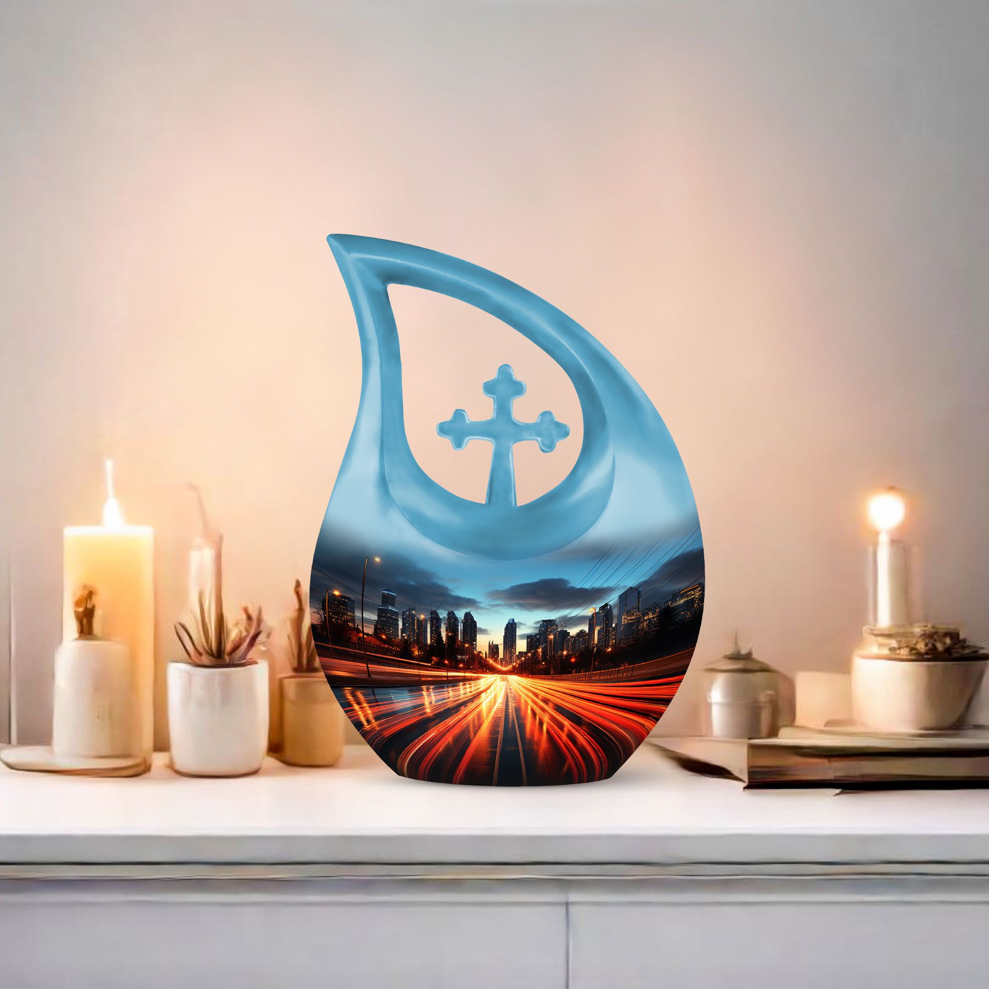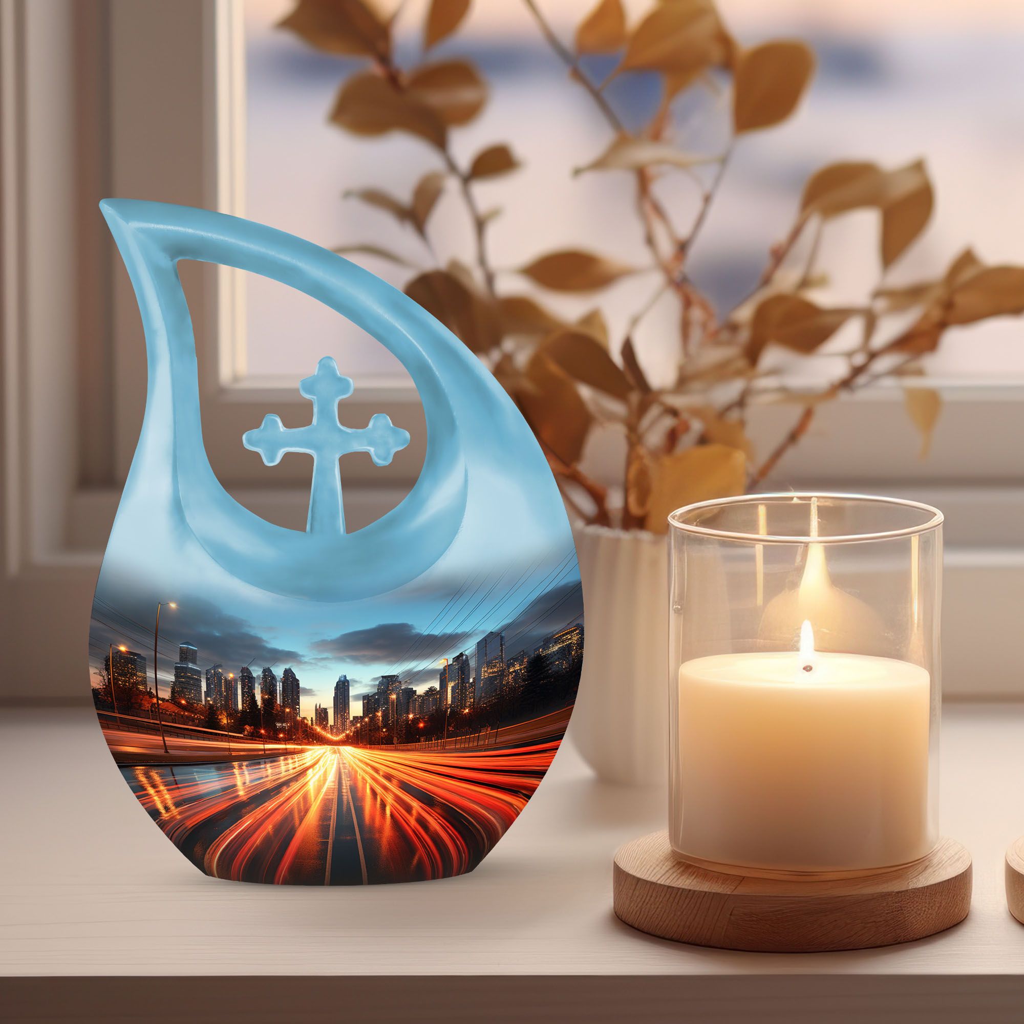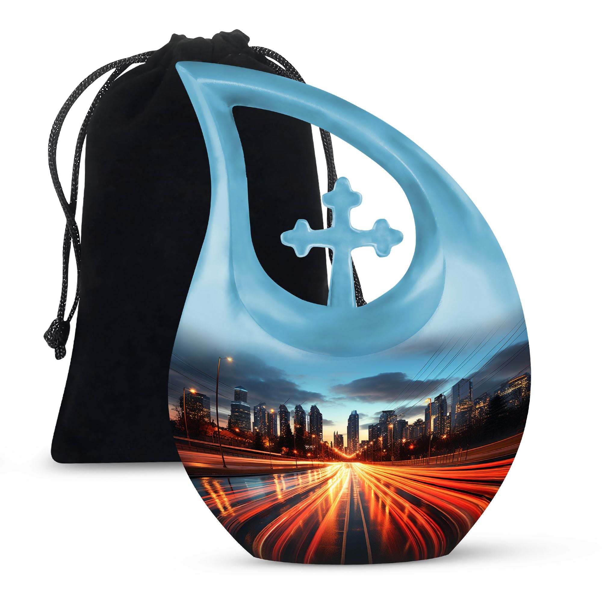 The Blue Urban Nightscape cremation urn embodies strength, serenity, and eternal remembrance. Designed as a heartfelt urn for ashes adult male dad, it symbolizes love and gratitude through its deep blue tones that reflect calmness and honor. This piece serves as a meaningful memorial urn for human ashes keepsake, perfect for families who wish to keep their father’s memory alive with beauty and dignity.
