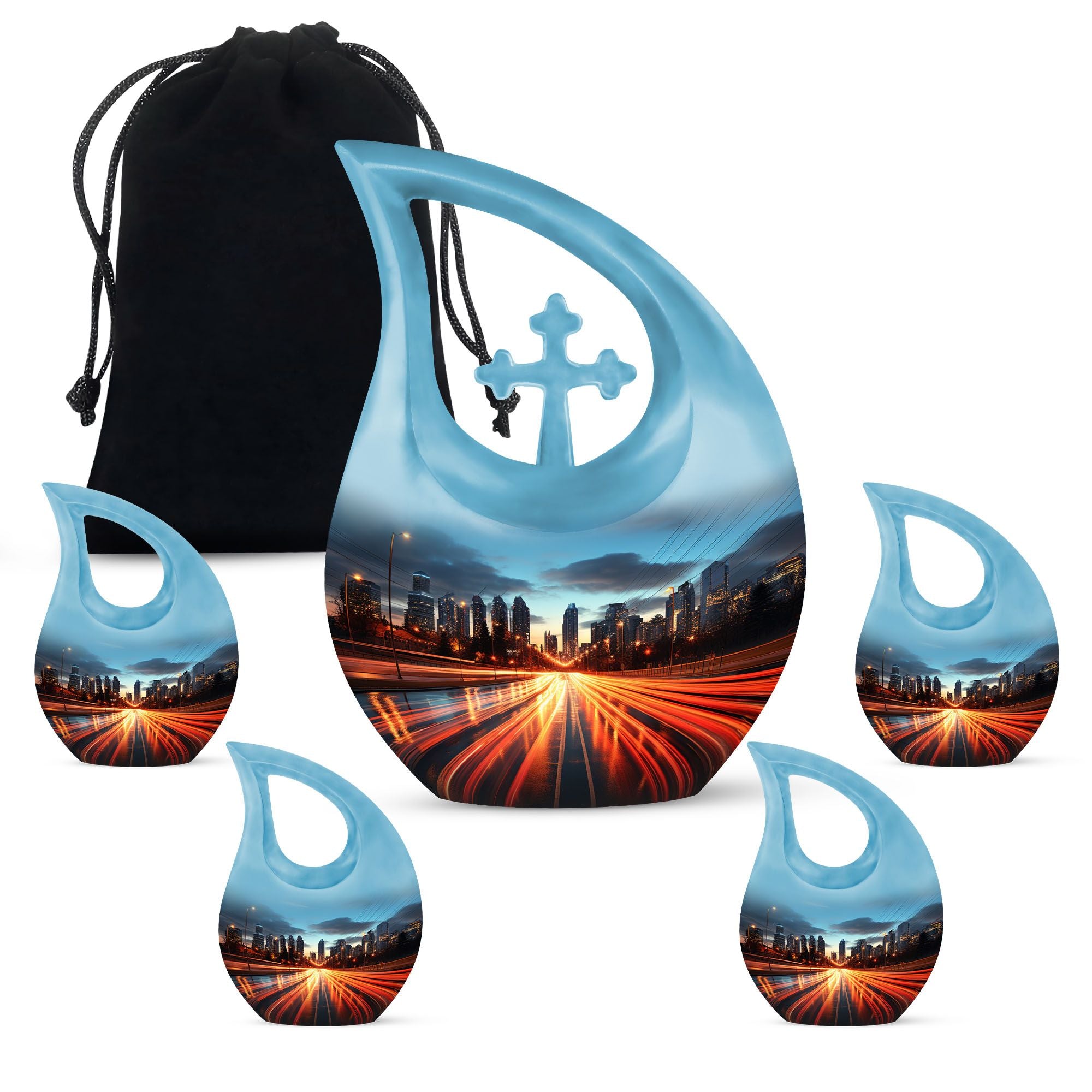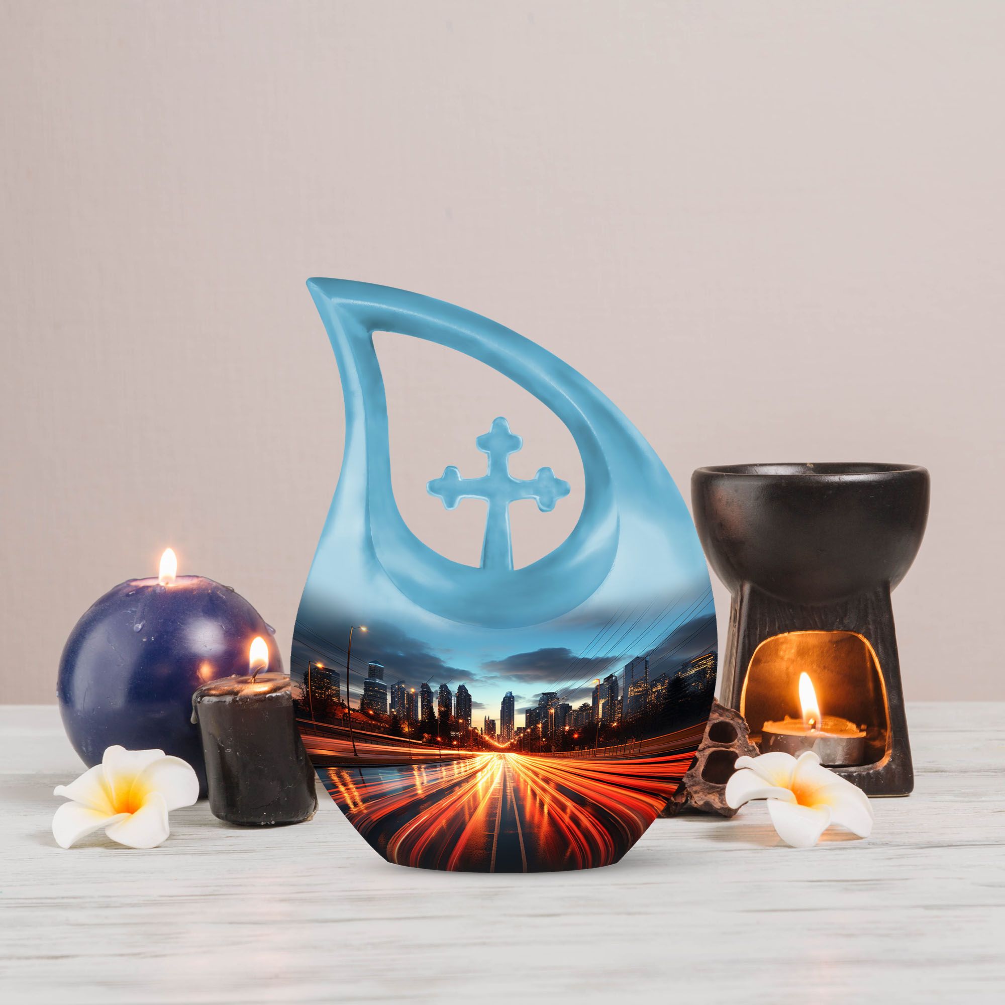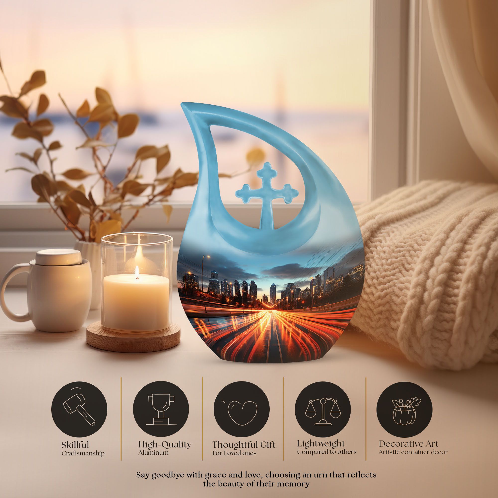 The Blue Urban Nightscape cremation urn embodies strength, serenity, and eternal remembrance. Designed as a heartfelt urn for ashes adult male dad, it symbolizes love and gratitude through its deep blue tones that reflect calmness and honor. This piece serves as a meaningful memorial urn for human ashes keepsake, perfect for families who wish to keep their father’s memory alive with beauty and dignity.