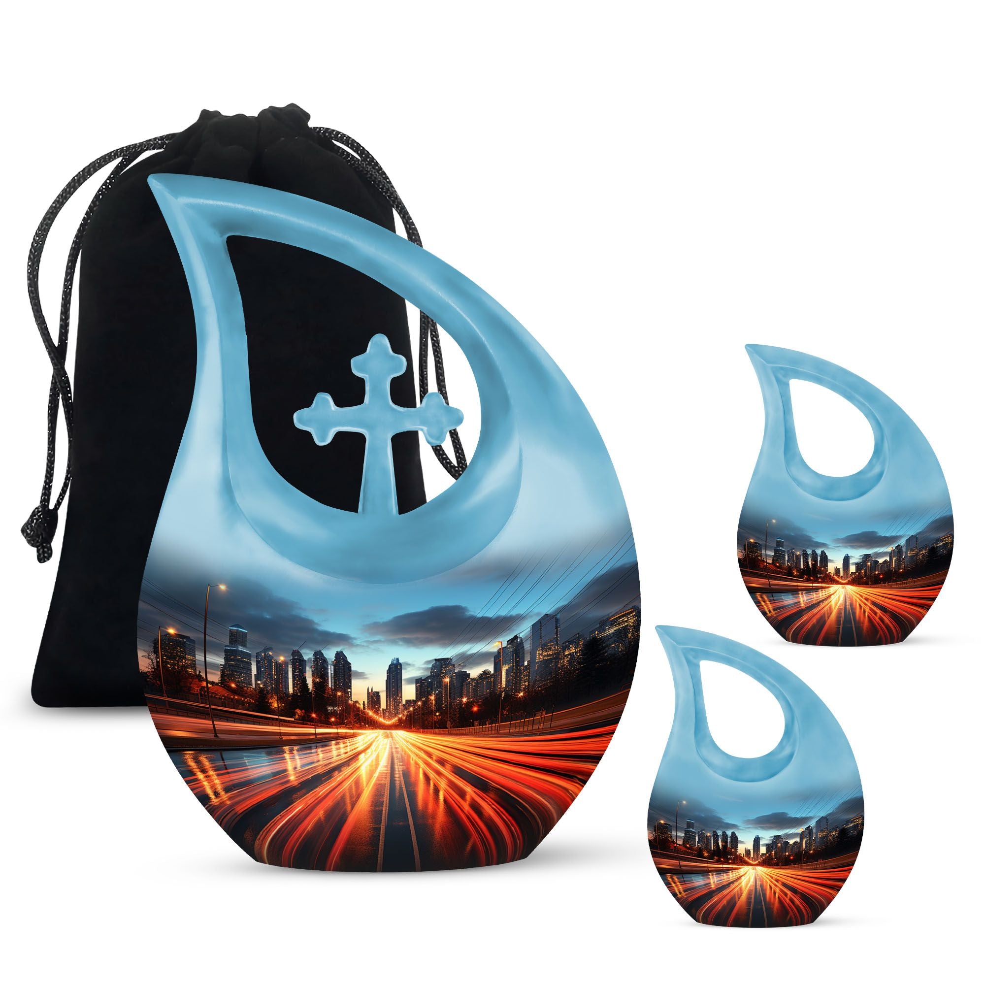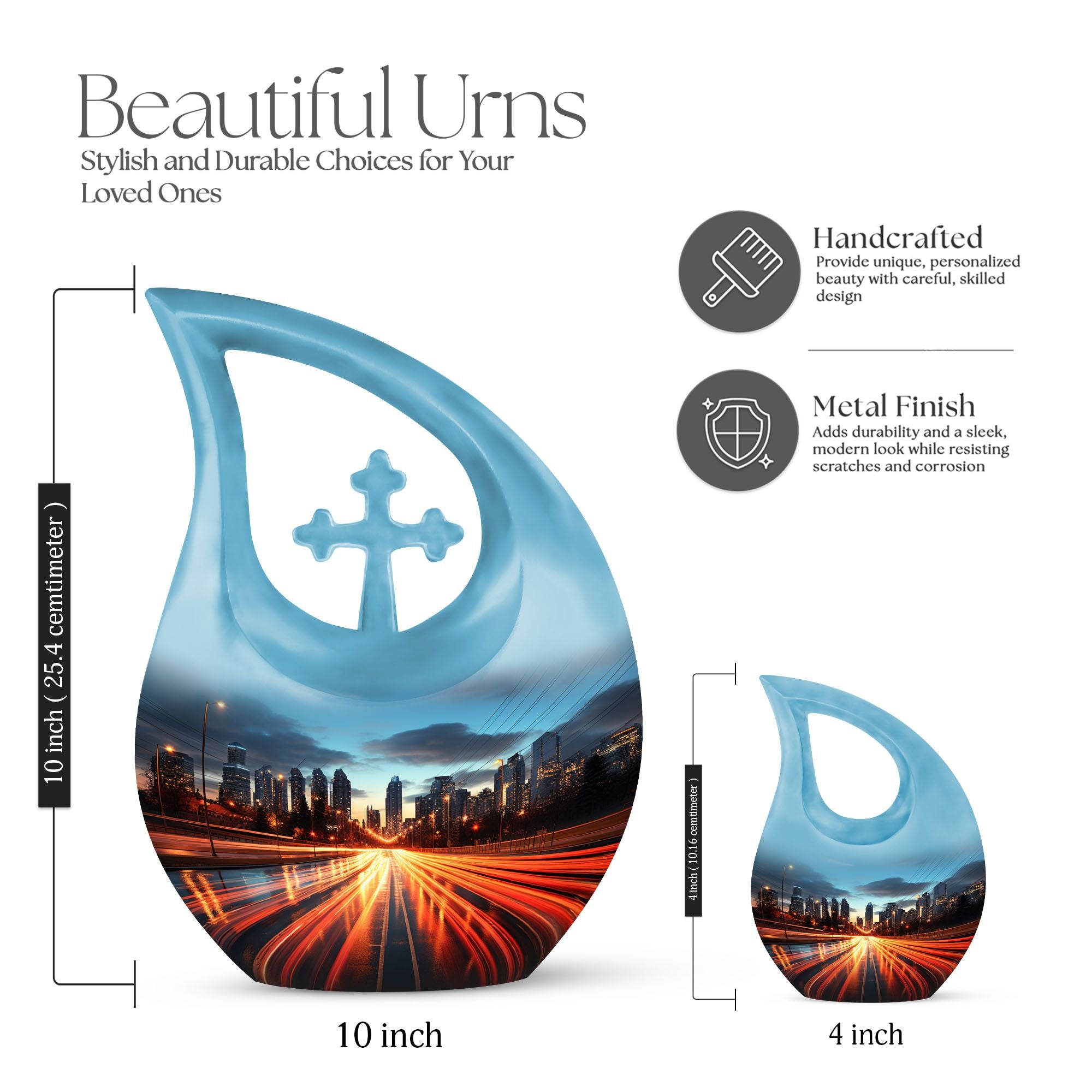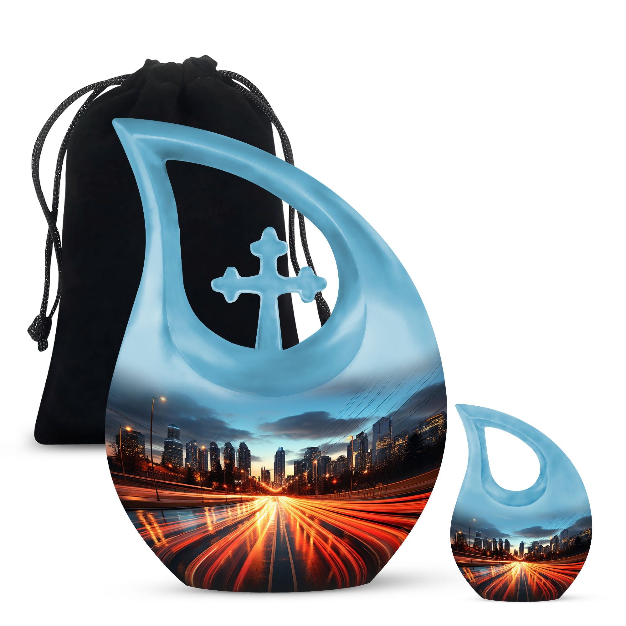 Expertly crafted from high-quality aluminum, this urn blends artistic detail with lasting durability. The hand-finished nightscape pattern offers a distinctive look—each urn is unique, symbolizing the individuality of every loved one it commemorates. Ideal for both display and memorial ceremonies, this design suits urns adult male dad, keepsake urns for ashes, and even mini urns for human ashes dad collections.