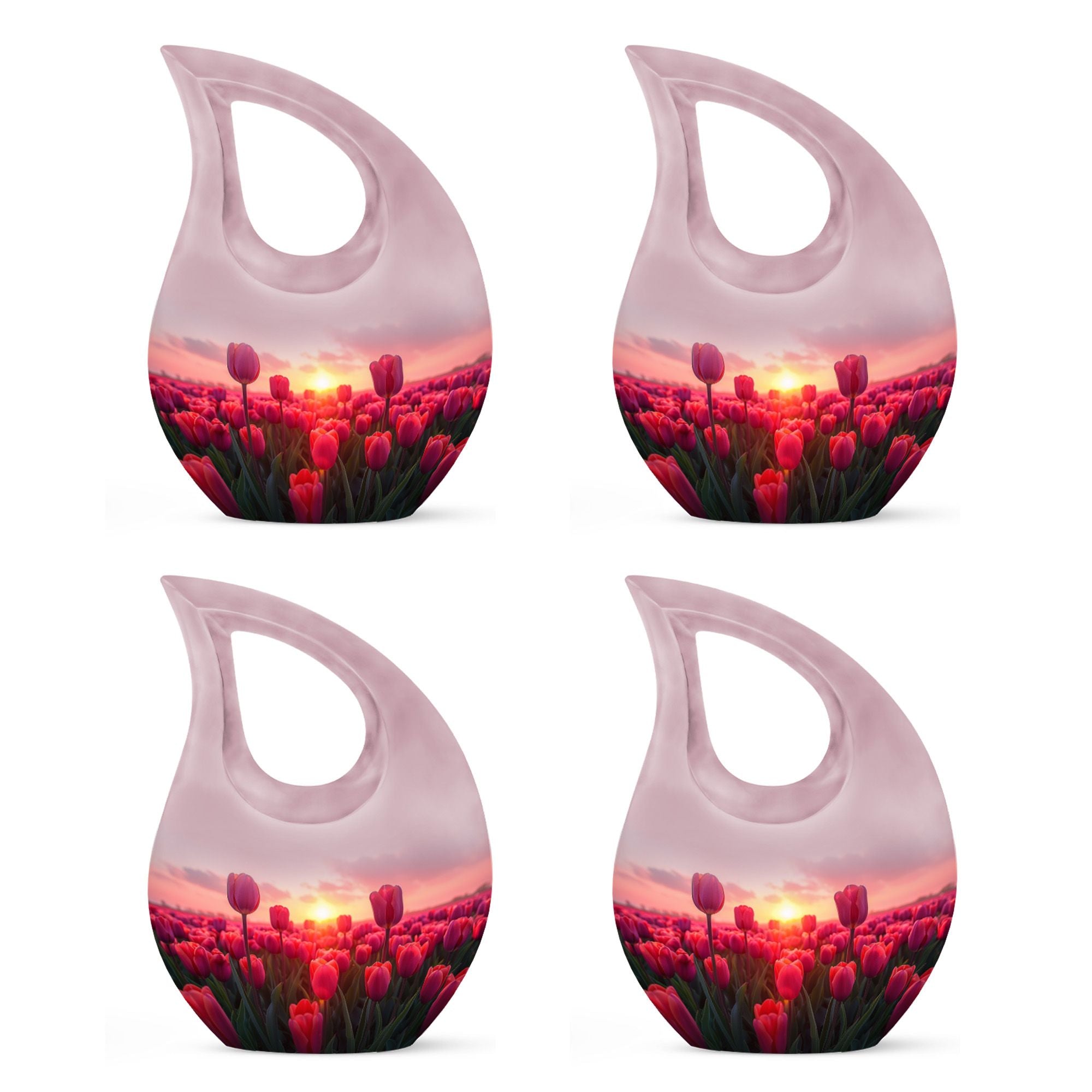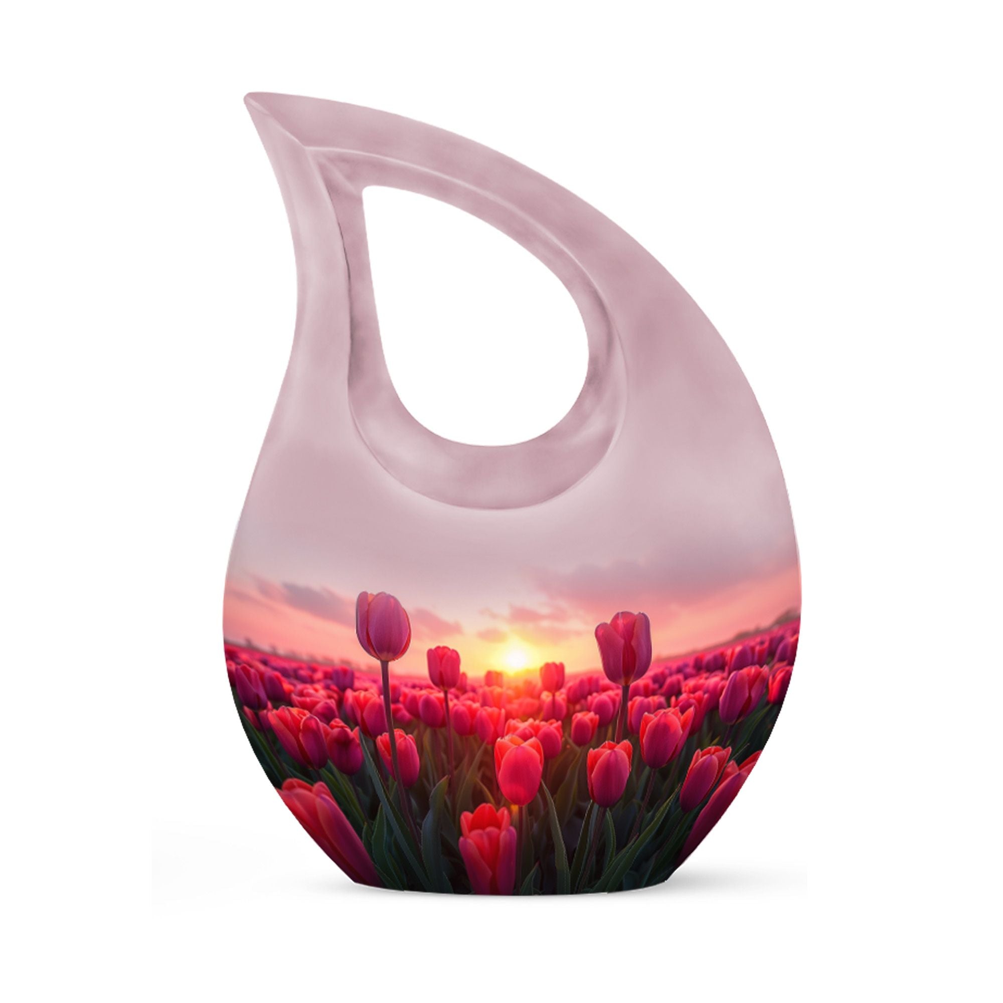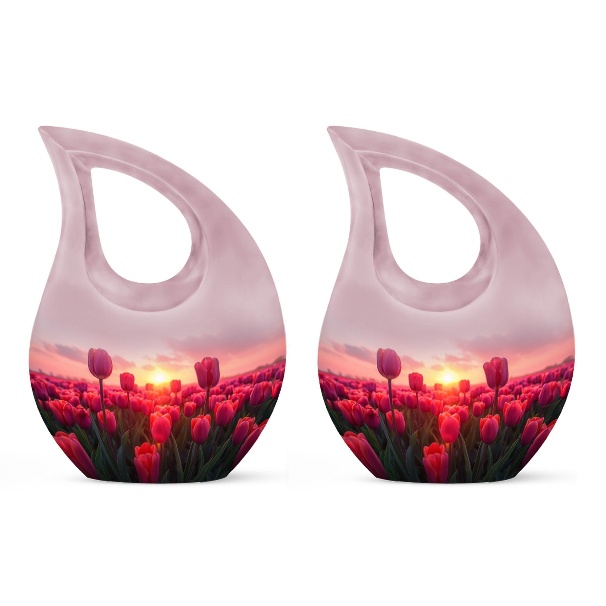 Celebrate the light of dawn and the whisper of eternal love with the Dawn's Crimson Kiss Urn, a beautiful memorial keepsake cherished not only for its aesthetic appeal but for its meaningful symbolism. Crafted from durable aluminium, this substantial 10-inch urn, with a weight of 3.3 pounds, is designed to inspire faith and peace with its exquisite 'Cross Drop' theme. Large in size and boasting a capacity of 200 cubic inches, this urn offers an ample space for preserving the ashes of your dearly departed. Additional allure comes with the ability to personalize the urn with engraved names, making each piece truly one-of-a-kind. The urn comes complete with a velvet pouch, exuding an extra touch of elegance and care in the containment of ashes. Ideal for adults and seniors looking for 'Biodegradable Cremation Urns', 'Cremation Urns For Two', or an 'Extra Large Urns For Two', this product aptly caters to a variety of memorial needs. Reflect the undying glow of your love and respect with the Dawn's Crimson Kiss Urn.